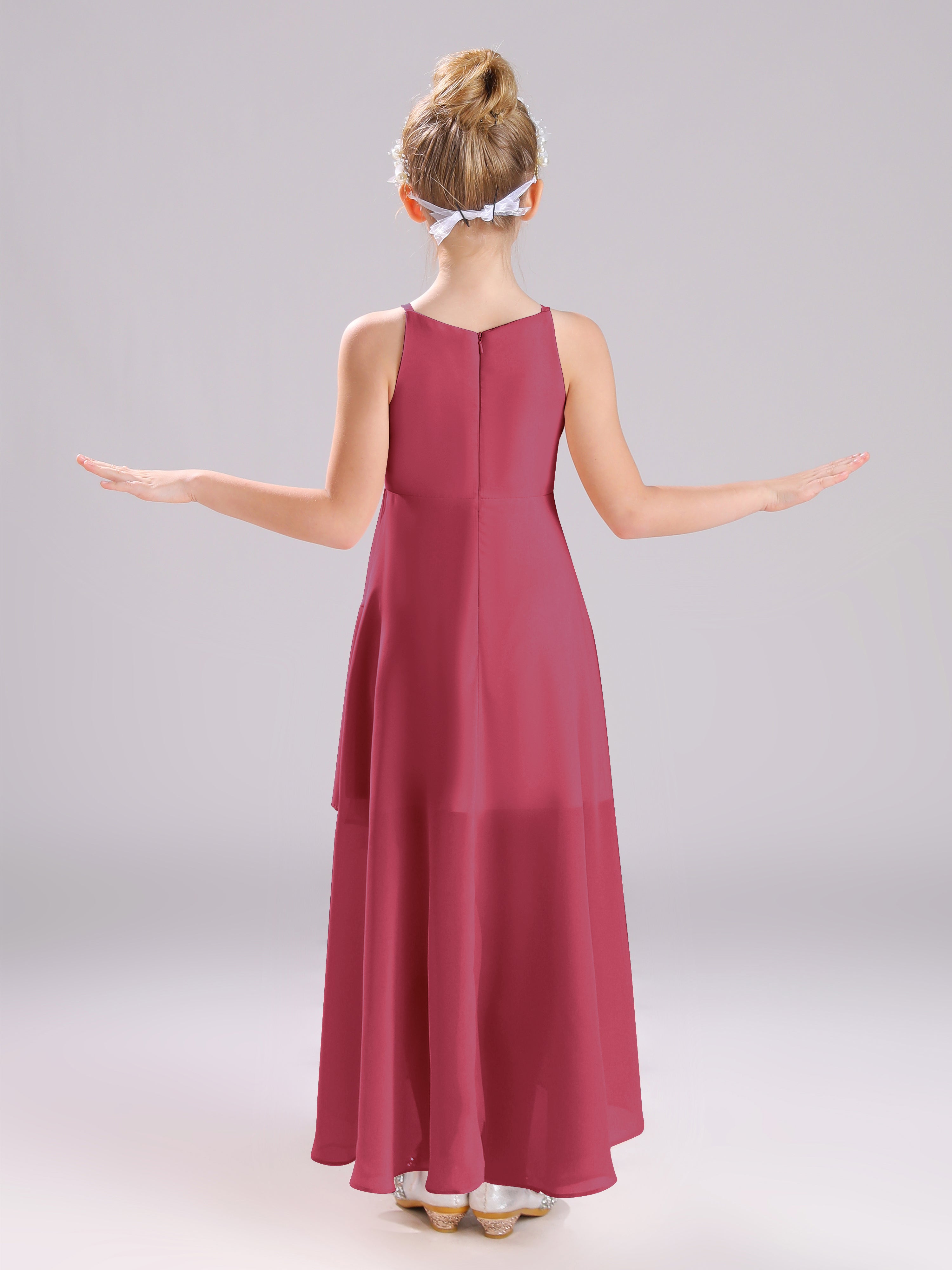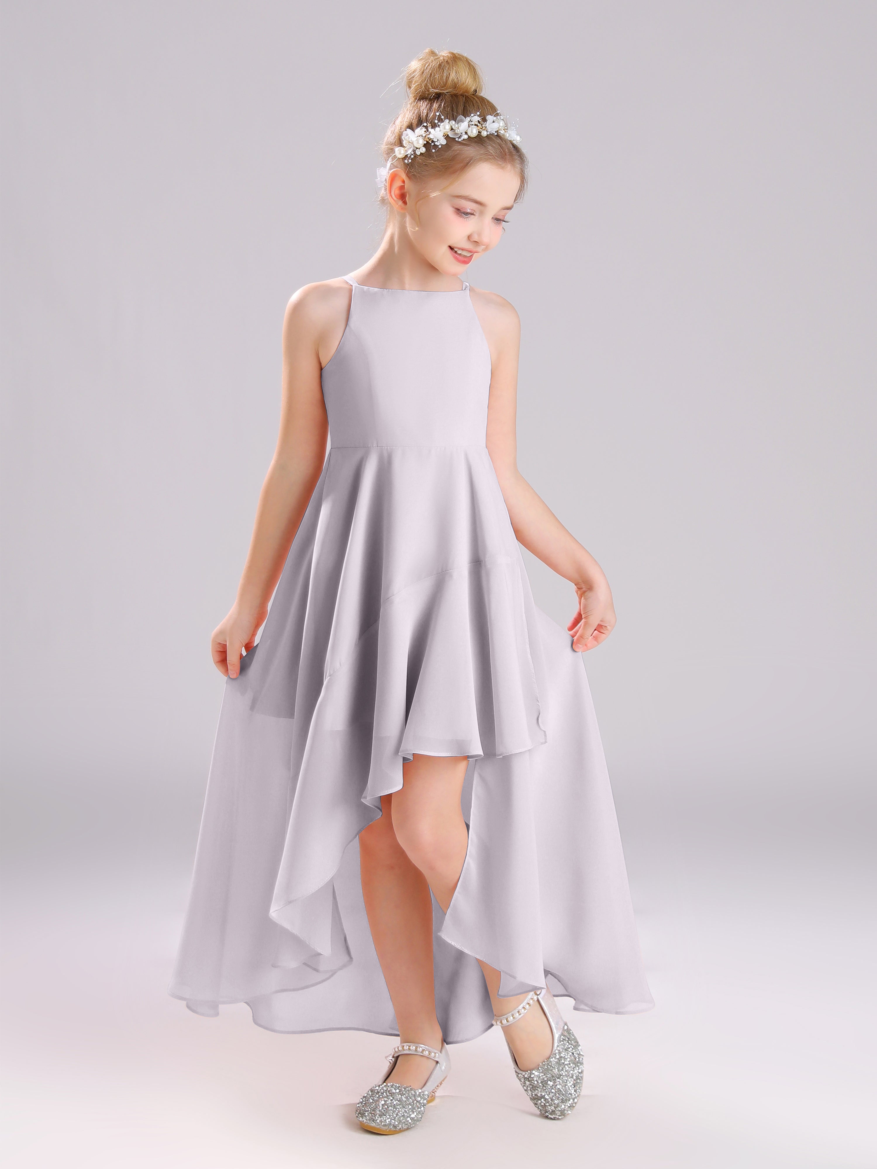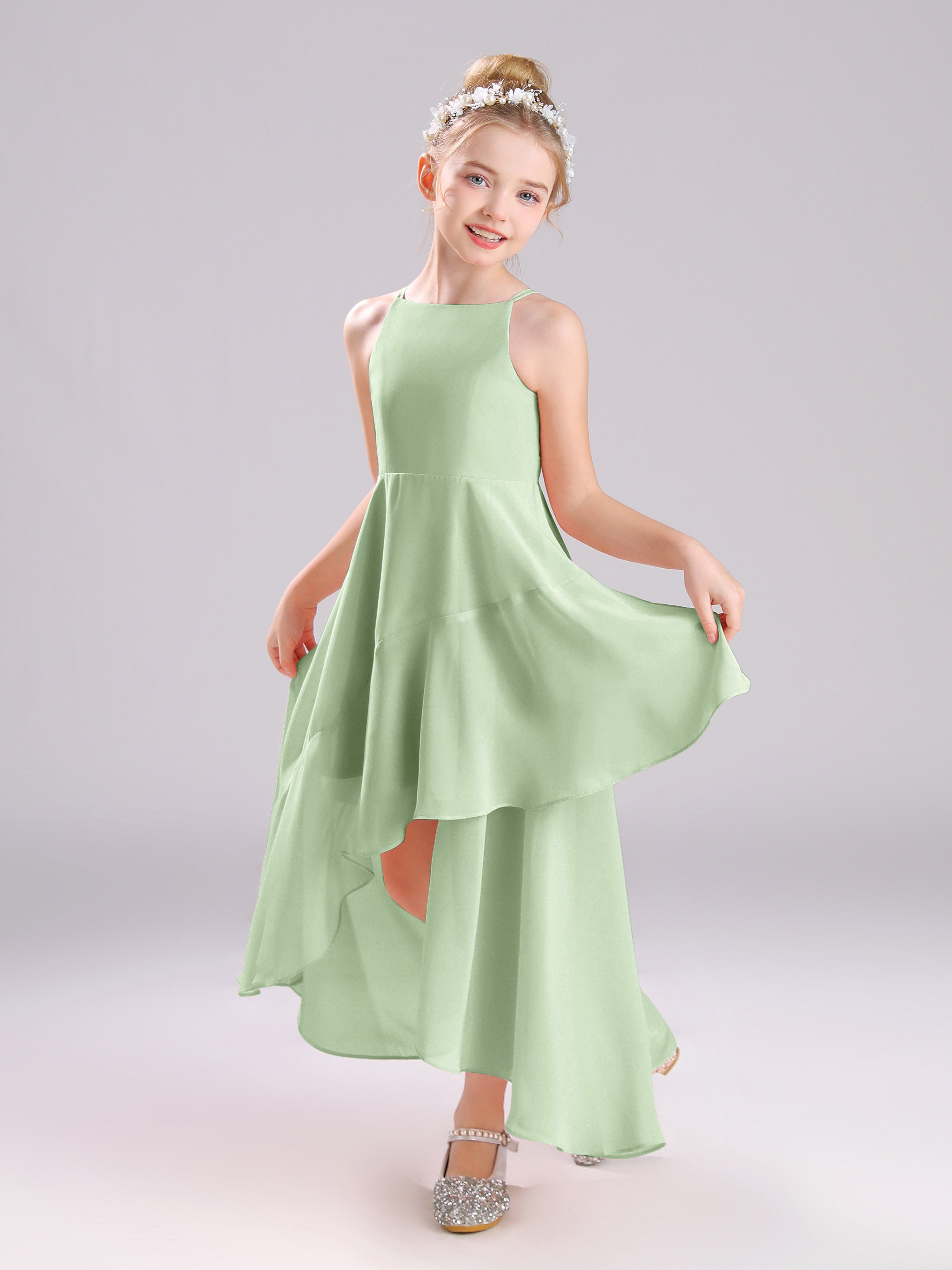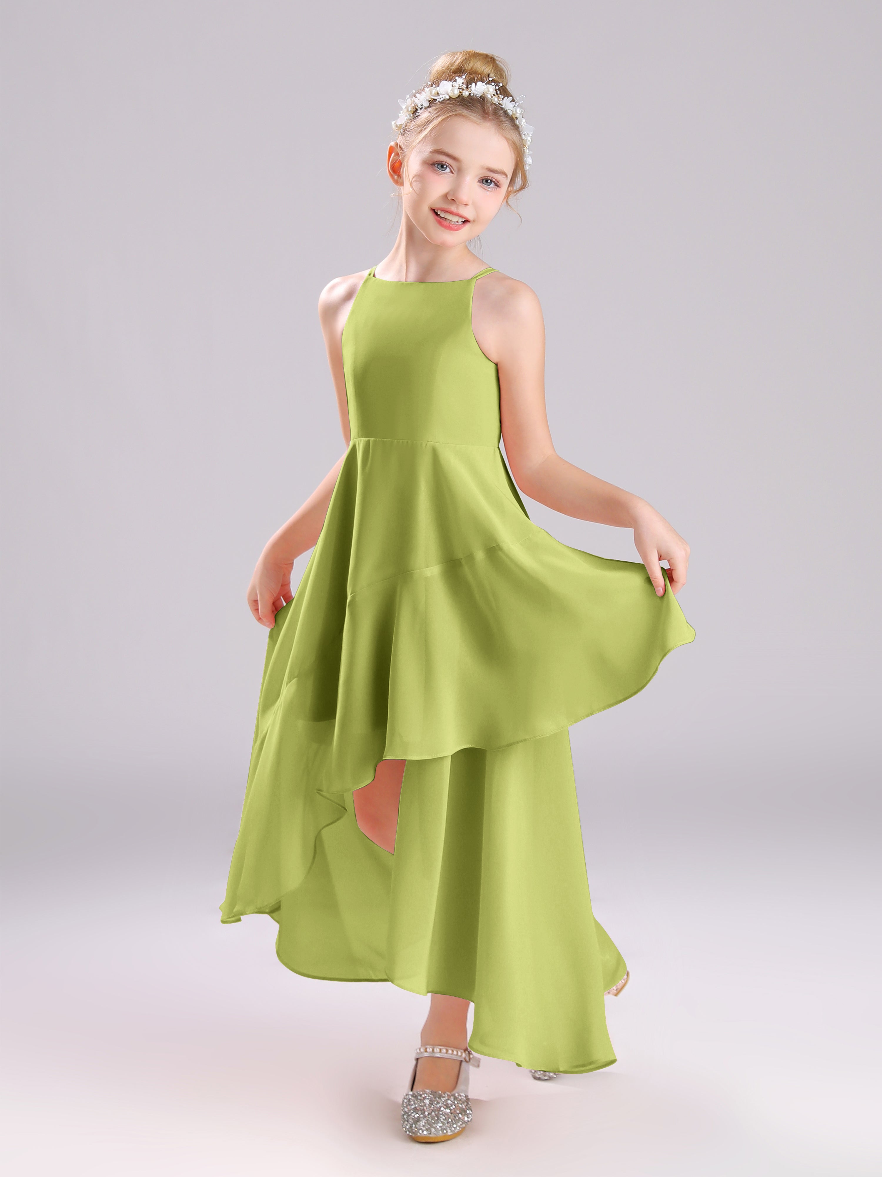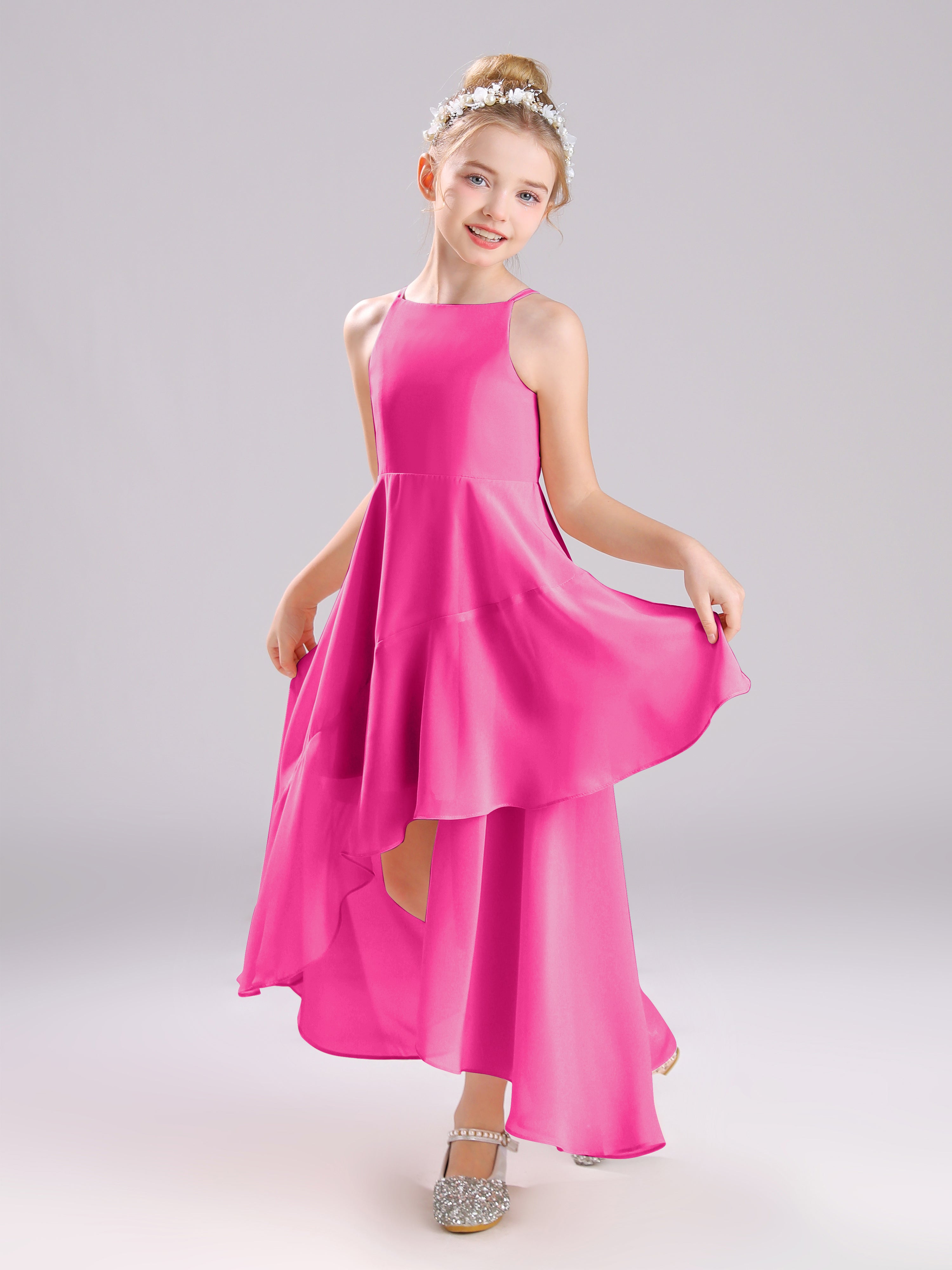 High-Low Ruffles Sleeveless Chiffon Junior Bridesmaid Dresses