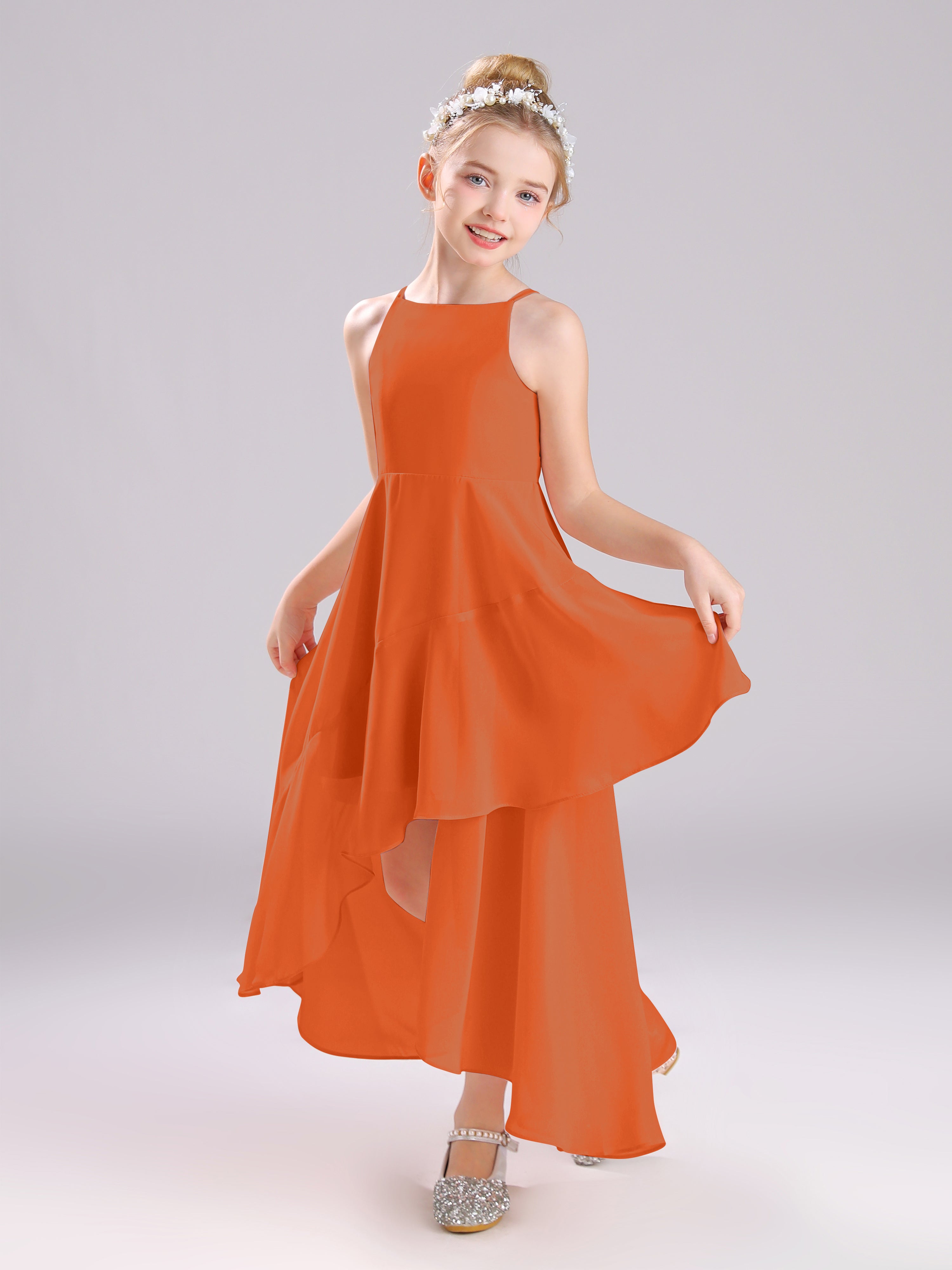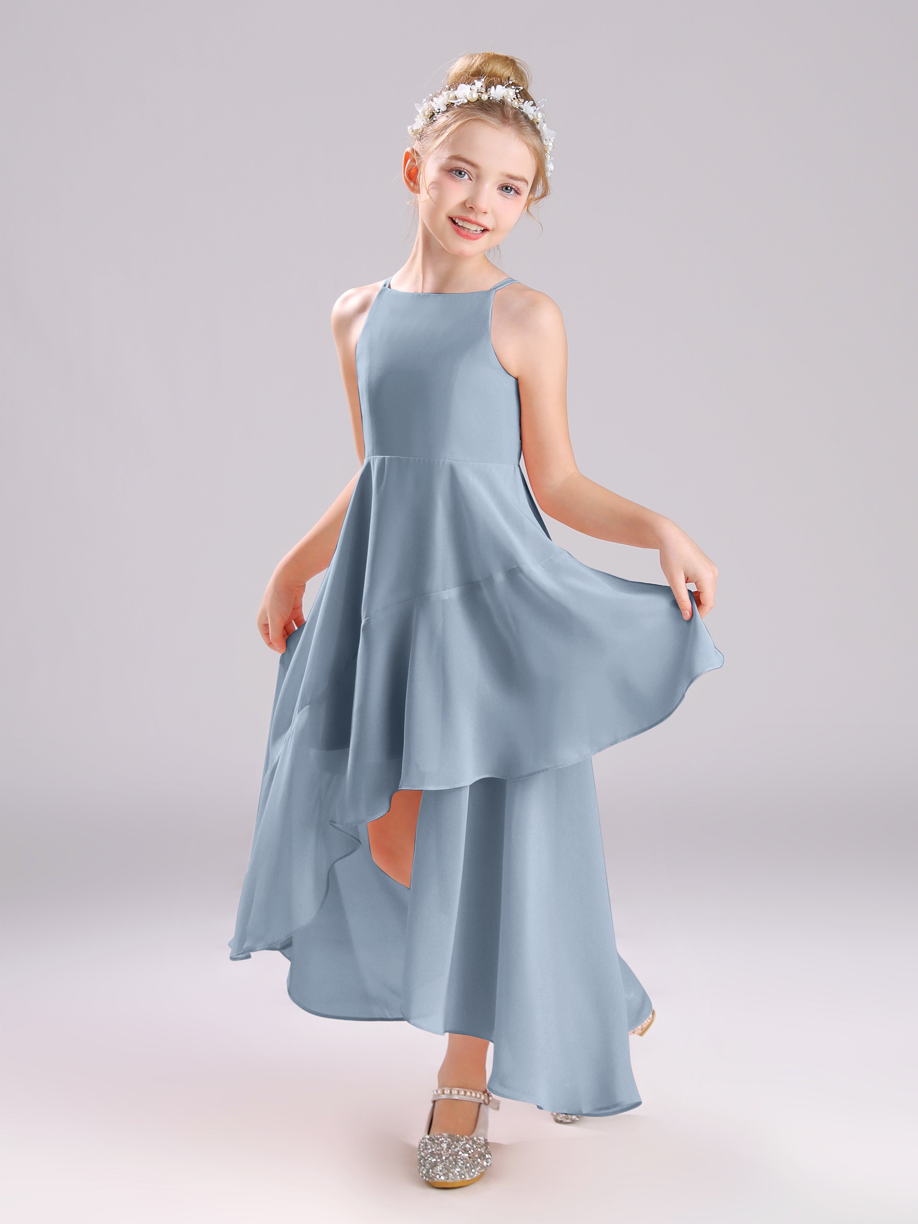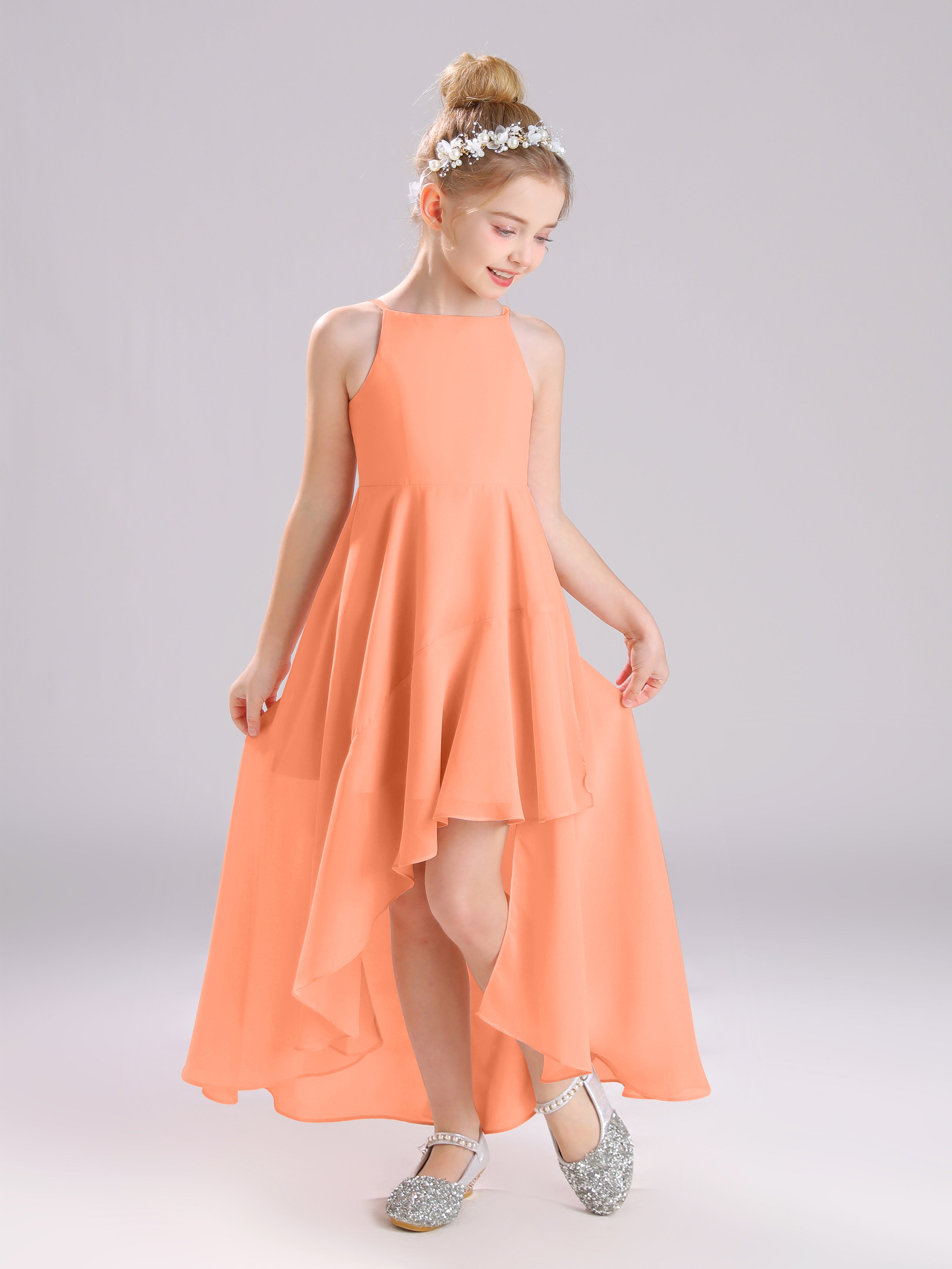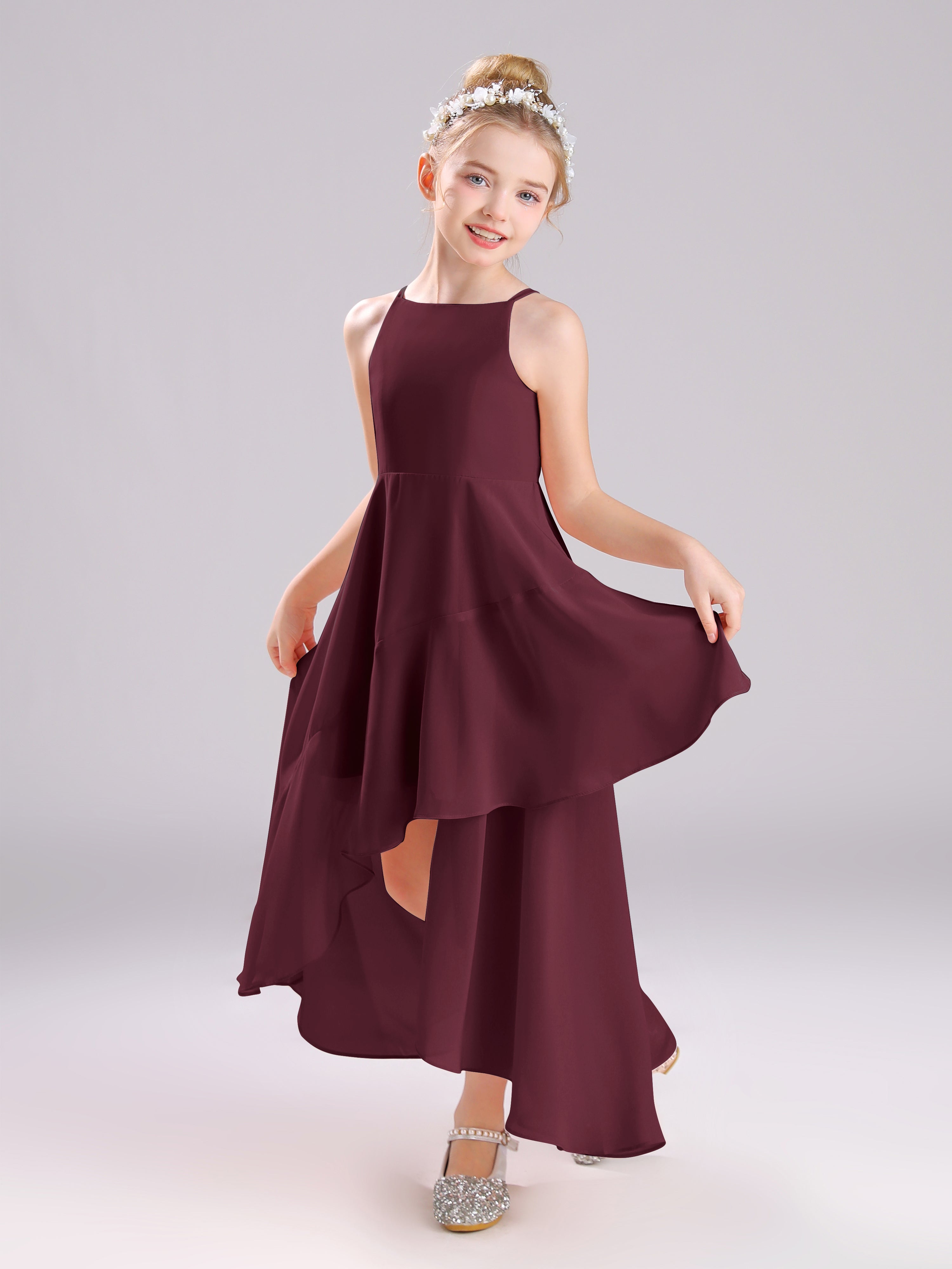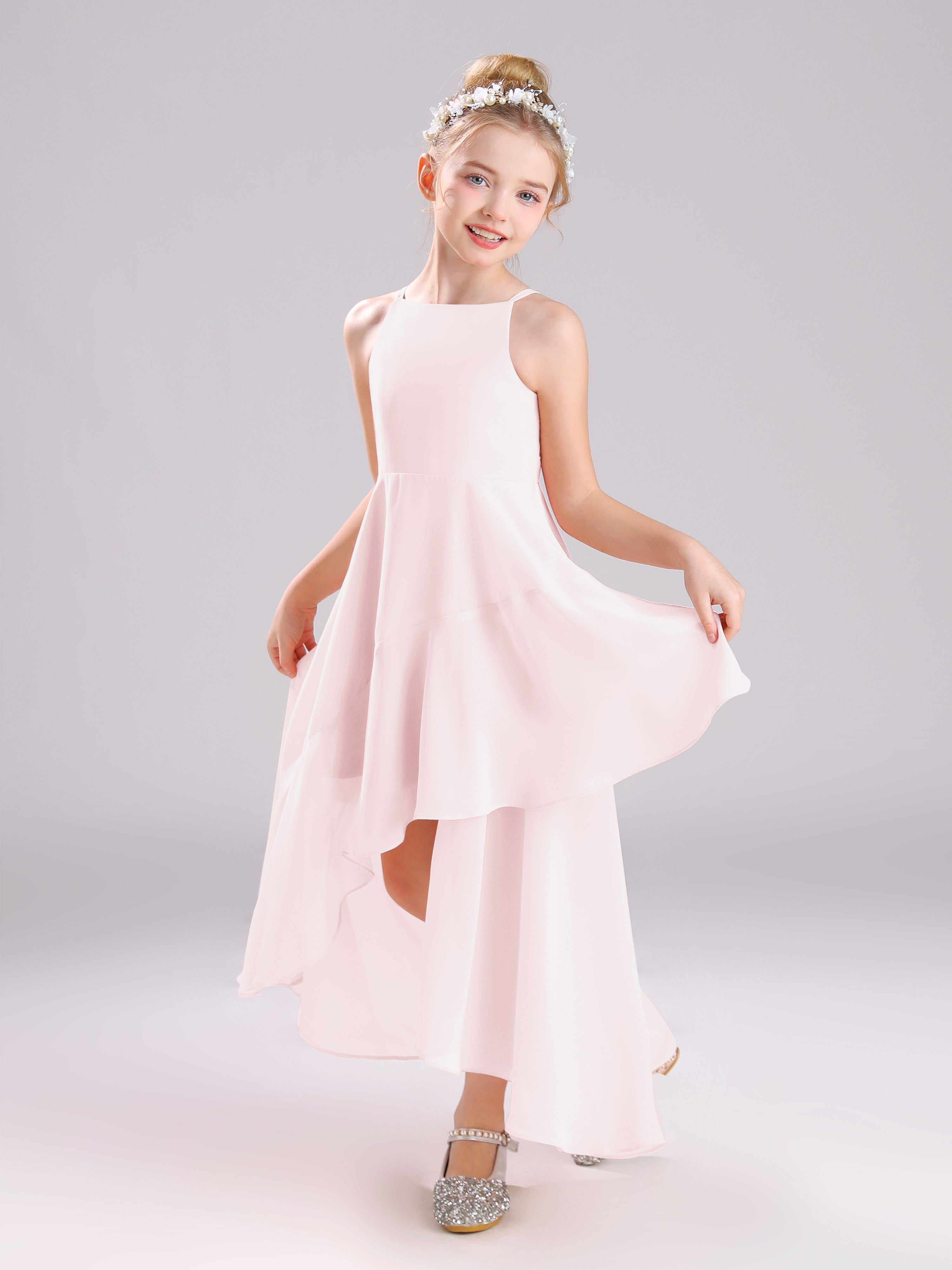 High-Low Ruffles Sleeveless Chiffon Junior Bridesmaid Dresses