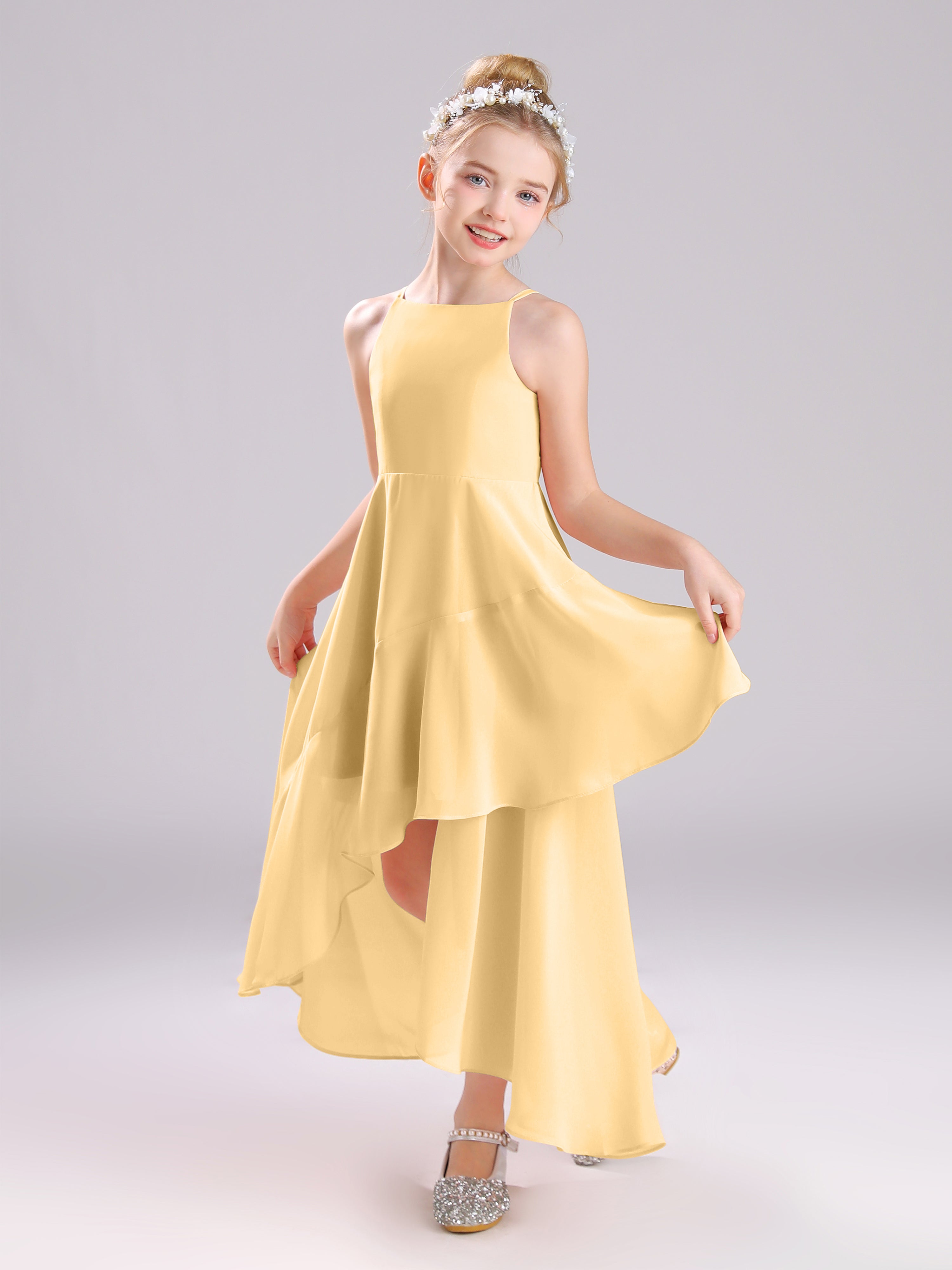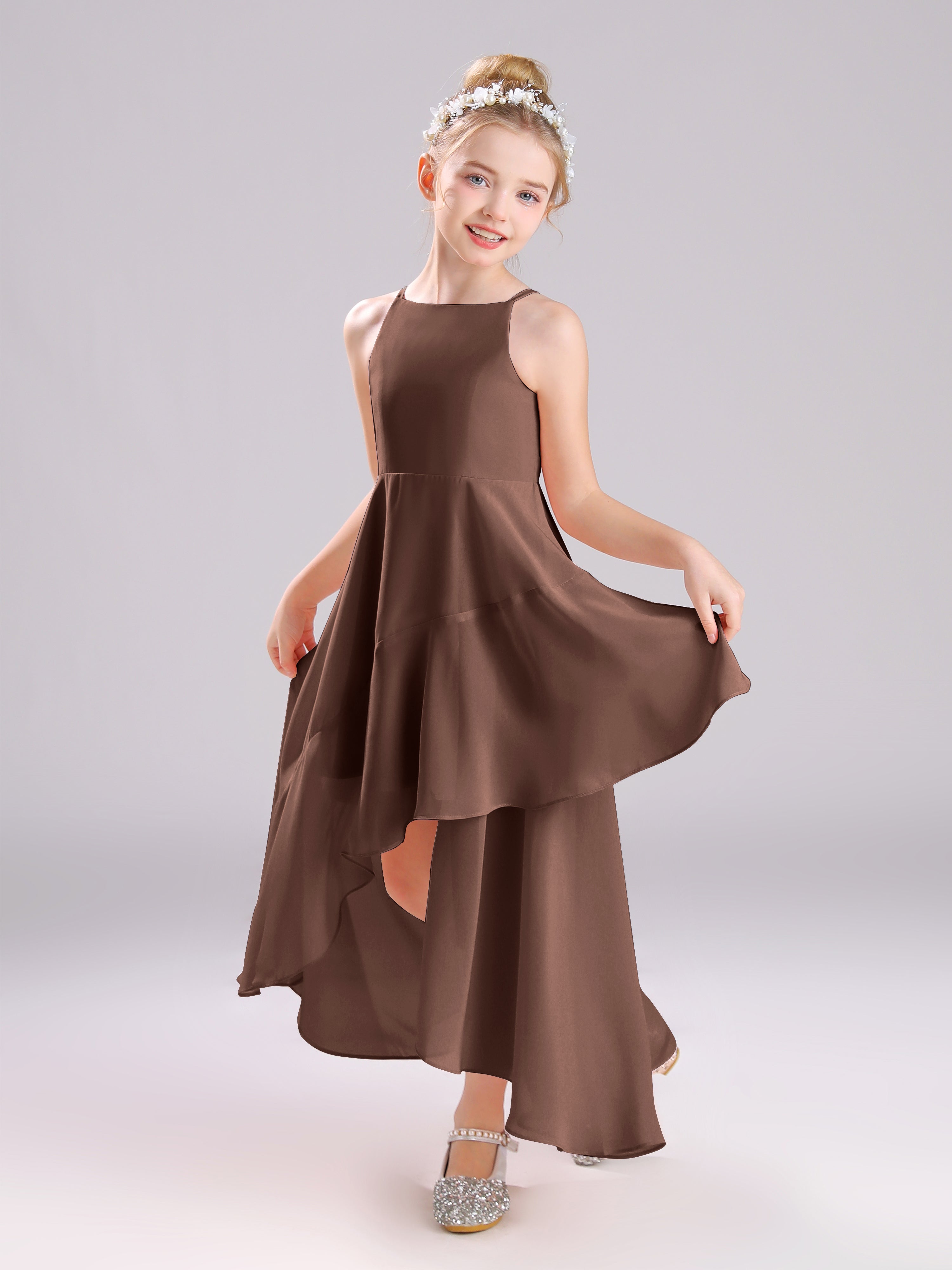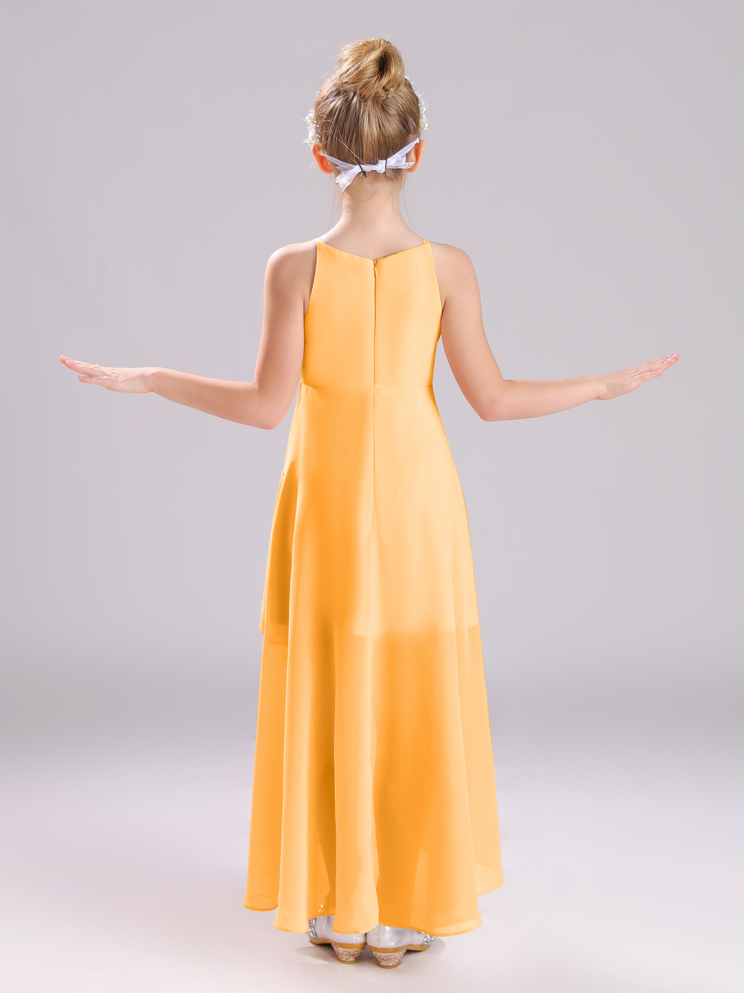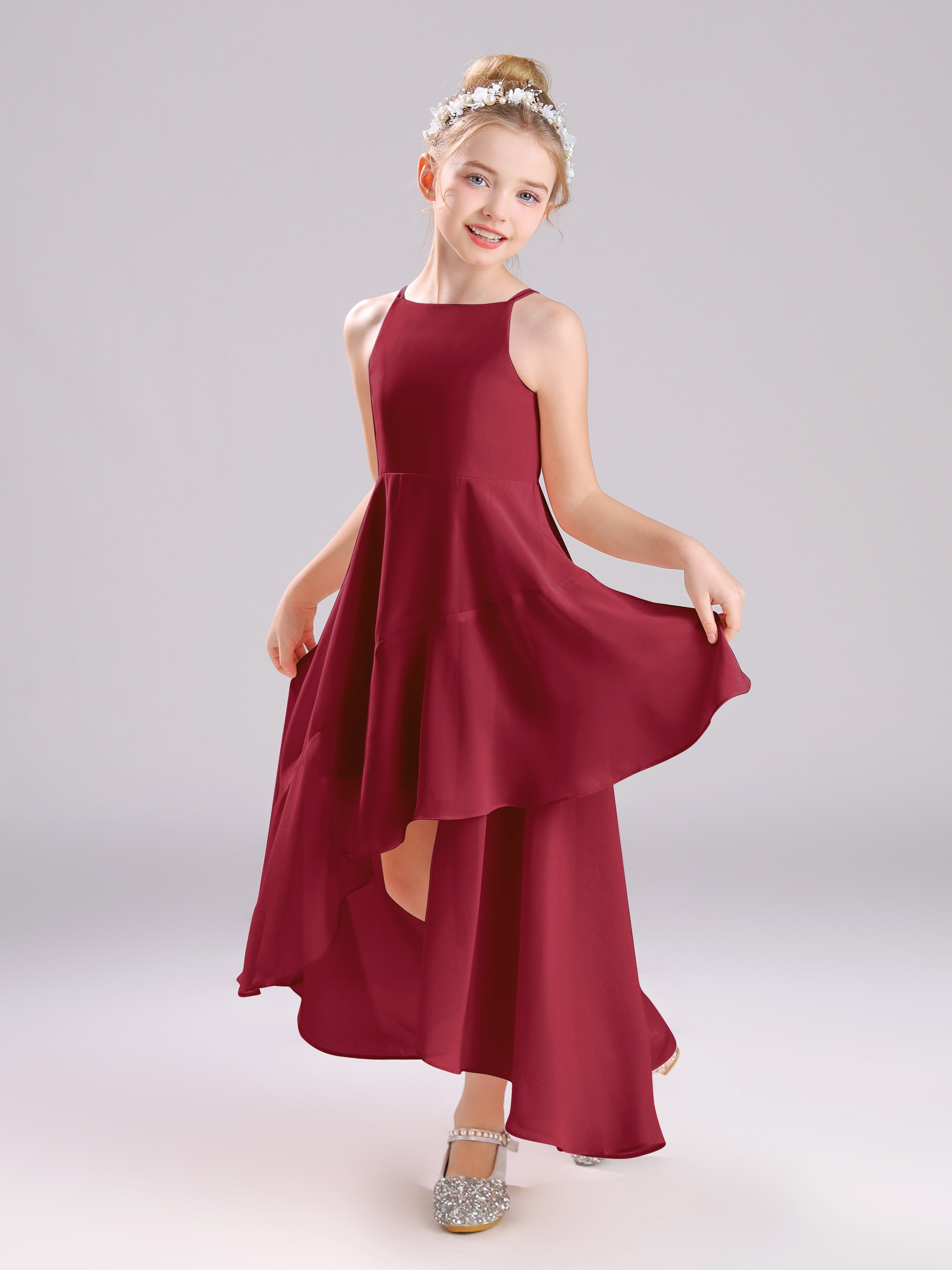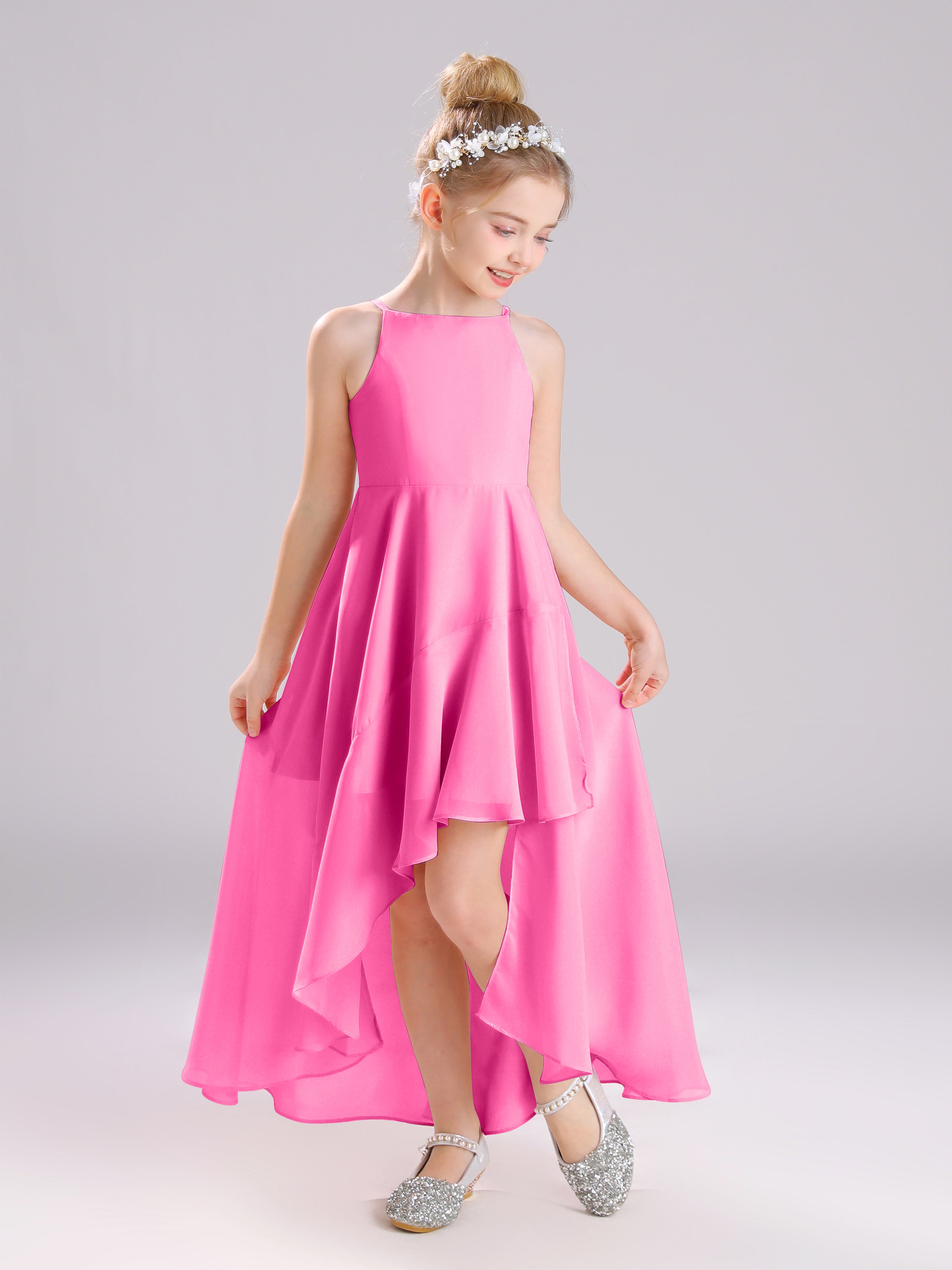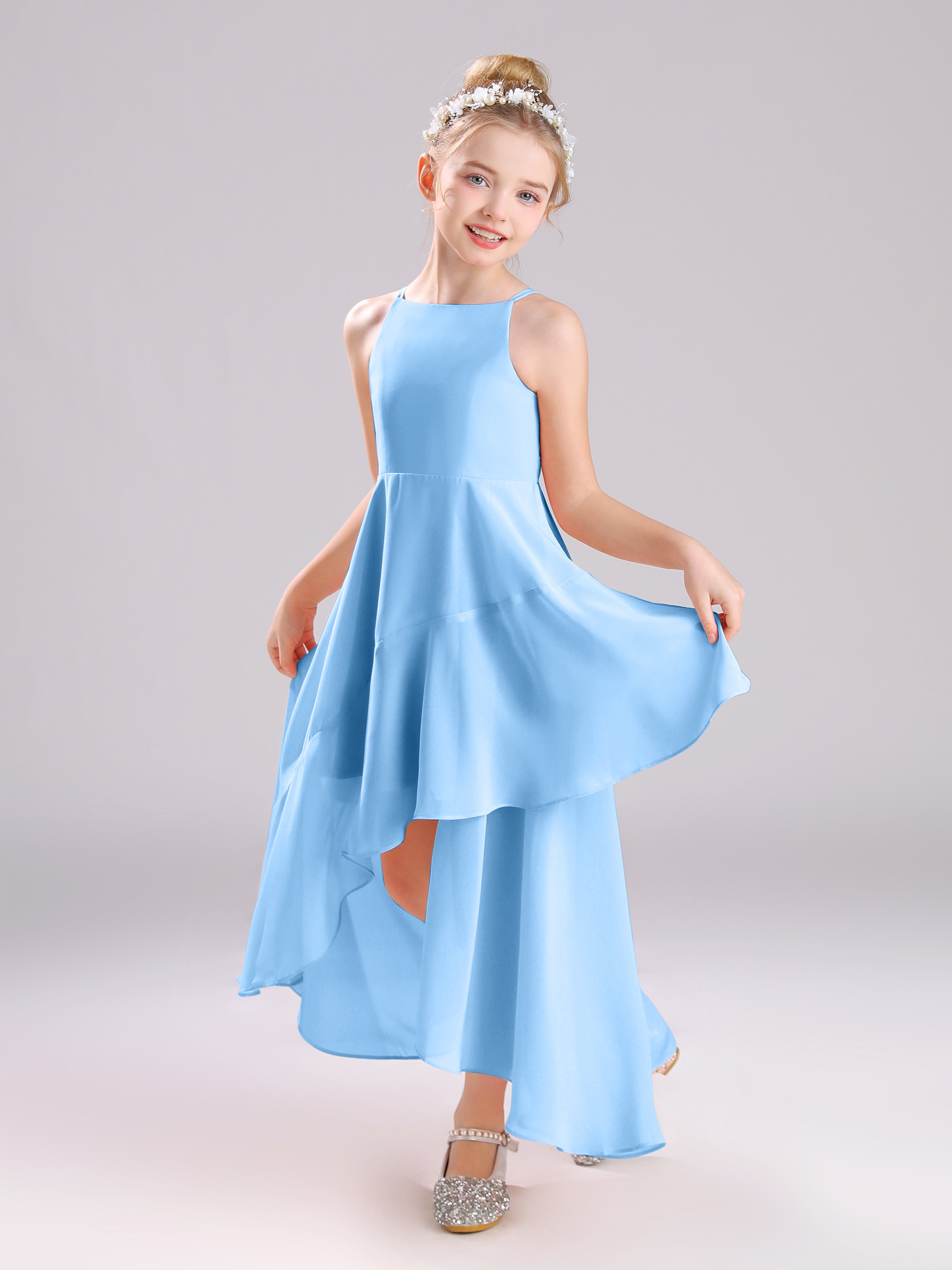 High-Low Ruffles Sleeveless Chiffon Junior Bridesmaid Dresses