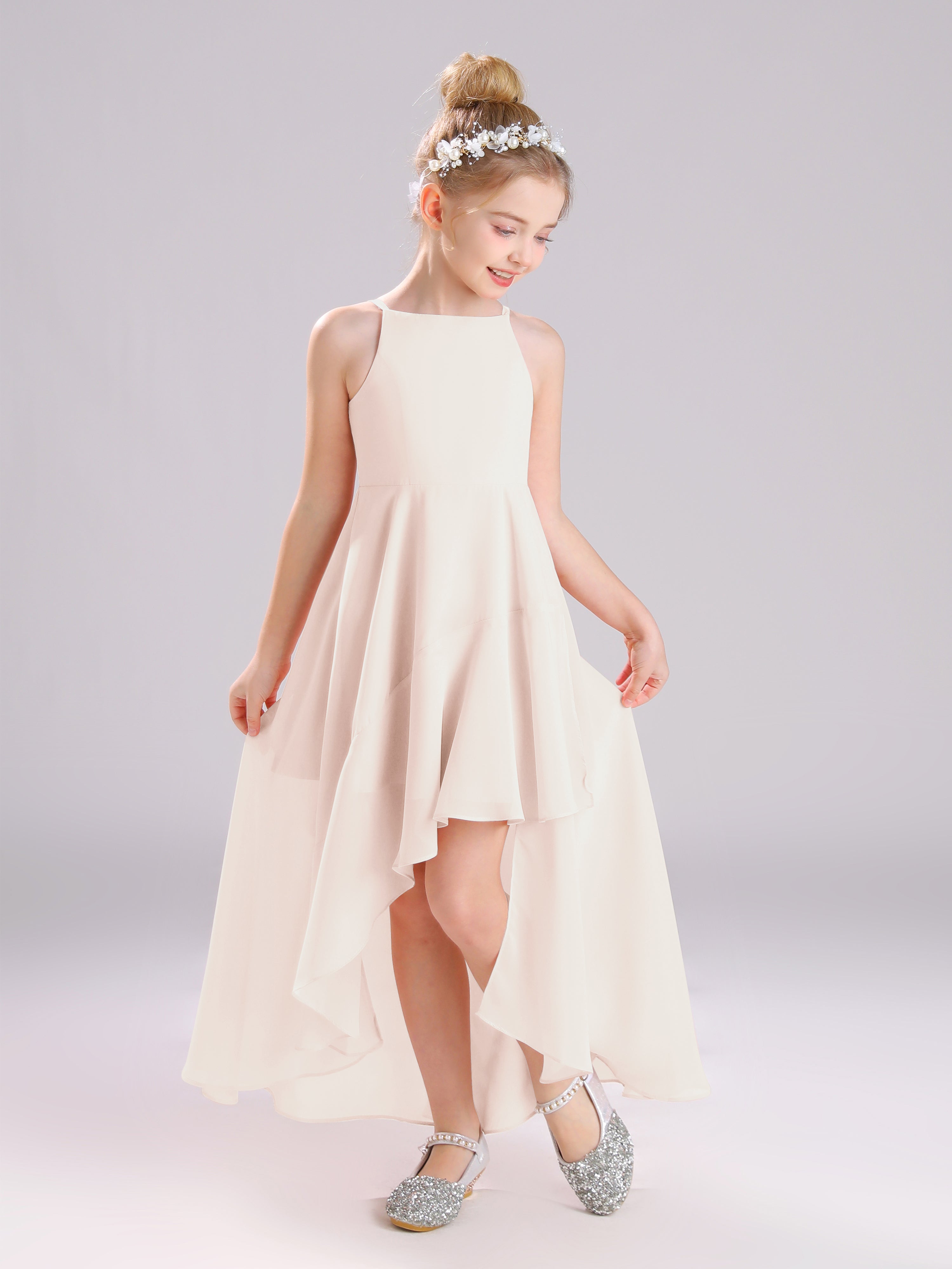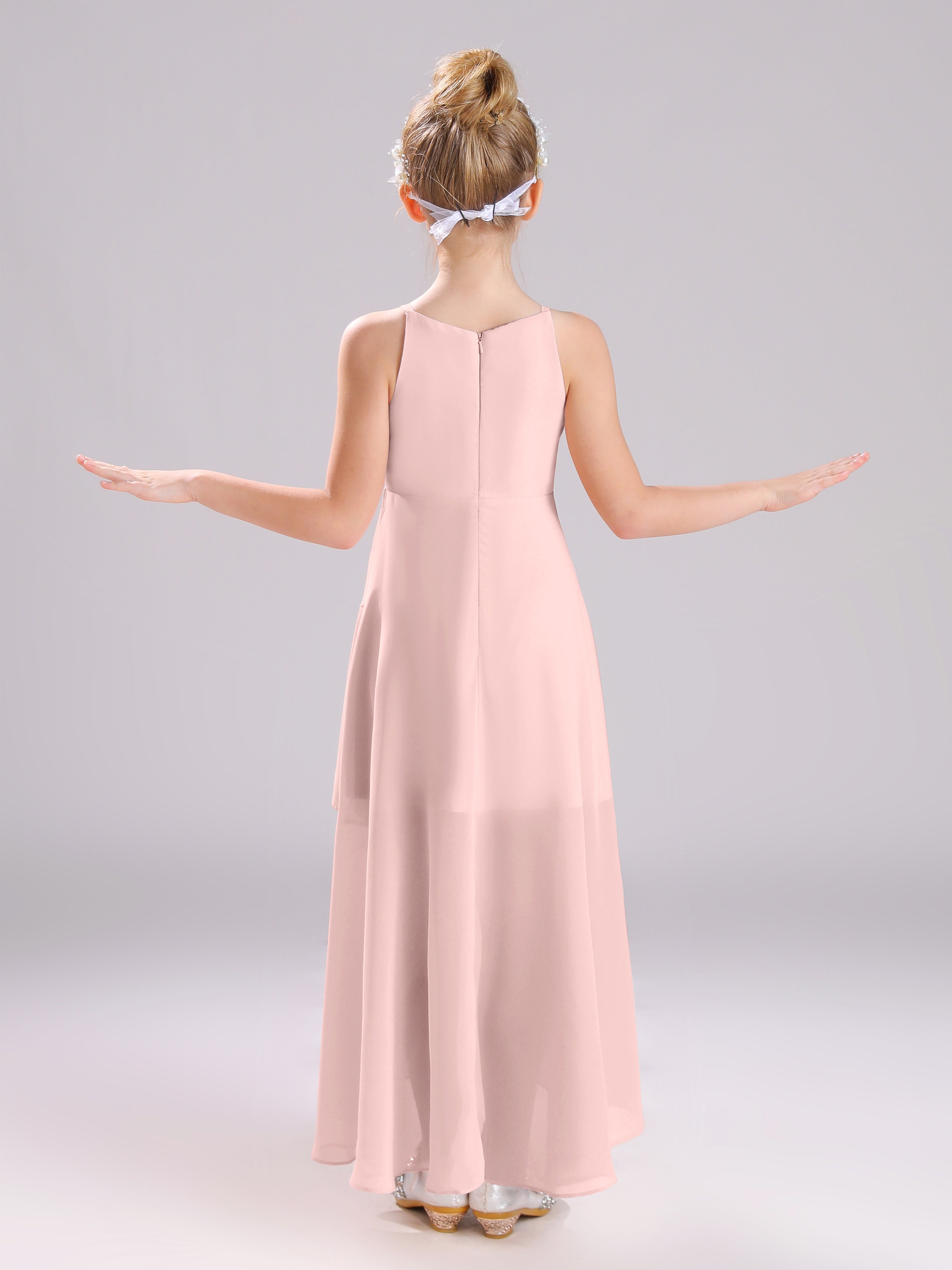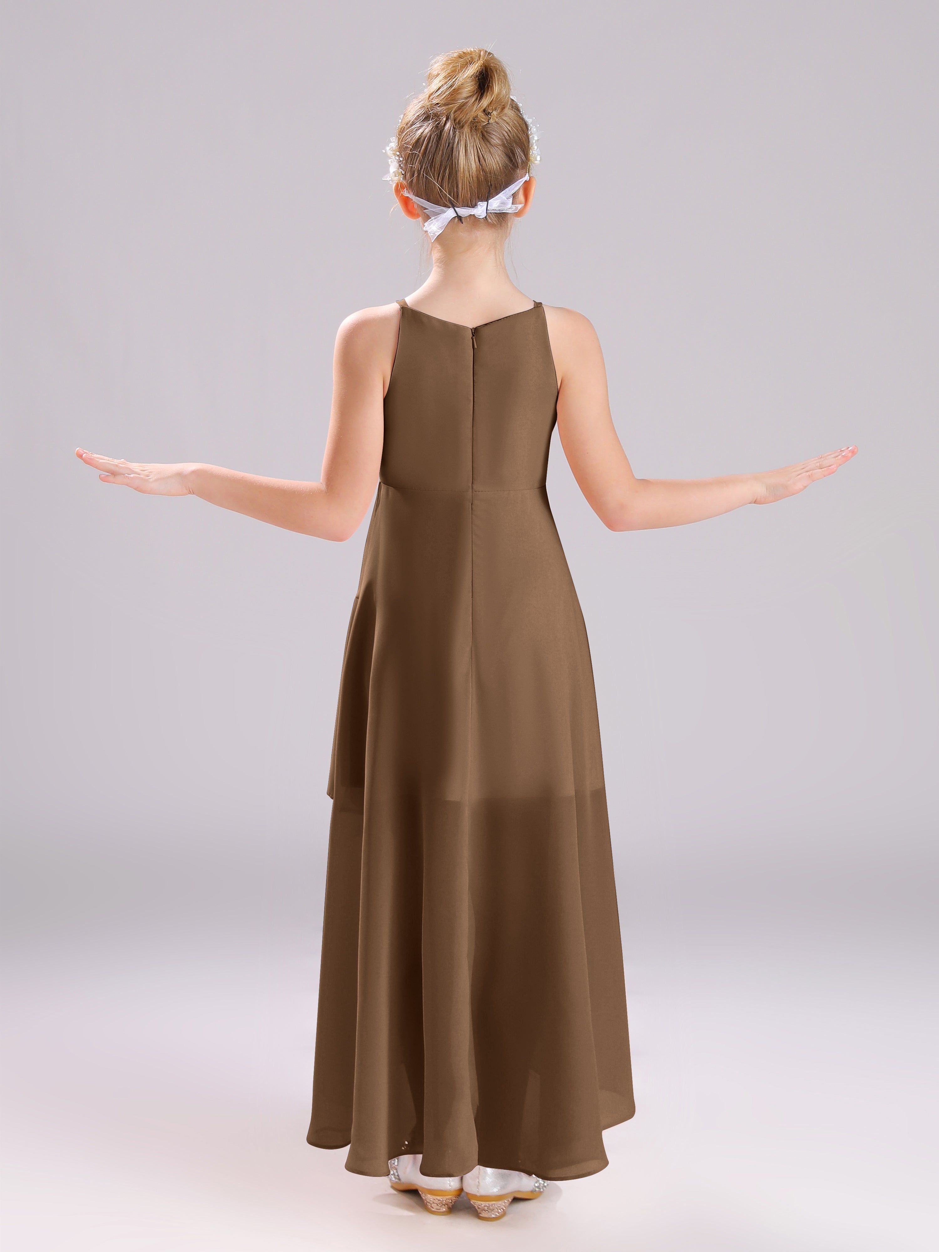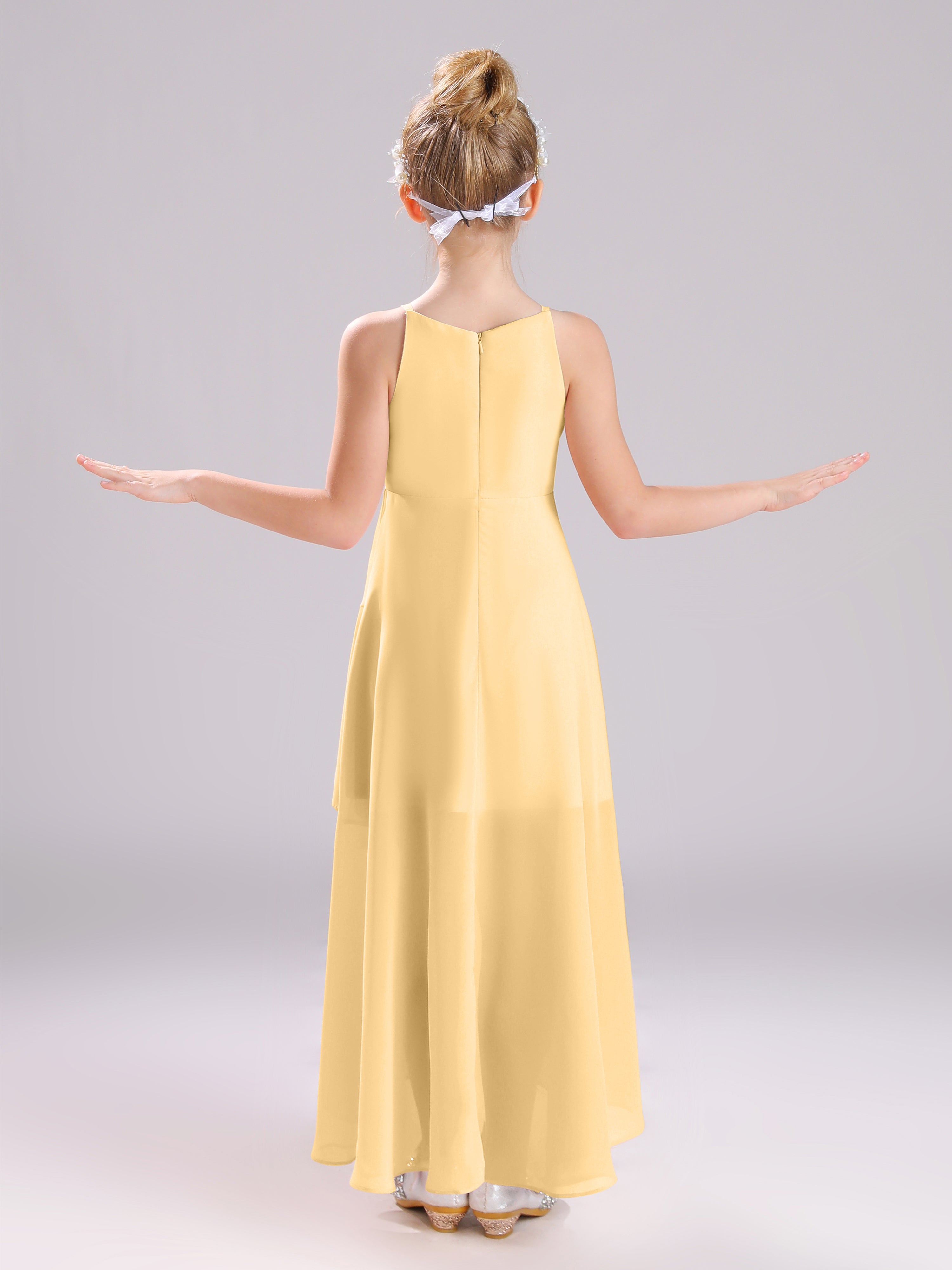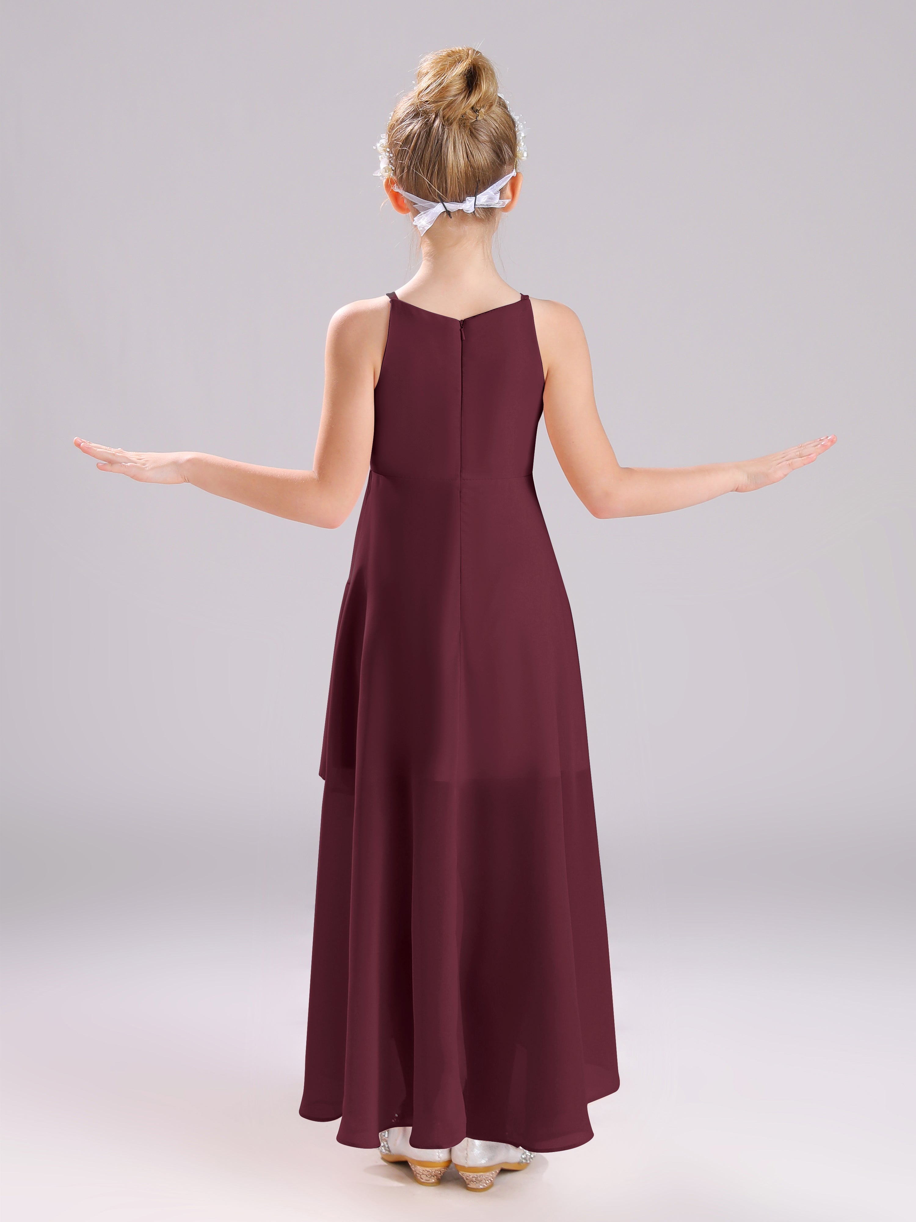High-Low Ruffles Sleeveless Chiffon Junior Bridesmaid Dresses