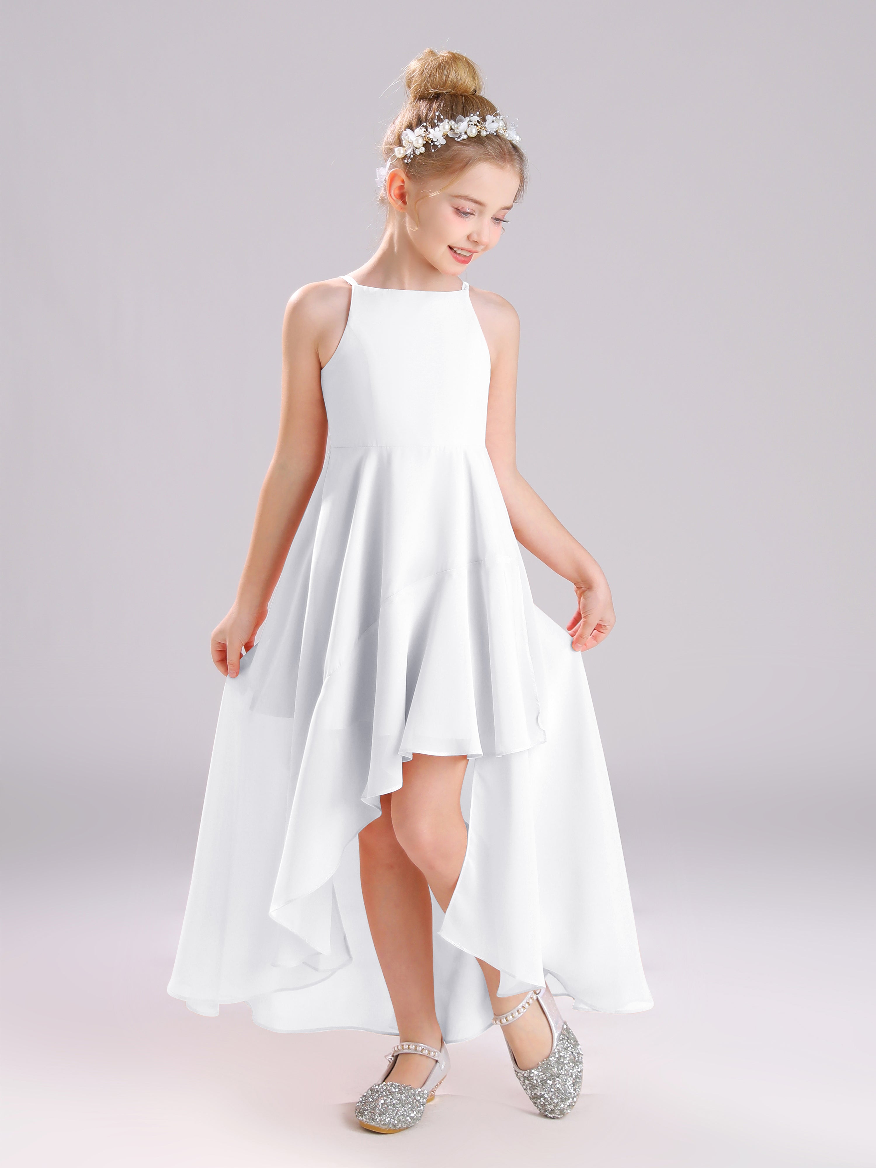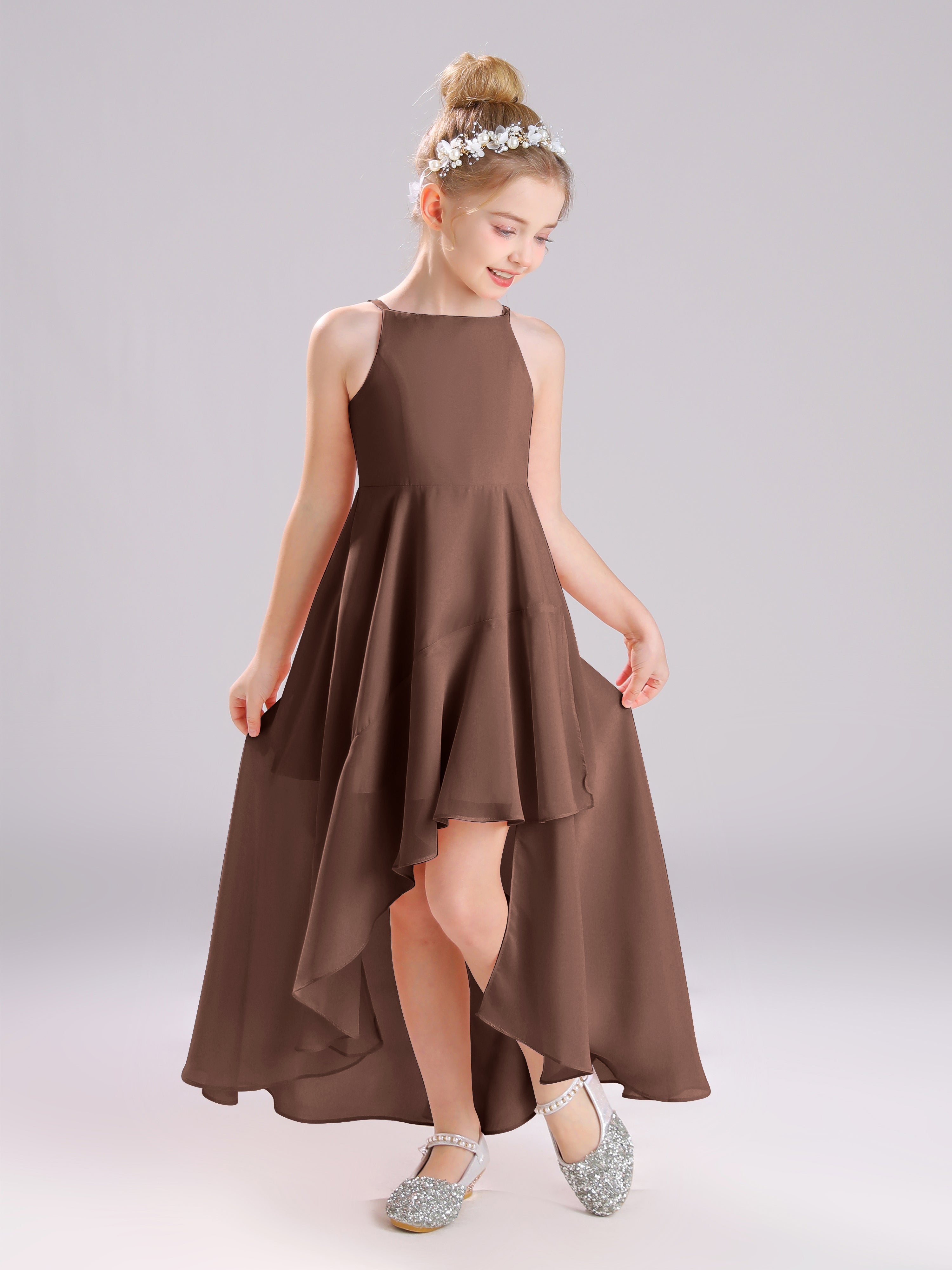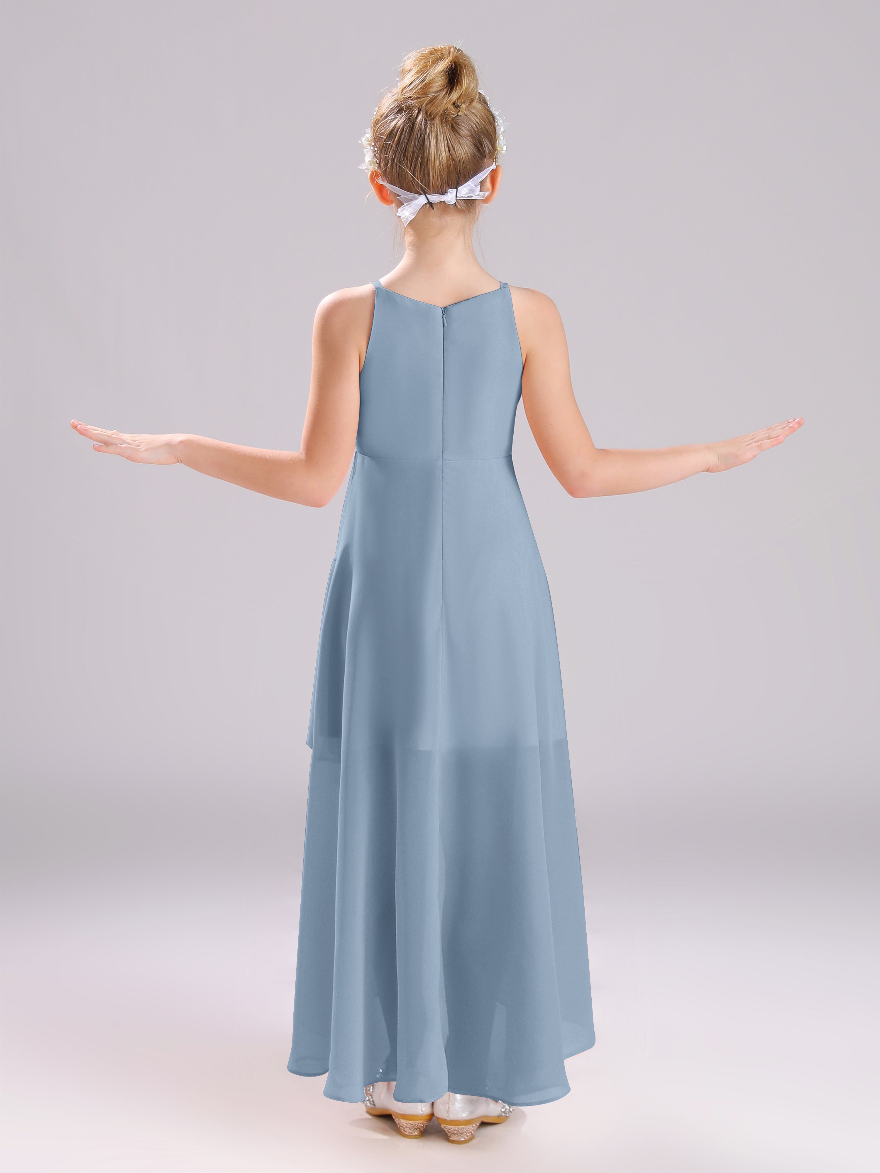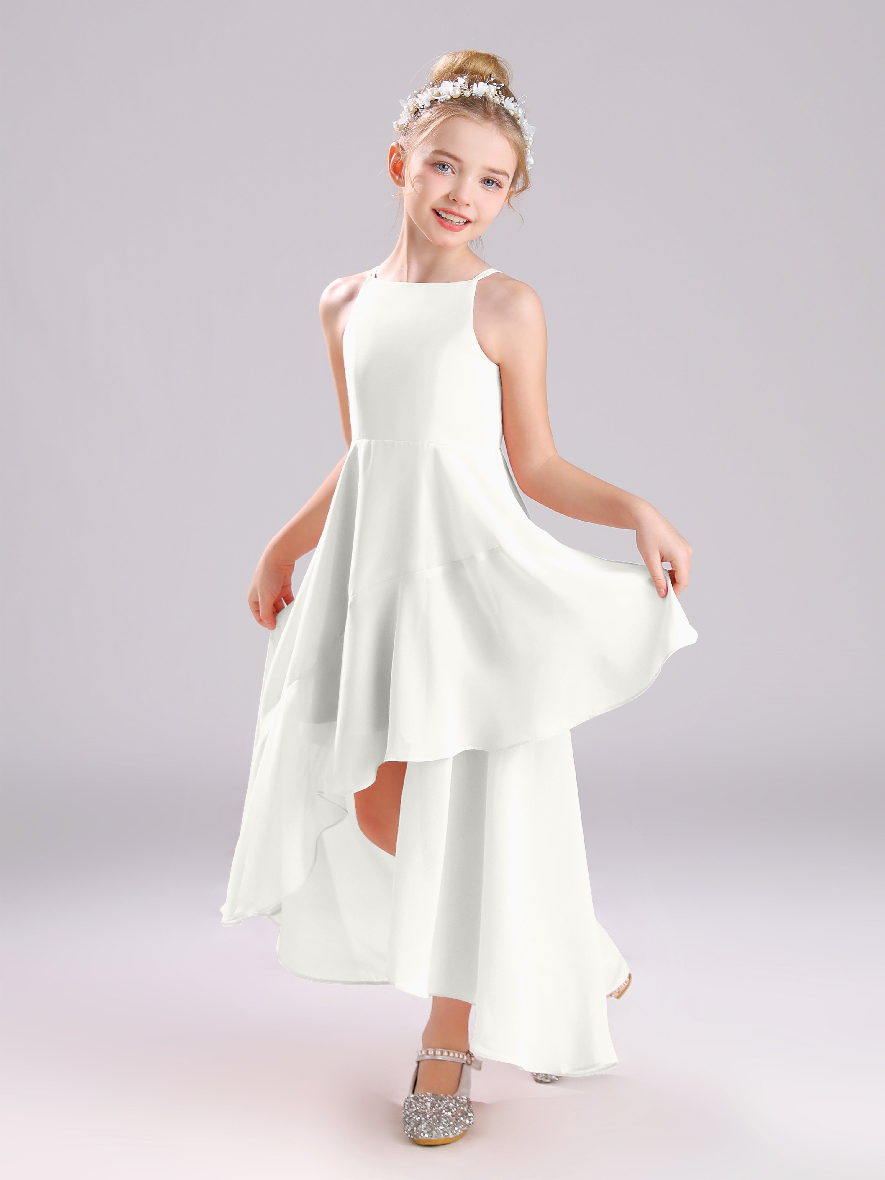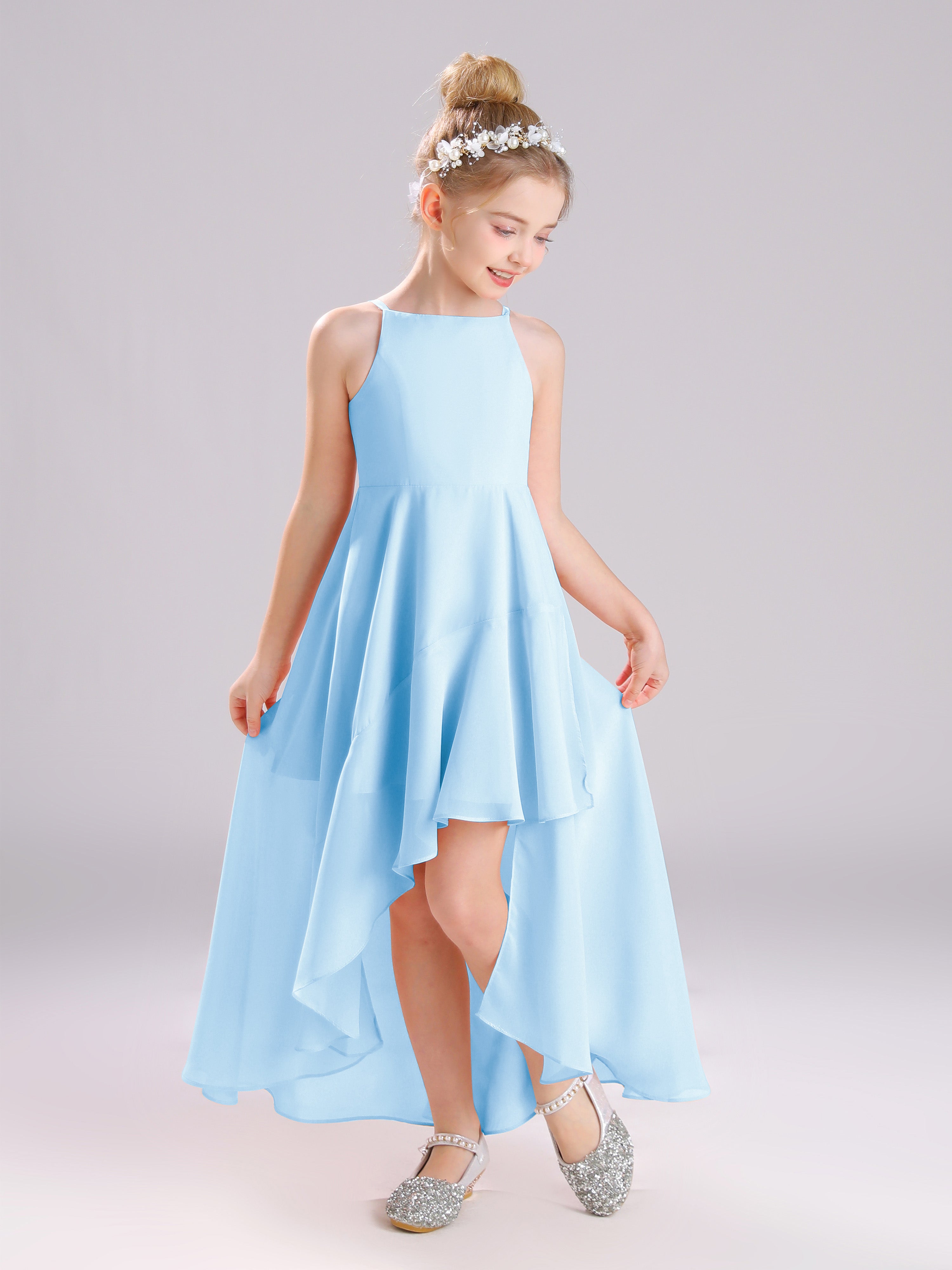 High-Low Ruffles Sleeveless Chiffon Junior Bridesmaid Dresses