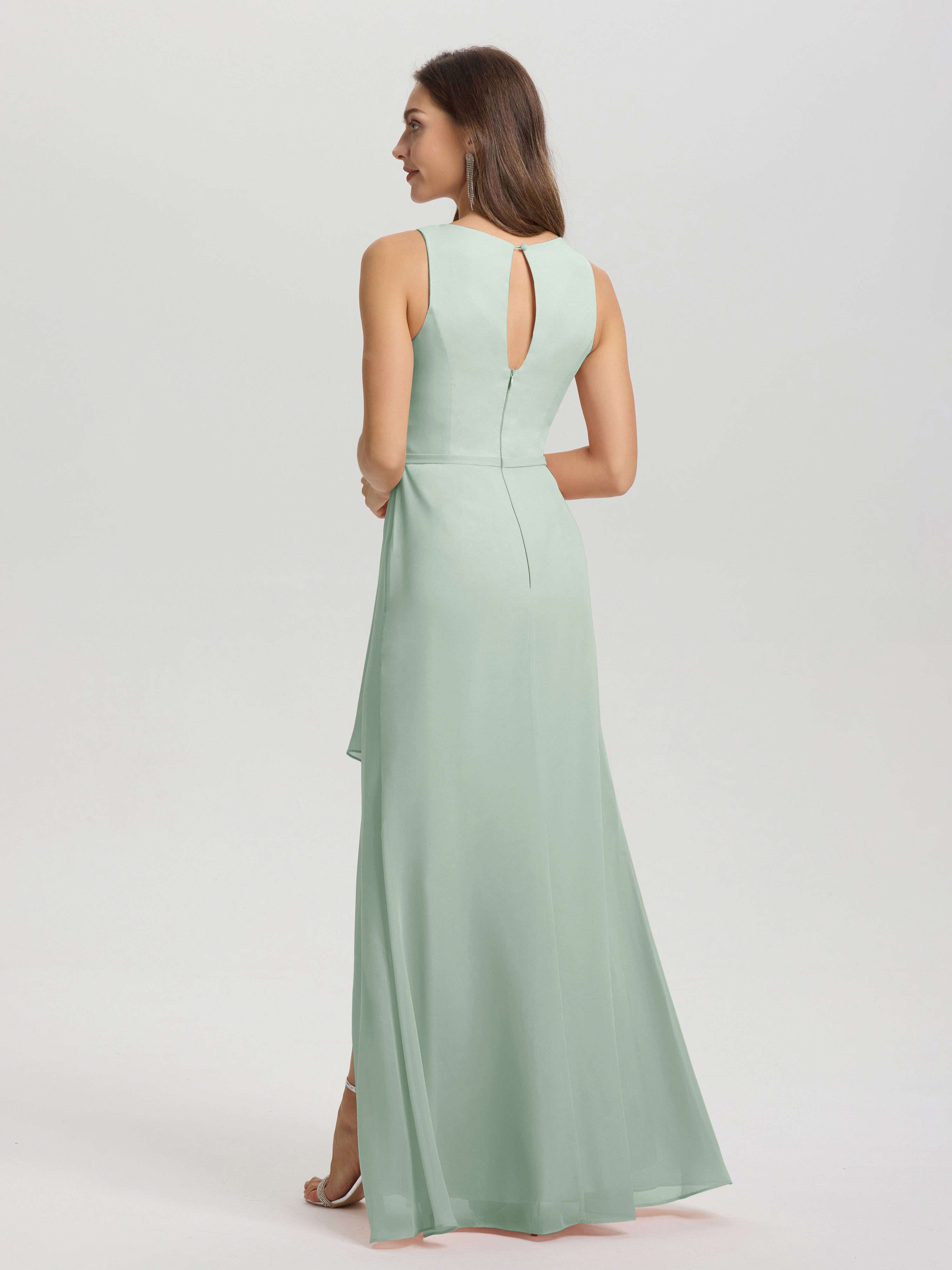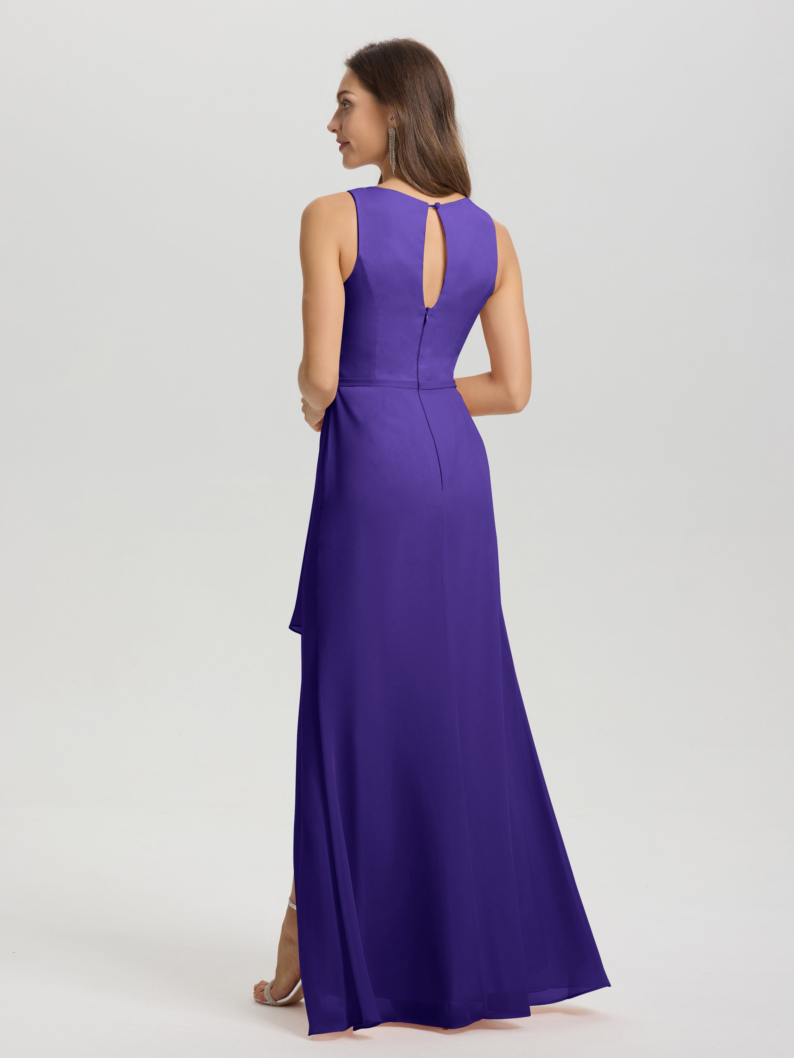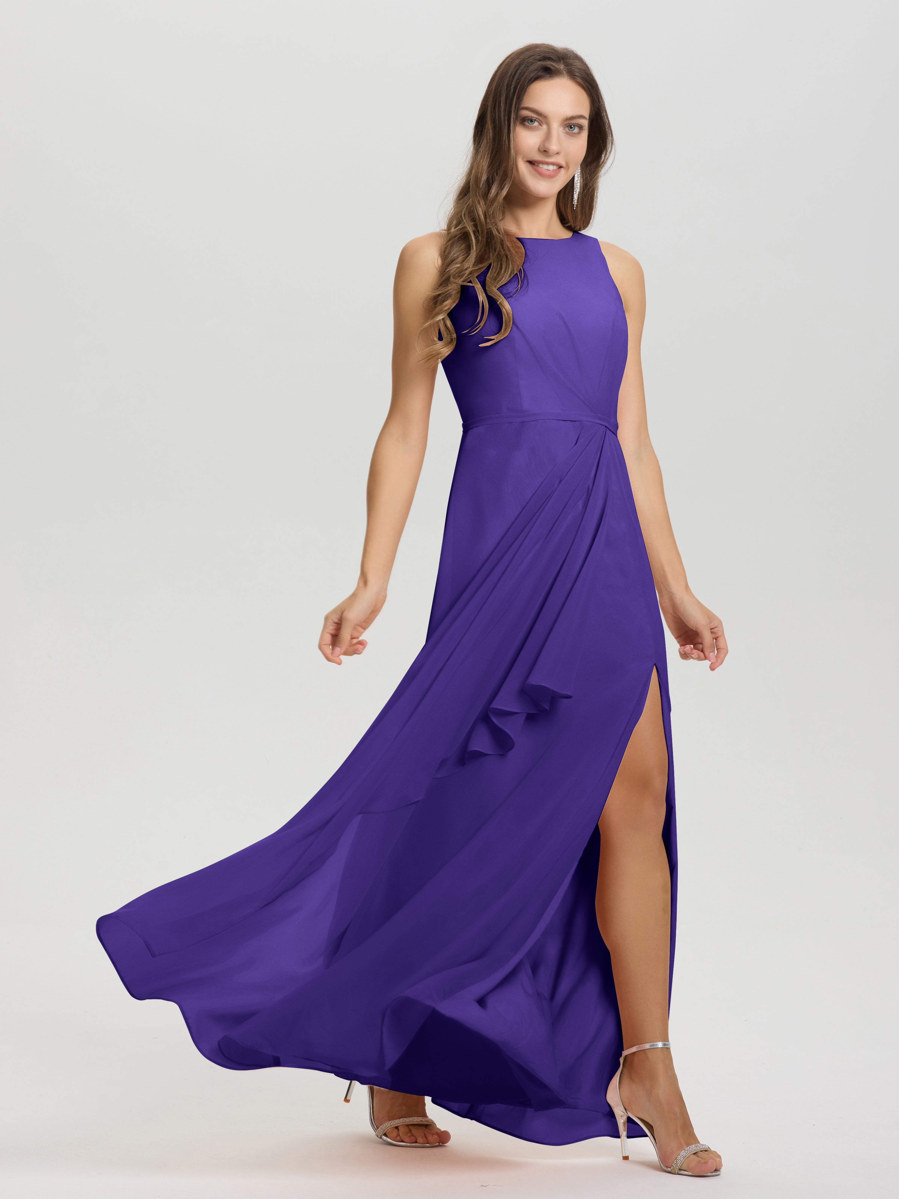 Jewel Sleeveless Ruched Floor Length Split Chiffon Bridesmaid Dresses
