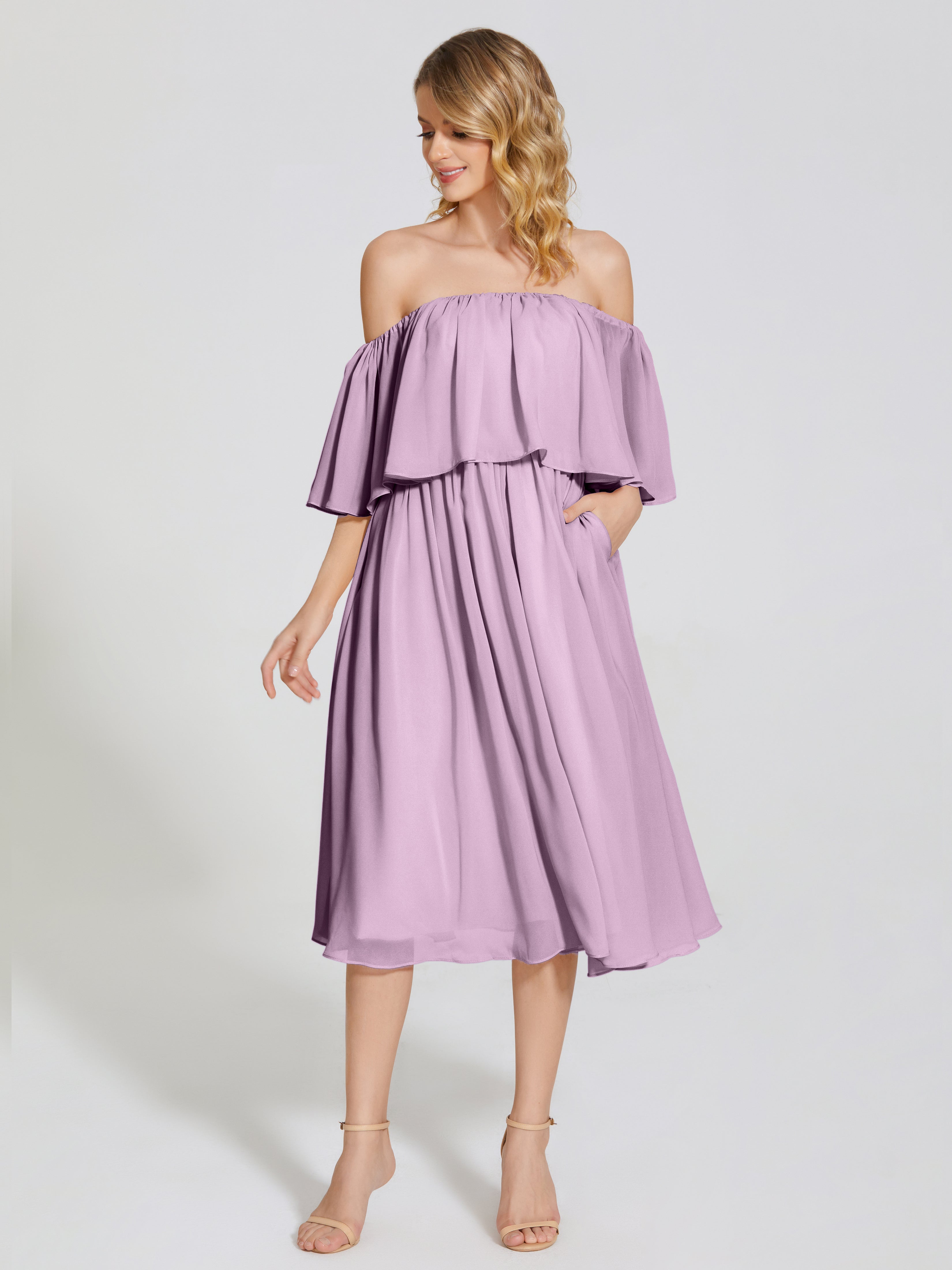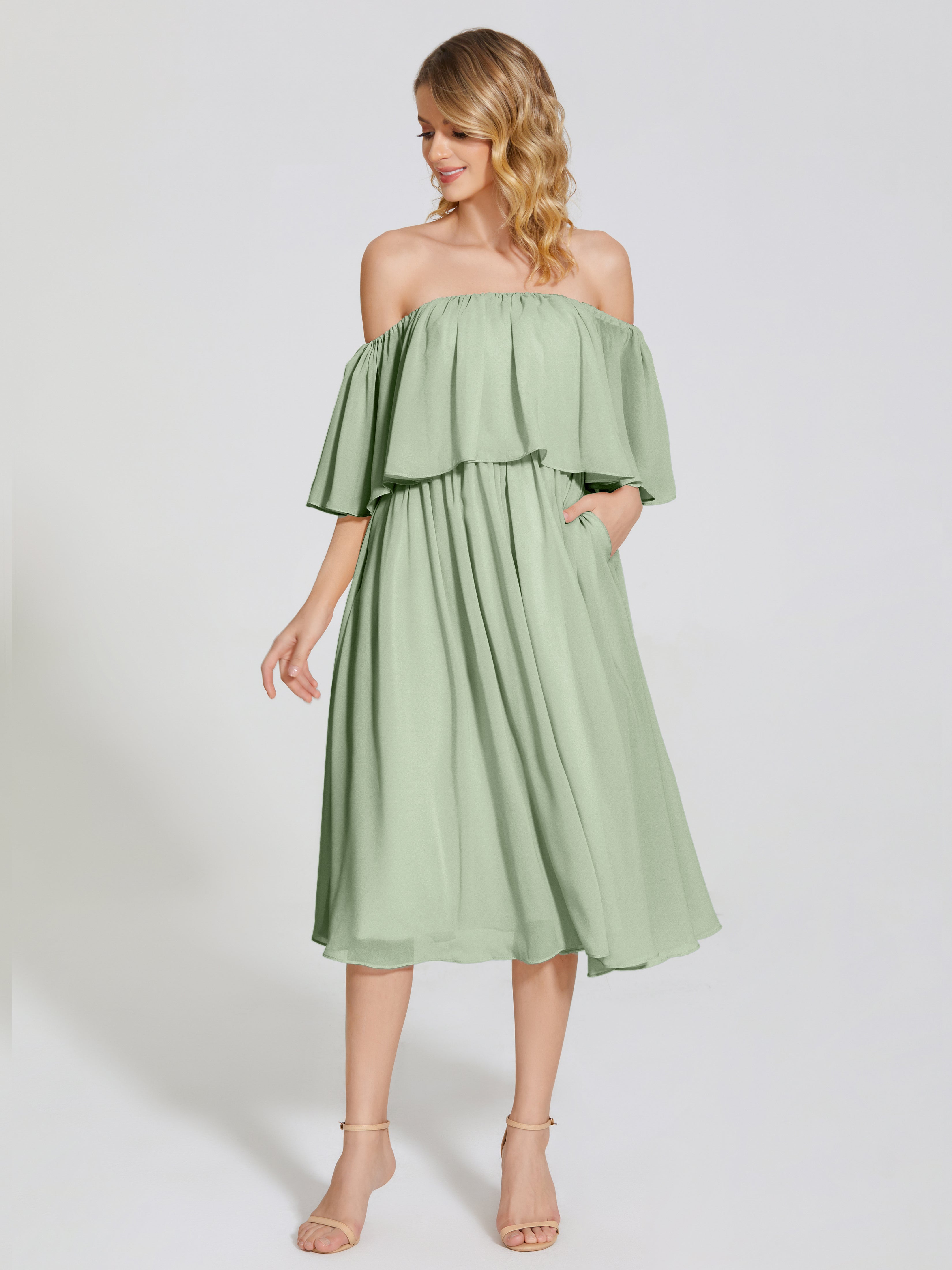 Journee Casual Tea Length Chiffon Bridesmaid Dresses