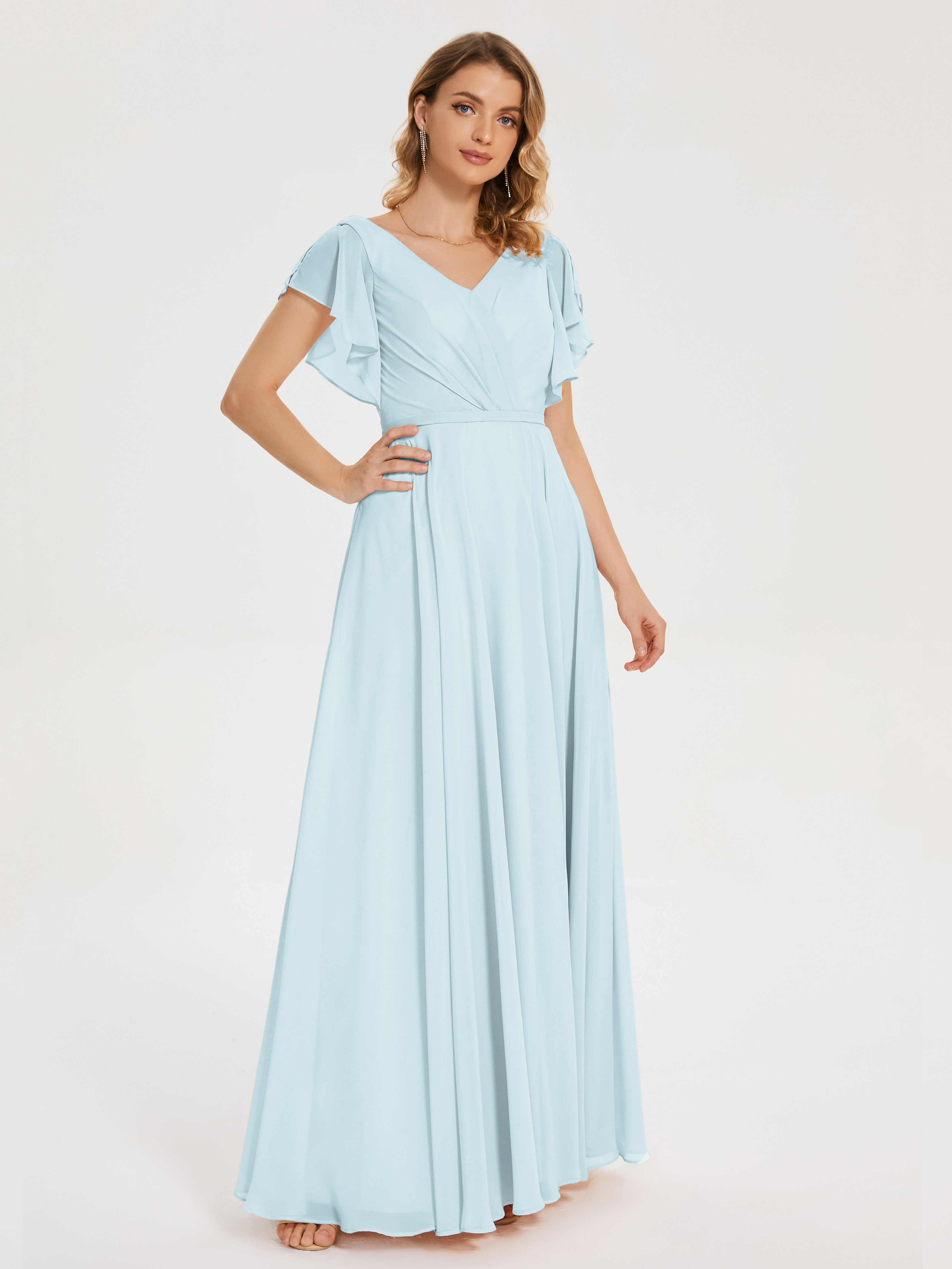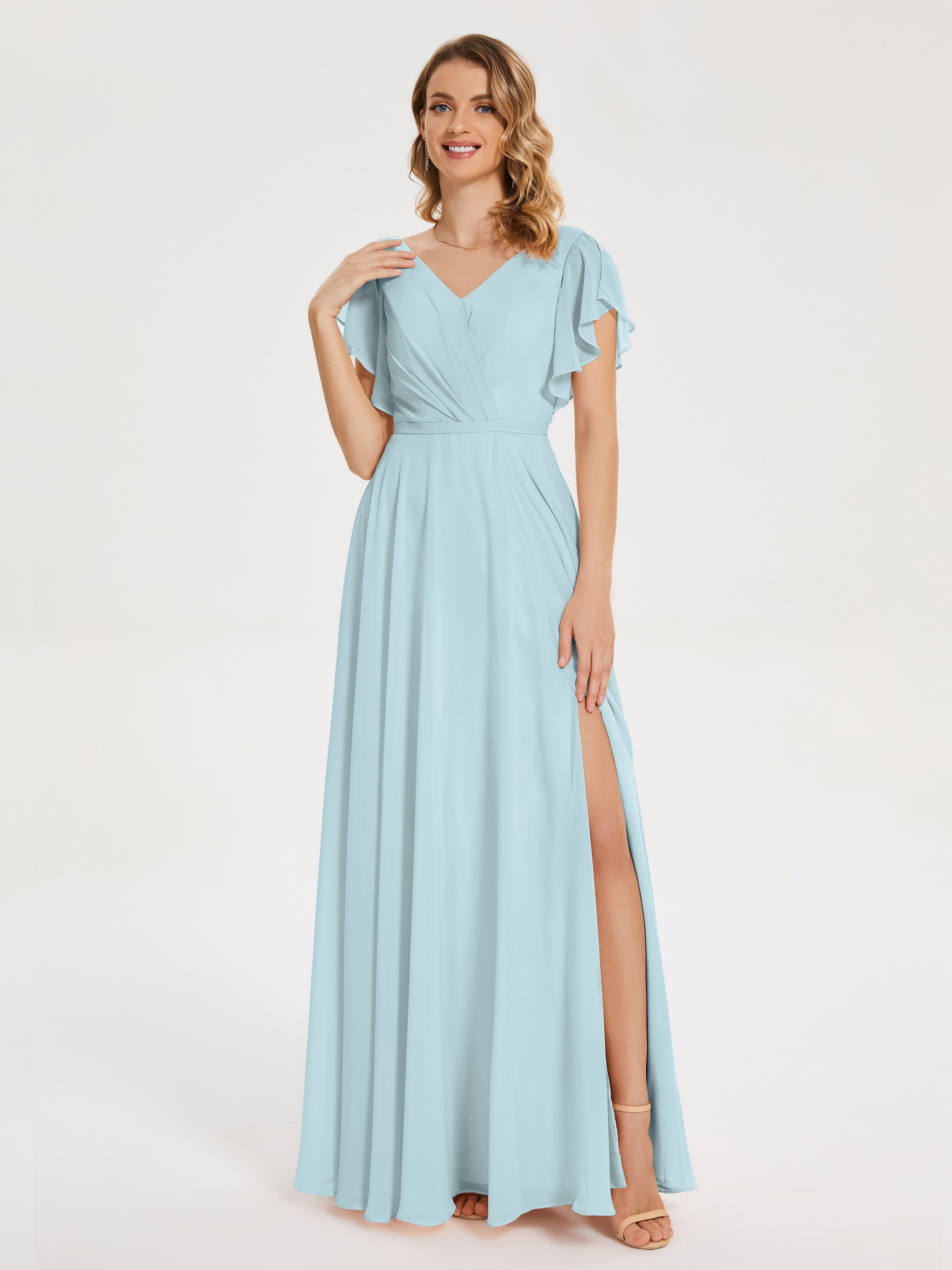 Mist Bridesmaid Dresses Kate Charming V Neck Split Chiffon Bridesmaid Dresses