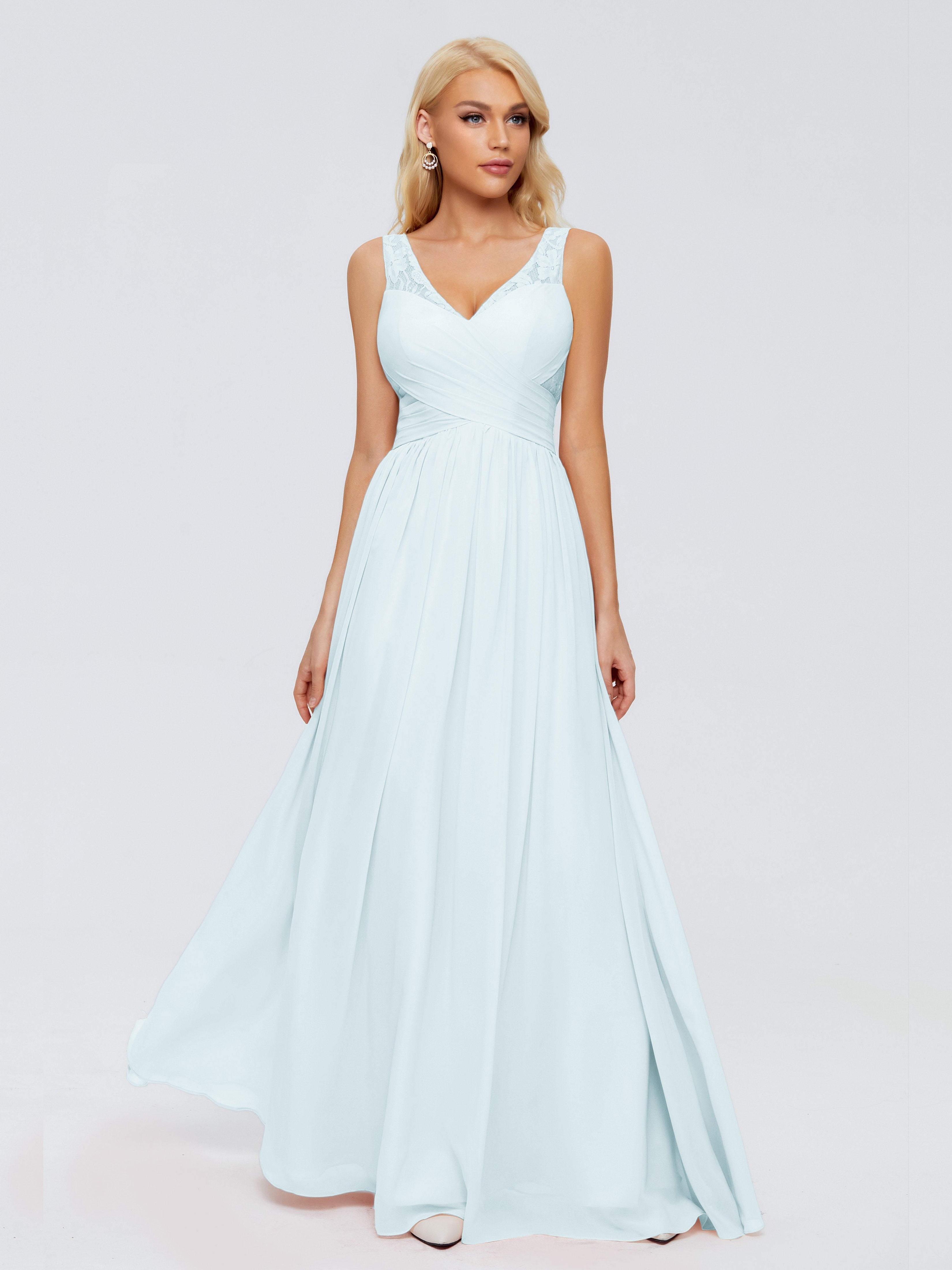 Mist Bridesmaids Kayla Straps Lace Chiffon Bridesmaid Dresses V Neck Long Bridesmaid Dresses