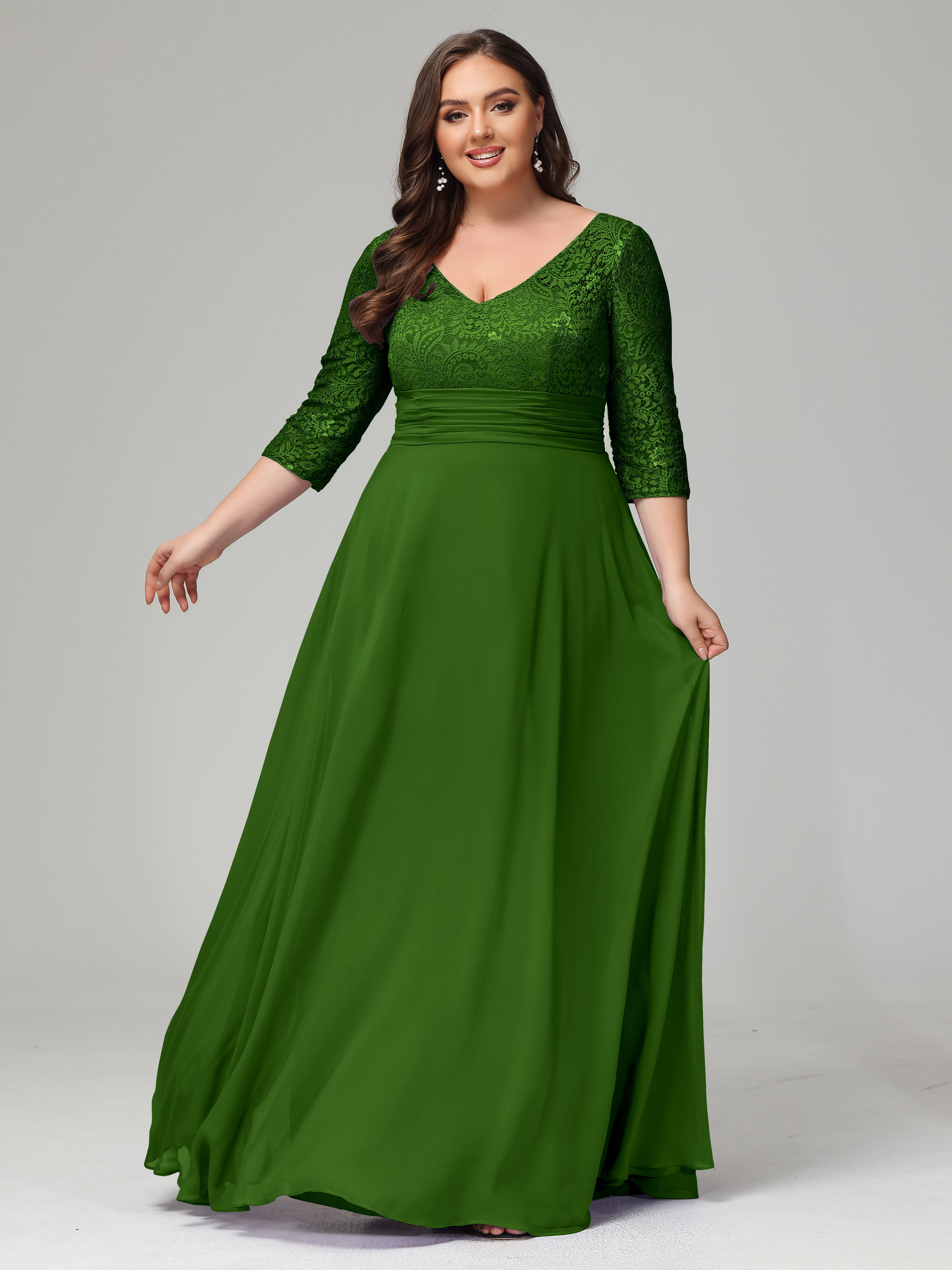 Moss Bridesmaid Dress UK Lace Sleeves Floor Length