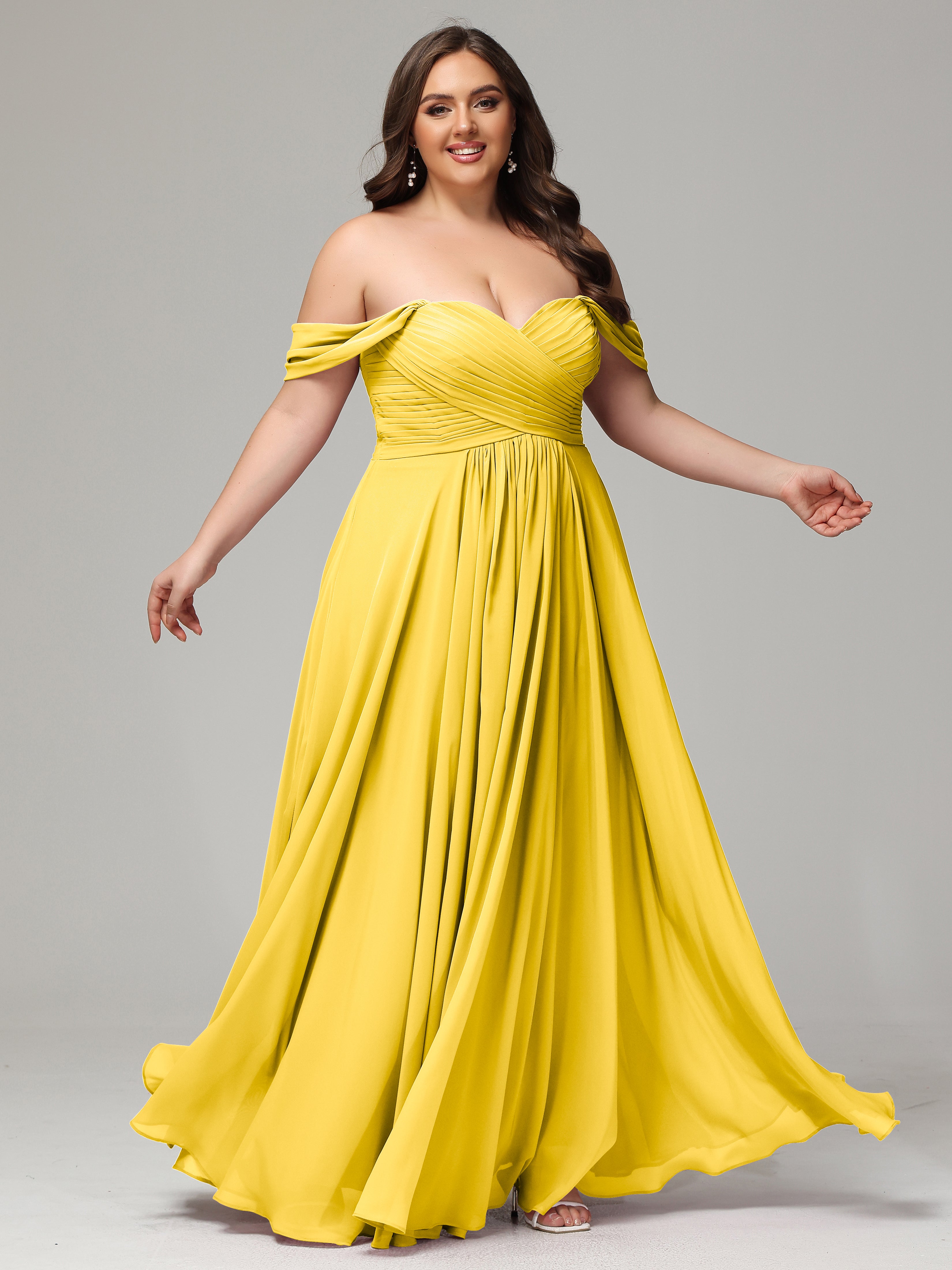 Off The Shoulder Backless Long Chiffon Plus Size Bridesmaid Dresses