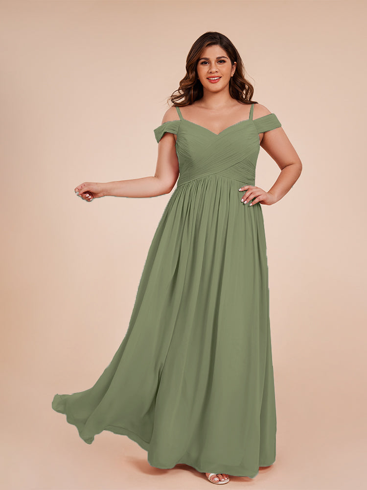 Off the Shoulder Pleats Chiffon Plus Size Bridesmaid Dresses