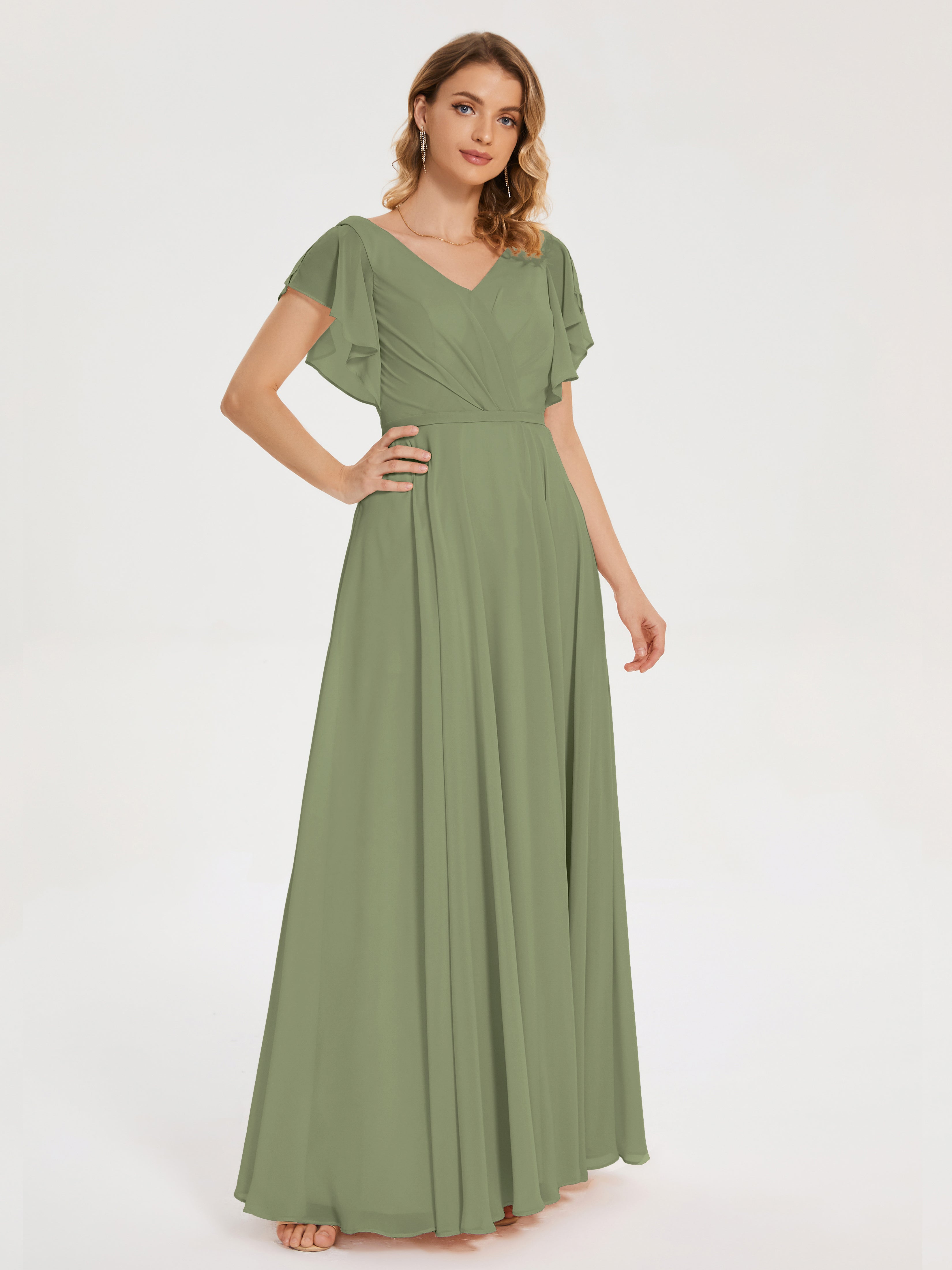 Olive Green Bridesmaids Dresses Kate Charming V Neck Split Chiffon Bridesmaid Dresses