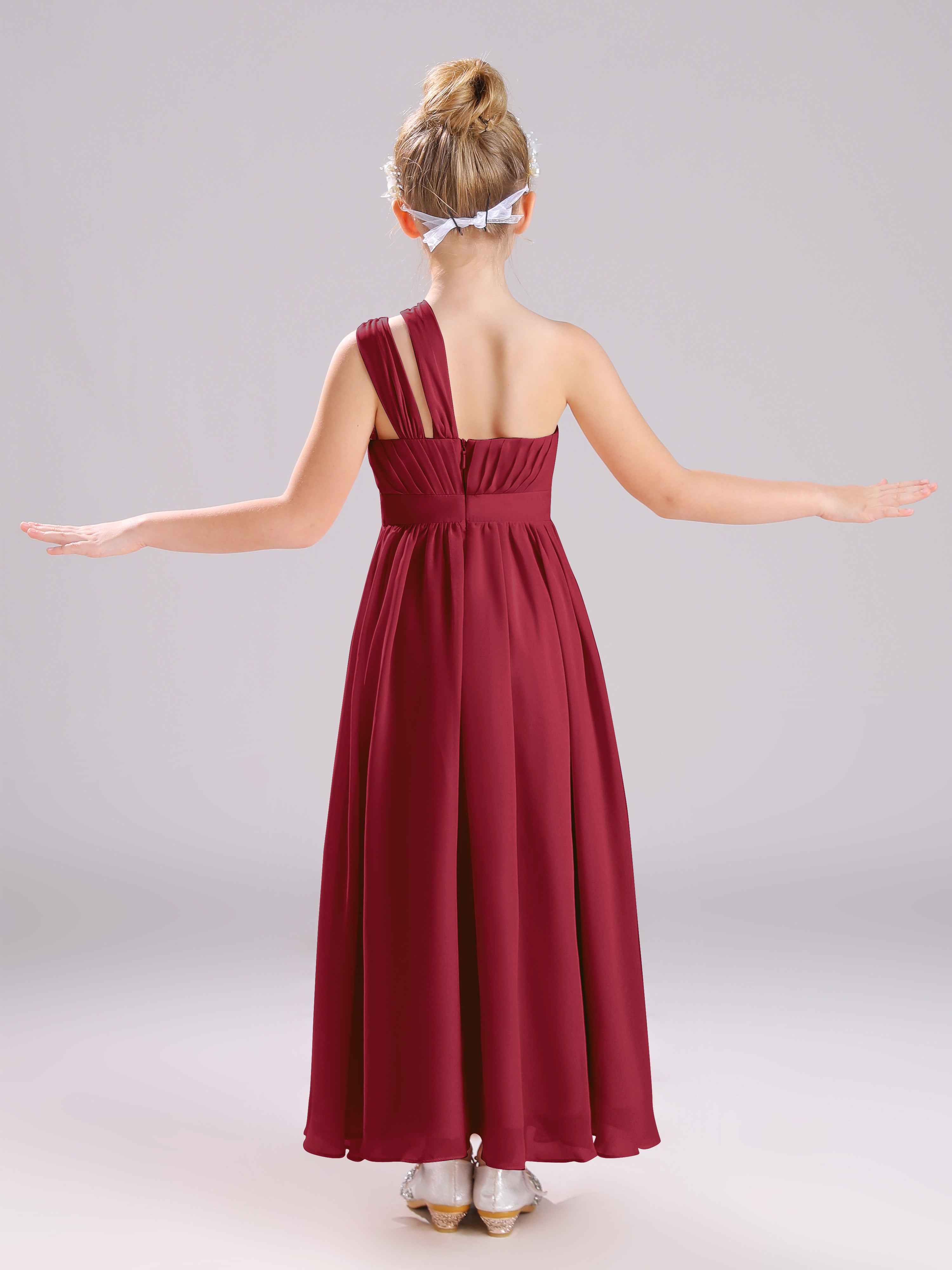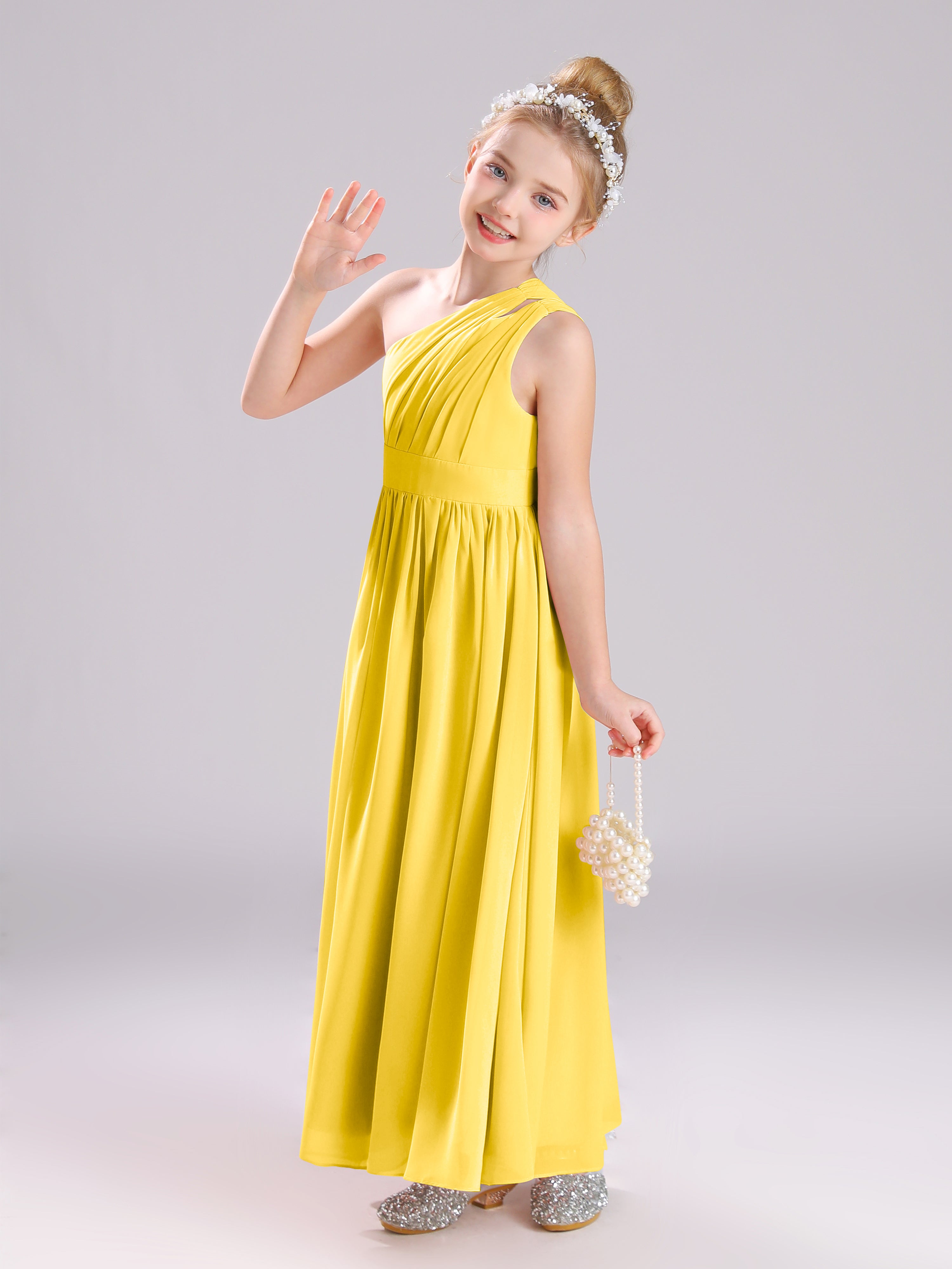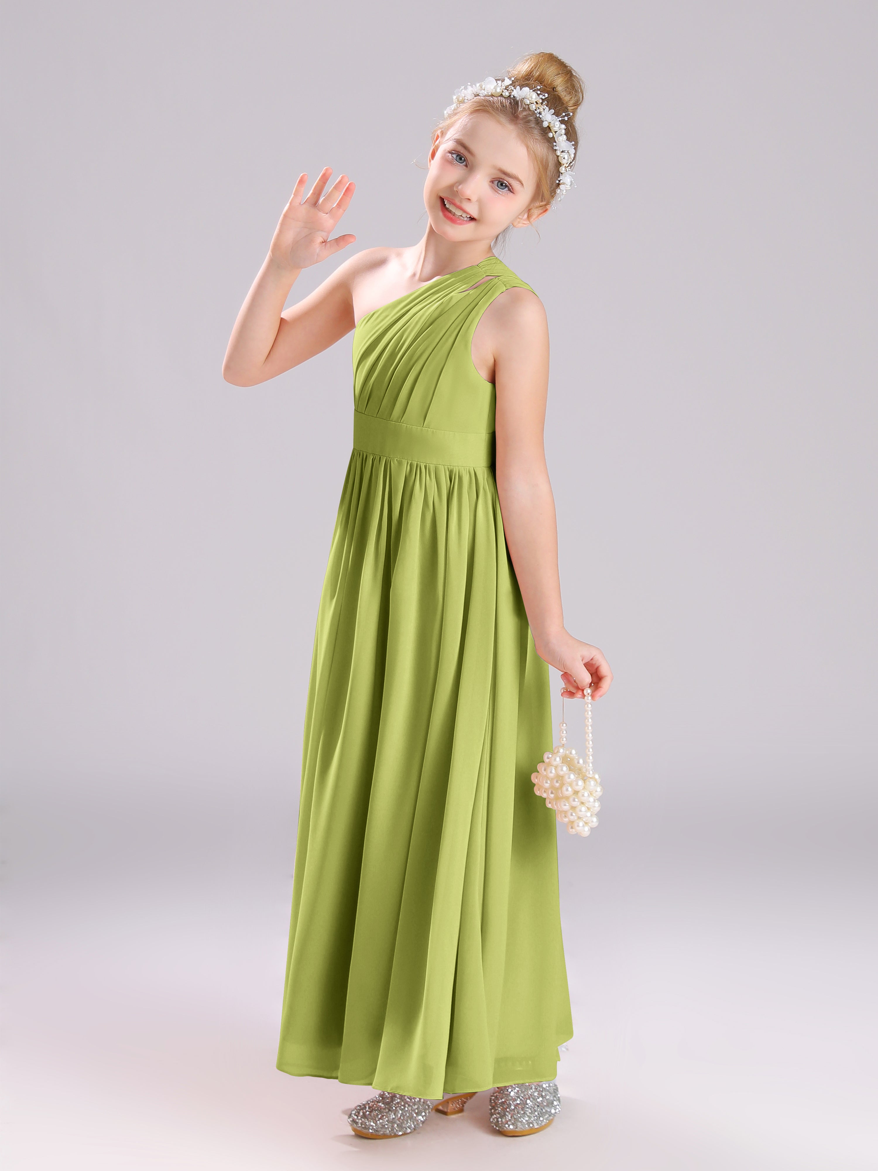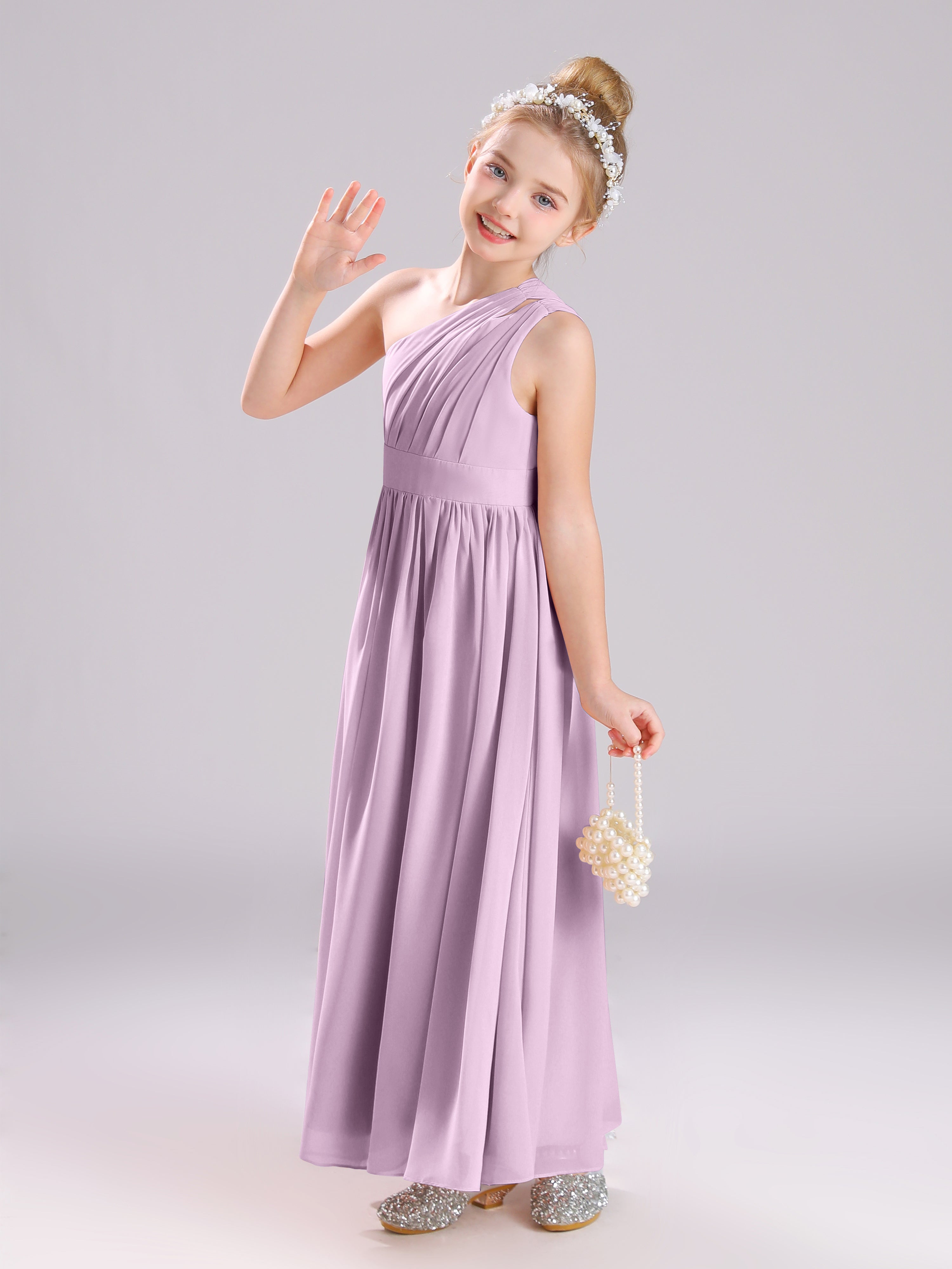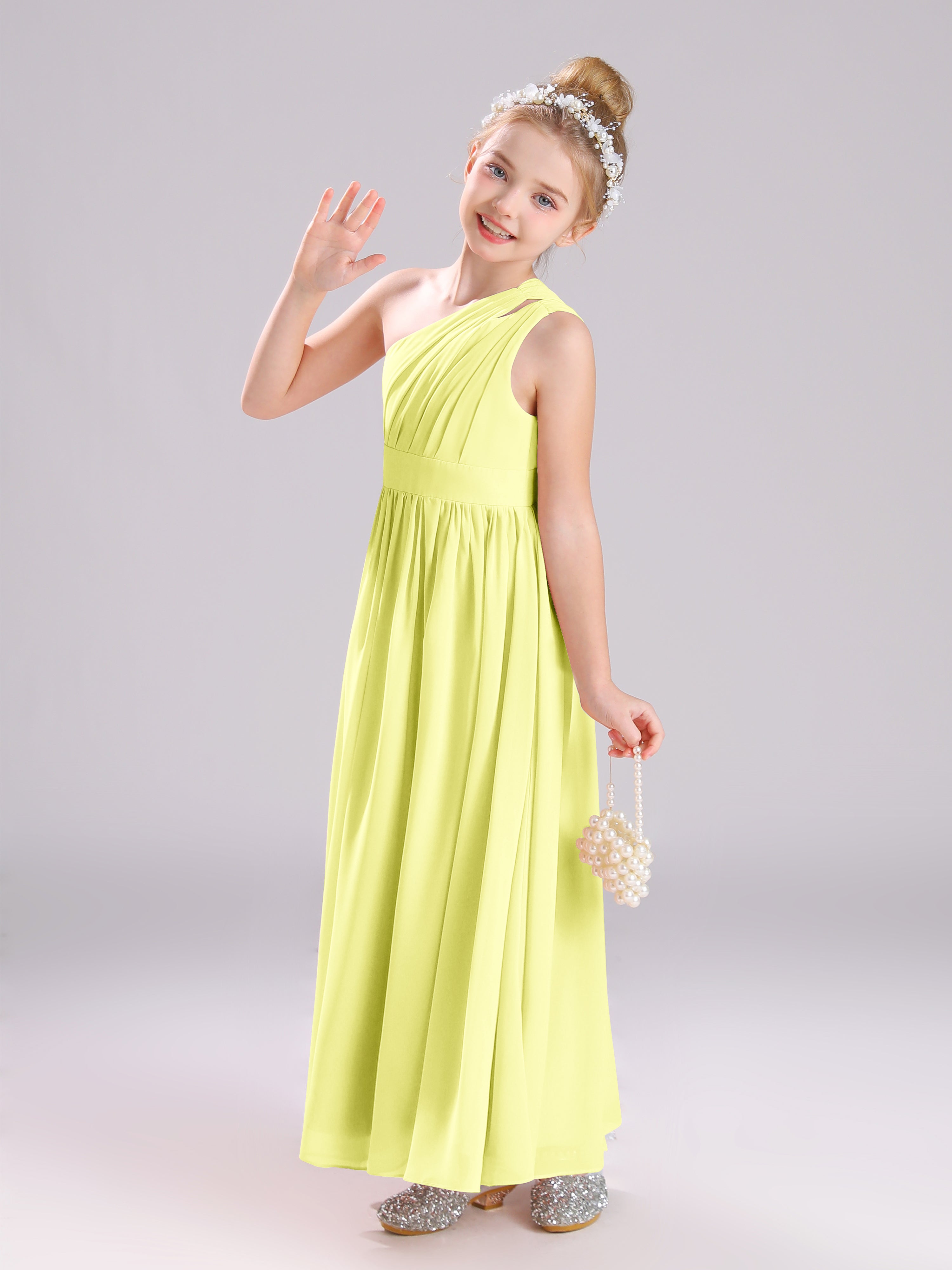 One Shoulder Pleats Long Chiffon Junior Bridesmaid Dresses