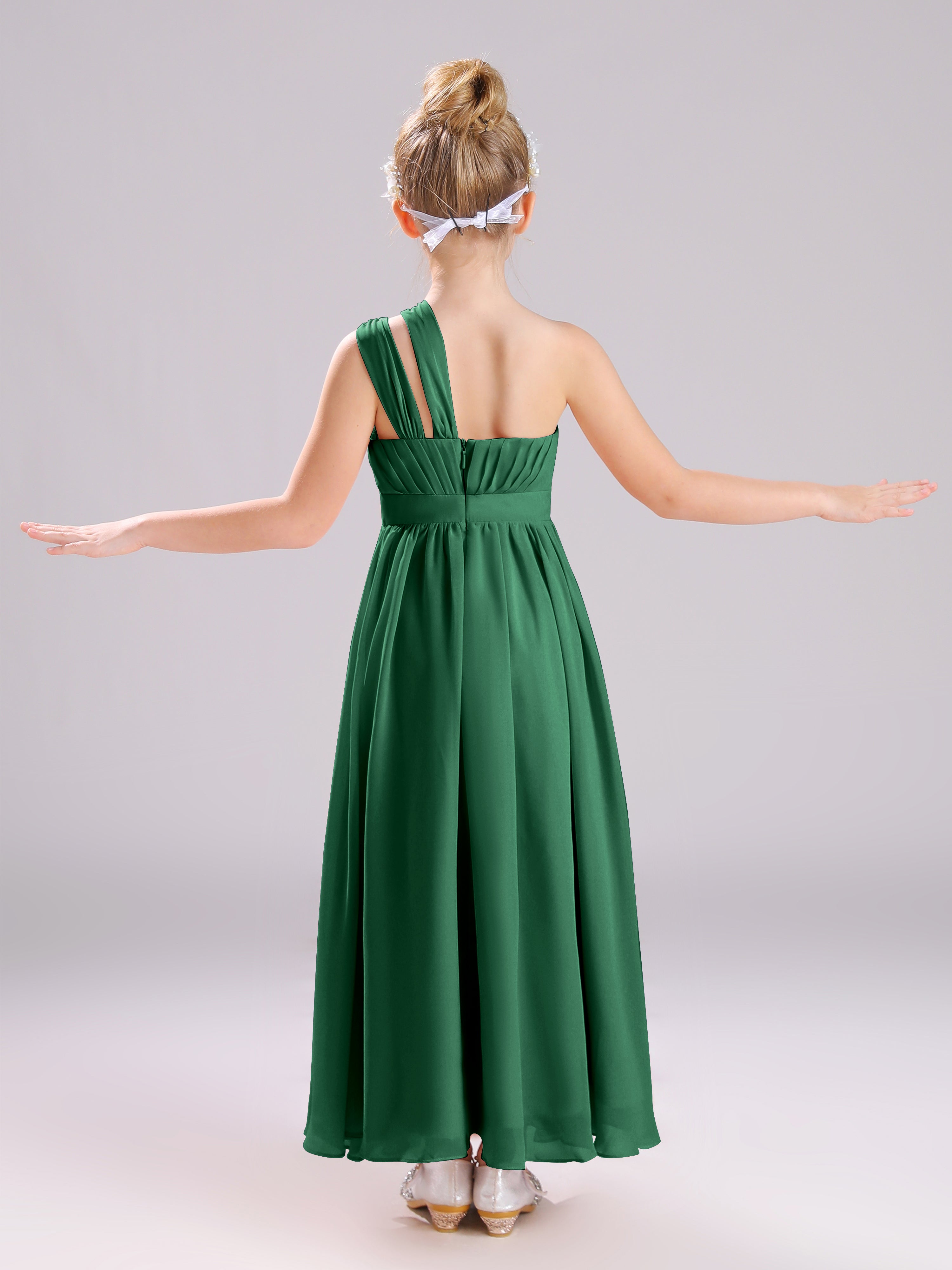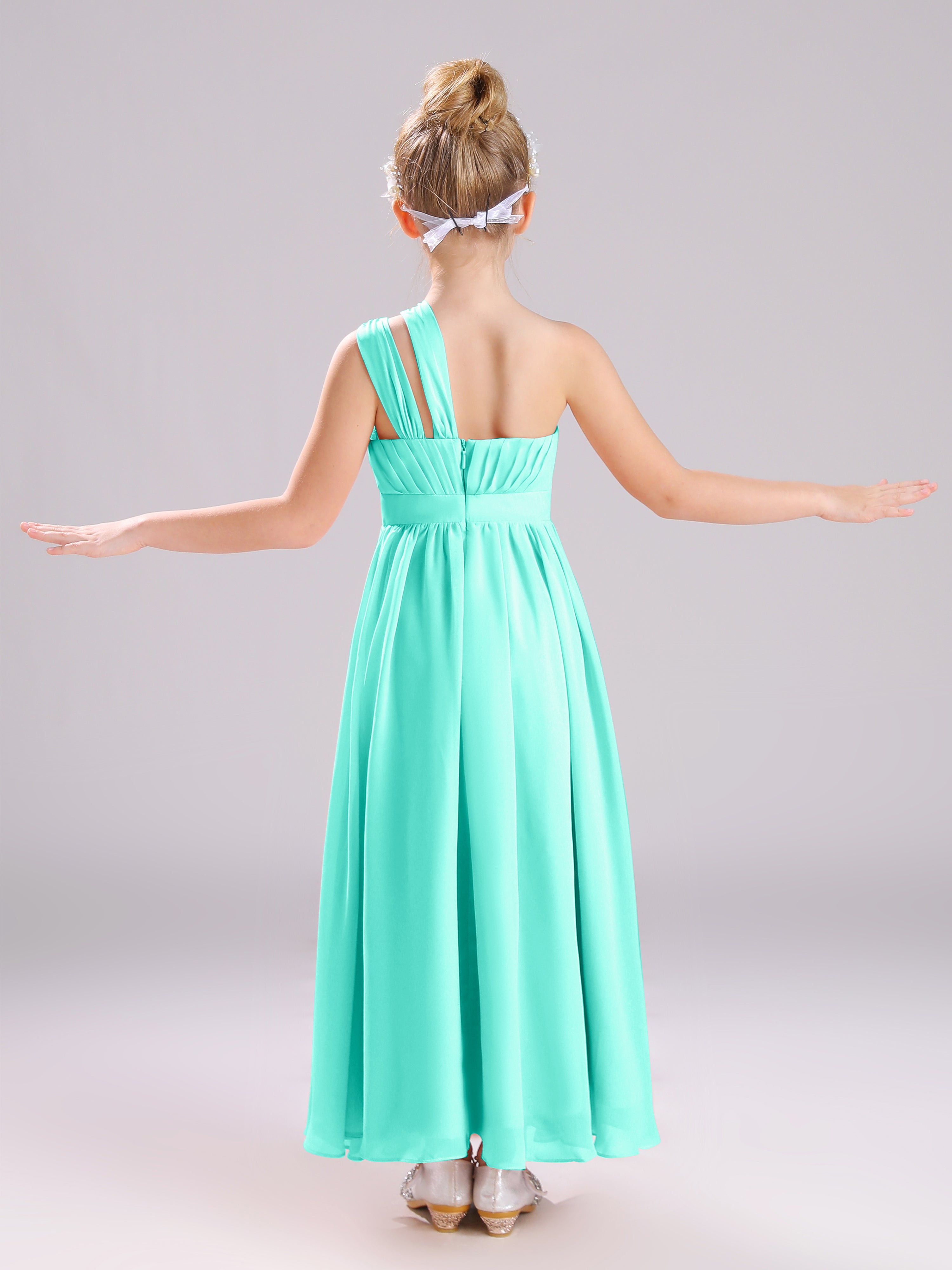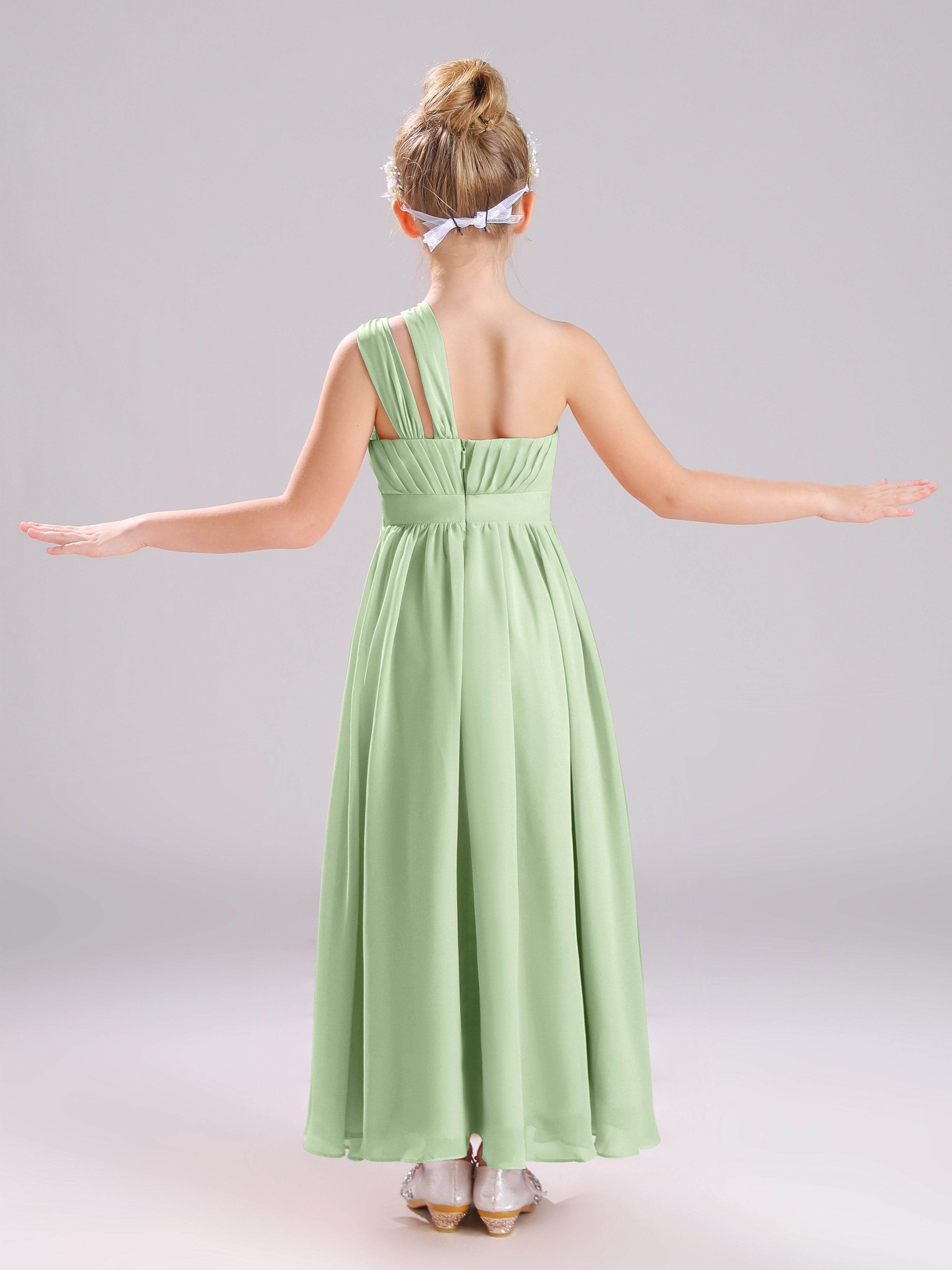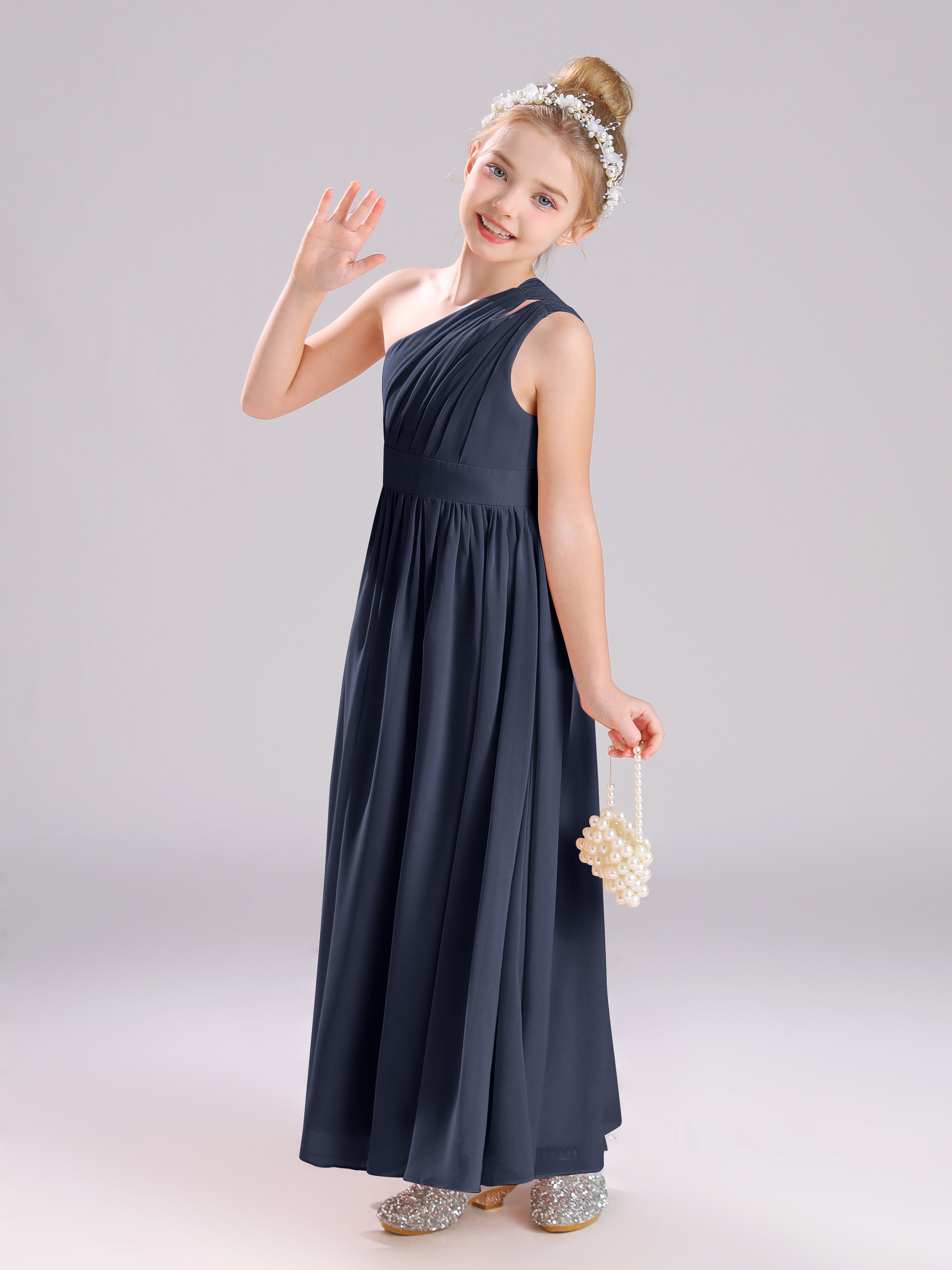 One Shoulder Pleats Long Chiffon Junior Bridesmaid Dresses