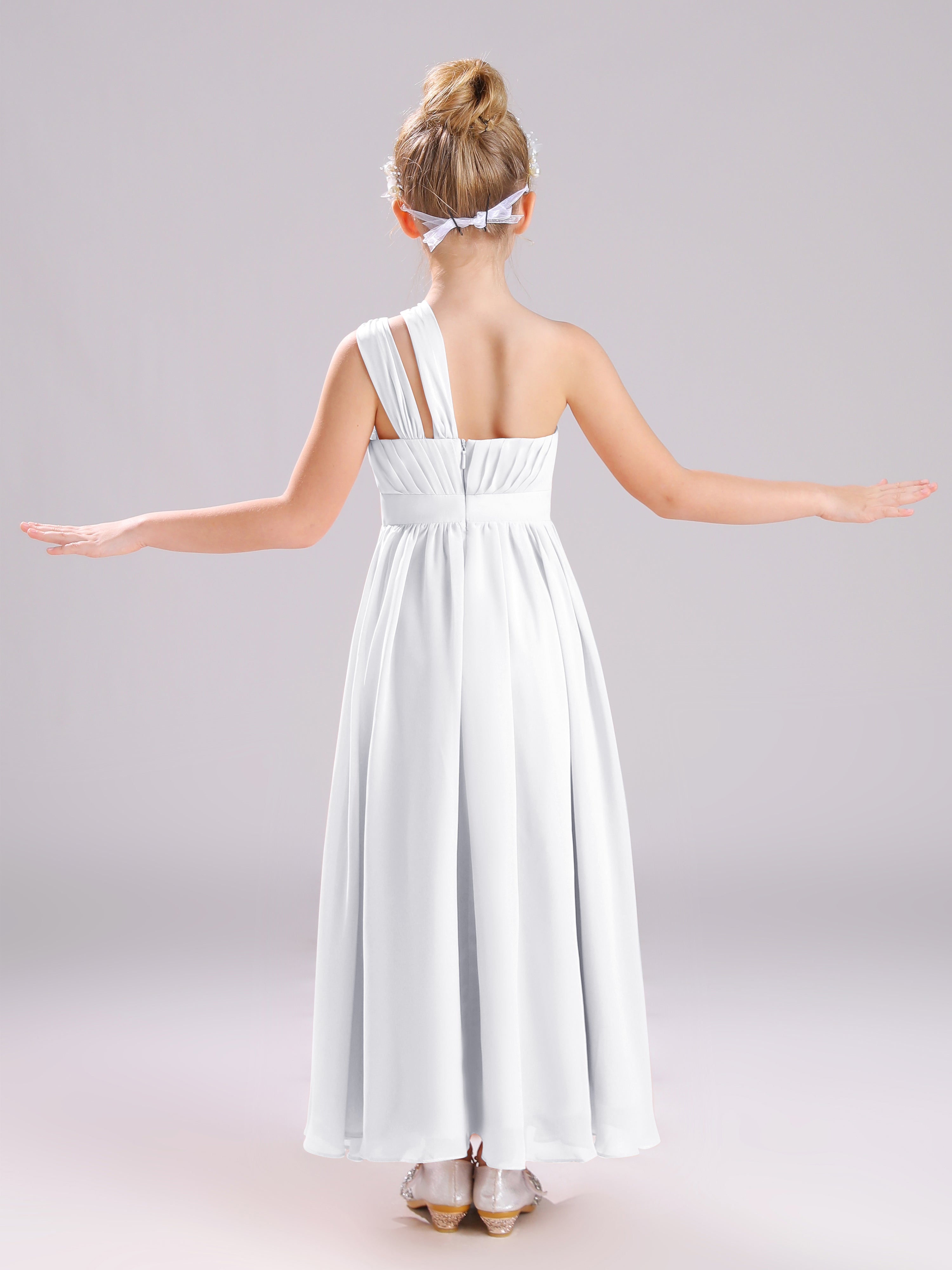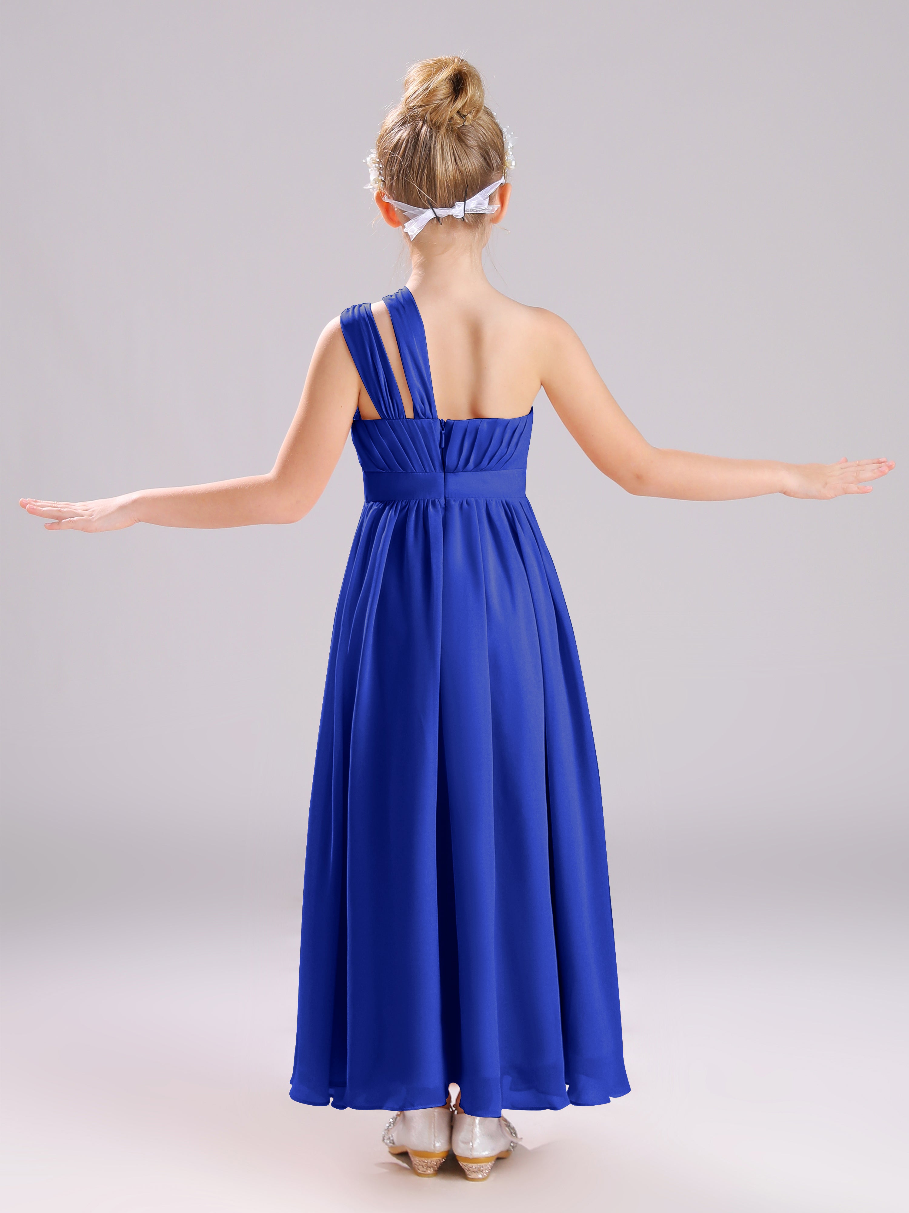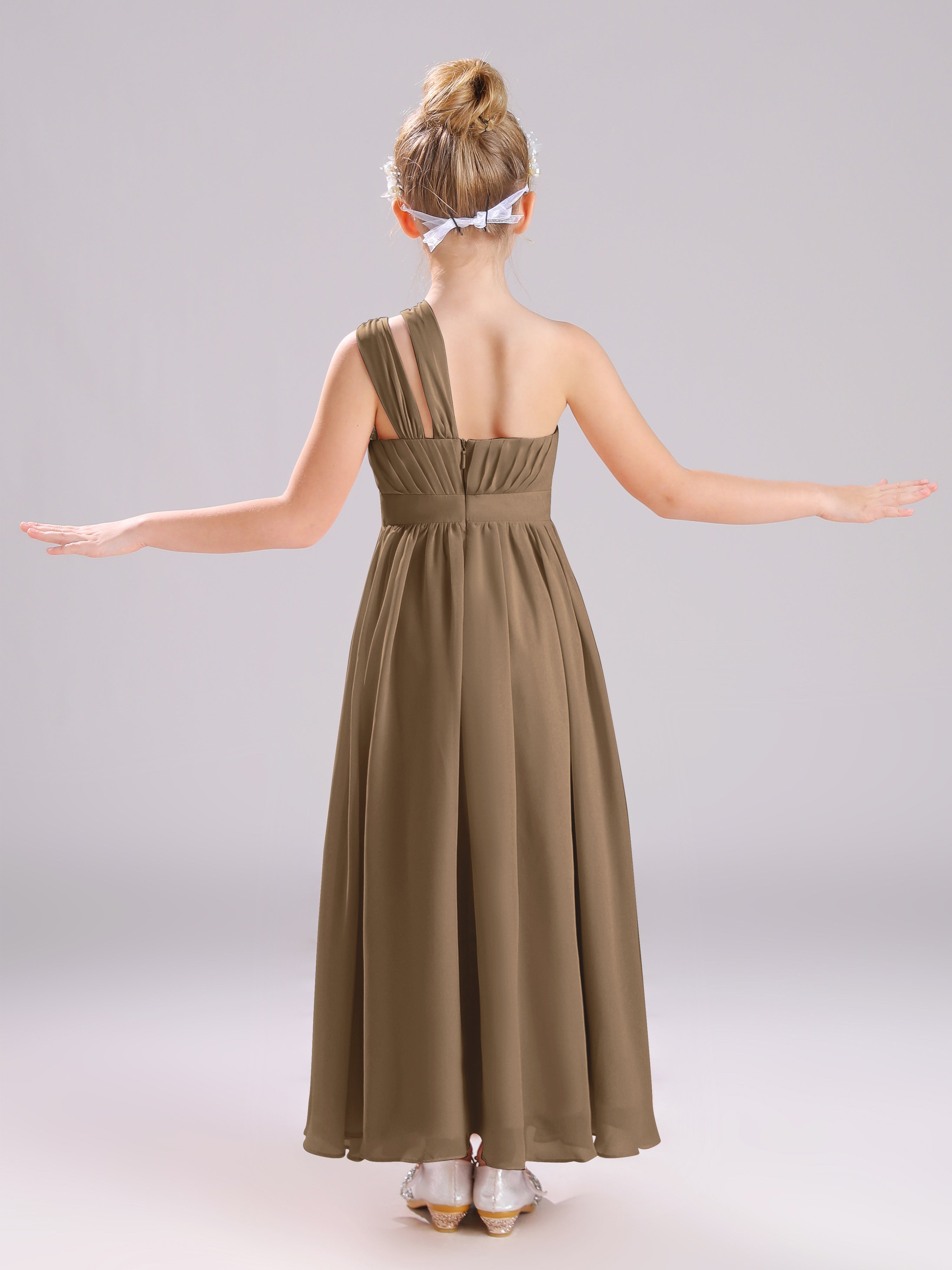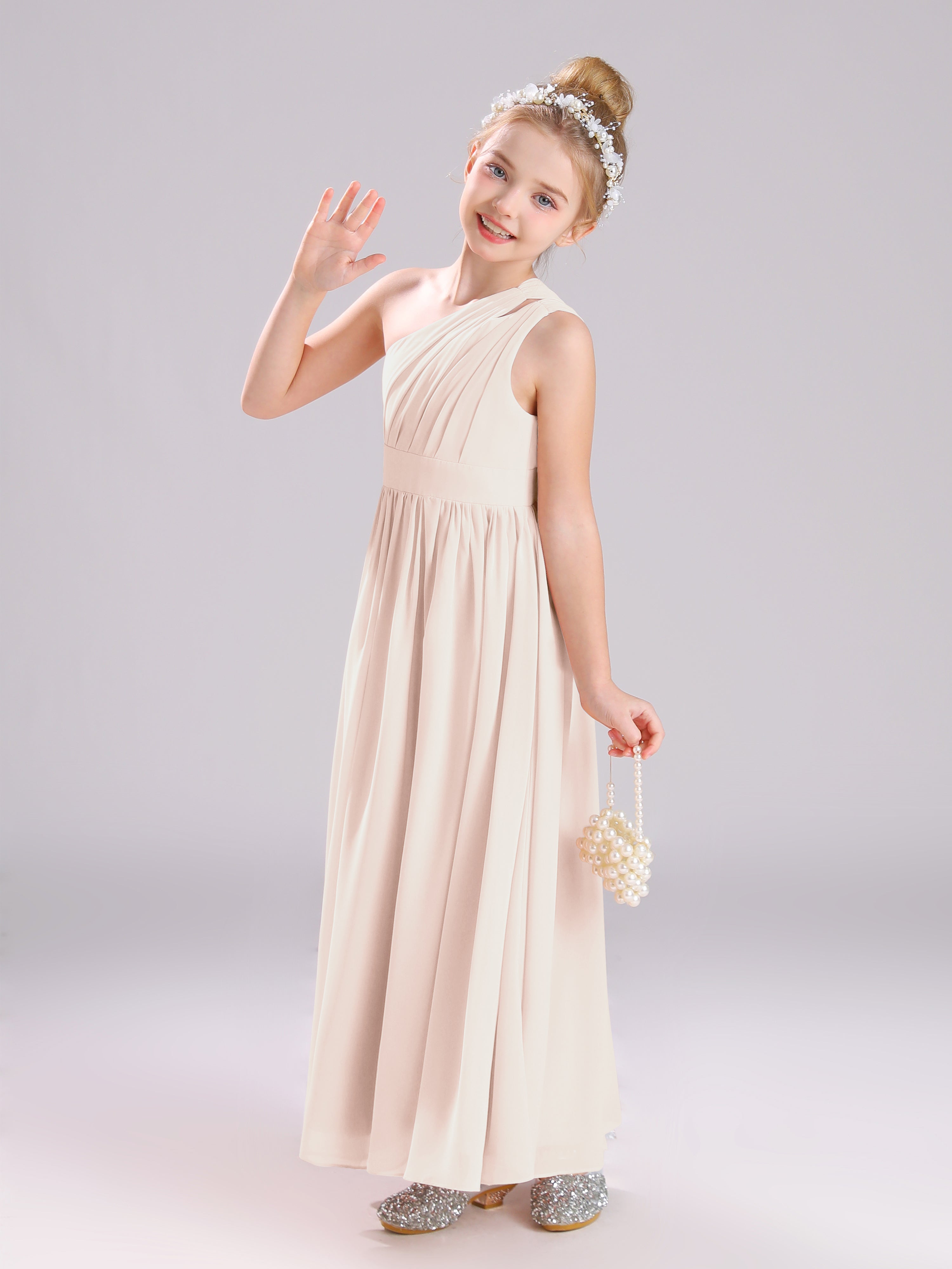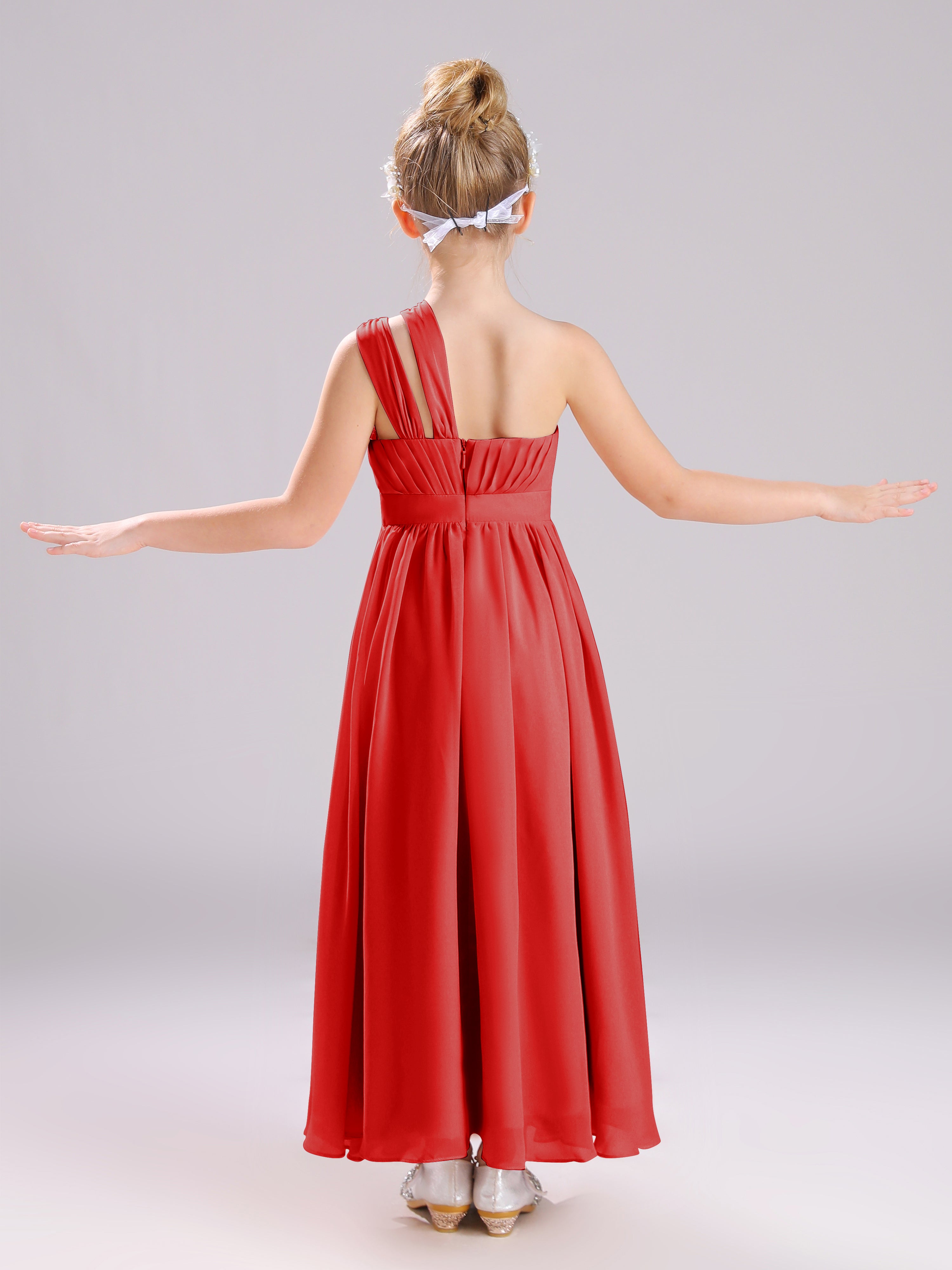 One Shoulder Pleats Long Chiffon Junior Bridesmaid Dresses