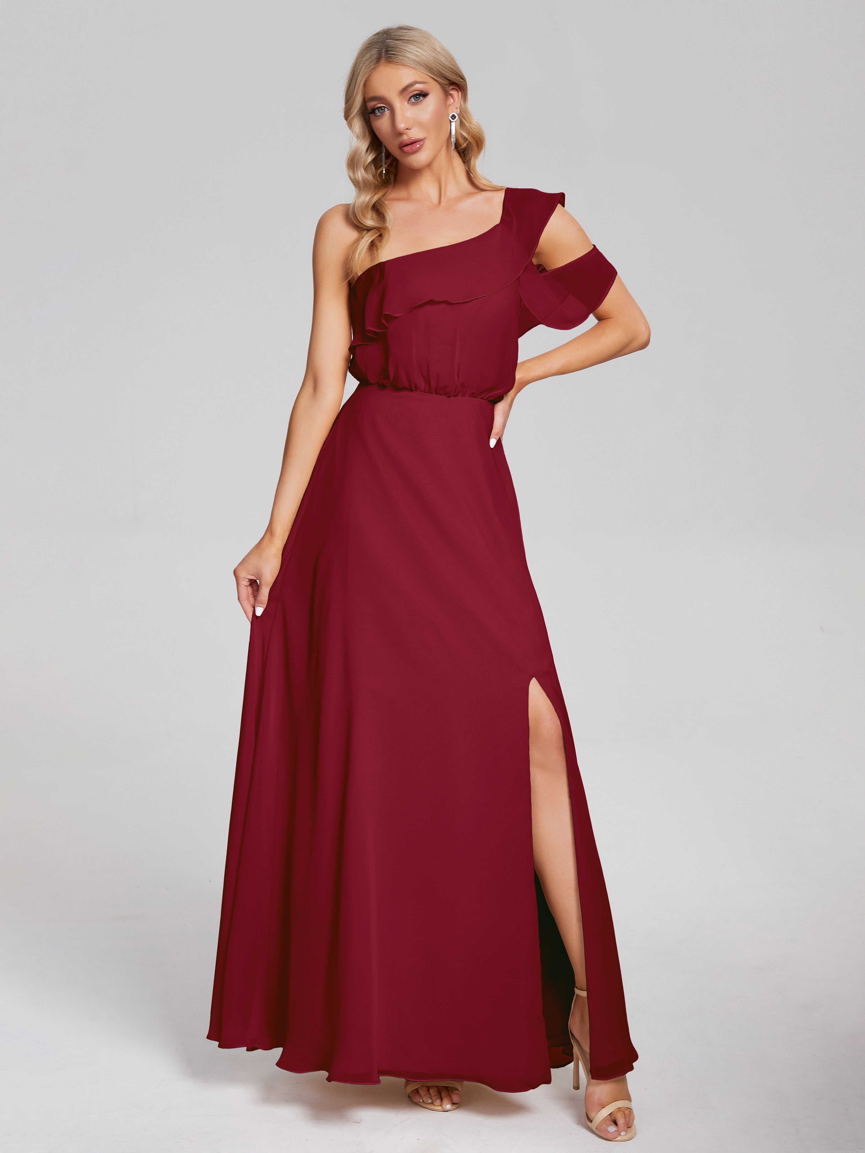 Paislee One-Shoulder Split Chiffon Bridesmaid Dresses