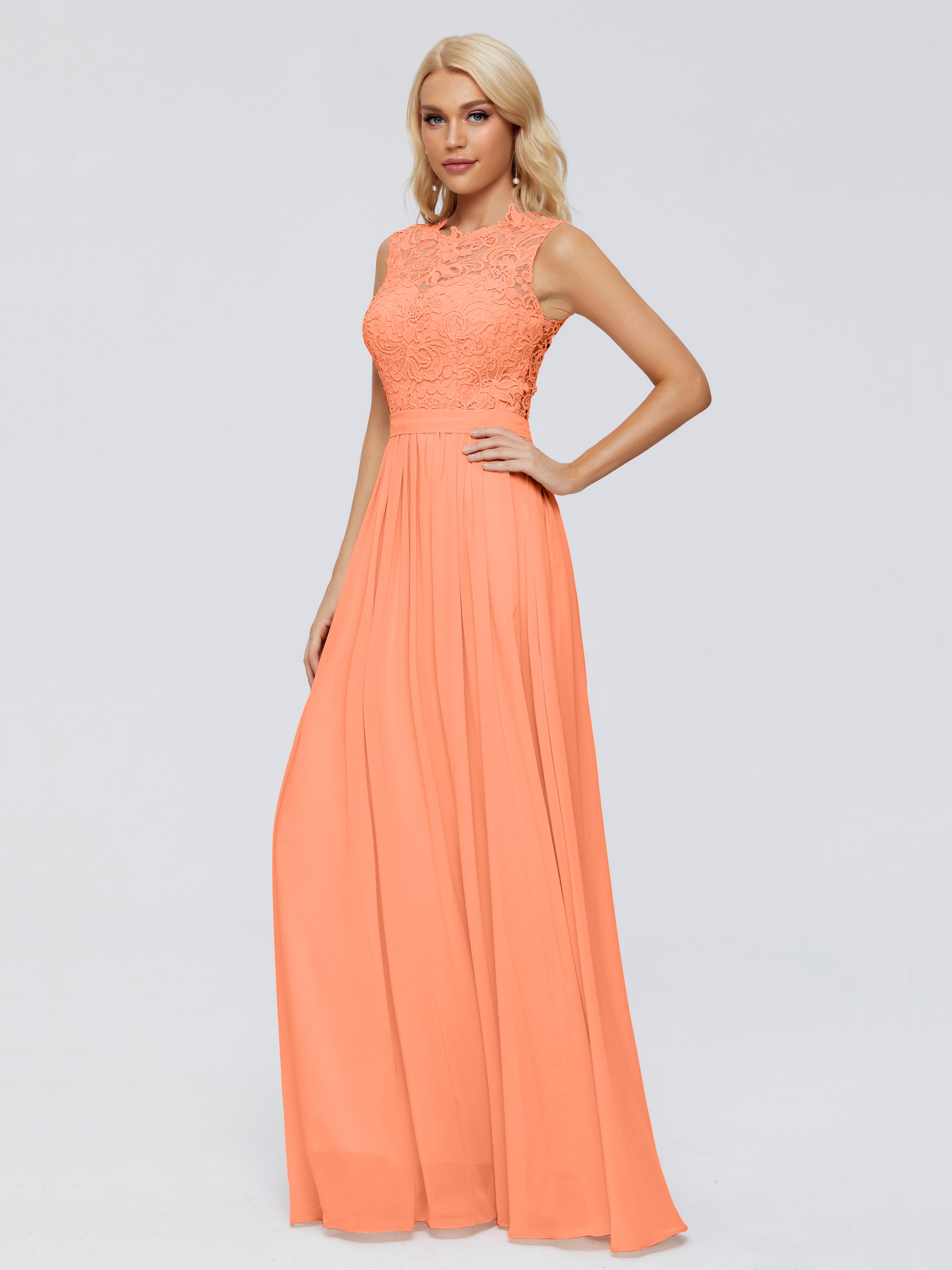 Papaya Bridesmaid Dress Melody Elegant Bateau Chiffon Bridesmaid Dresses
