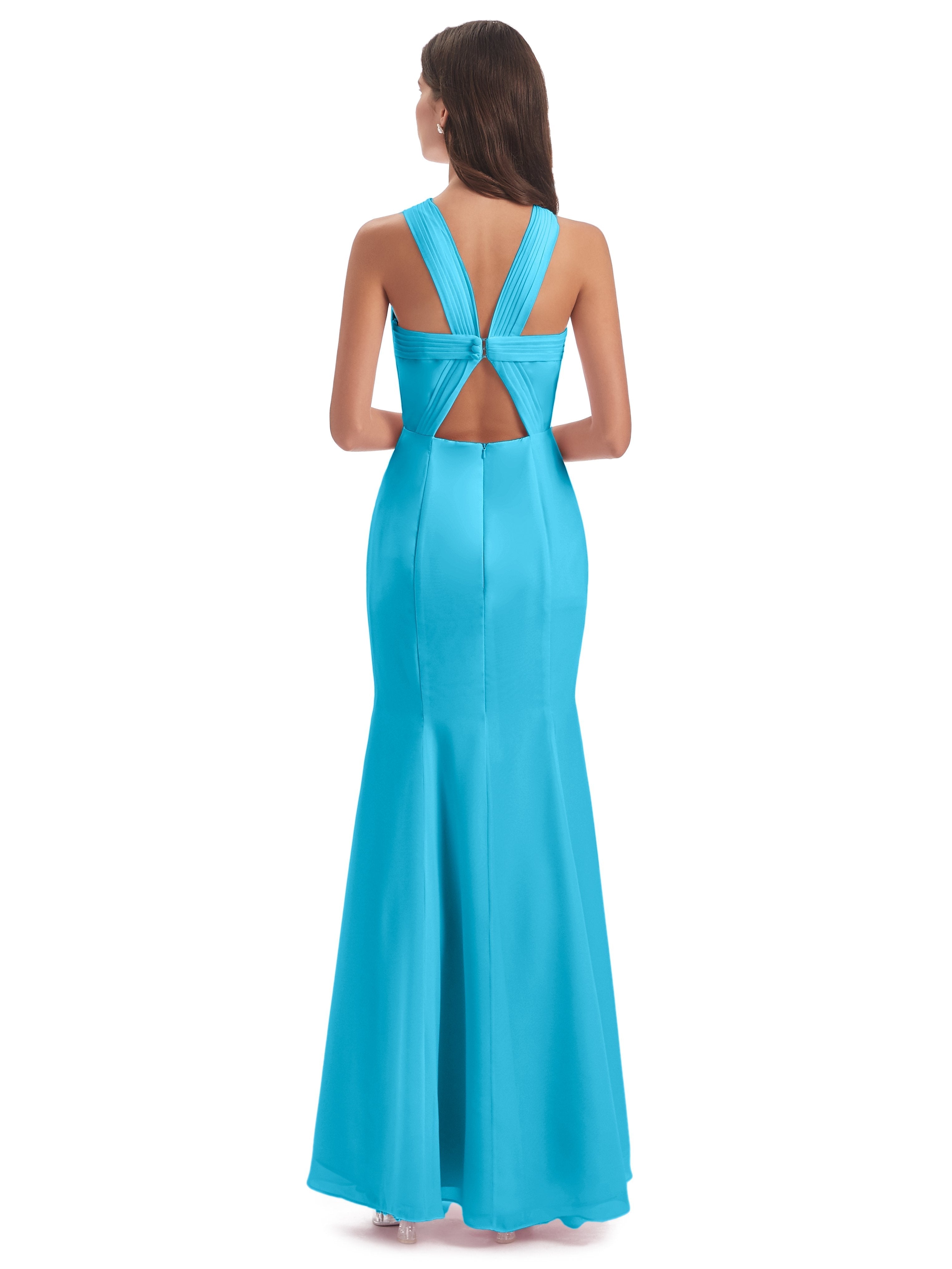 Pool Bridesmaid Dresses Evie Unique Trumpet-Hourglass Halter Split Long Bridesmaid Dresses
