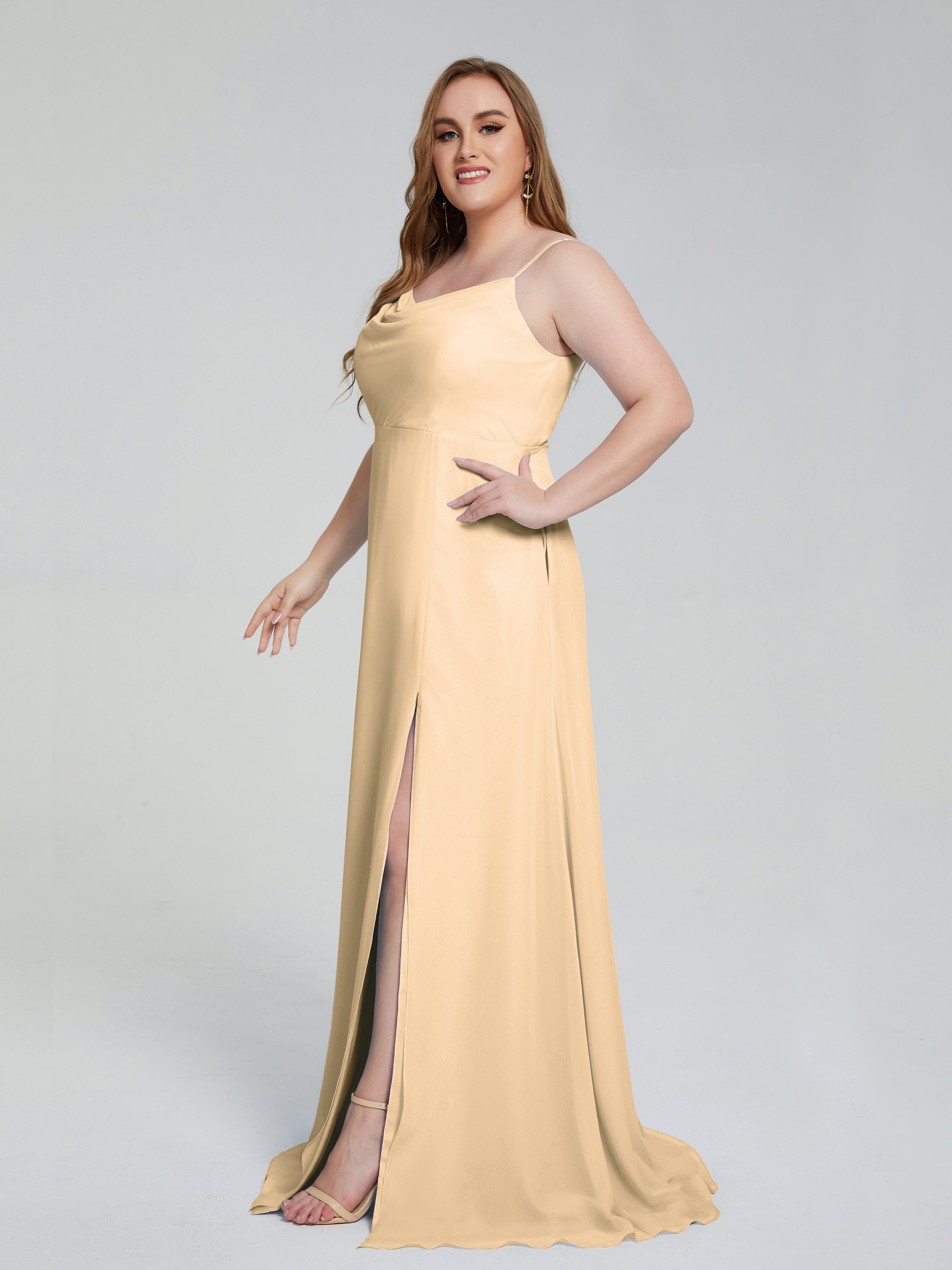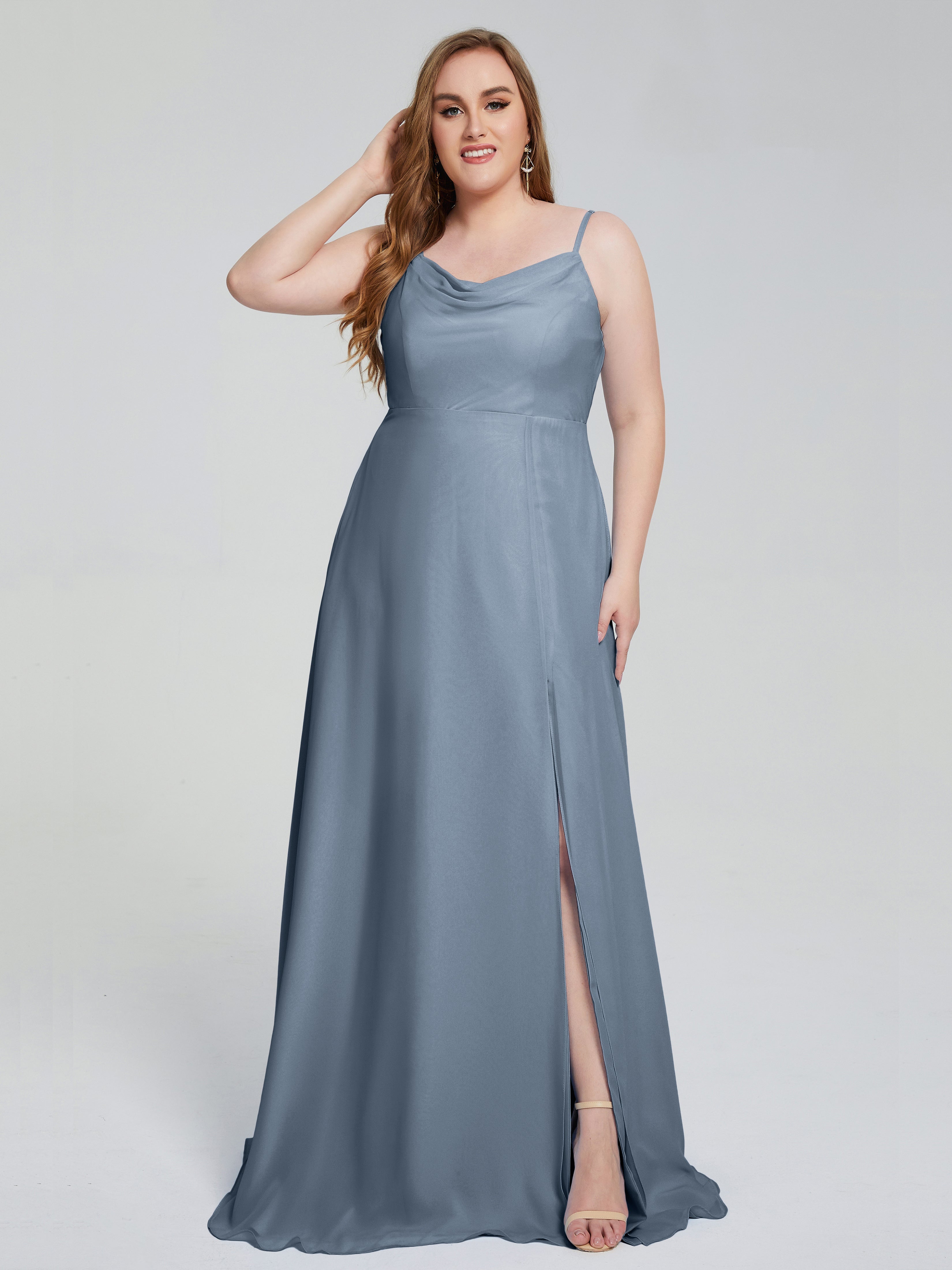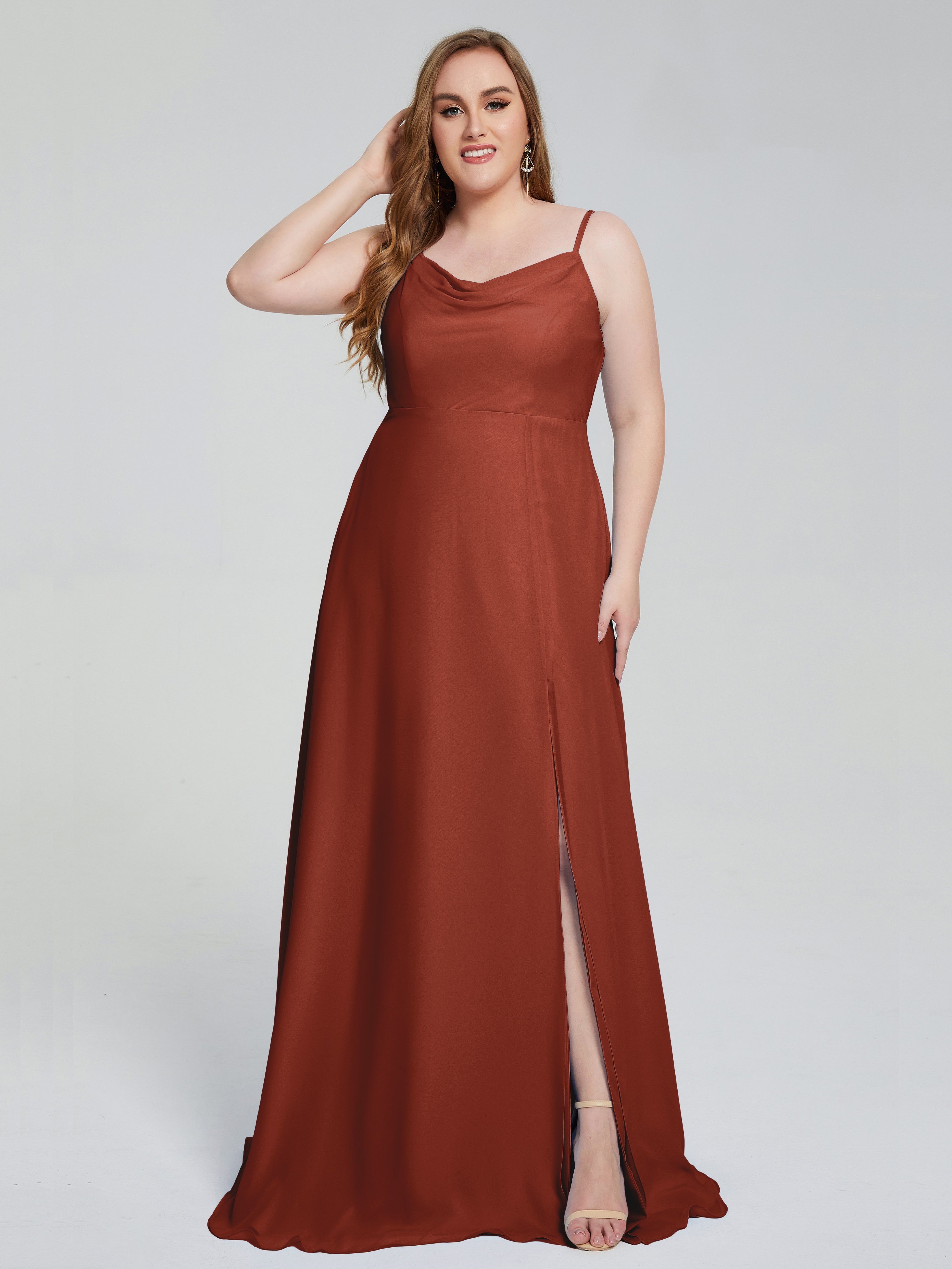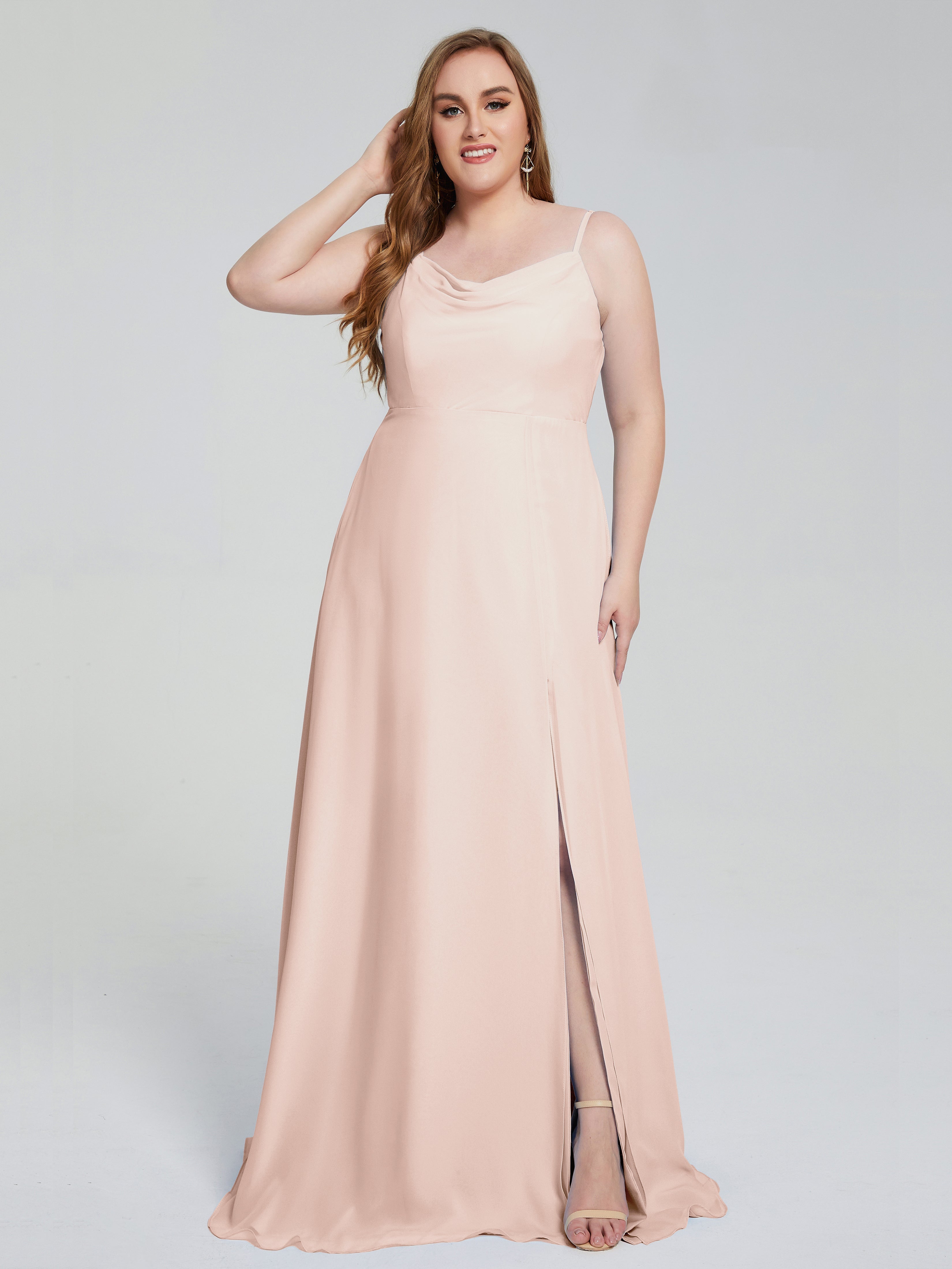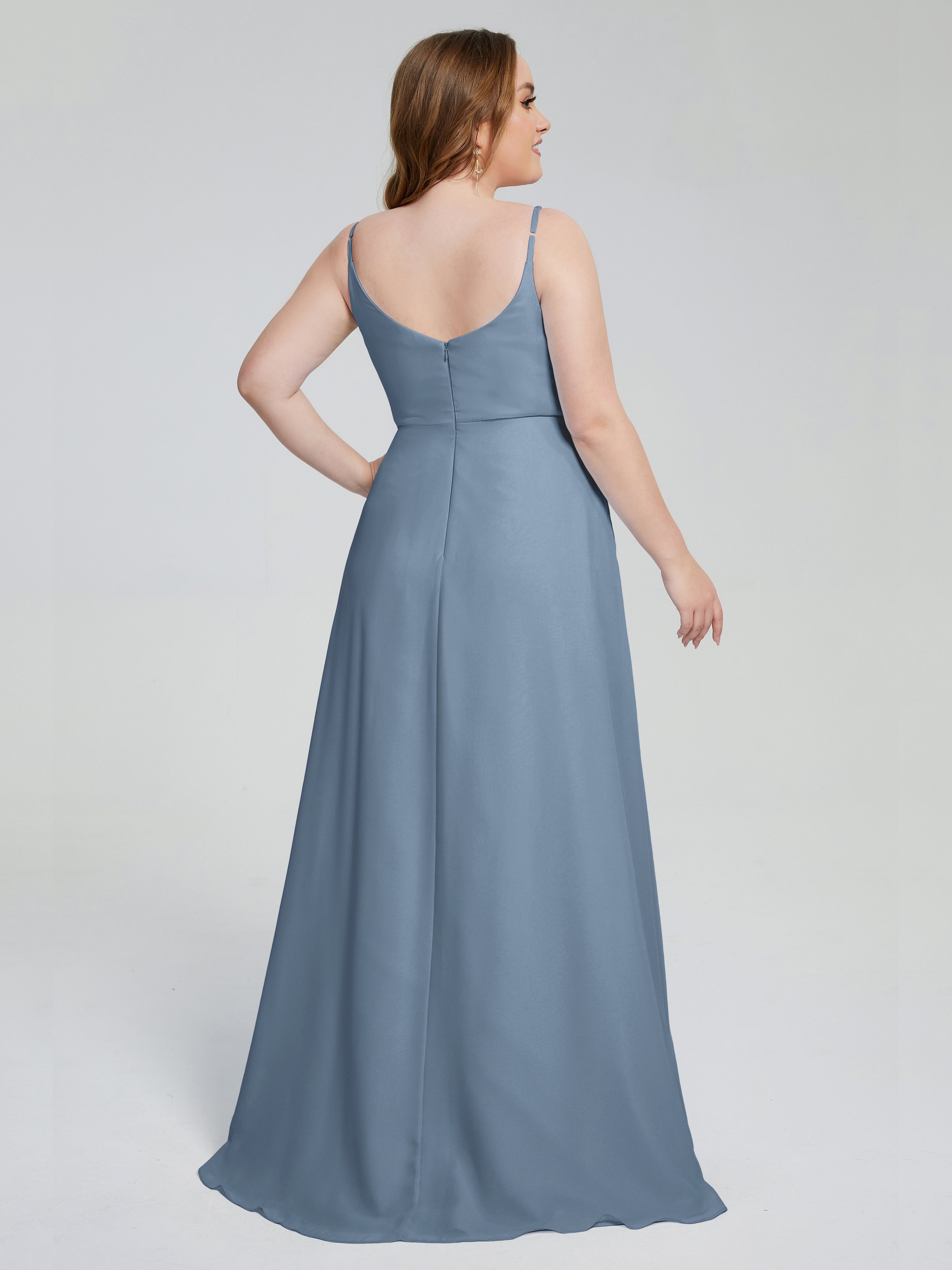 Rachel Spaghetti Straps Split Plus Size Bridesmaid Dresses