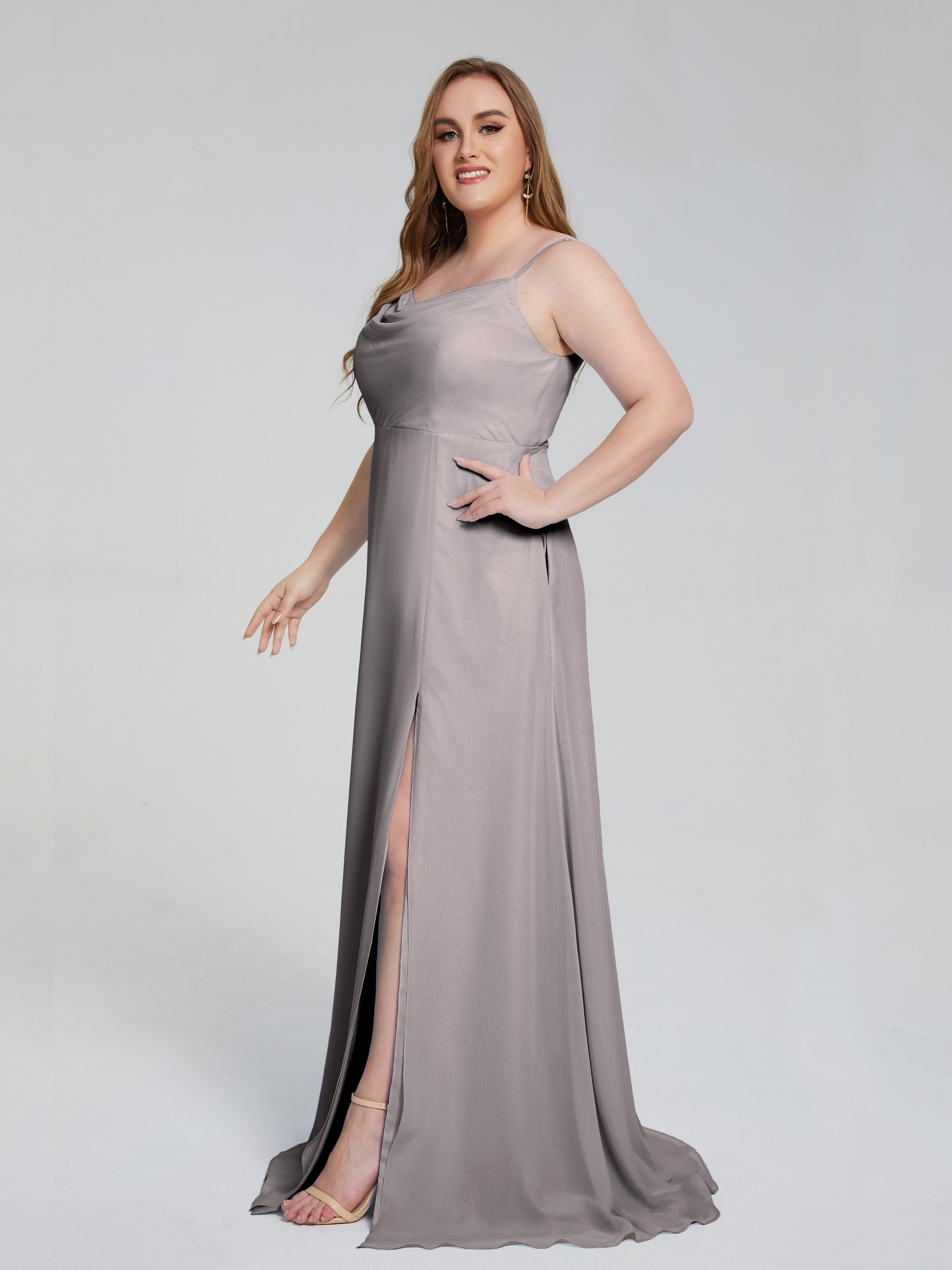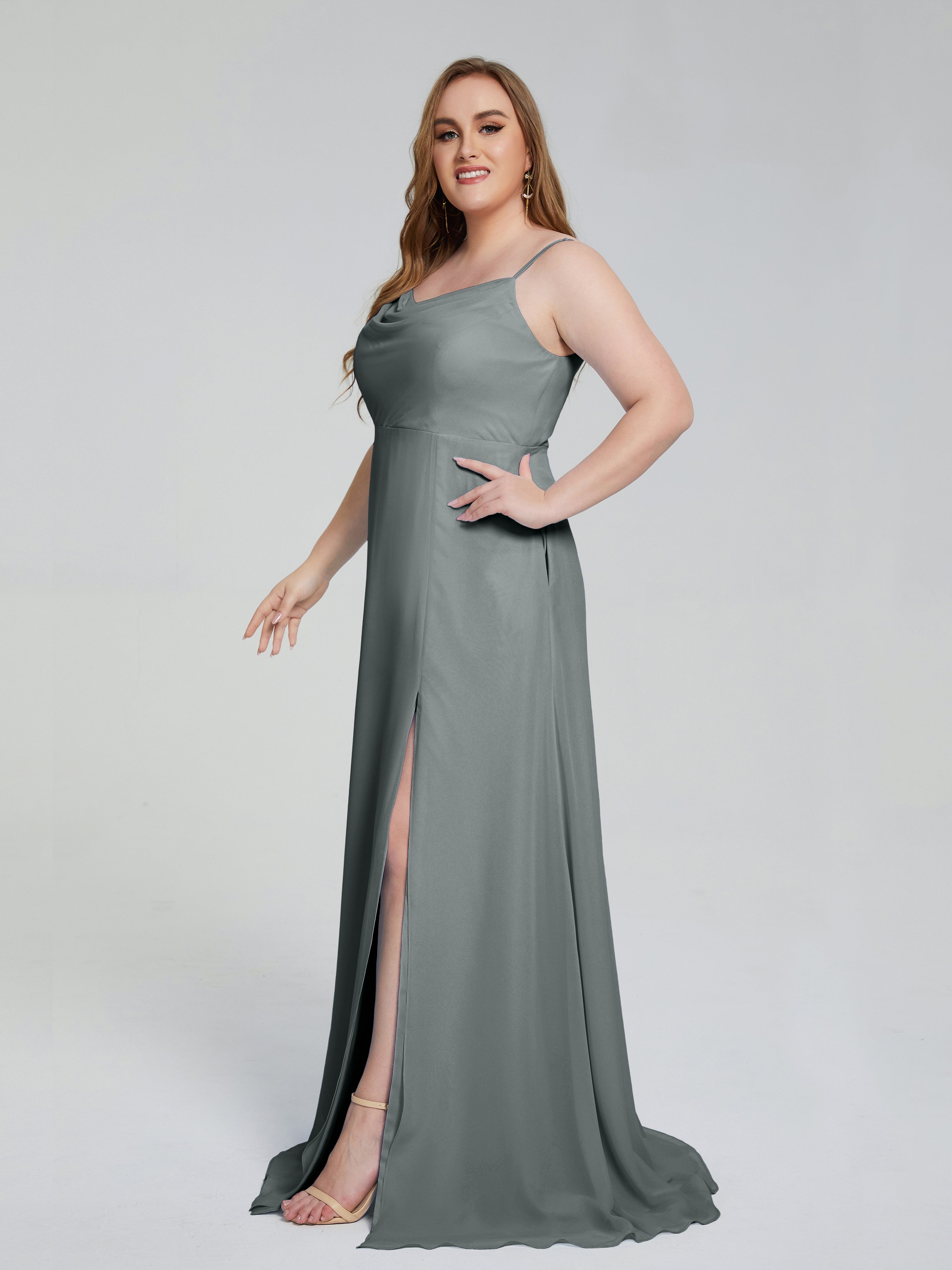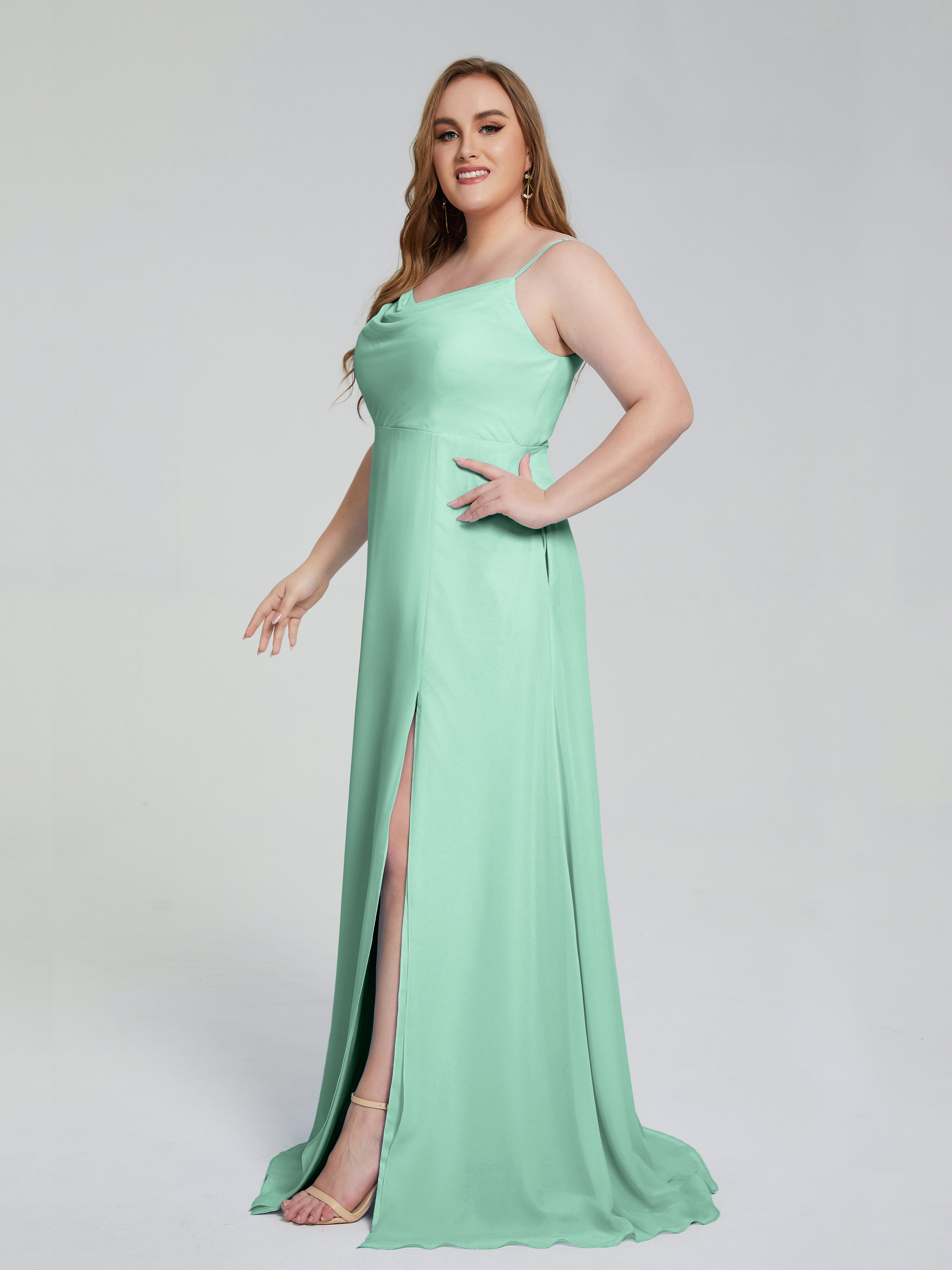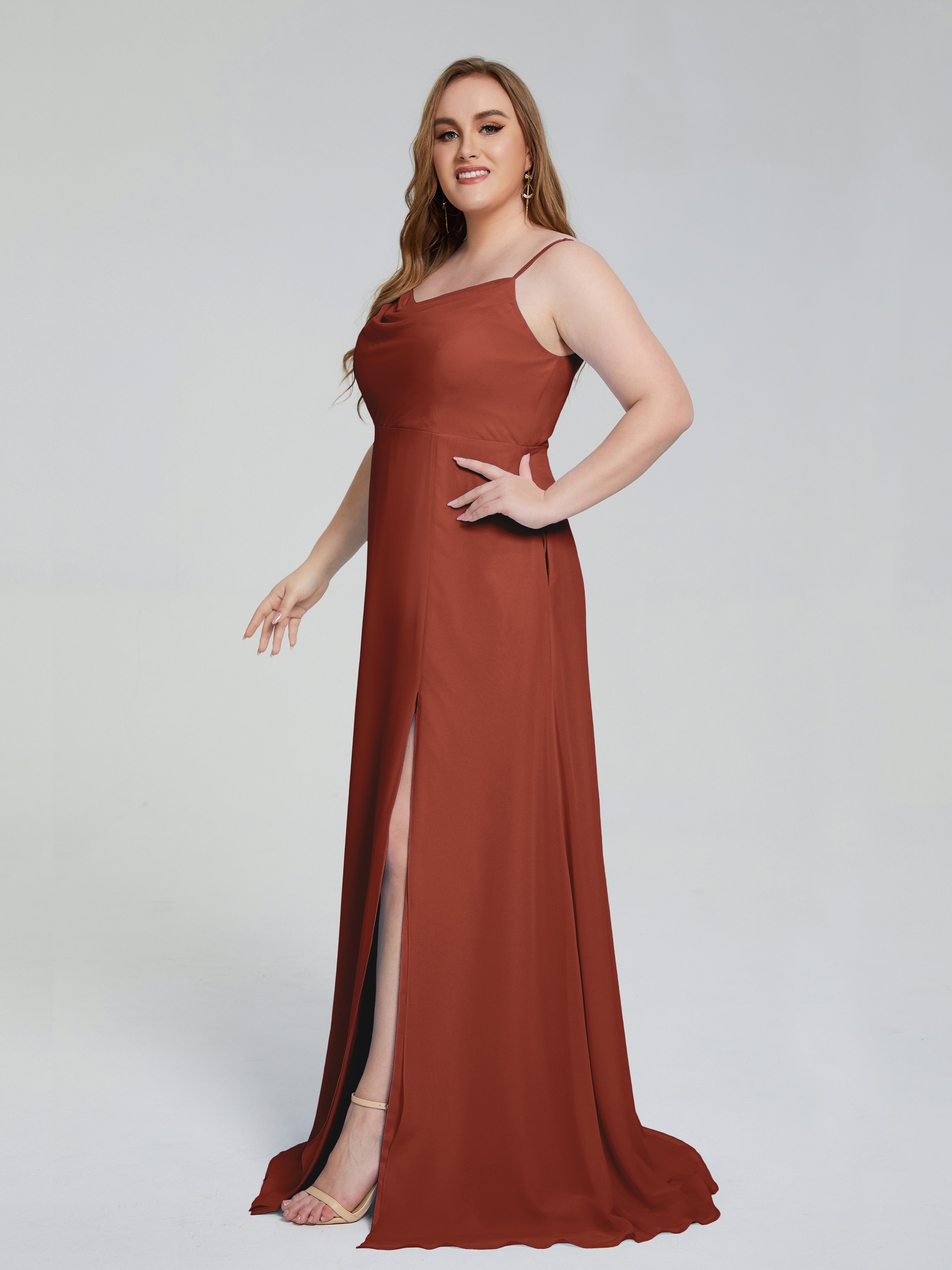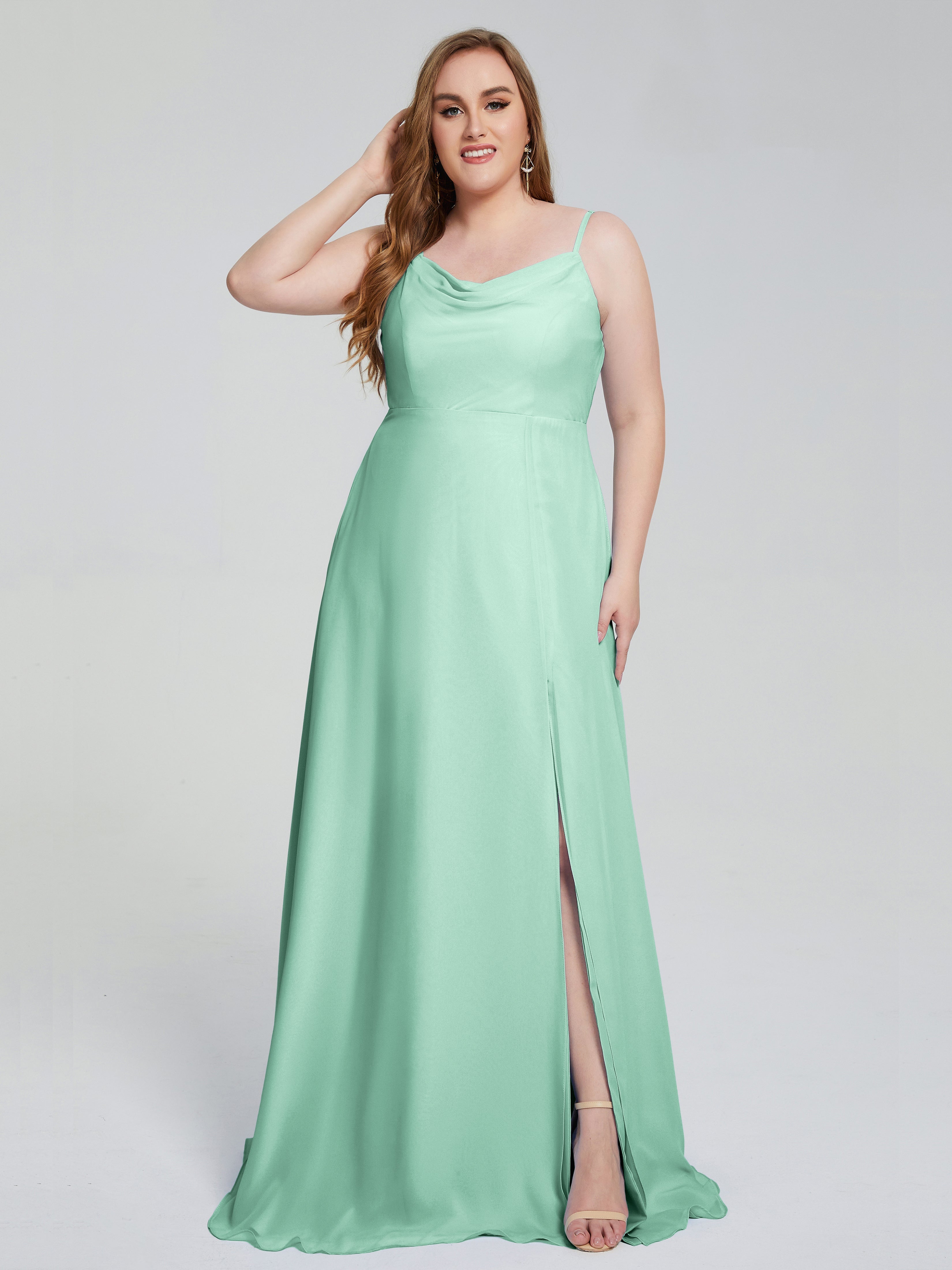 Rachel Spaghetti Straps Split Plus Size Bridesmaid Dresses