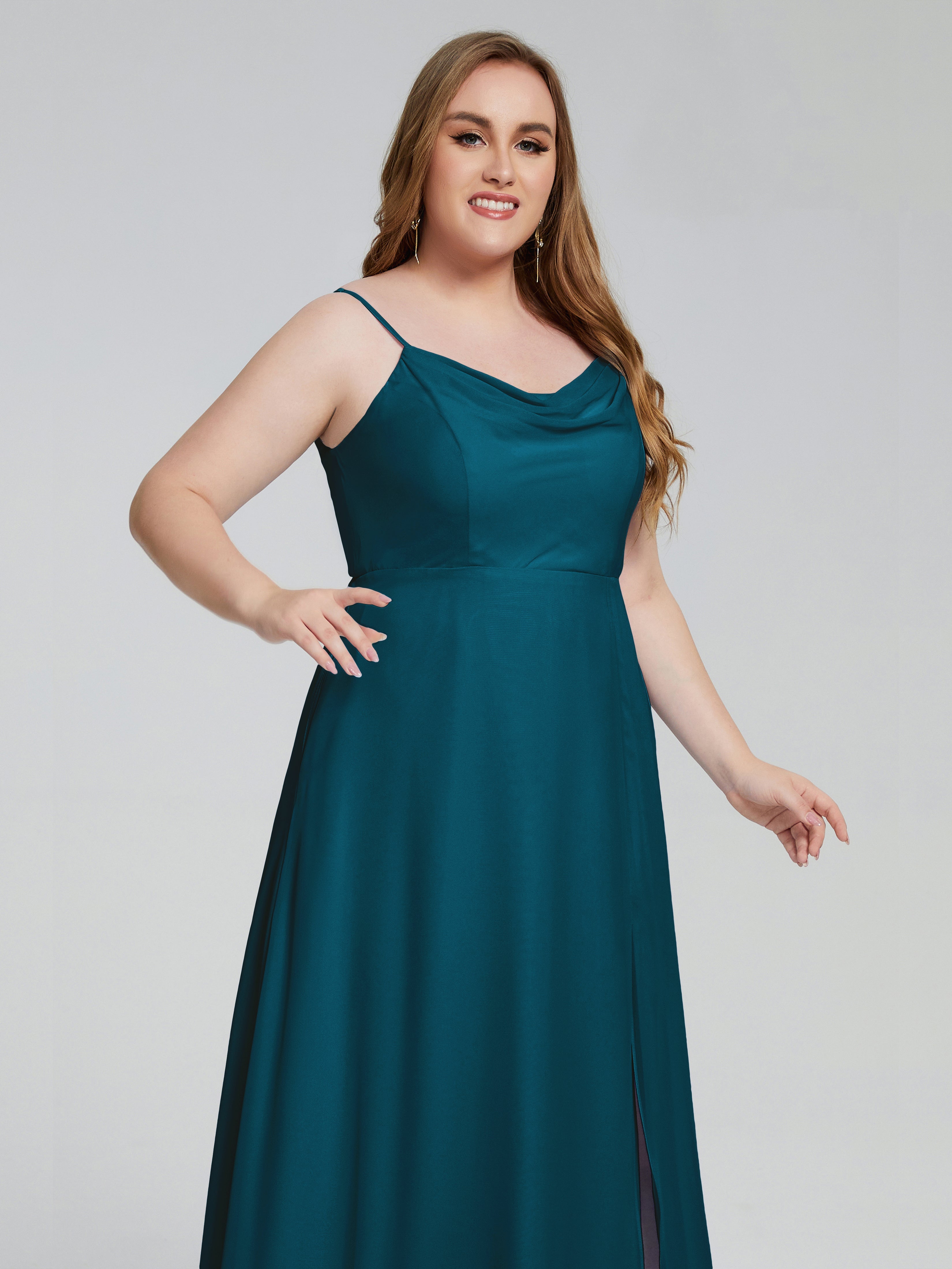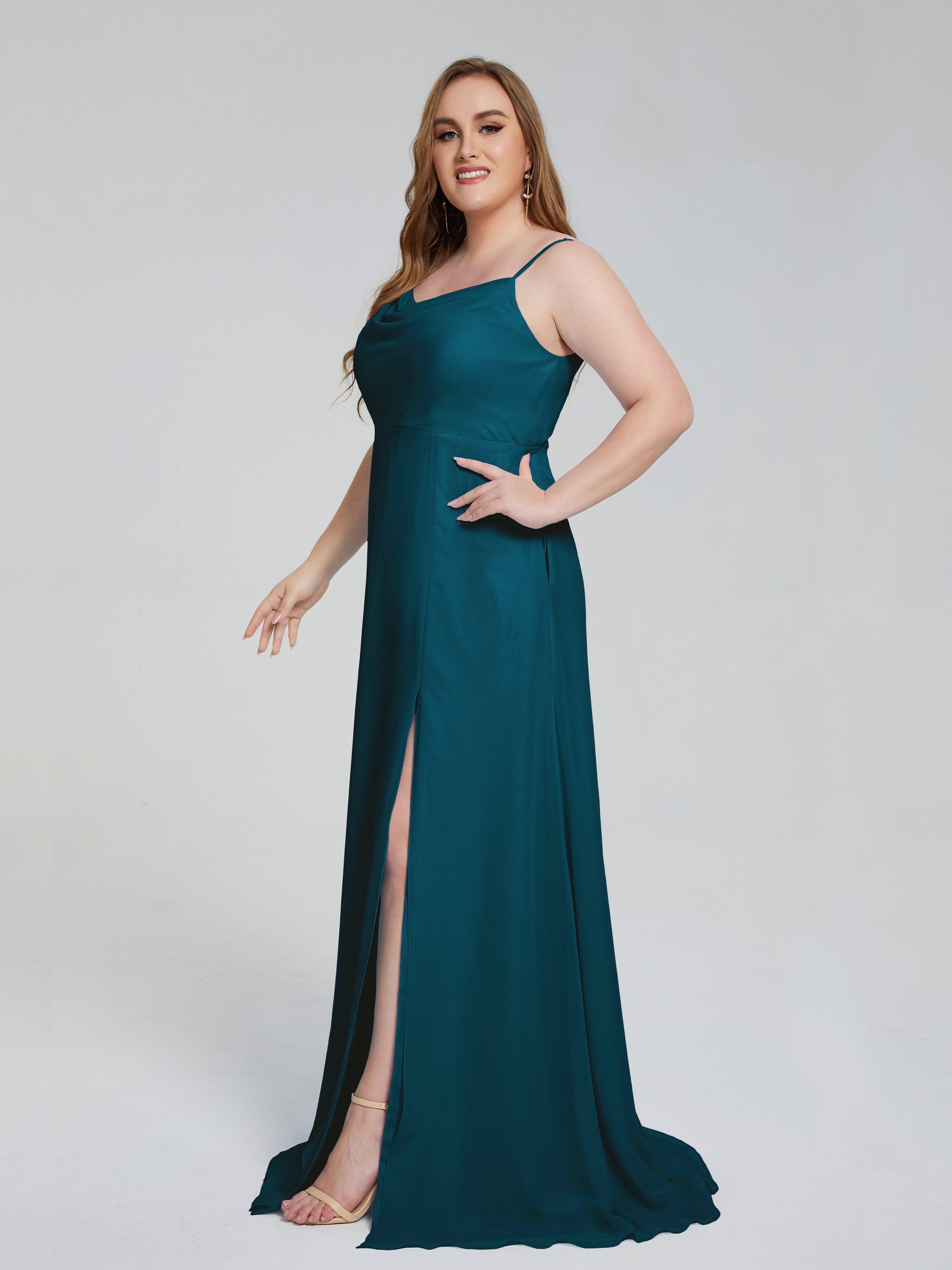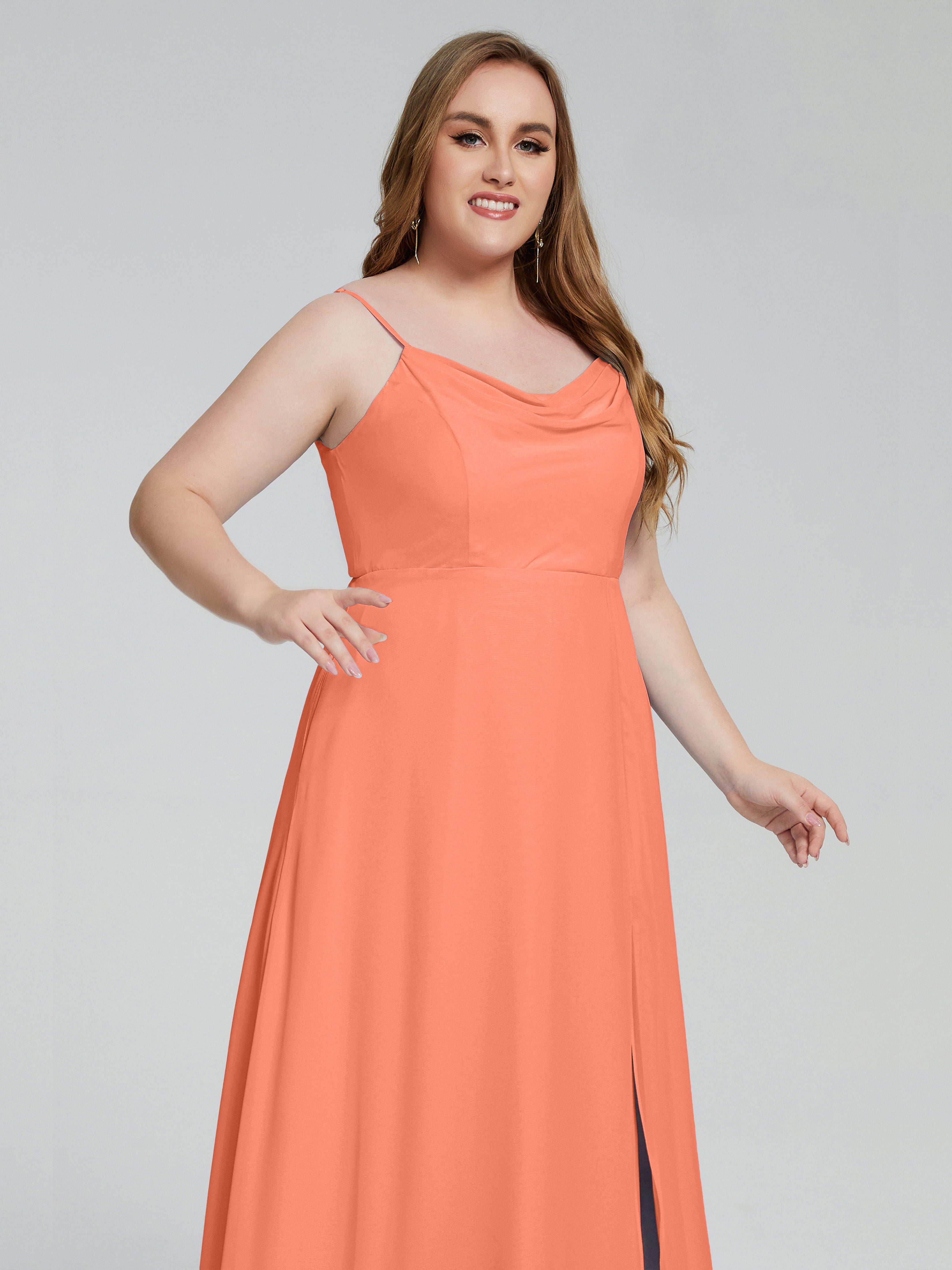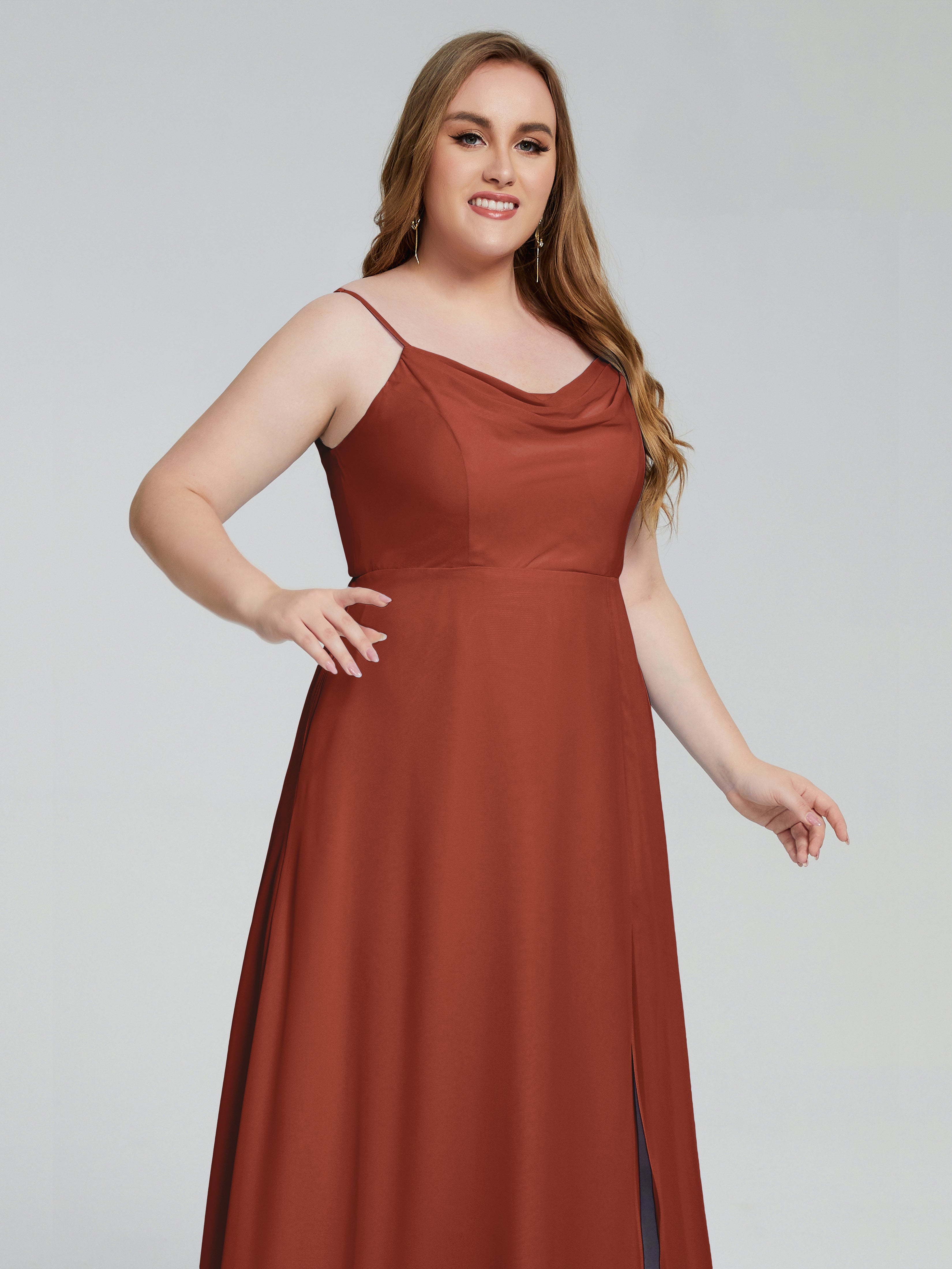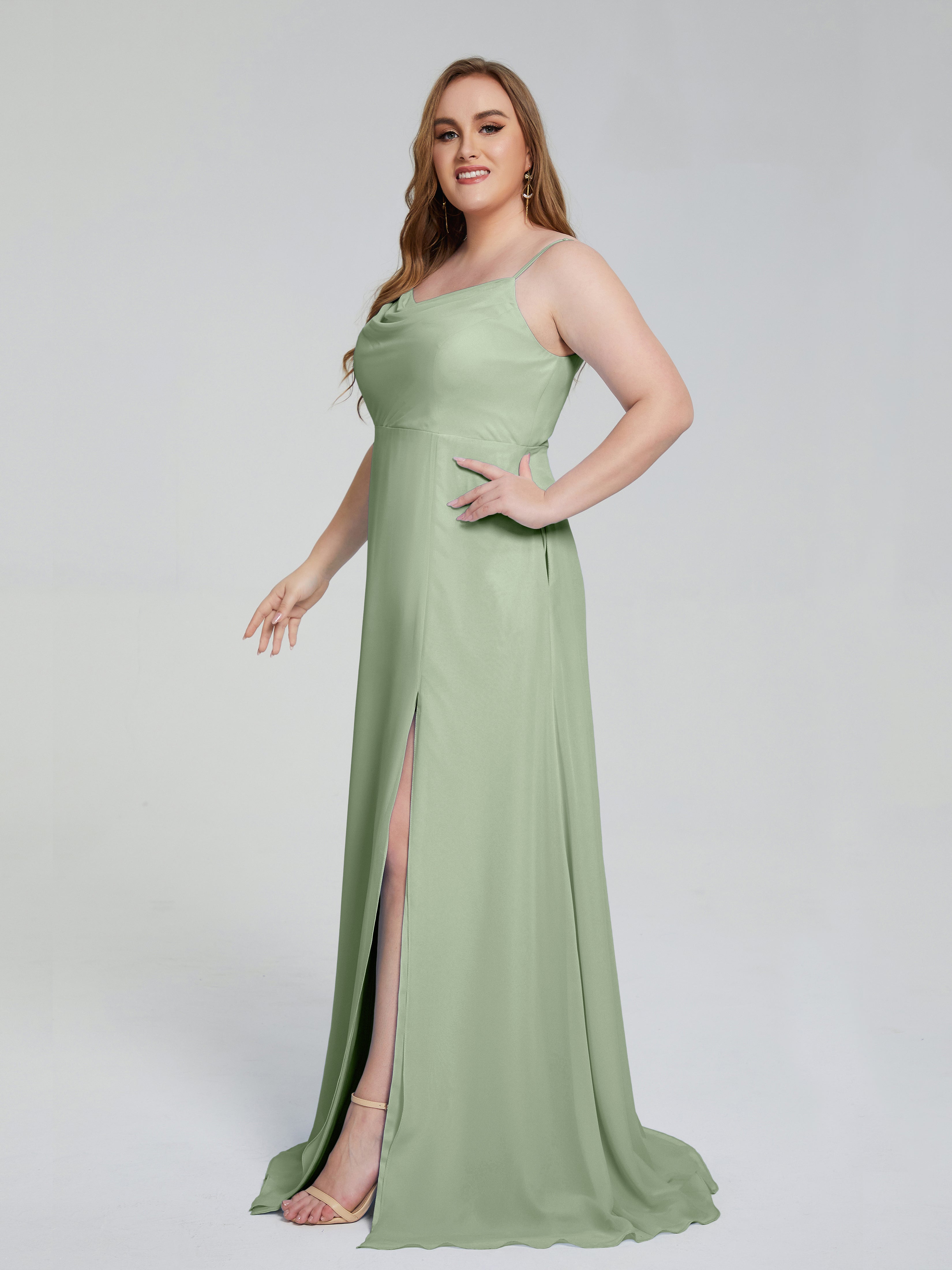 Rachel Spaghetti Straps Split Plus Size Bridesmaid Dresses