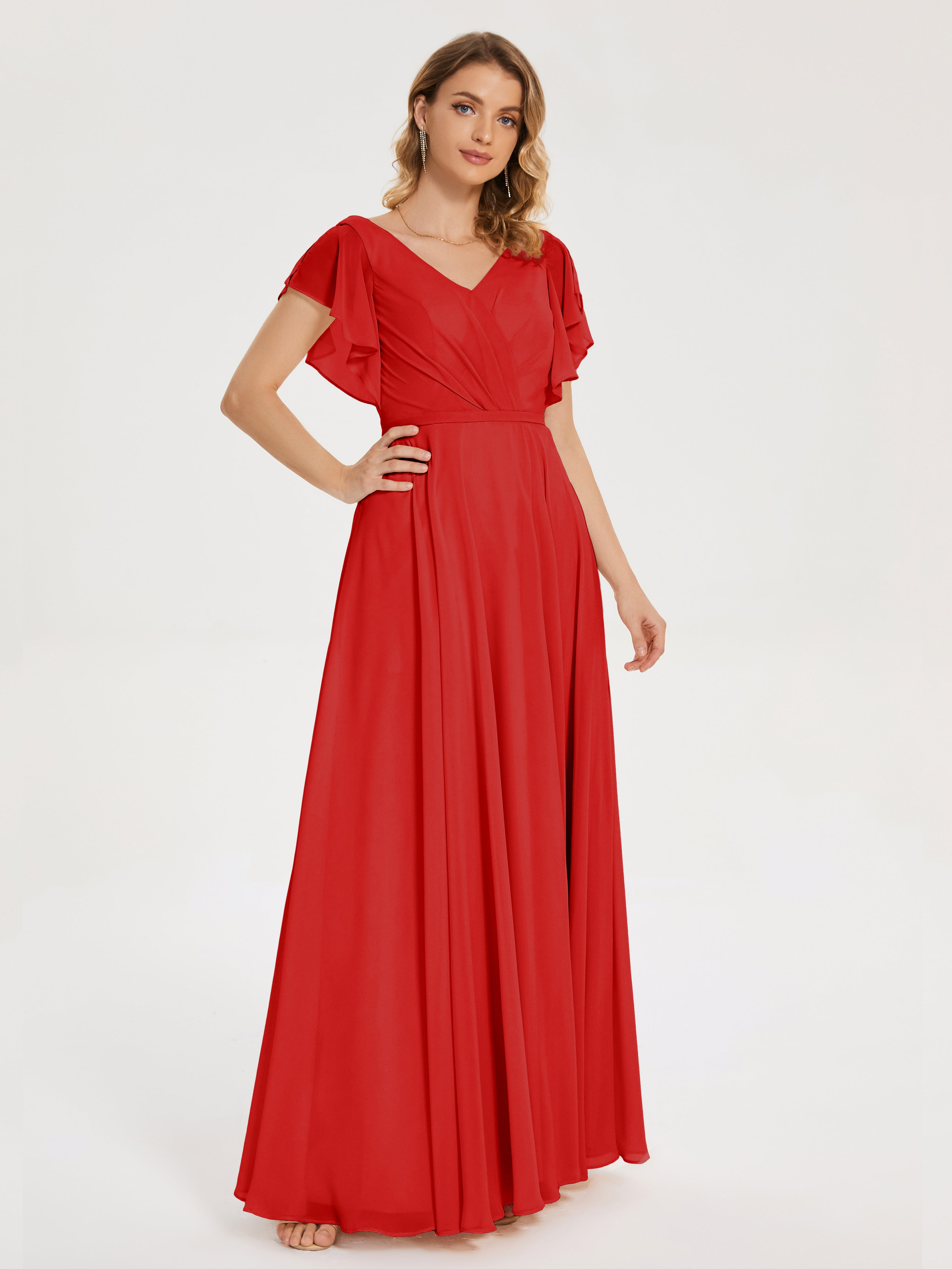 Red Bridesmaids Dresses Kate Charming V Neck Split Chiffon Bridesmaid Dresses
