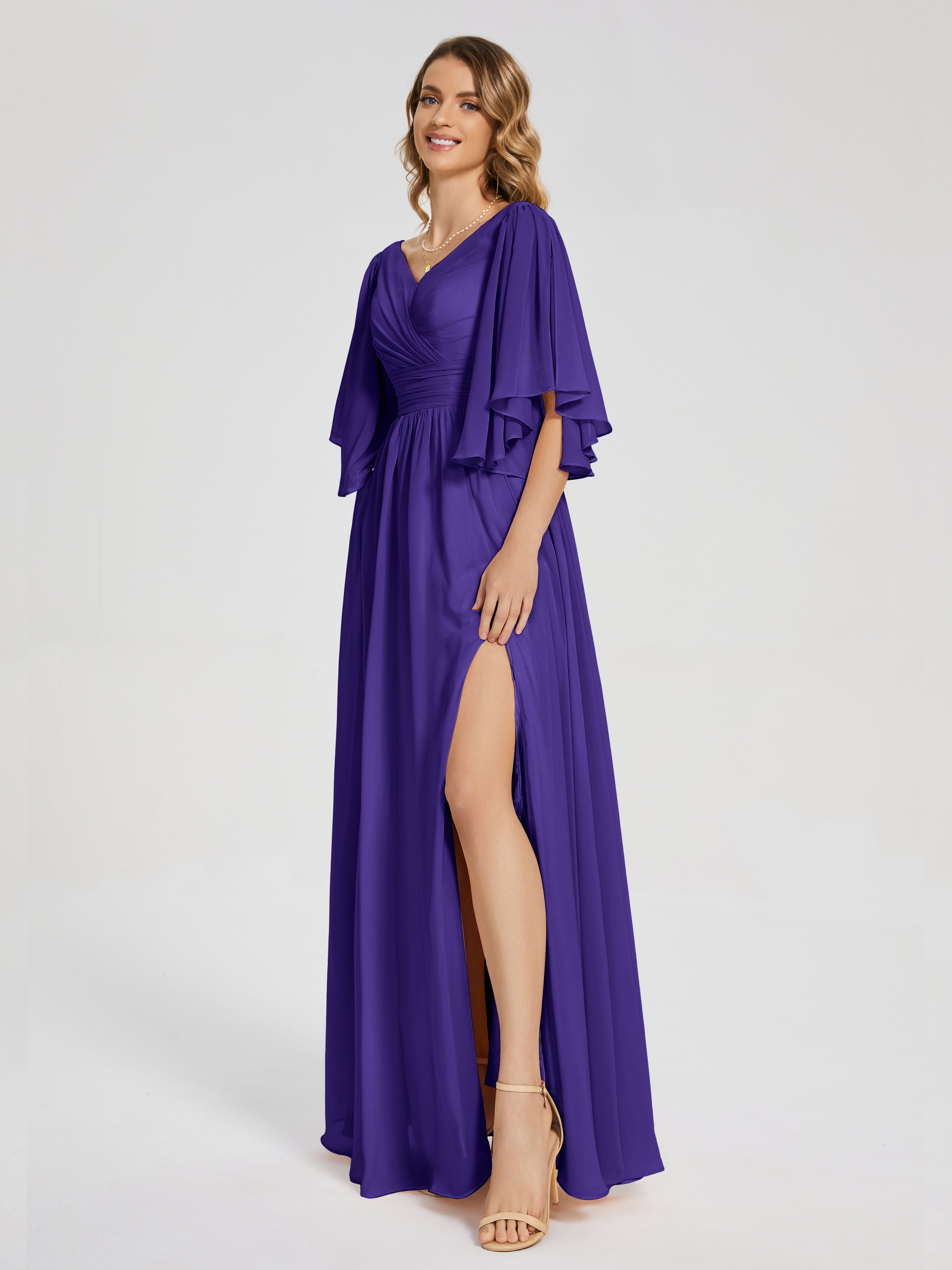 Regency Purple Bridesmaid Dresses Giselle Pretty Corset Back Chiffon Bridesmaid Dresses