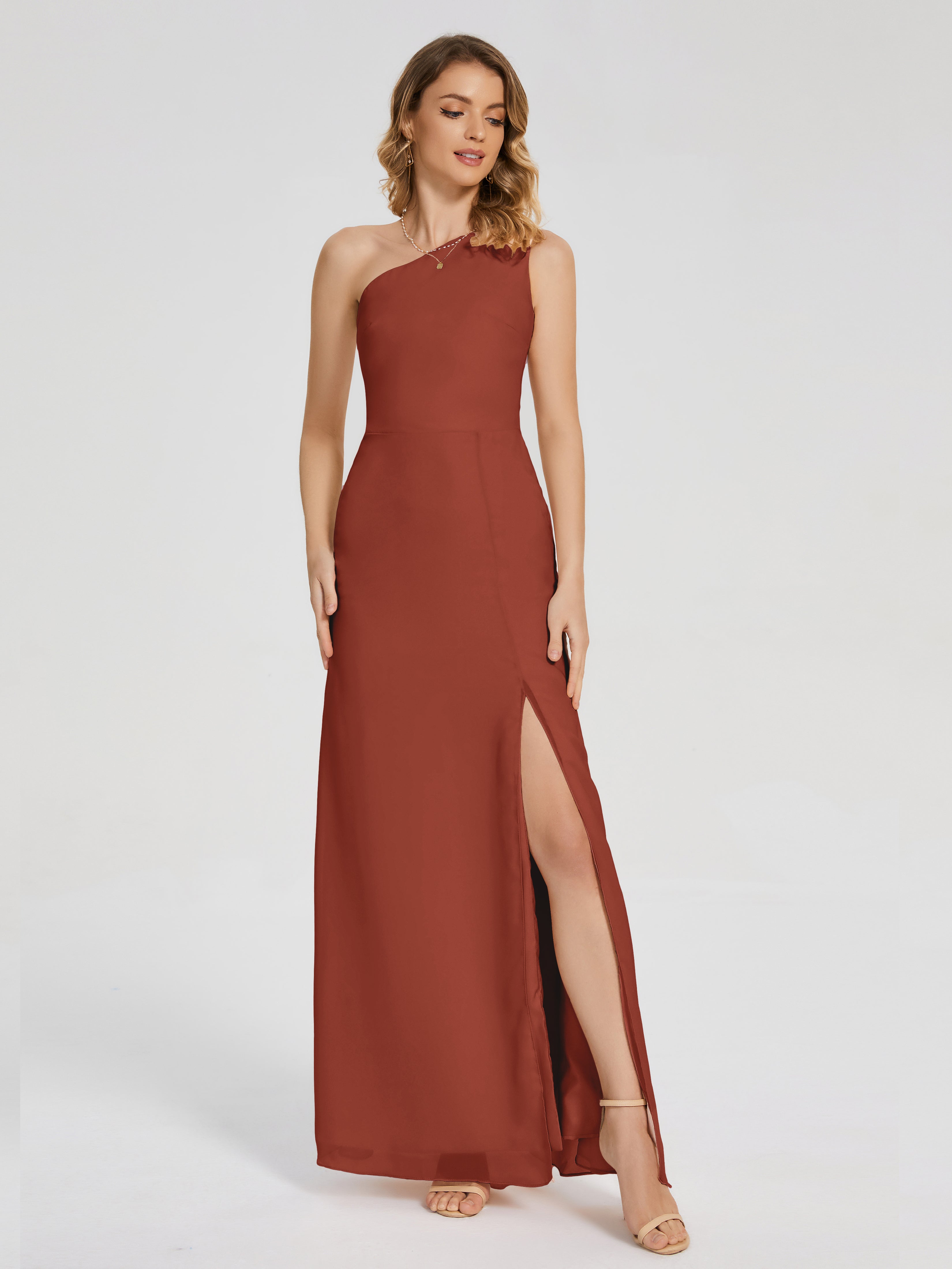 River Simple One Shoulder Split Chiffon Bridesmaid Dresses