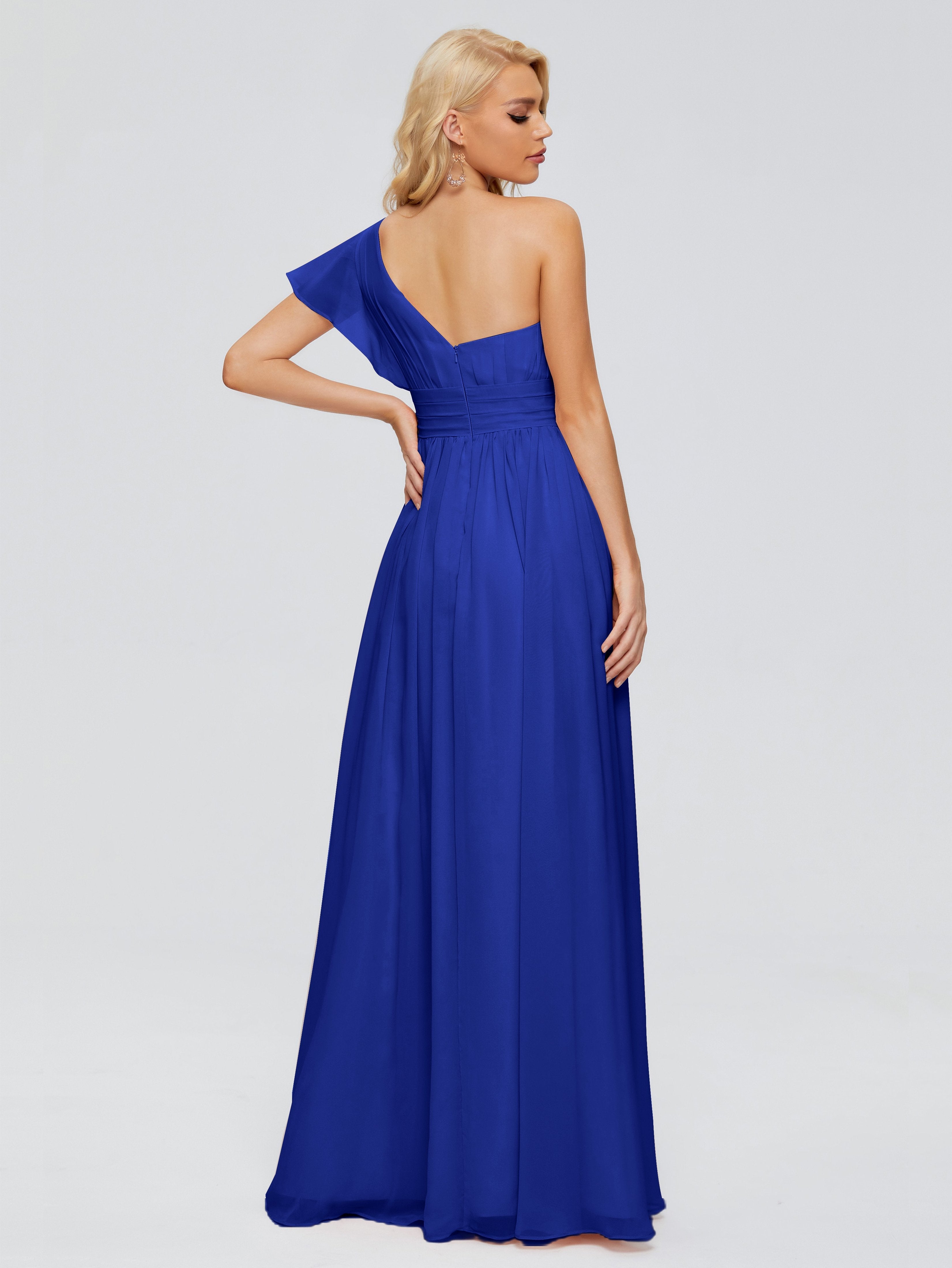 Royal Blue Dress Bridesmaid Rylee Gorgeous One Shoulder Pleated Chiffon Bridesmaid Dresses