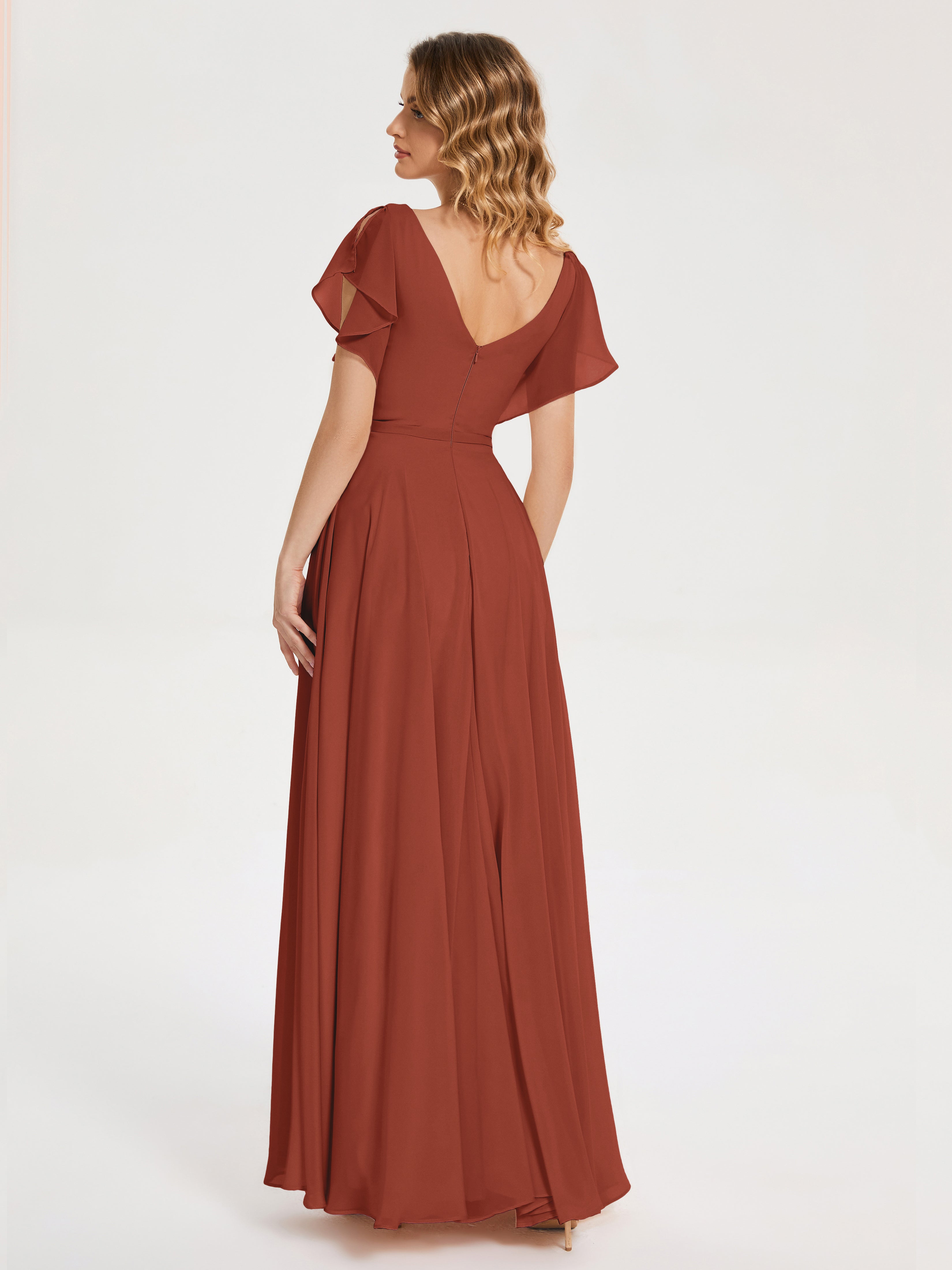 Rust Bridesmaid Dress Uk Kate Charming V Neck Split Chiffon Bridesmaid Dresses