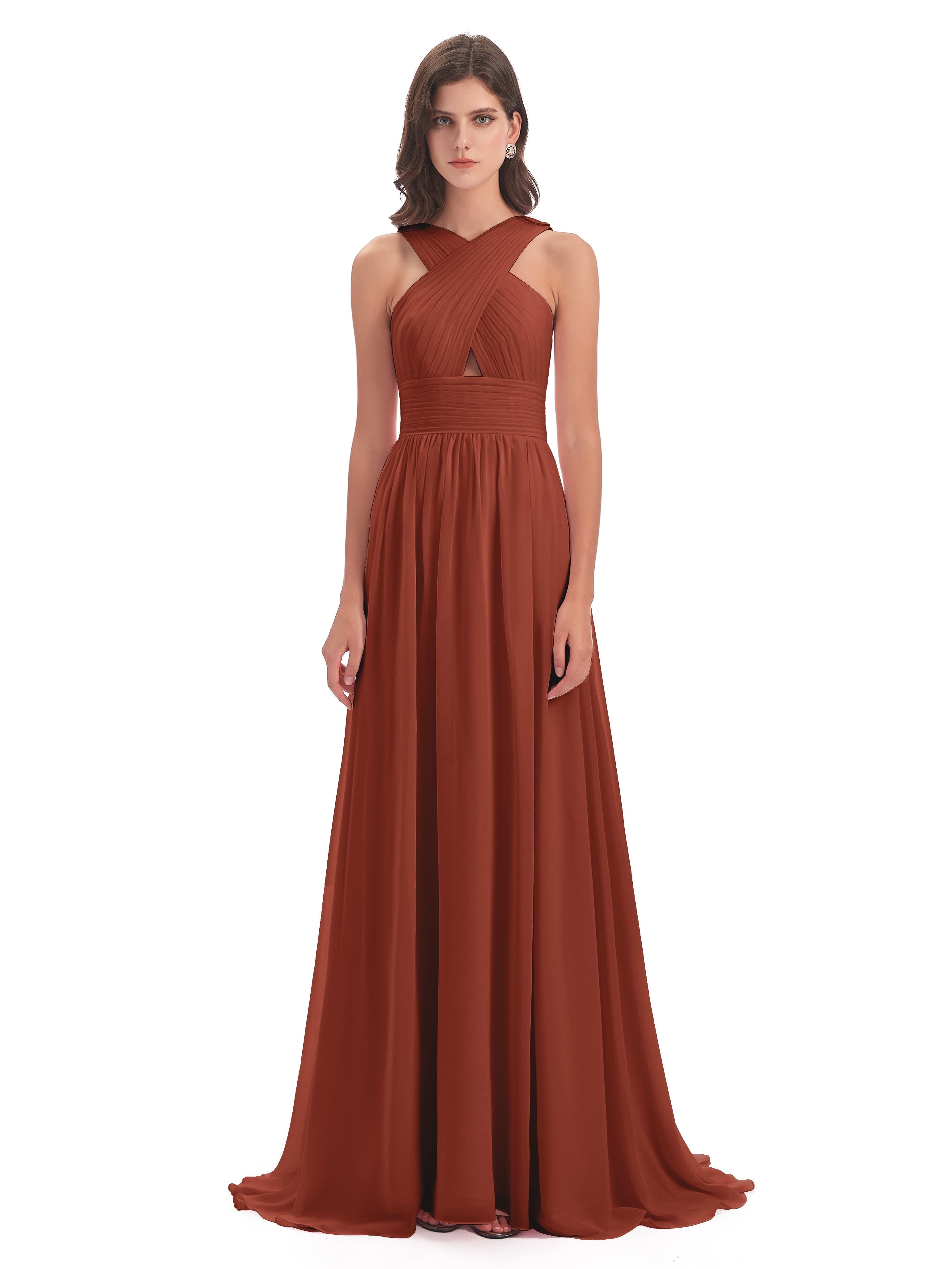 Rust Bridesmaid Millie Alarming Formal Sweep-Brush Train Chiffon Bridesmaid Dresses