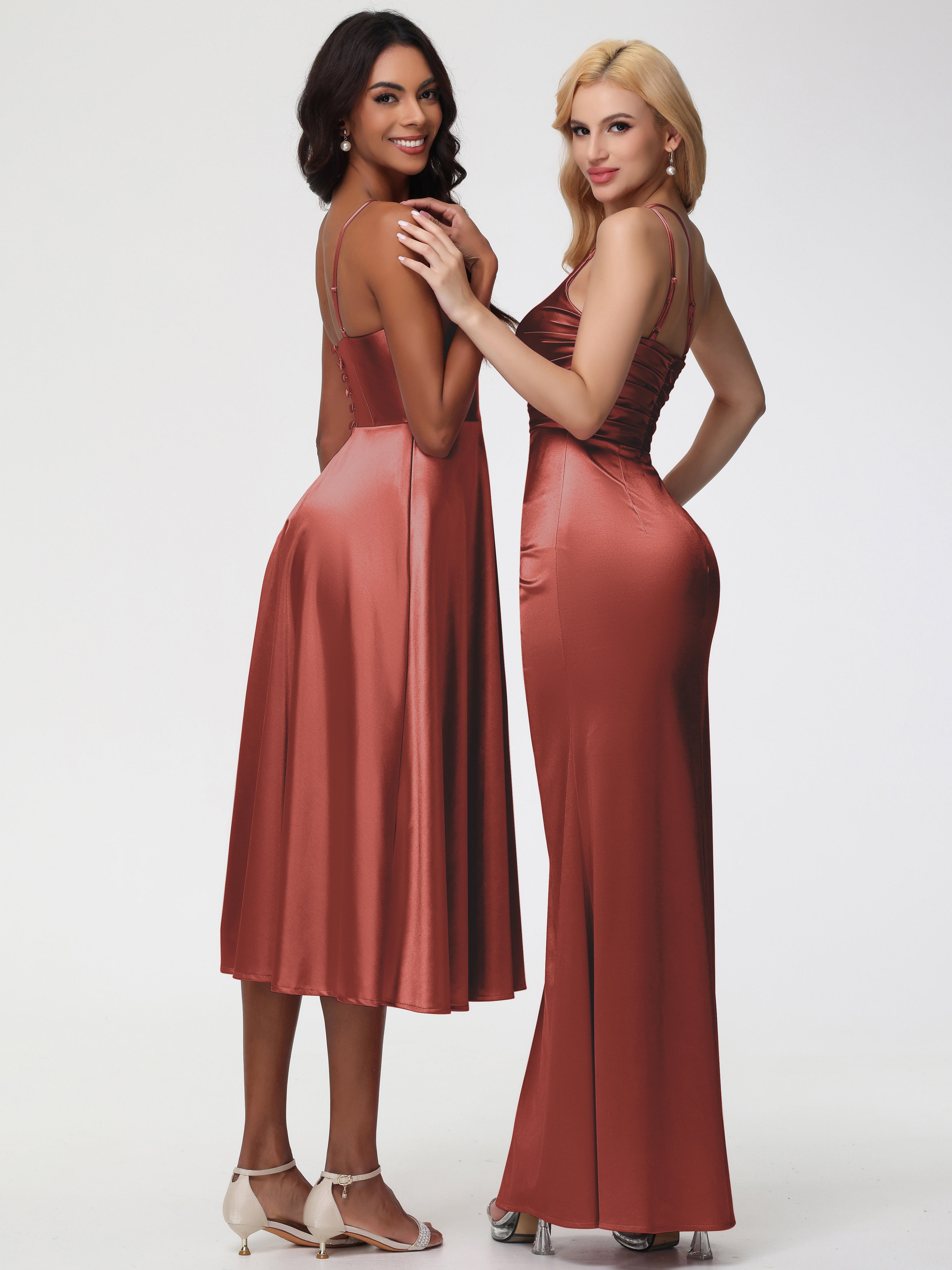 Rust Red Bridesmaid Dresses One Shoulder Trumpet/Mermaid Sleeveless Pleats Long Stretch Satin Bridesmaid Dresses
