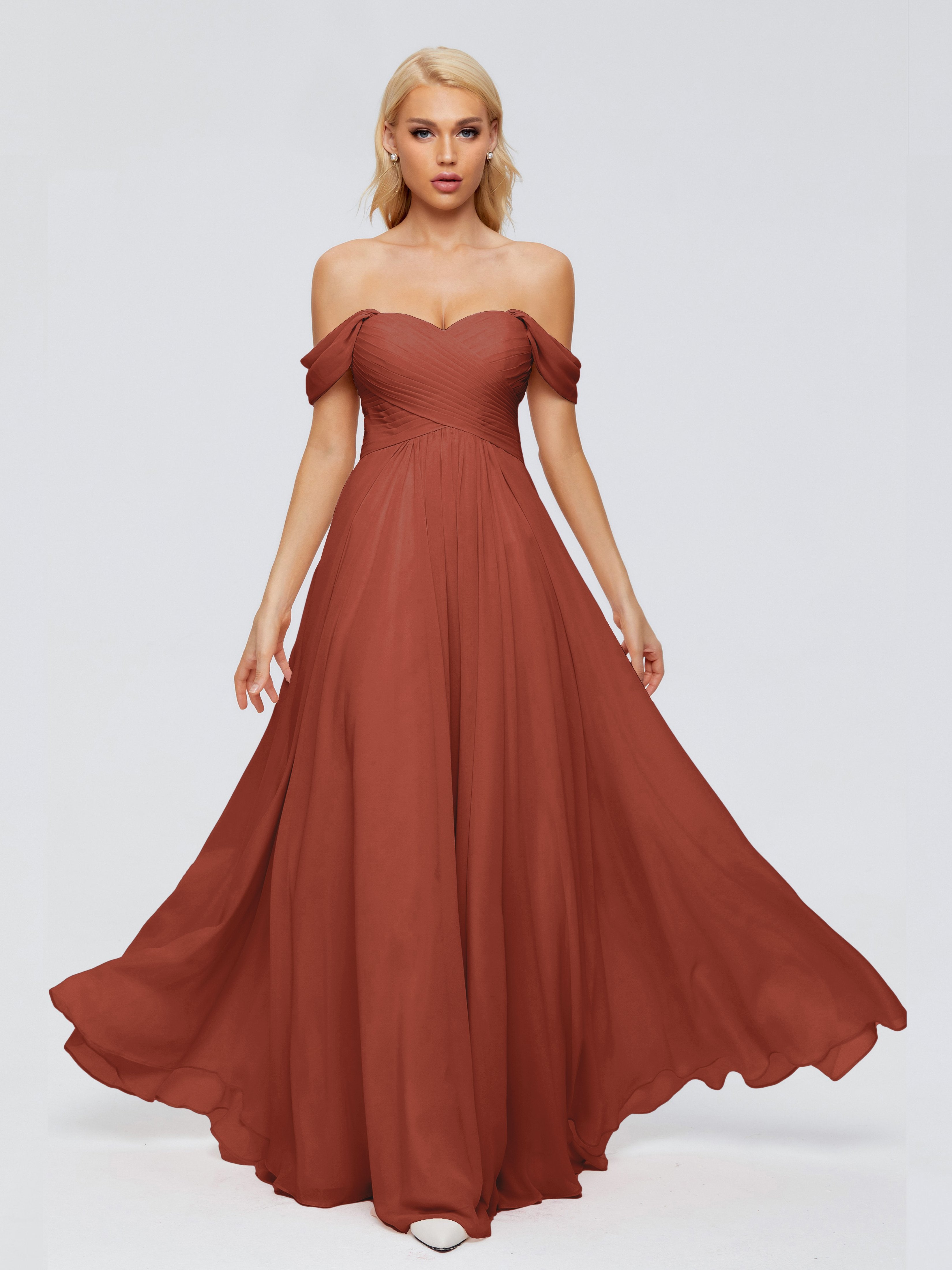 Rusty Orange Bridesmaid Dresses Trinity Gorgeous Off The Shoulder Long Chiffon Bridesmaid Dresses