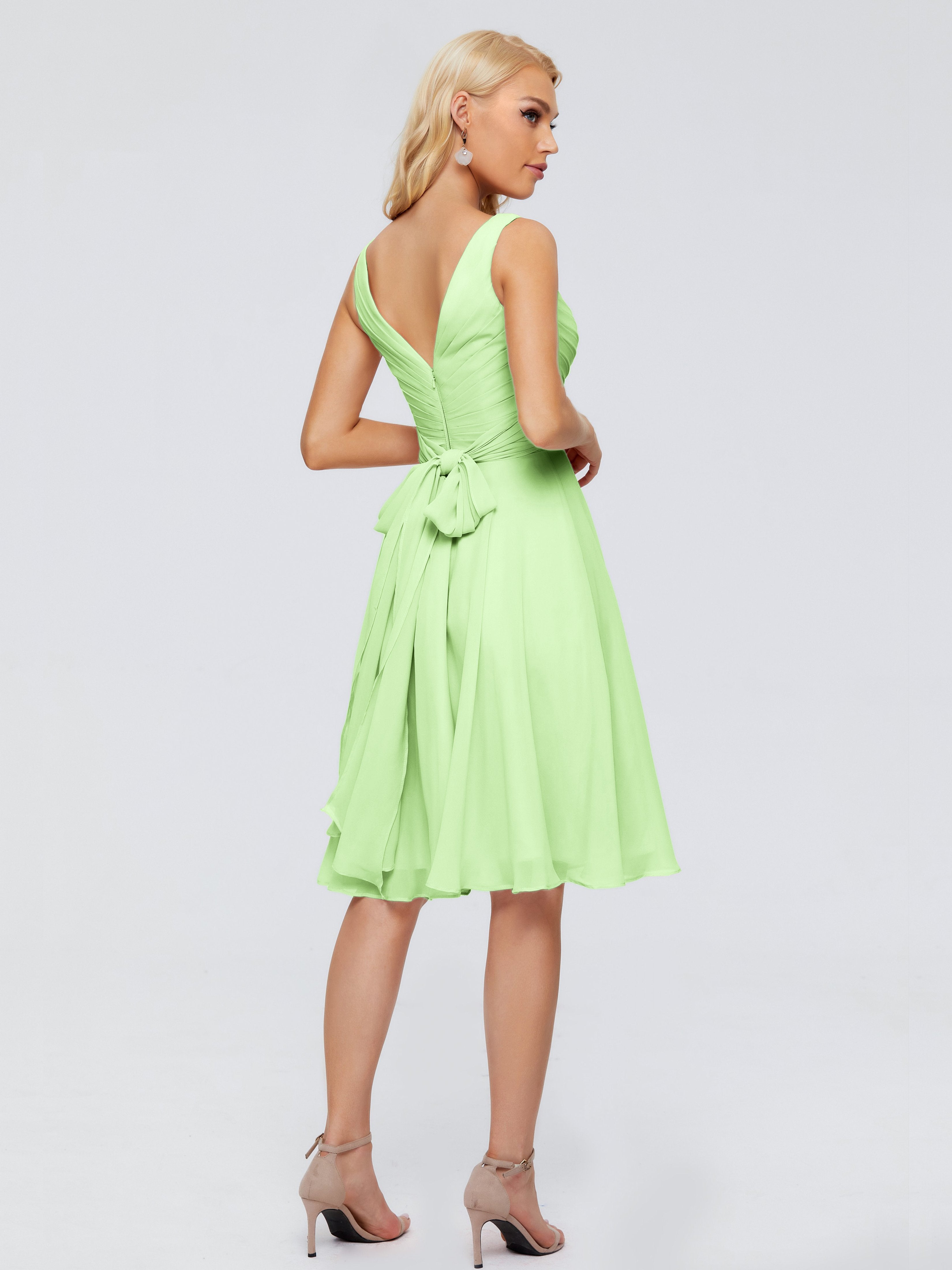 Sage Girls Bridesmaid Dresses Jocelyn Lovely V-Neck Short Chiffon Bridesmaid Dresses