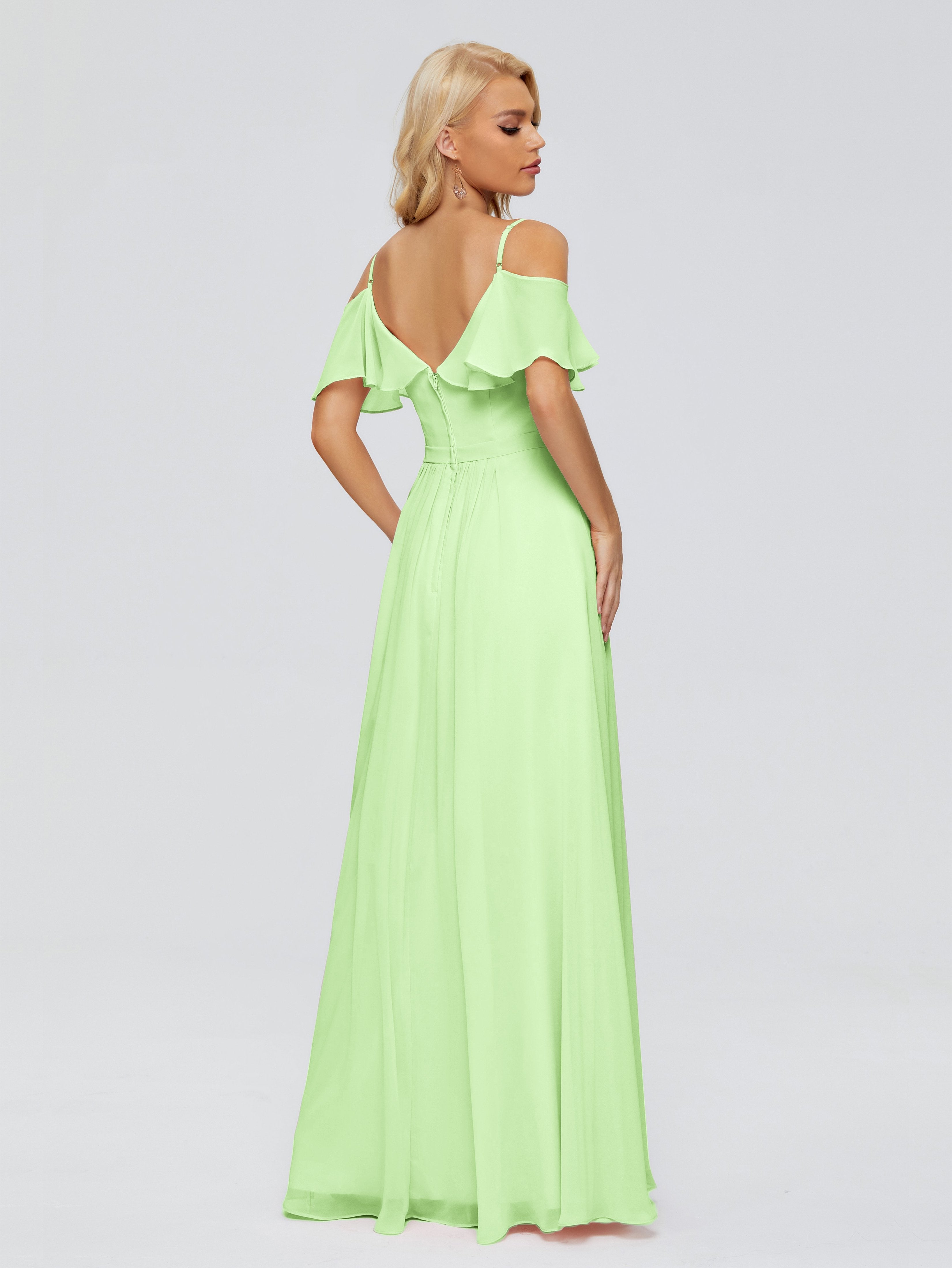 Sage Green Bridesmaid Katherine Girls Spaghetti Straps Ruffles Chiffon Bridesmaid Dresses
