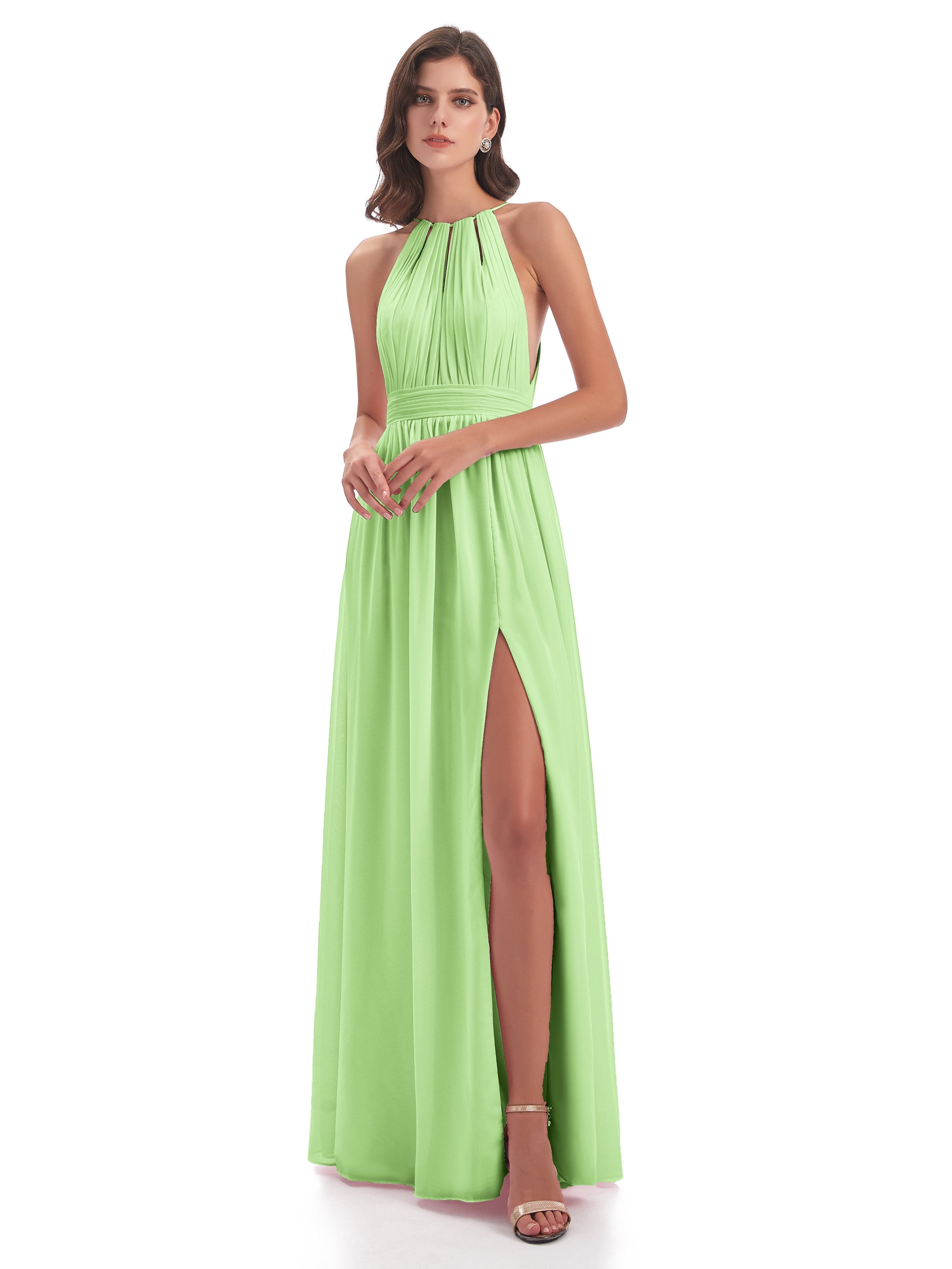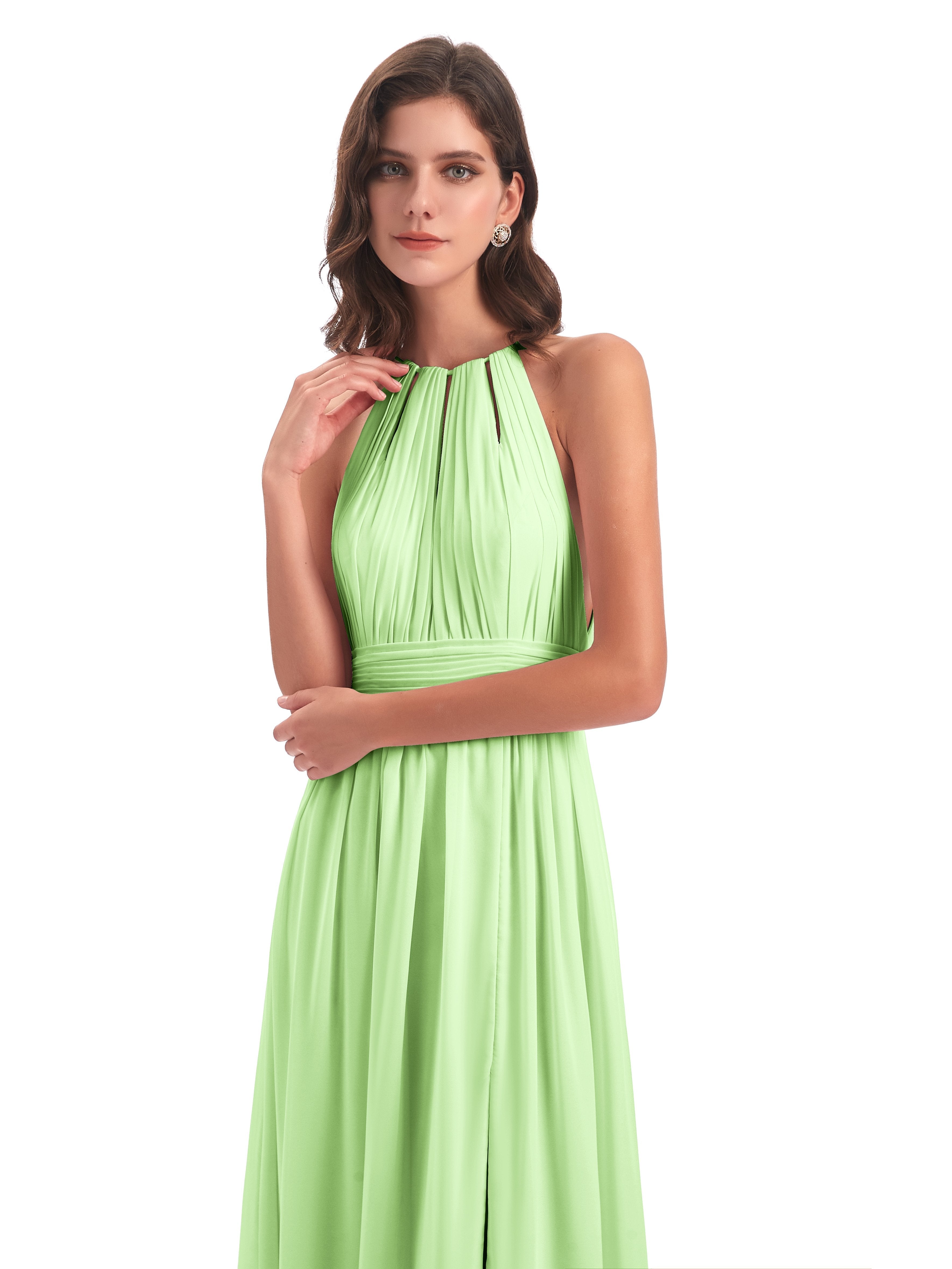 Sage Green Dress Bridesmaid Harriet Exquisite Halter Split Long Chiffon Bridesmaid Dresses