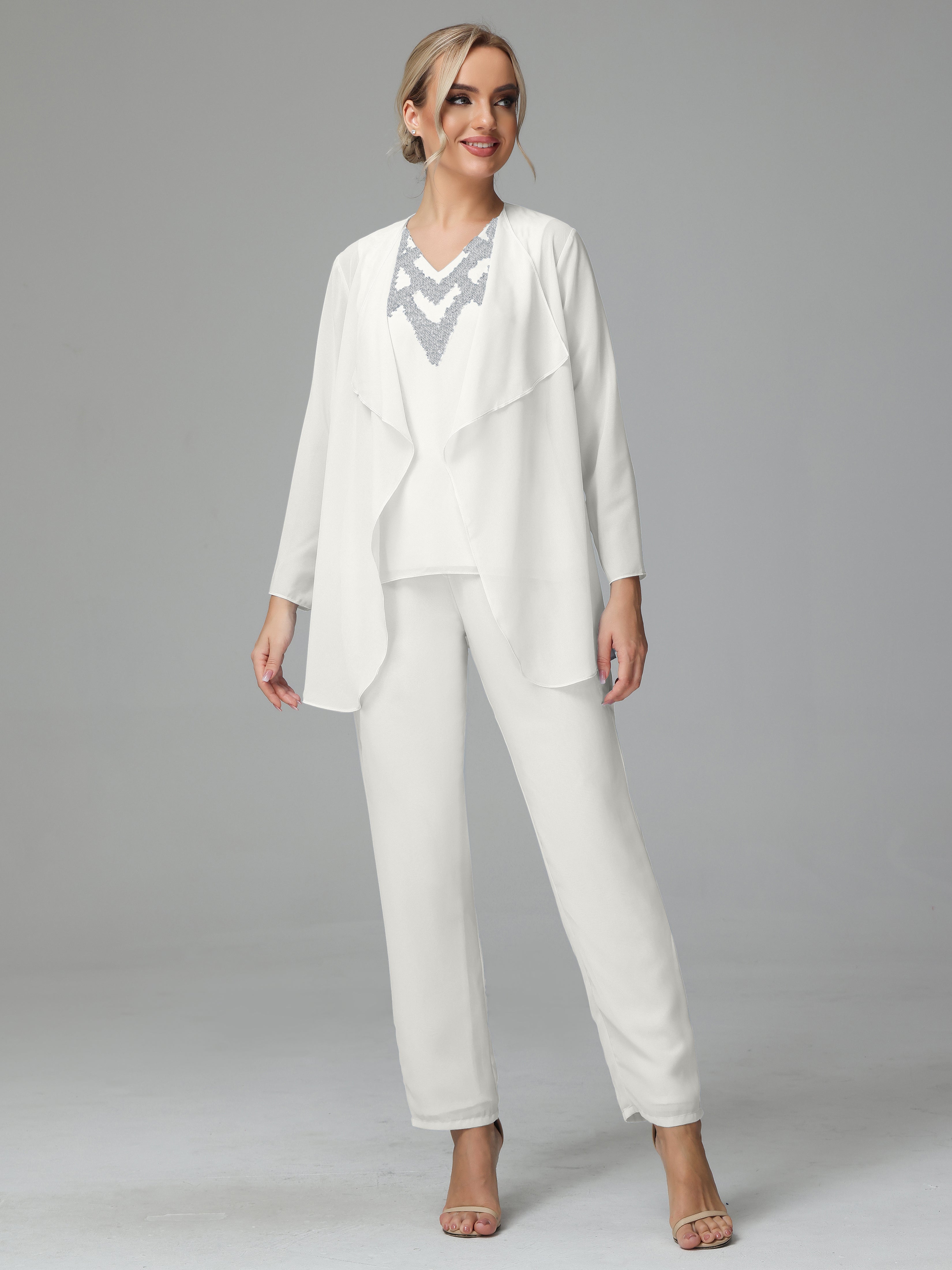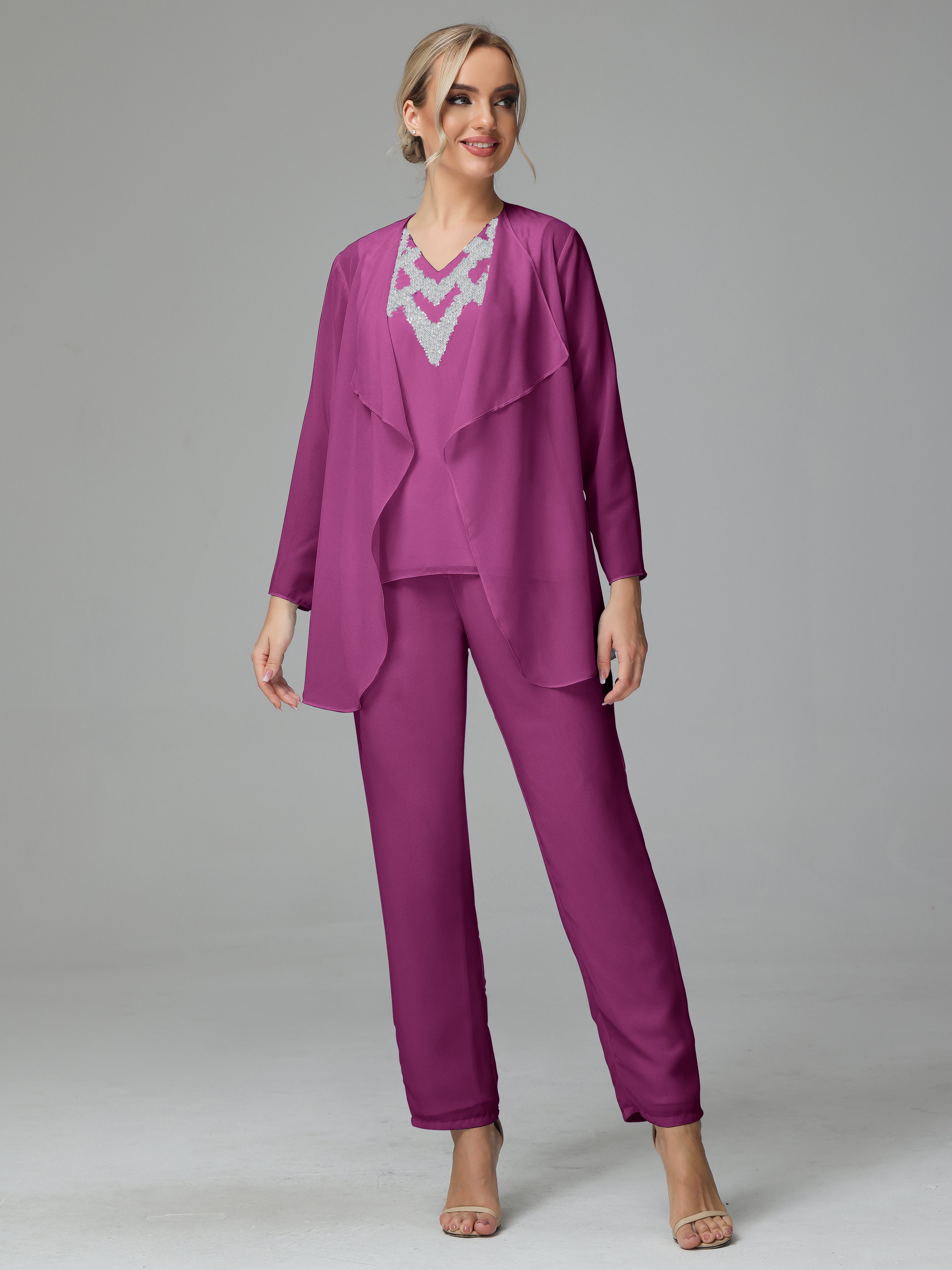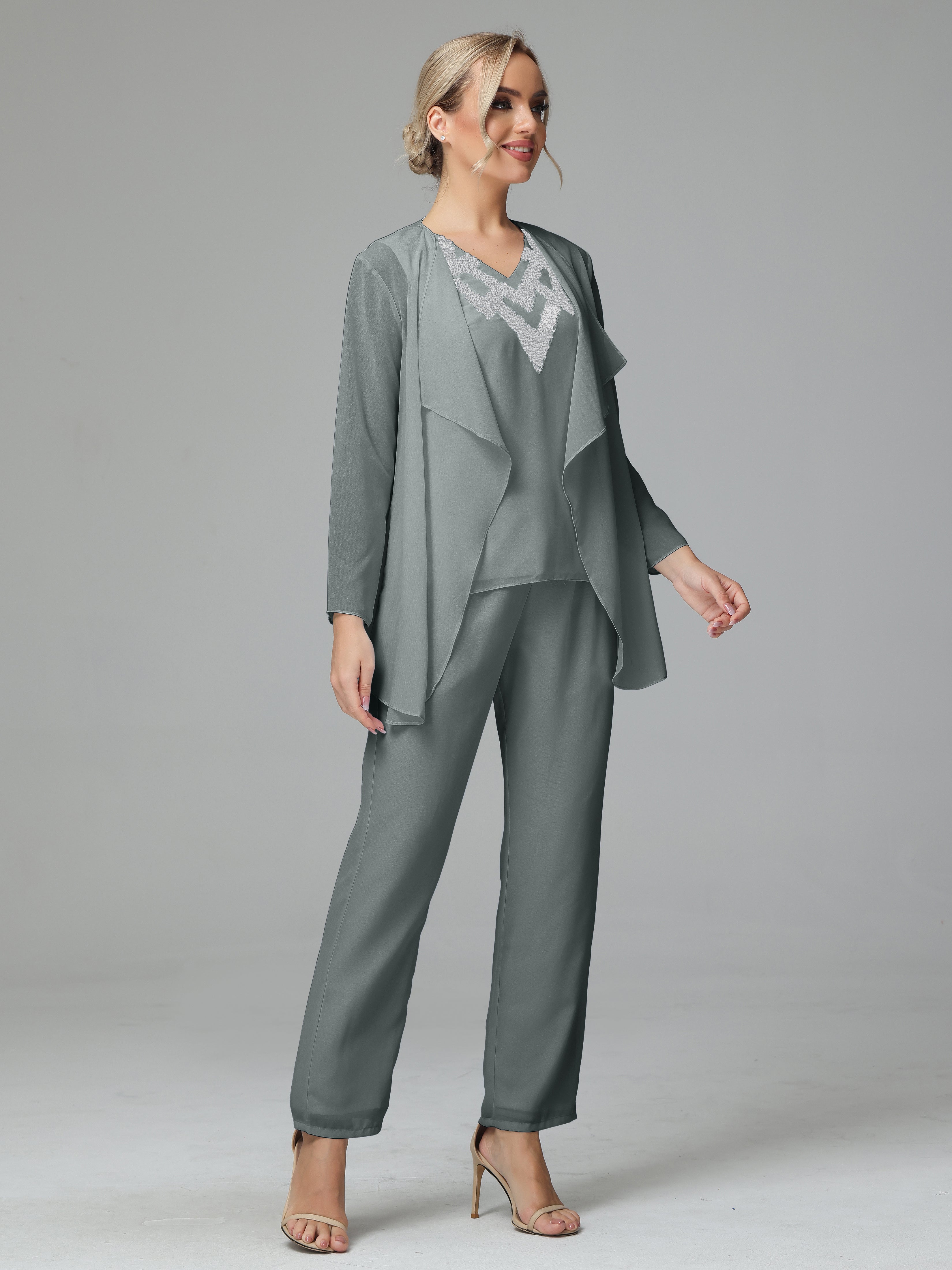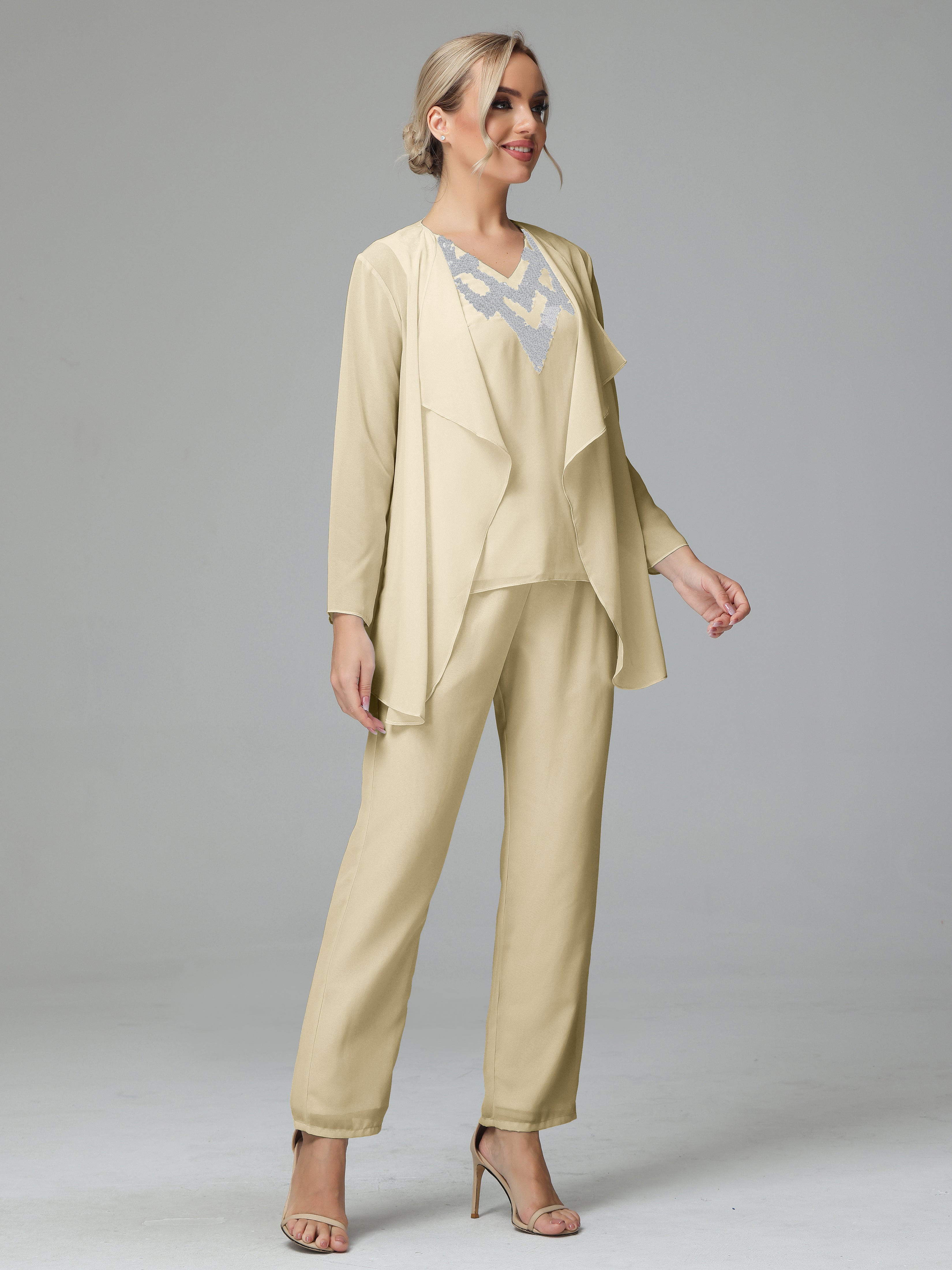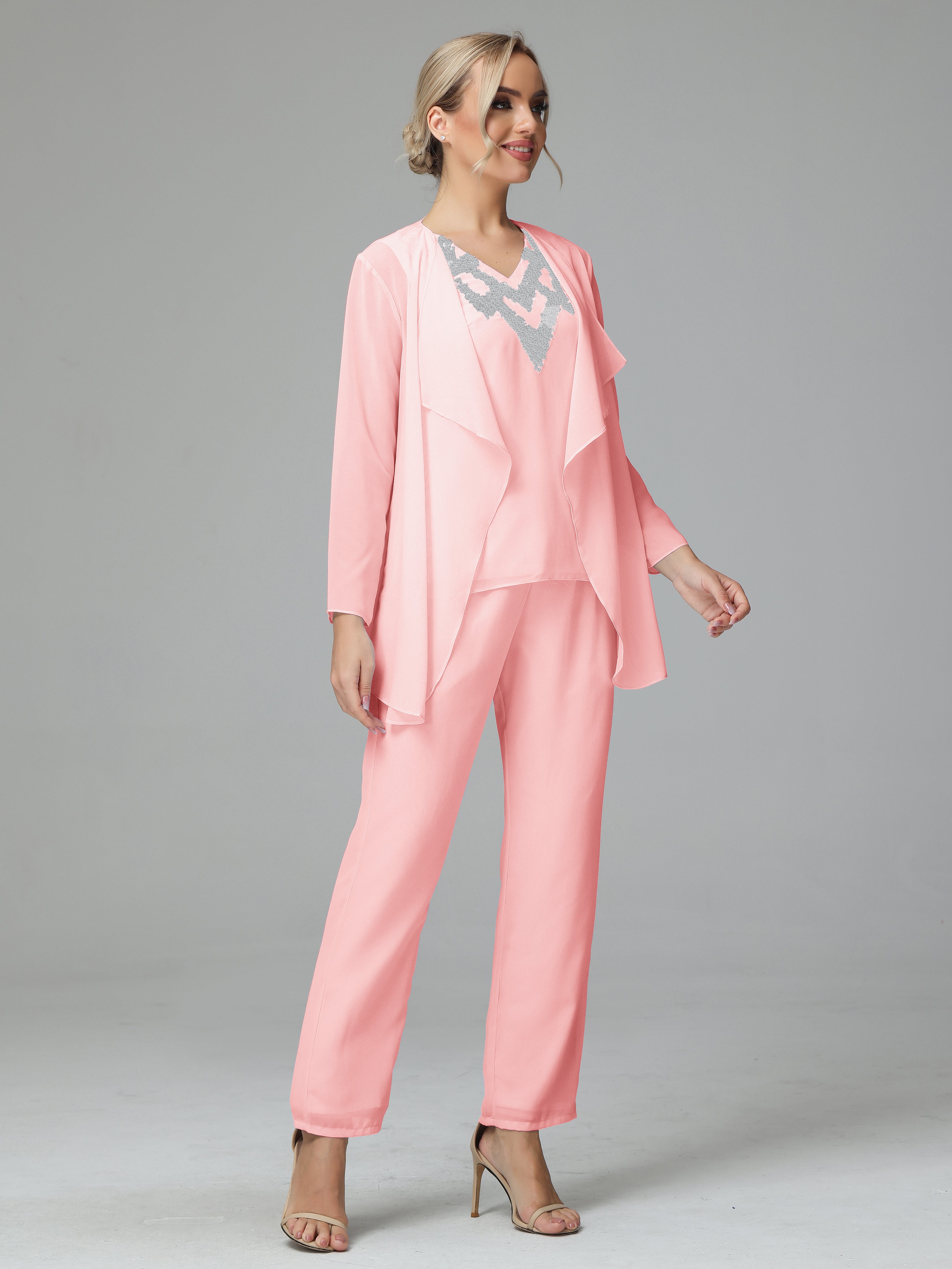 Sequins 3 Pieces Chiffon Mother of Bride Dress Pant Suits