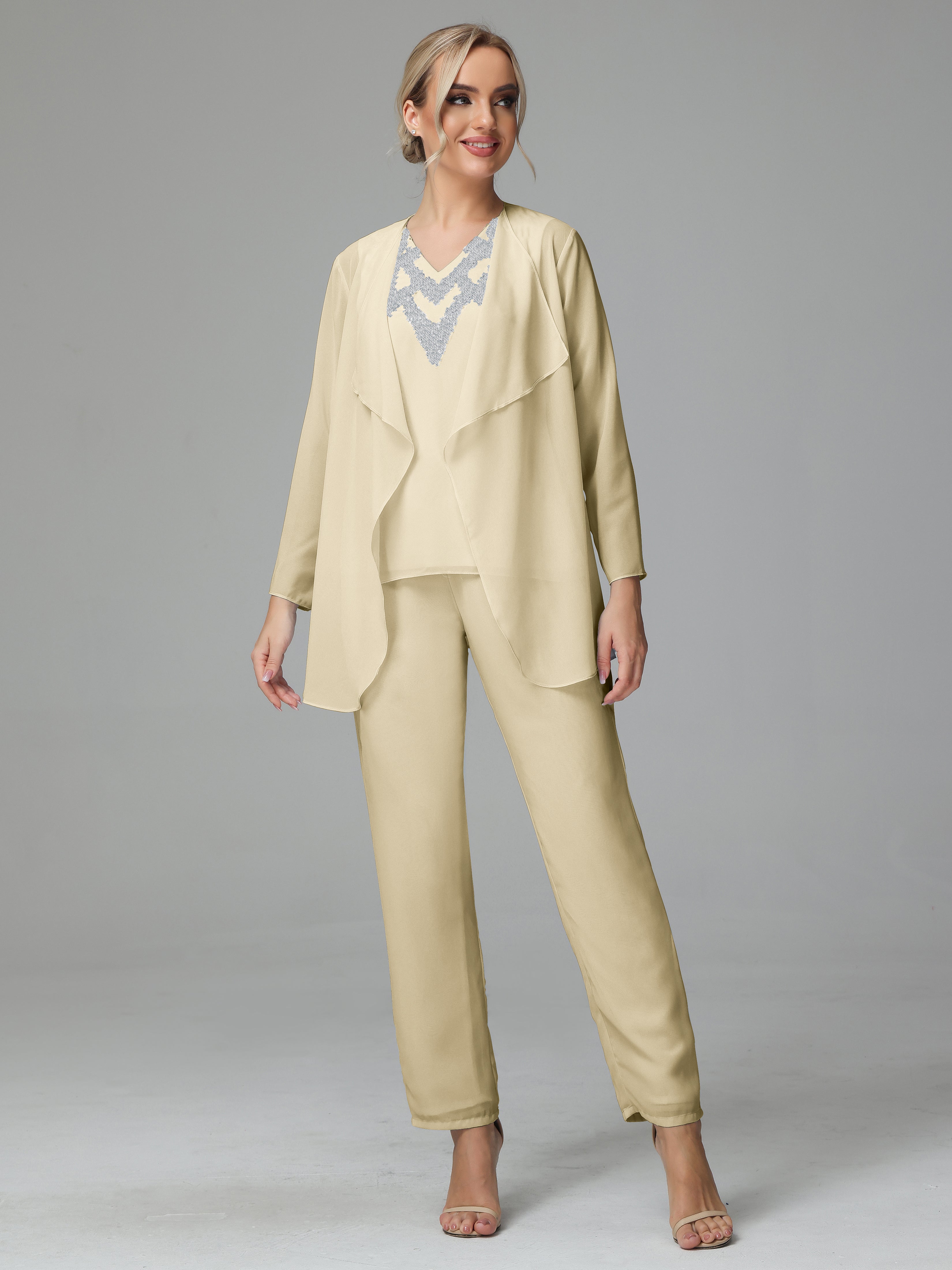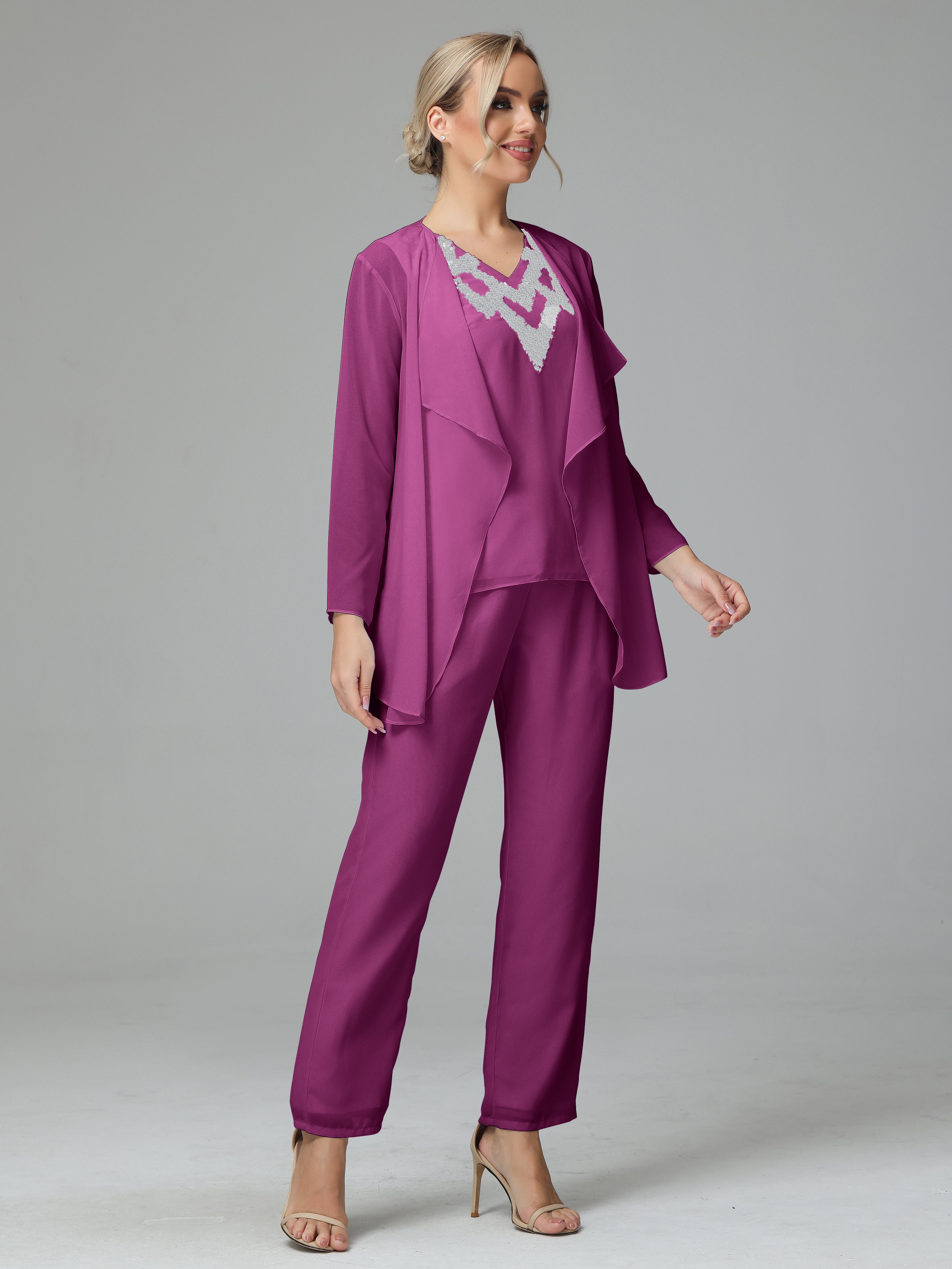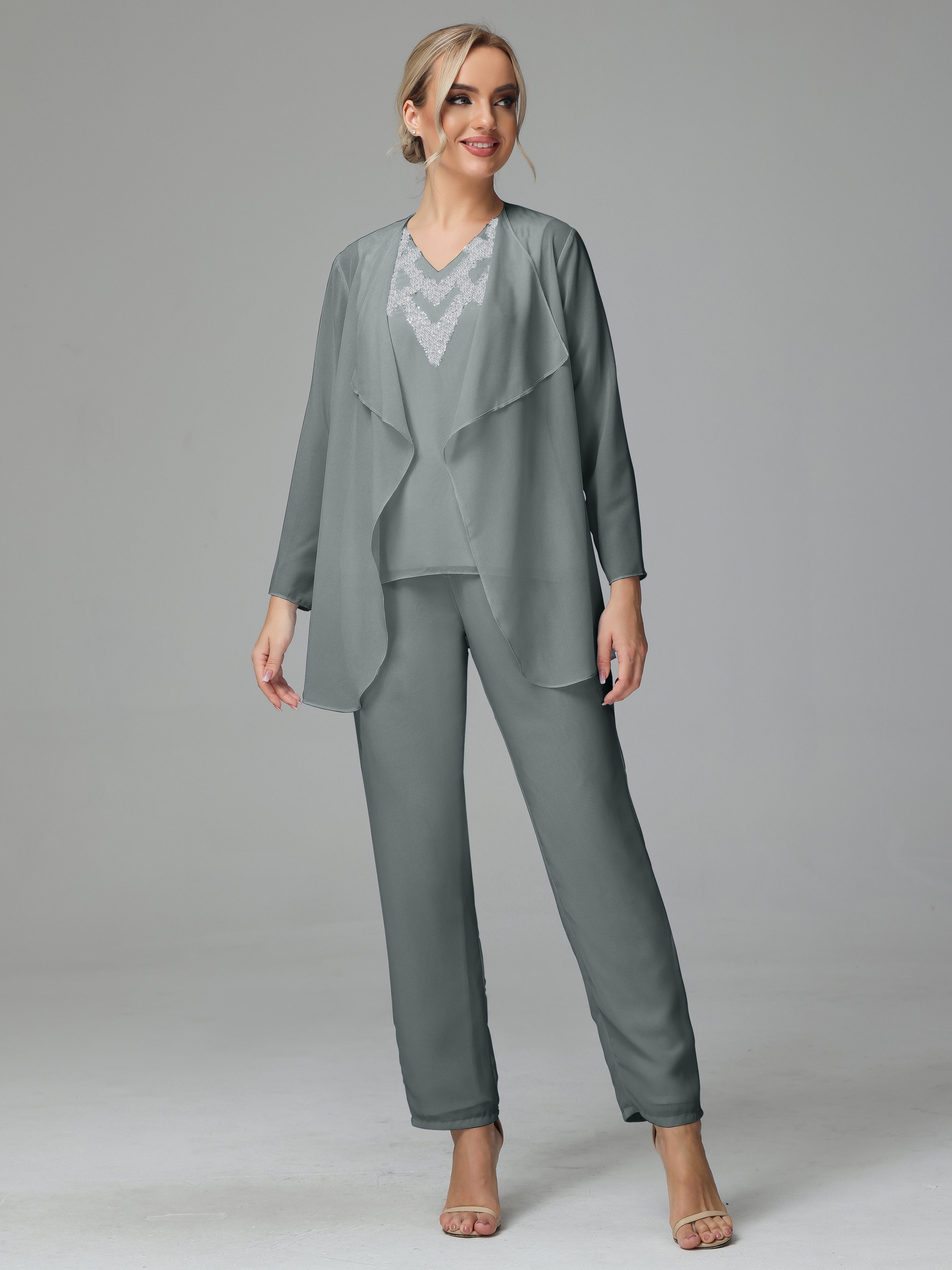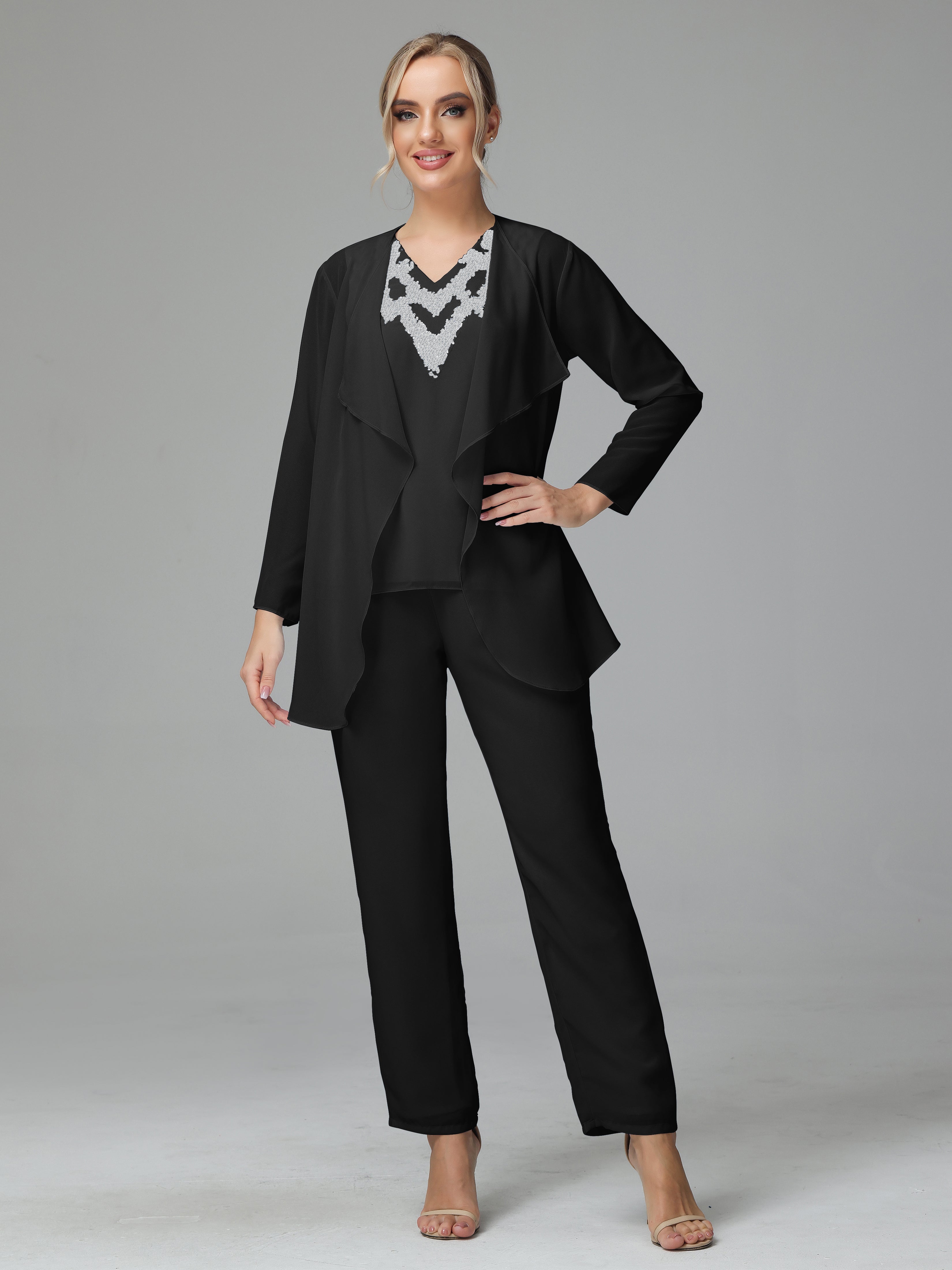 Sequins 3 Pieces Chiffon Mother of Bride Dress Pant Suits