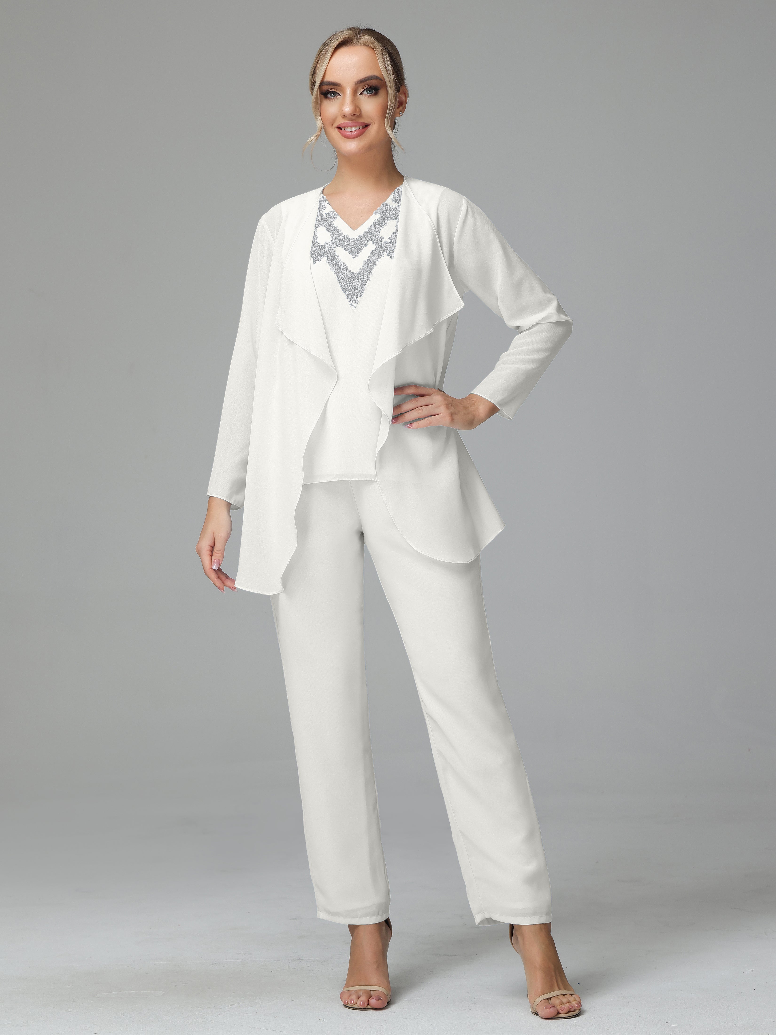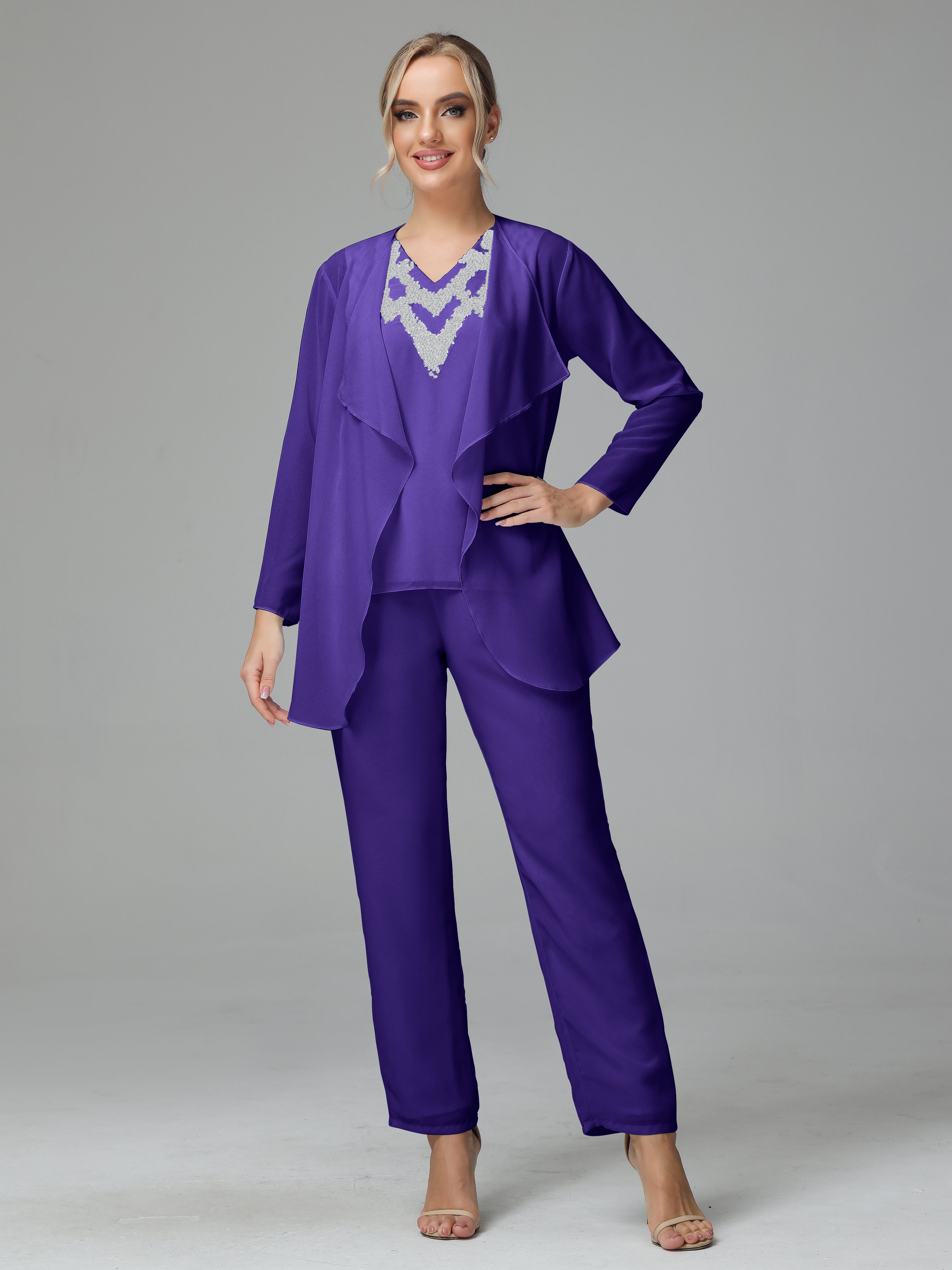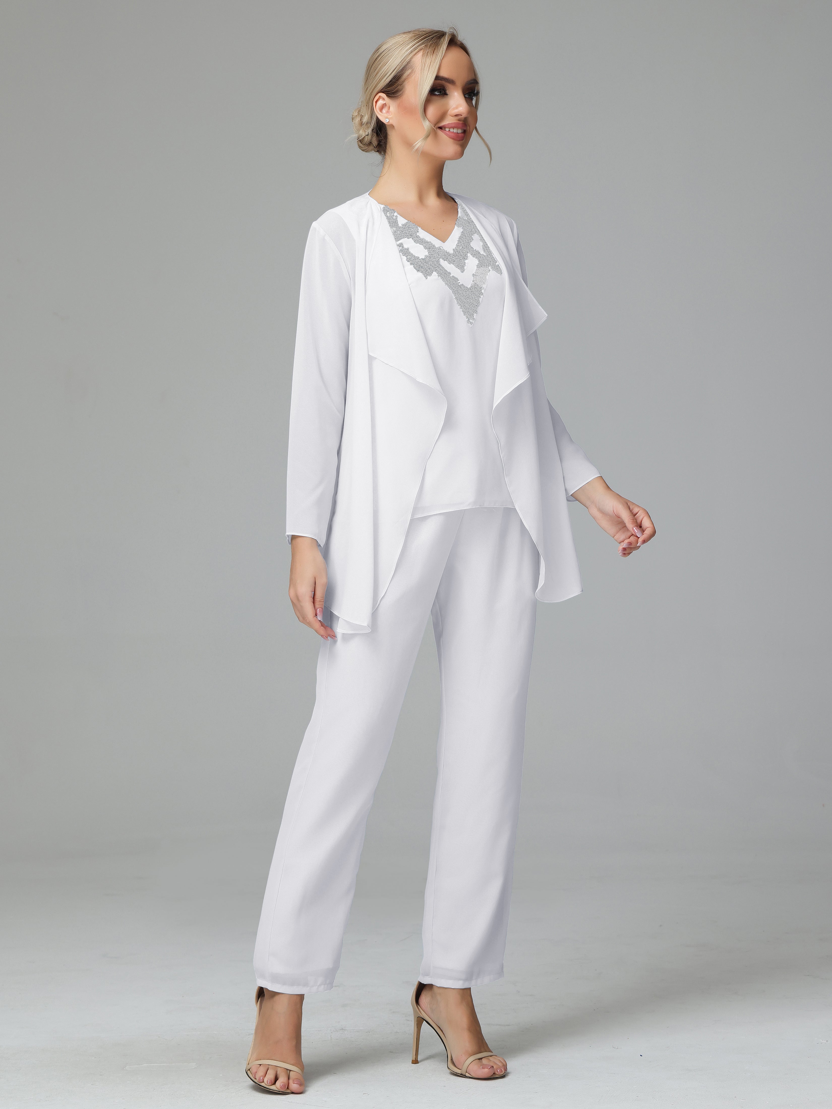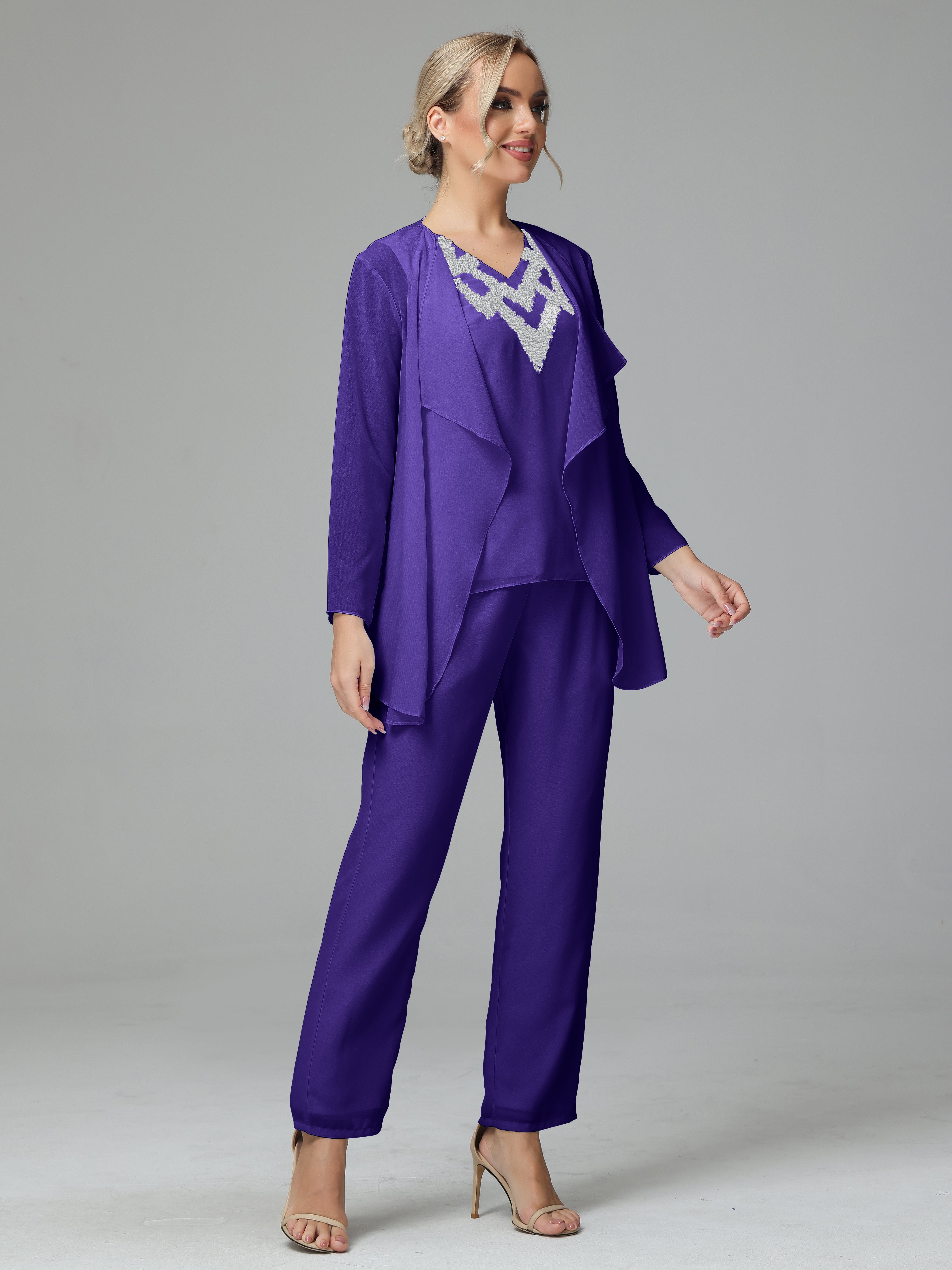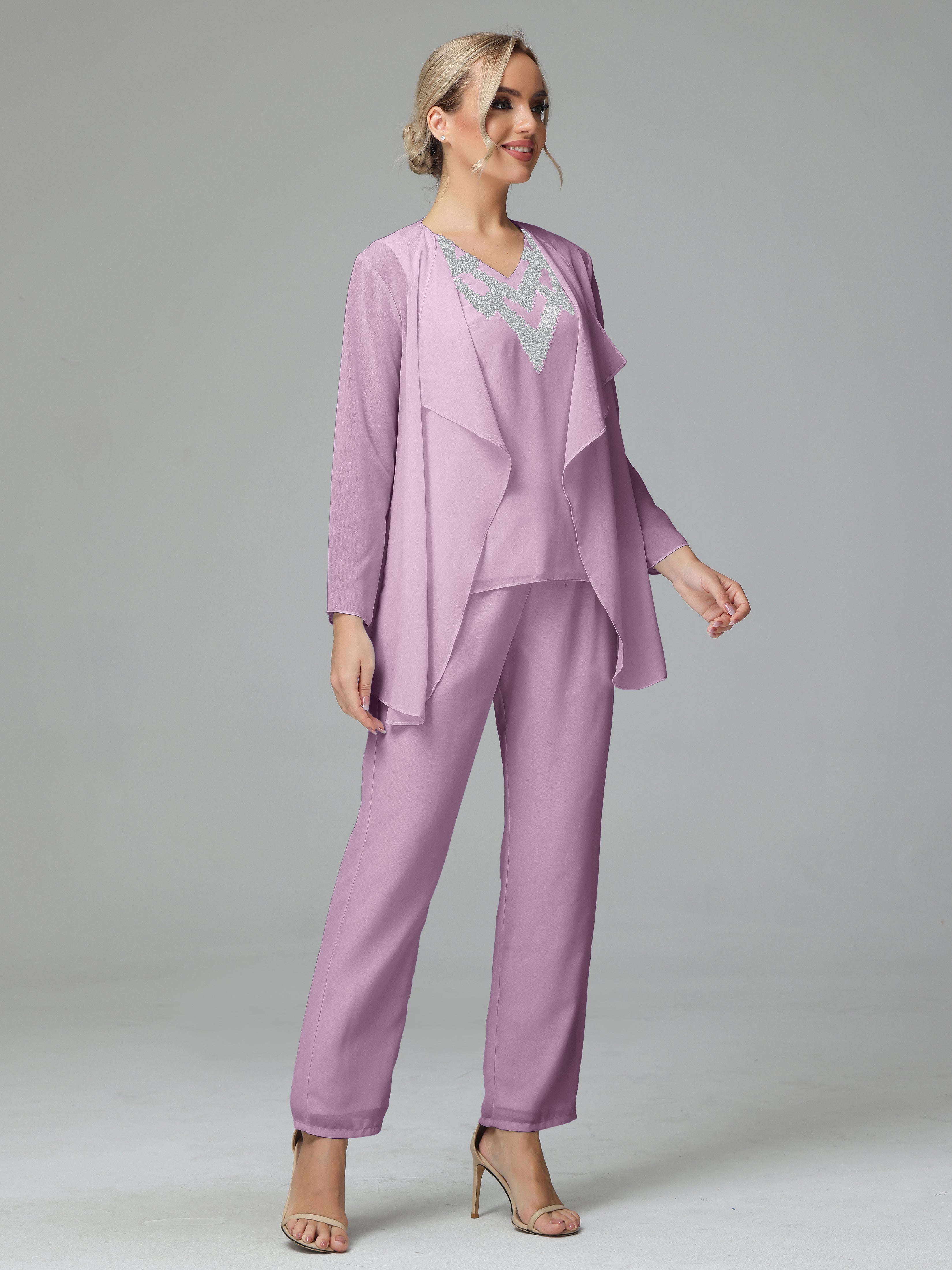Sequins 3 Pieces Chiffon Mother of Bride Dress Pant Suits