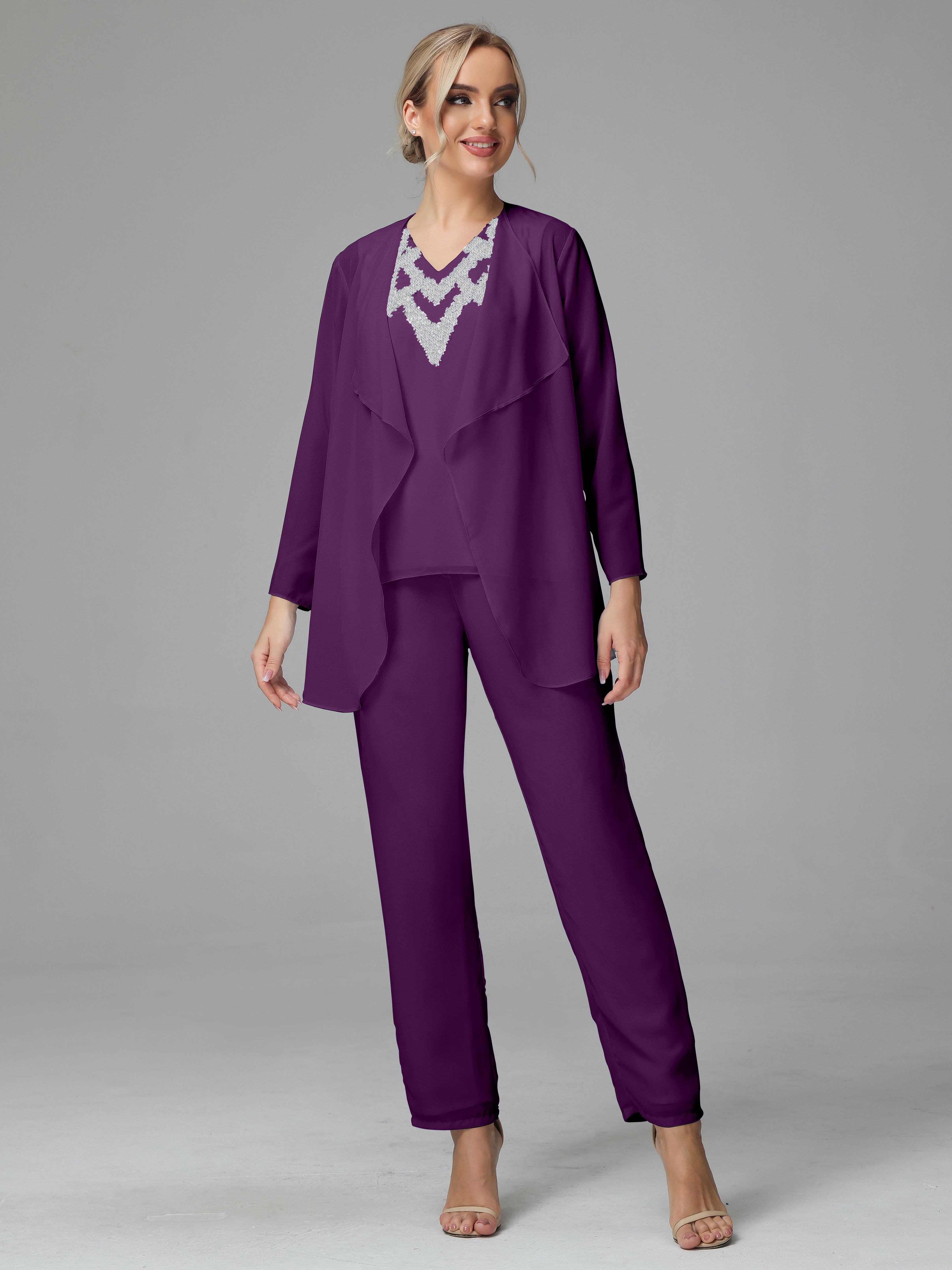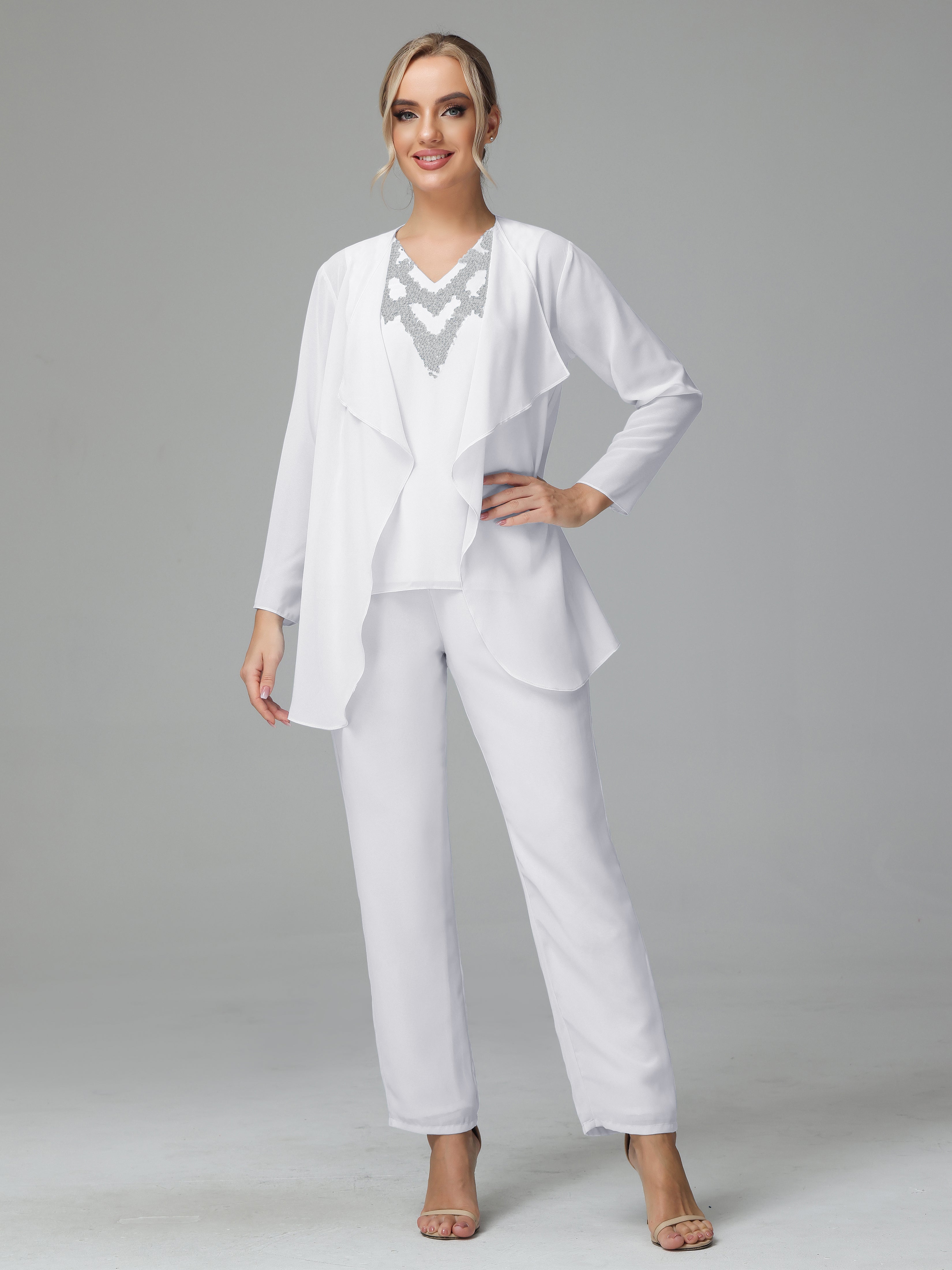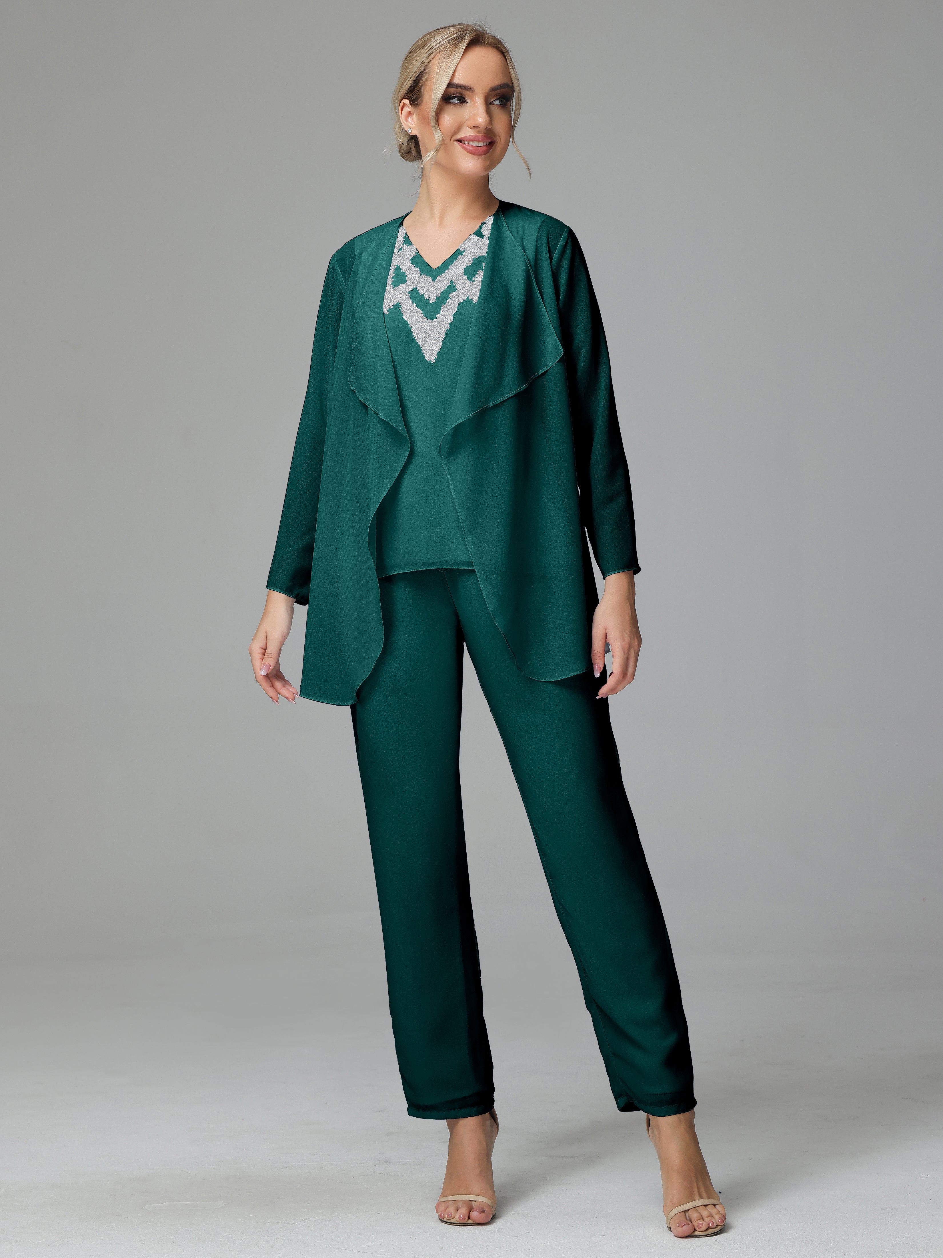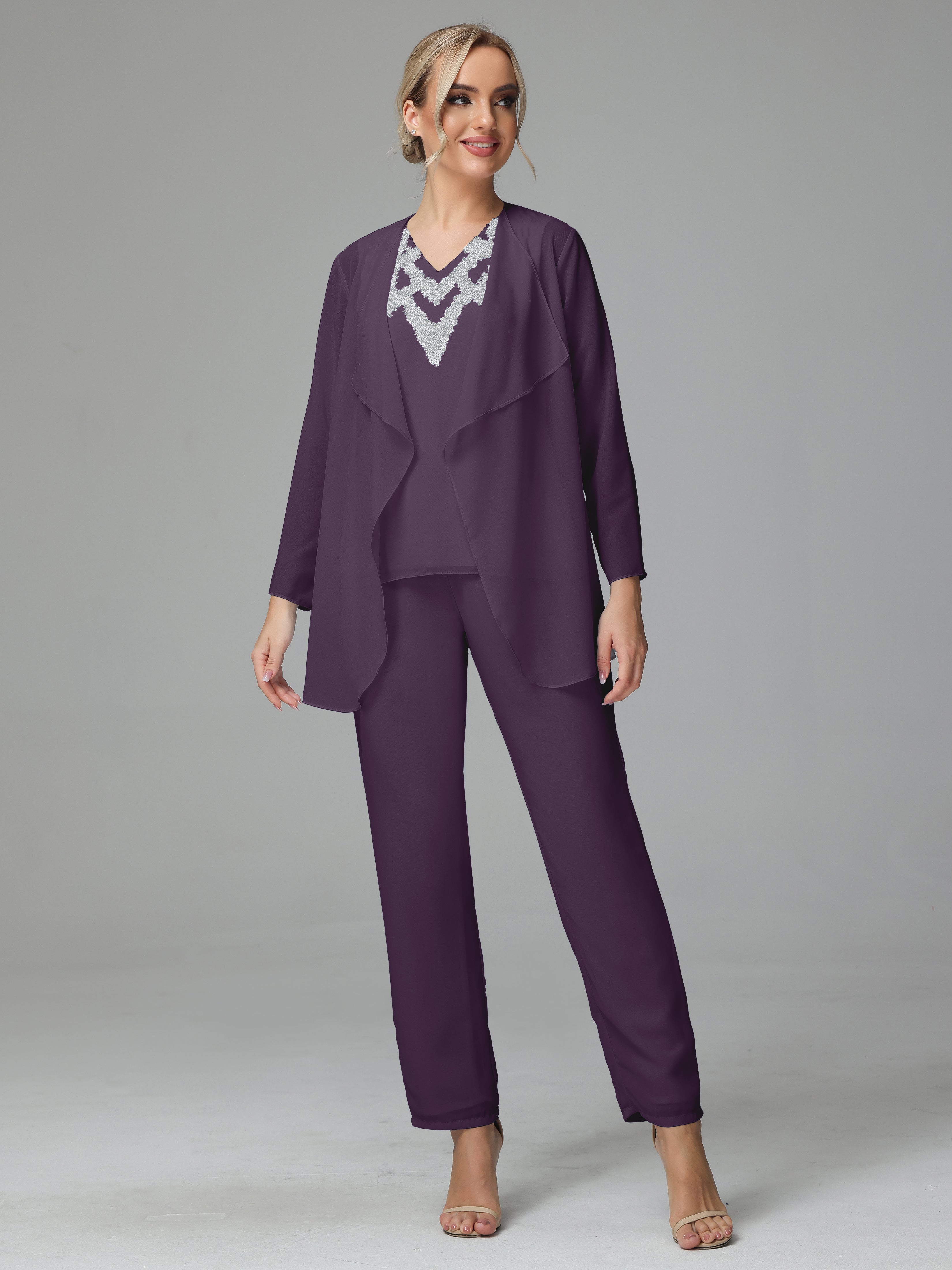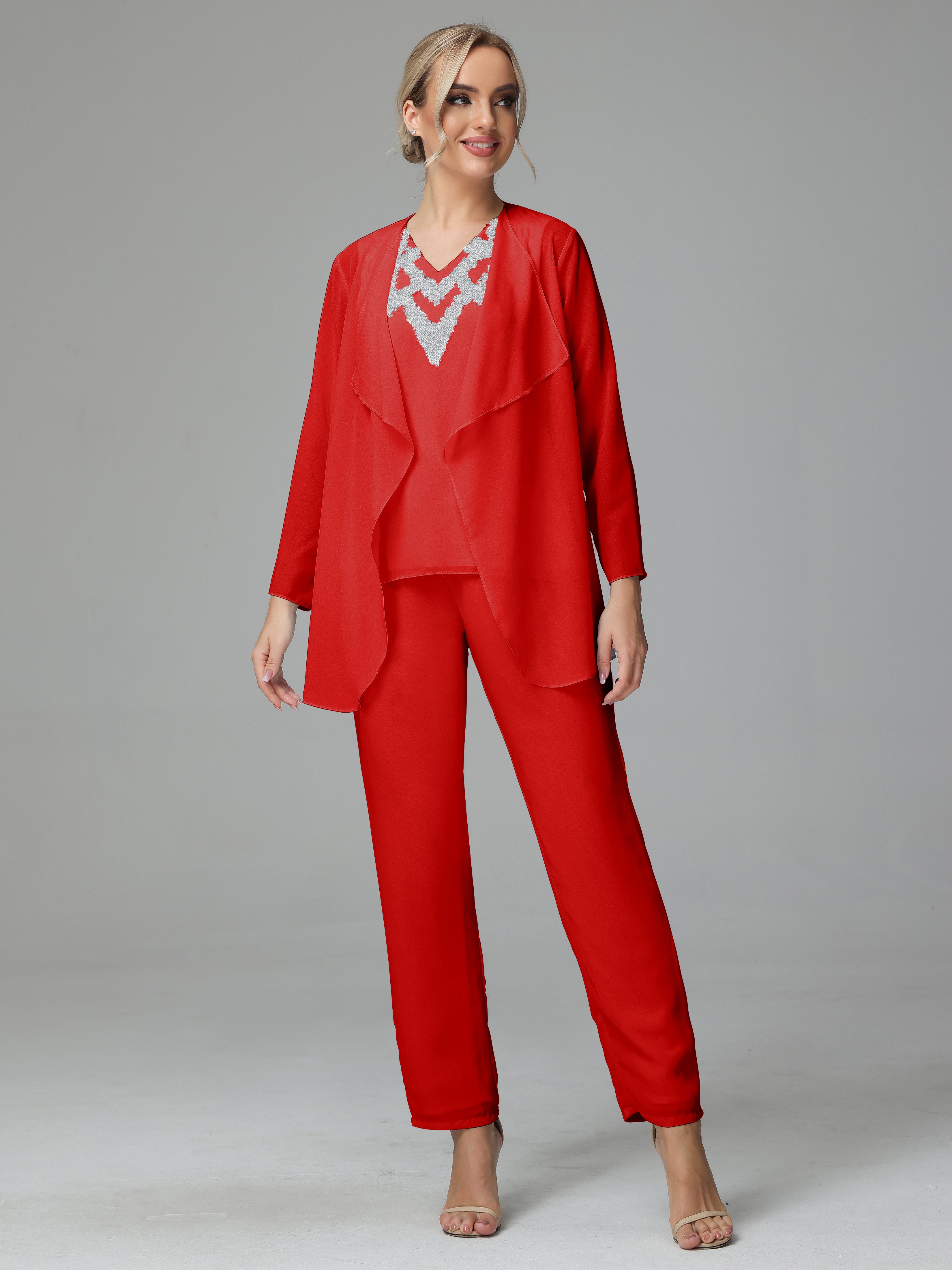 Sequins 3 Pieces Chiffon Mother of Bride Dress Pant Suits