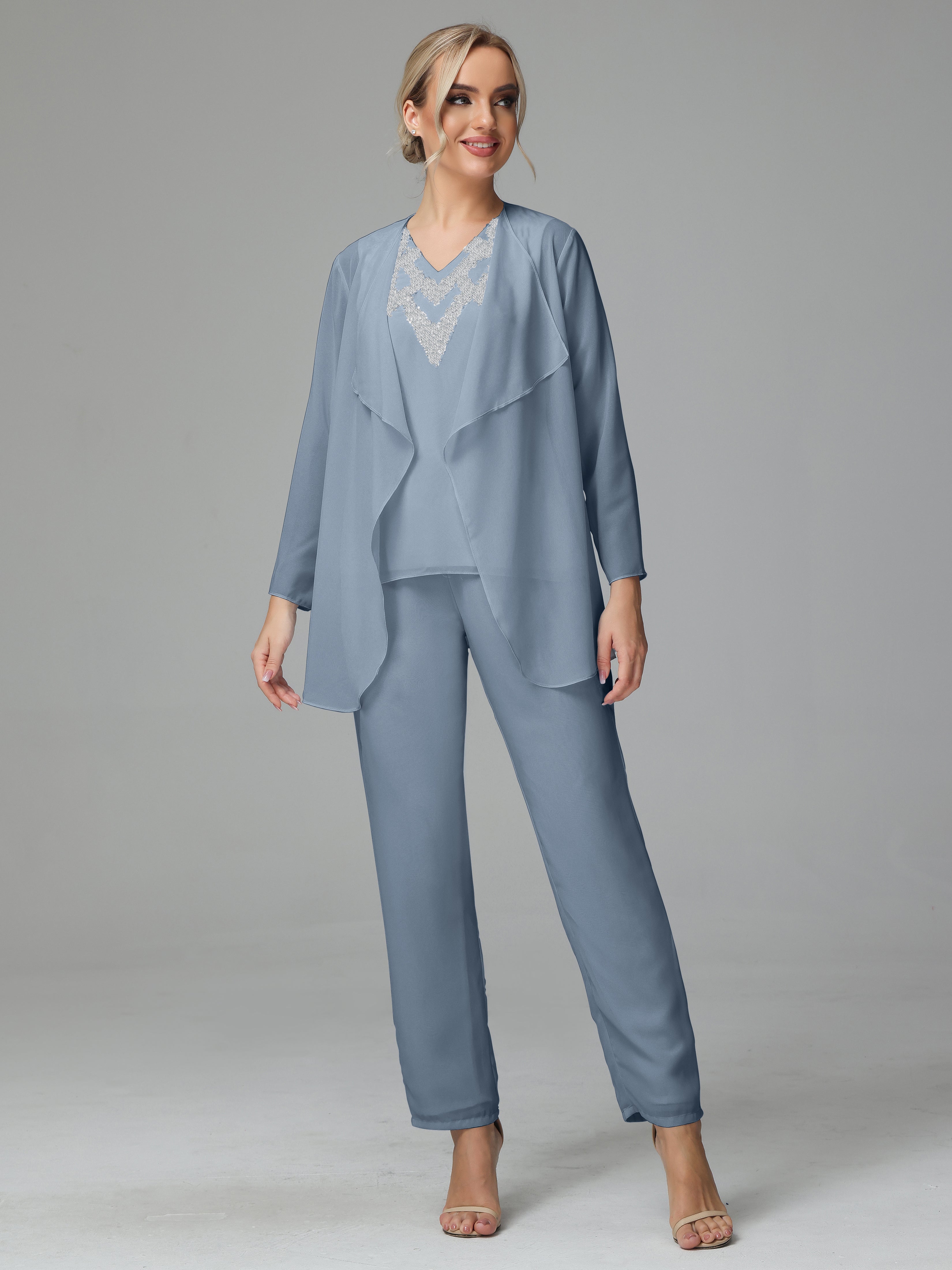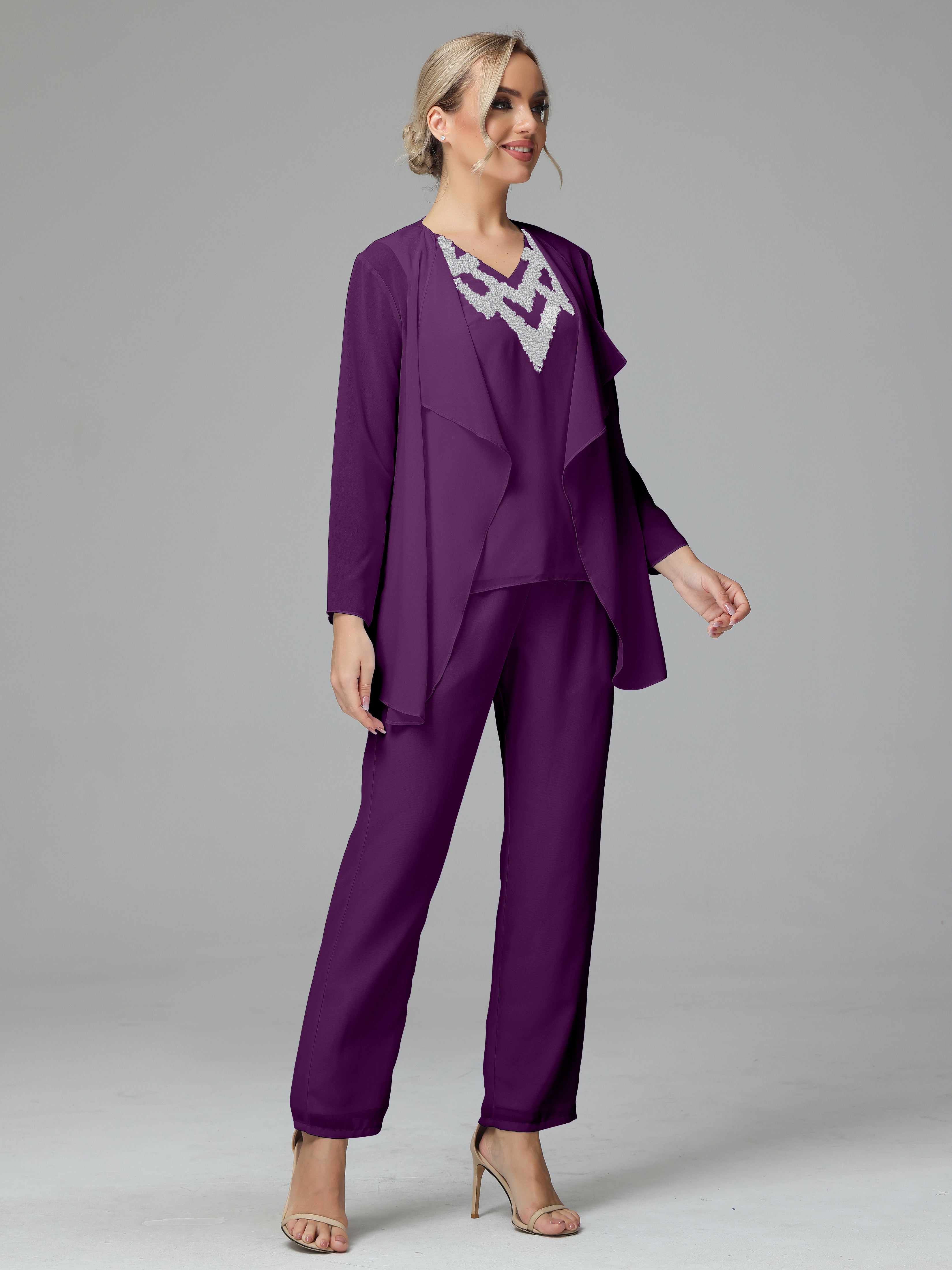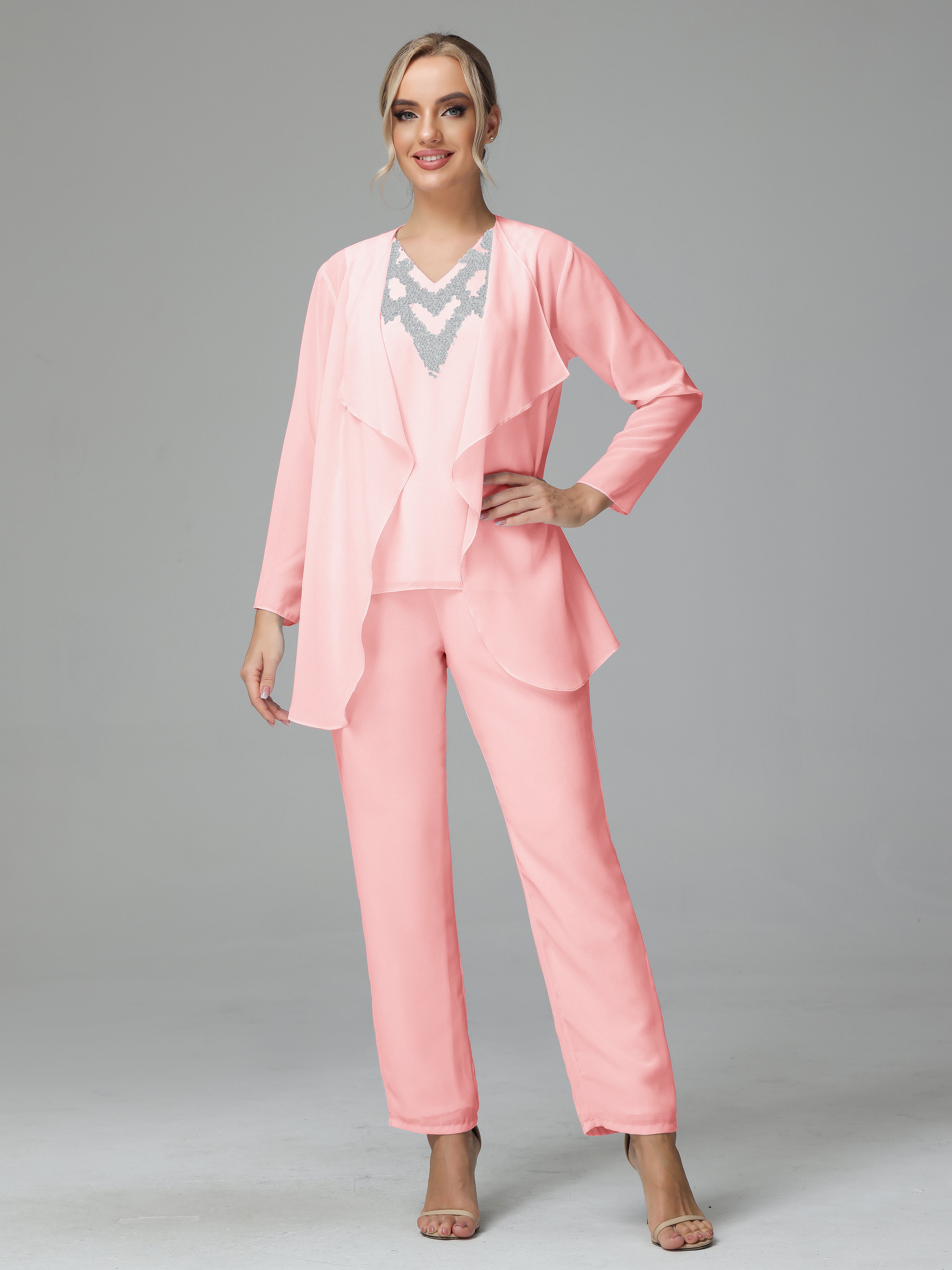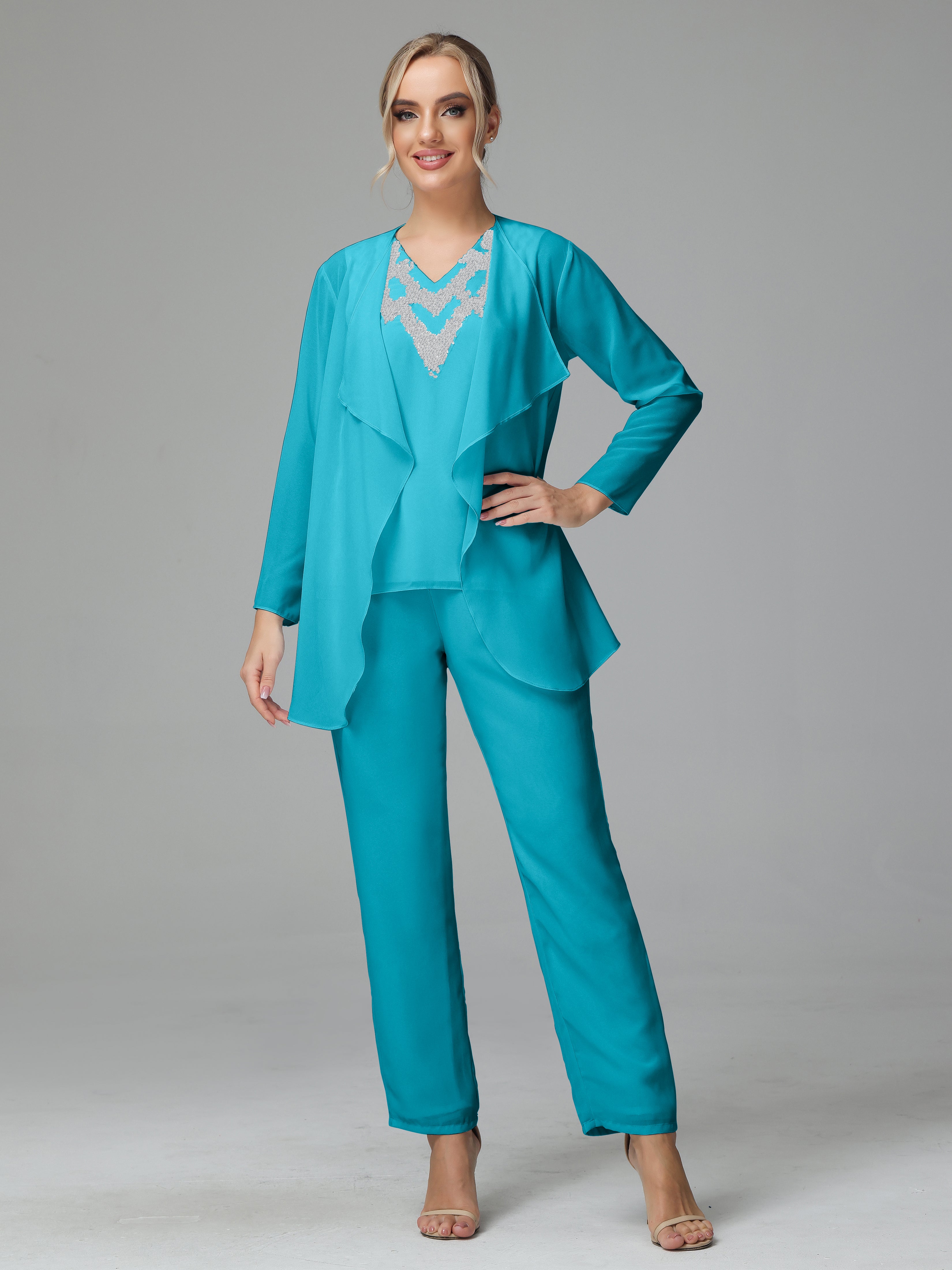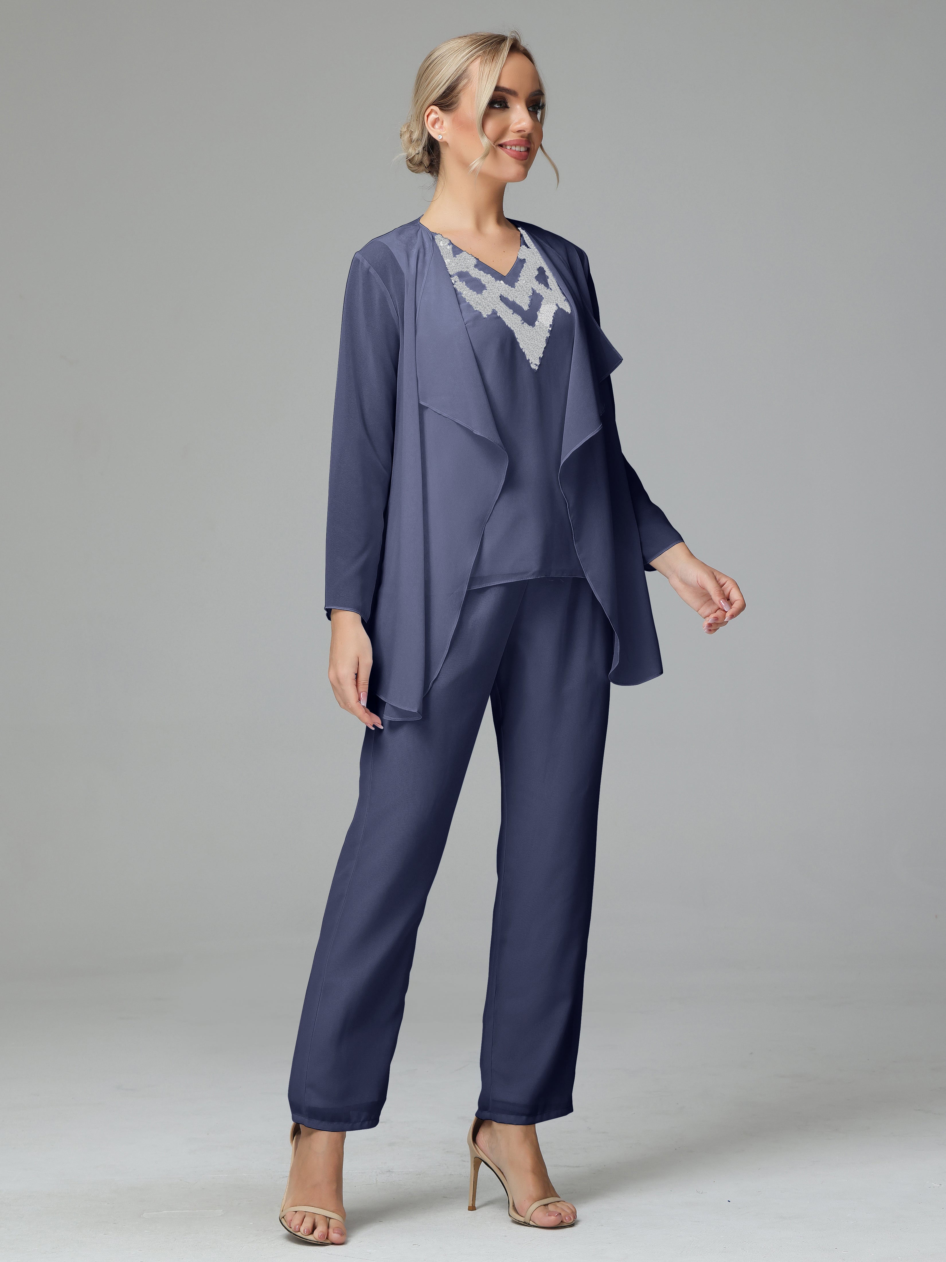 Sequins 3 Pieces Chiffon Mother of Bride Dress Pant Suits