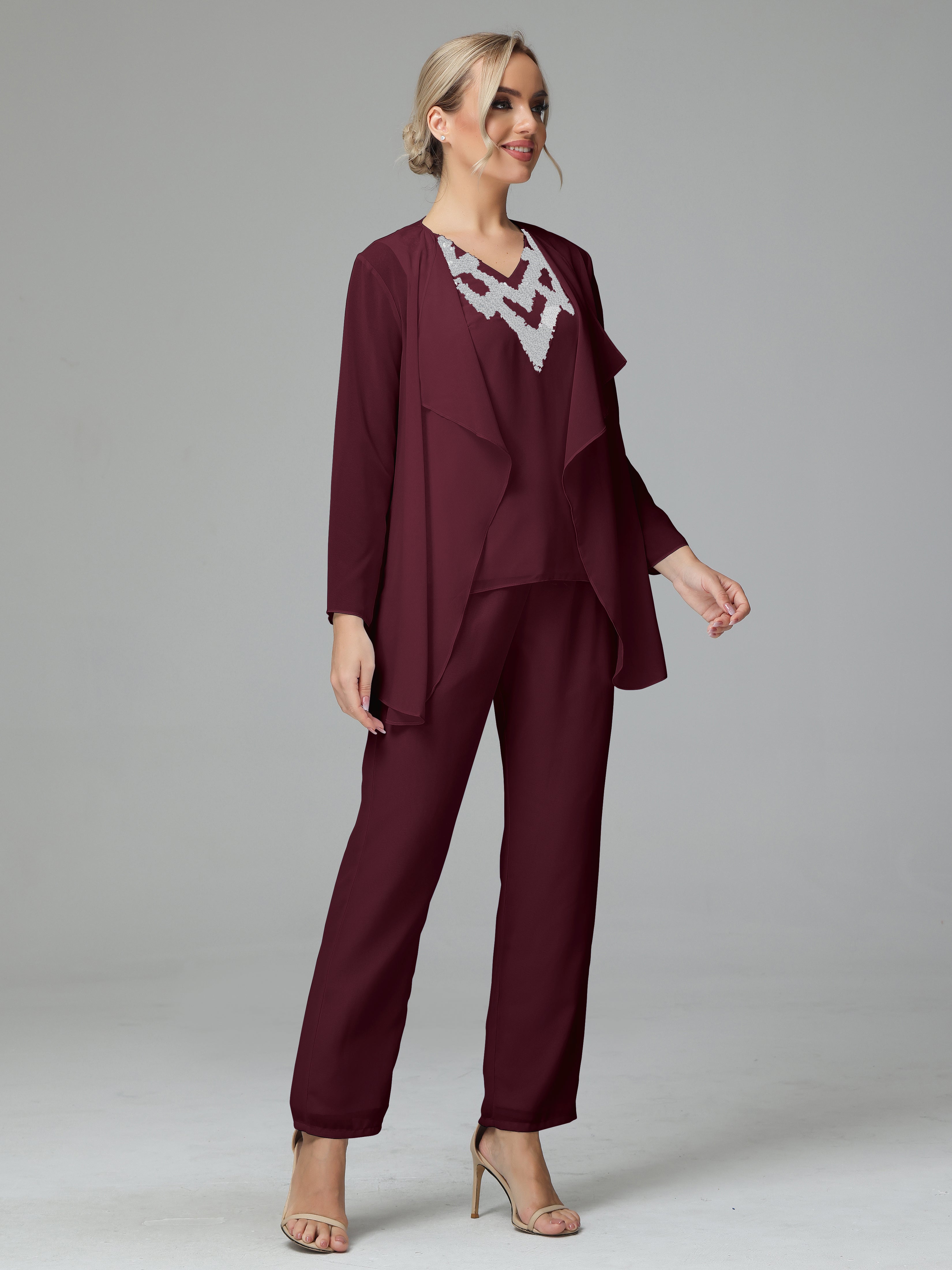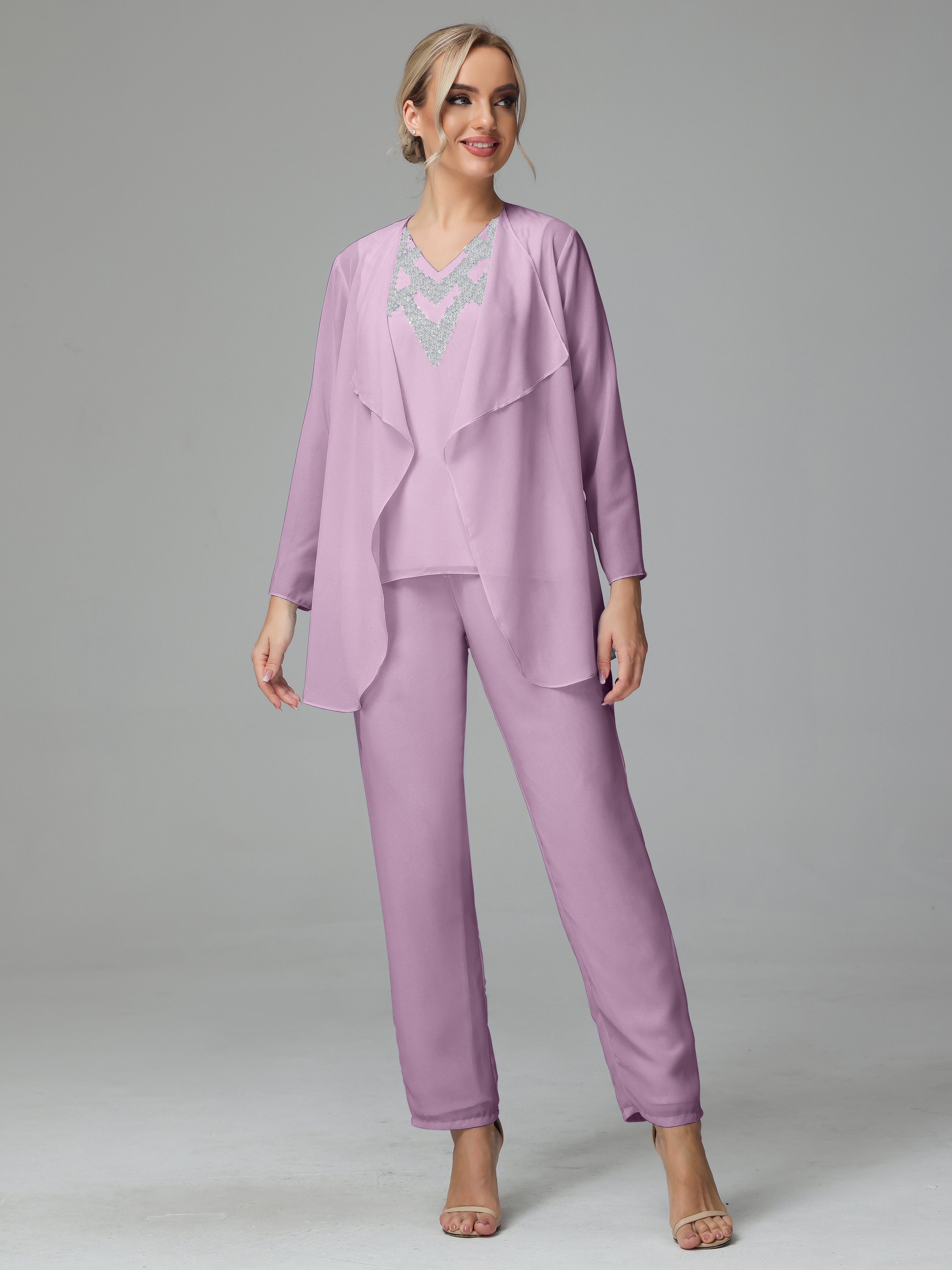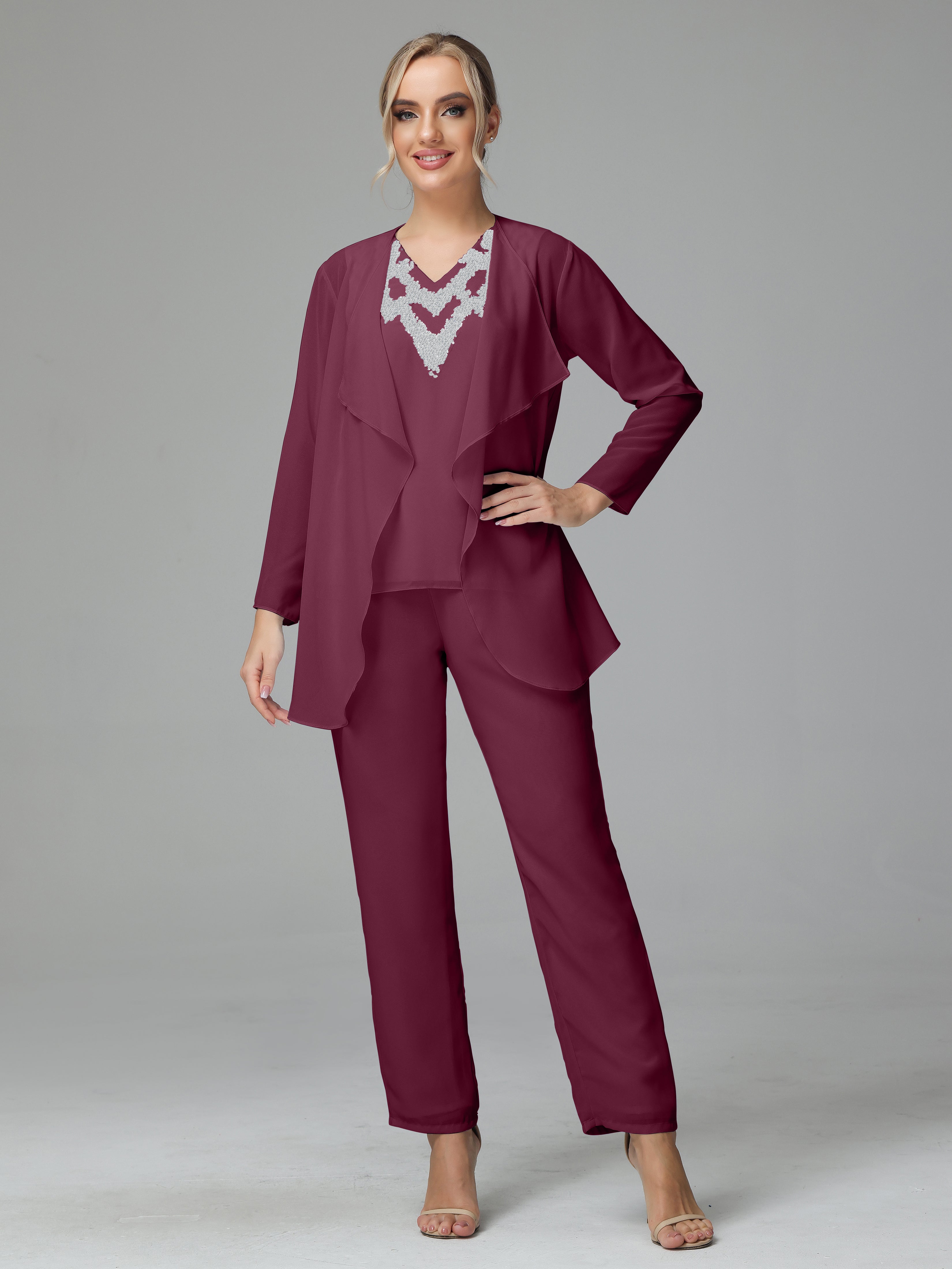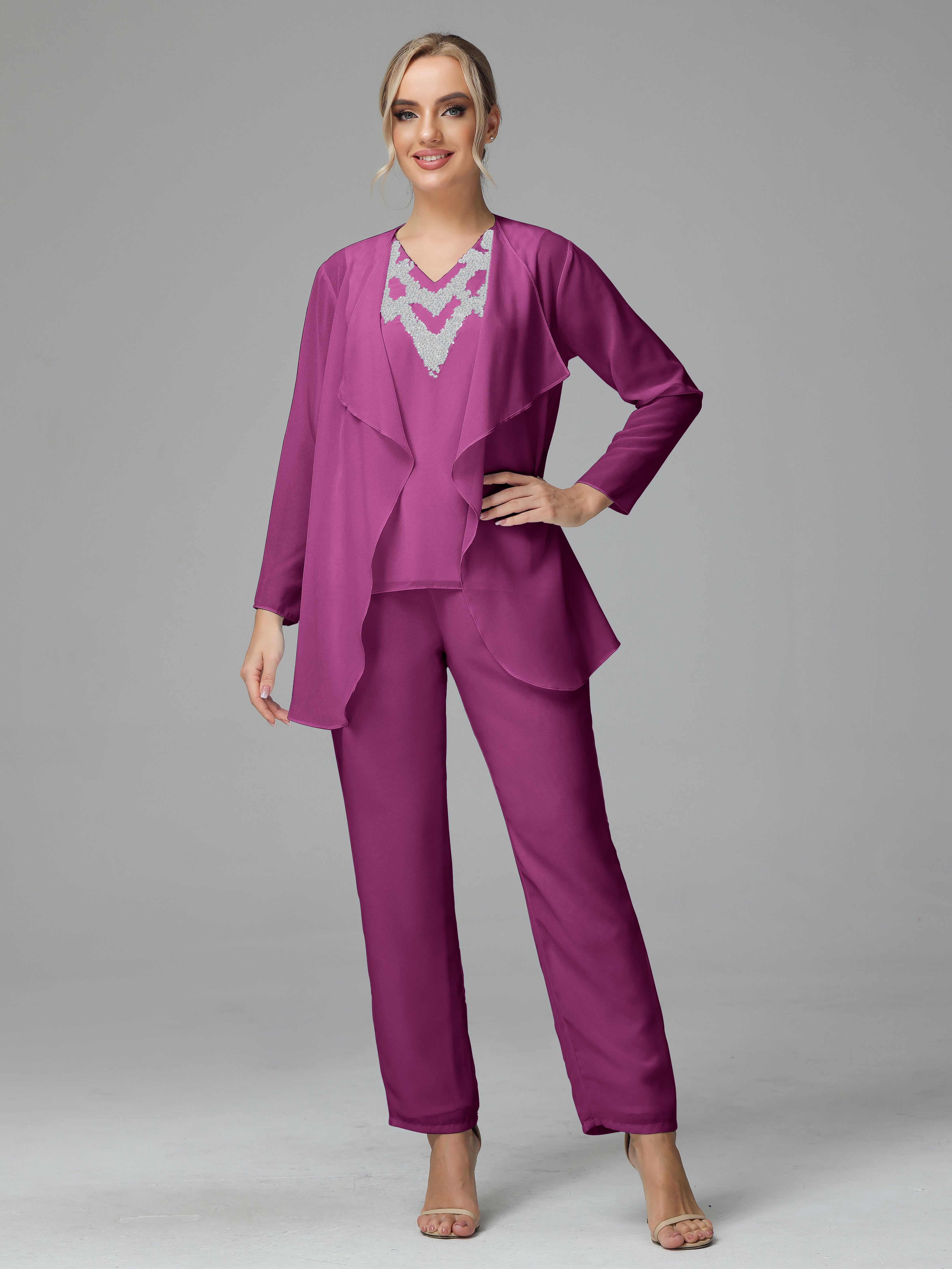 Sequins 3 Pieces Chiffon Mother of Bride Dress Pant Suits
