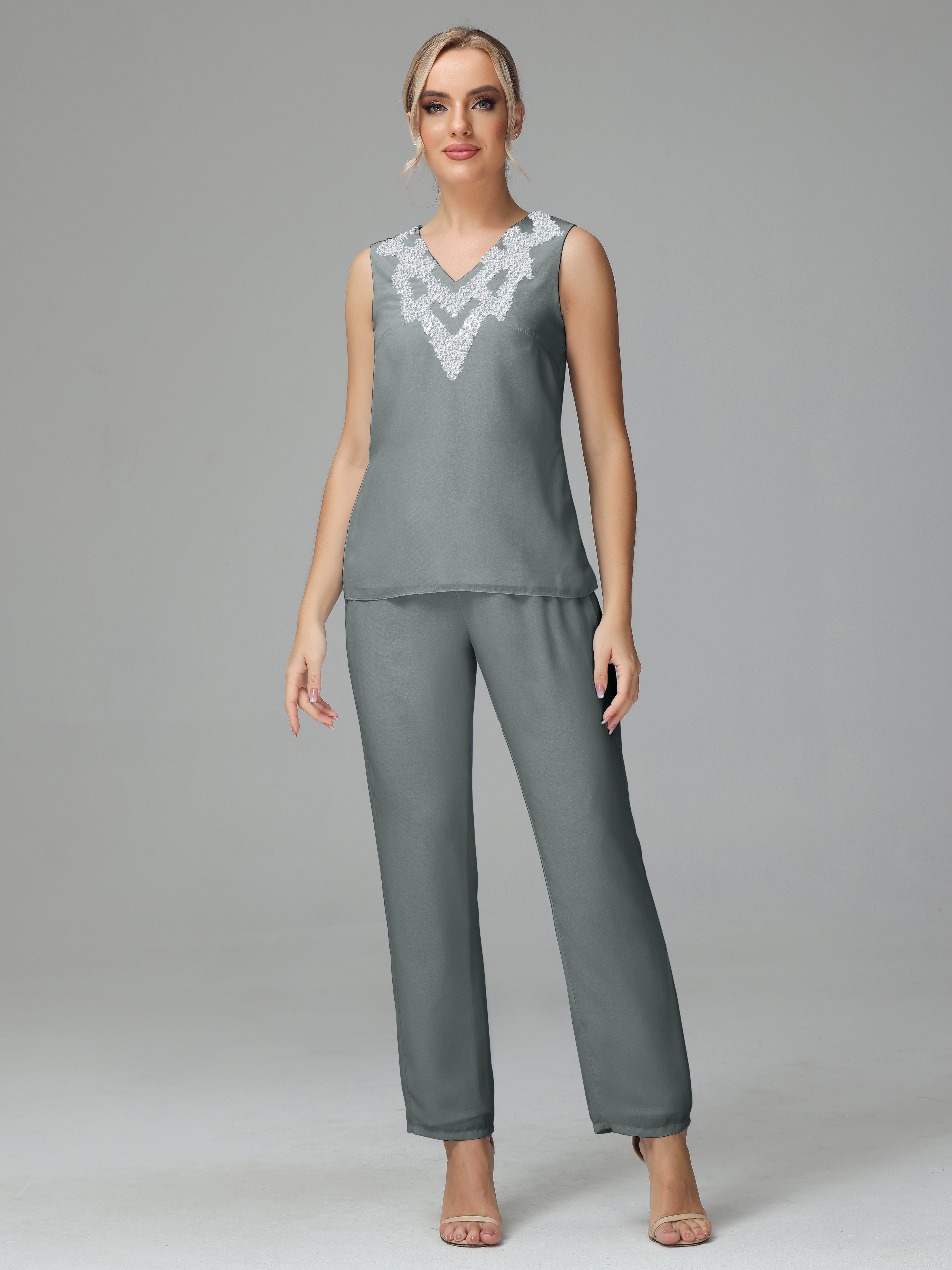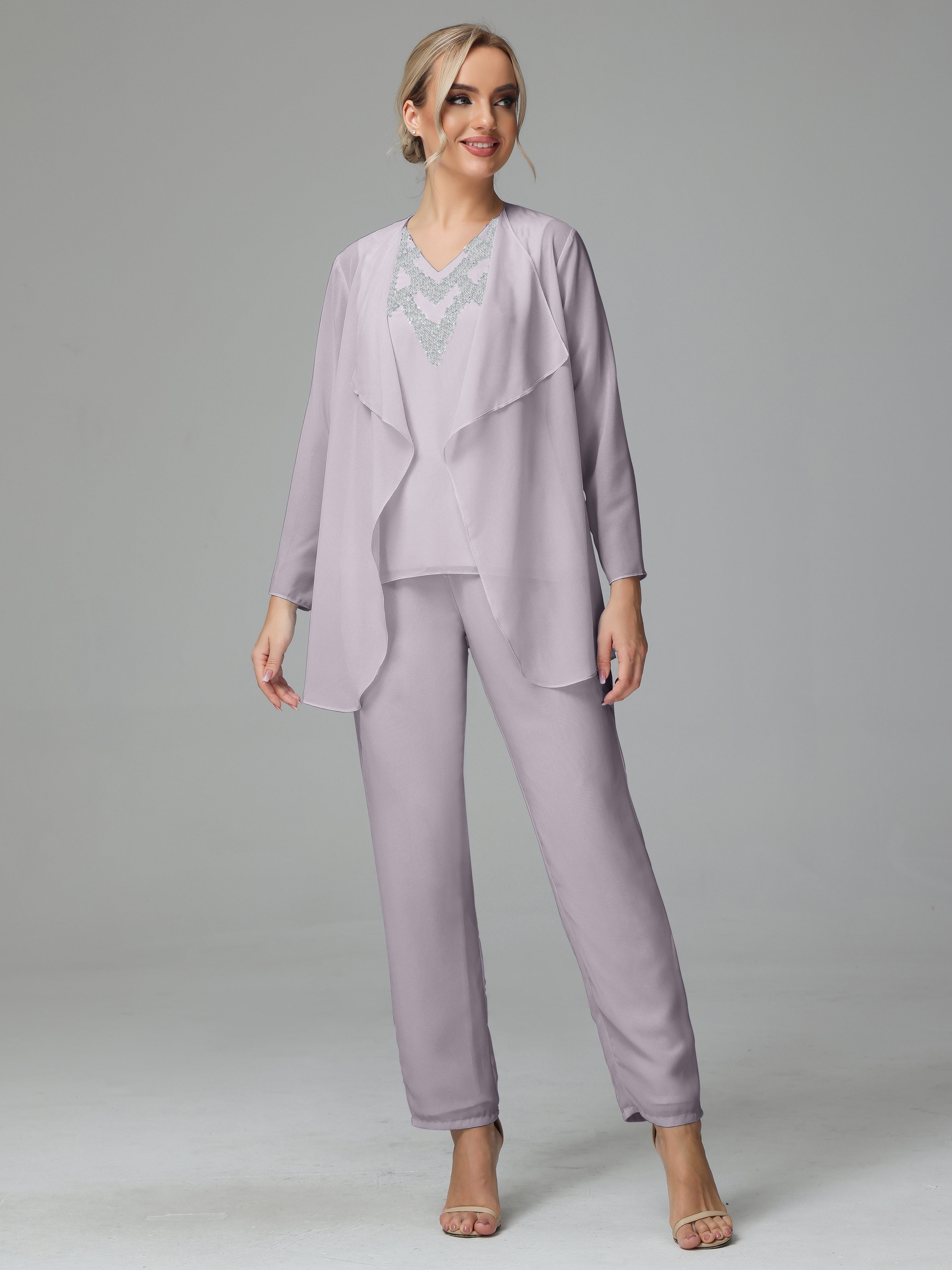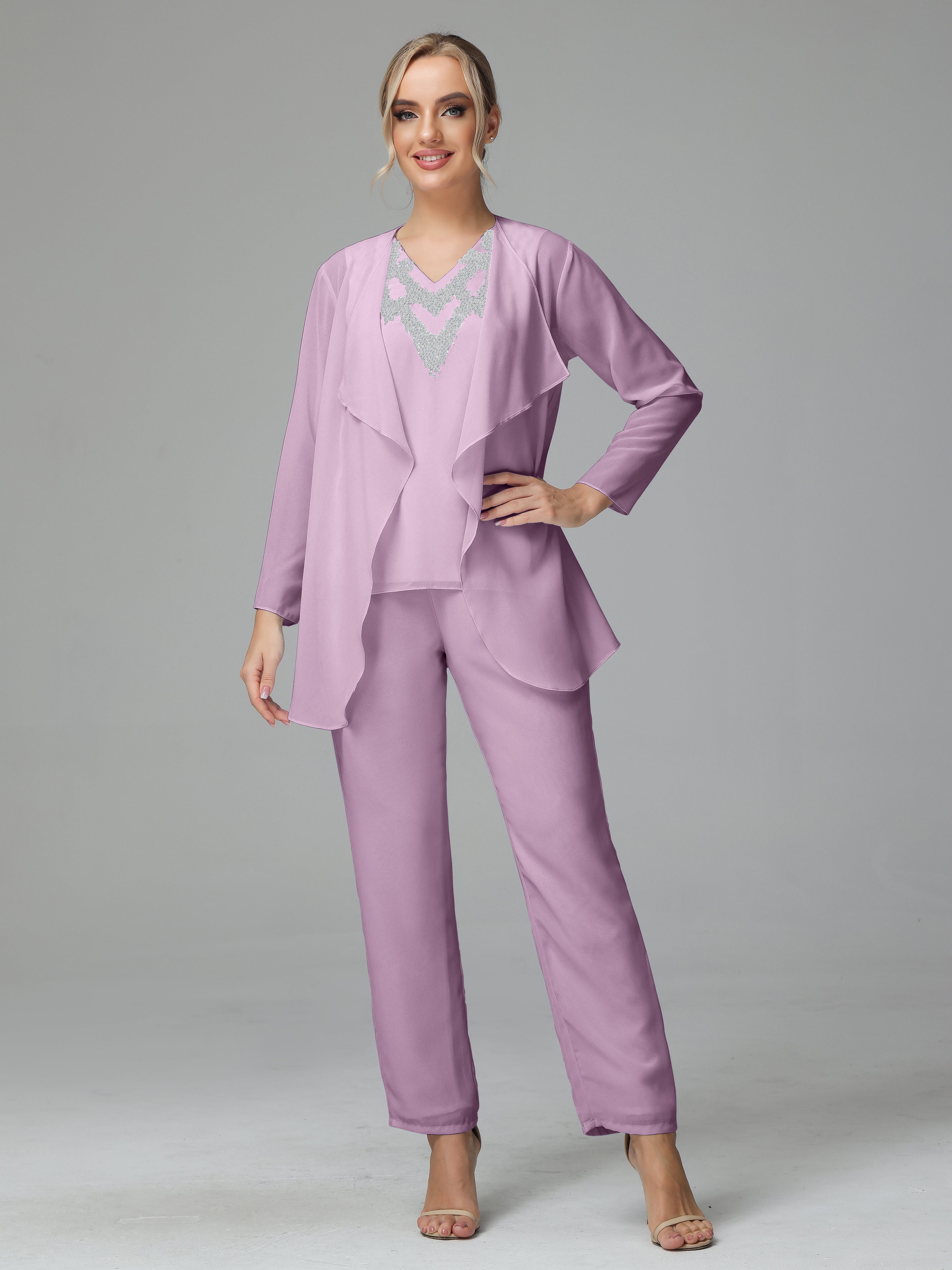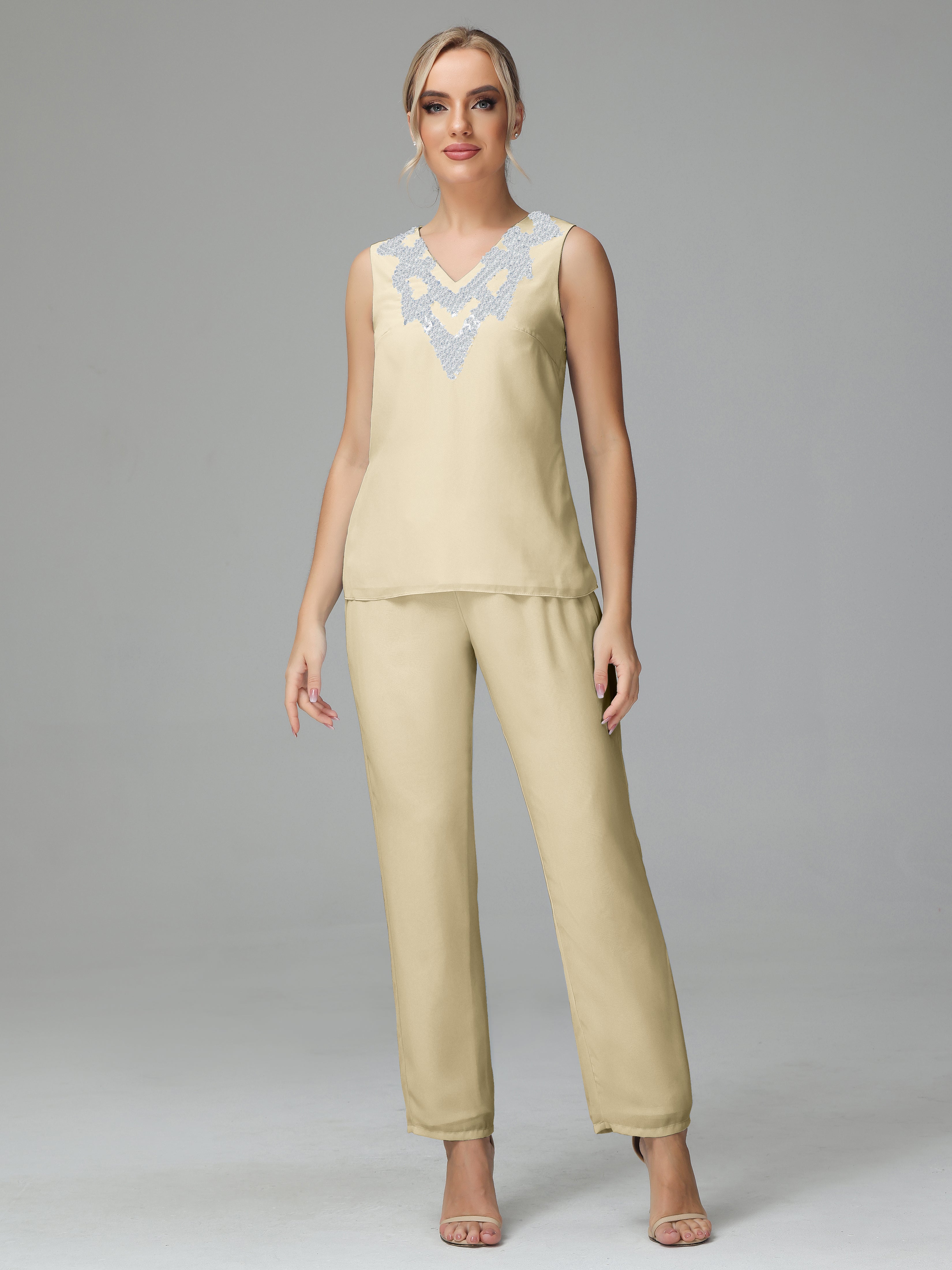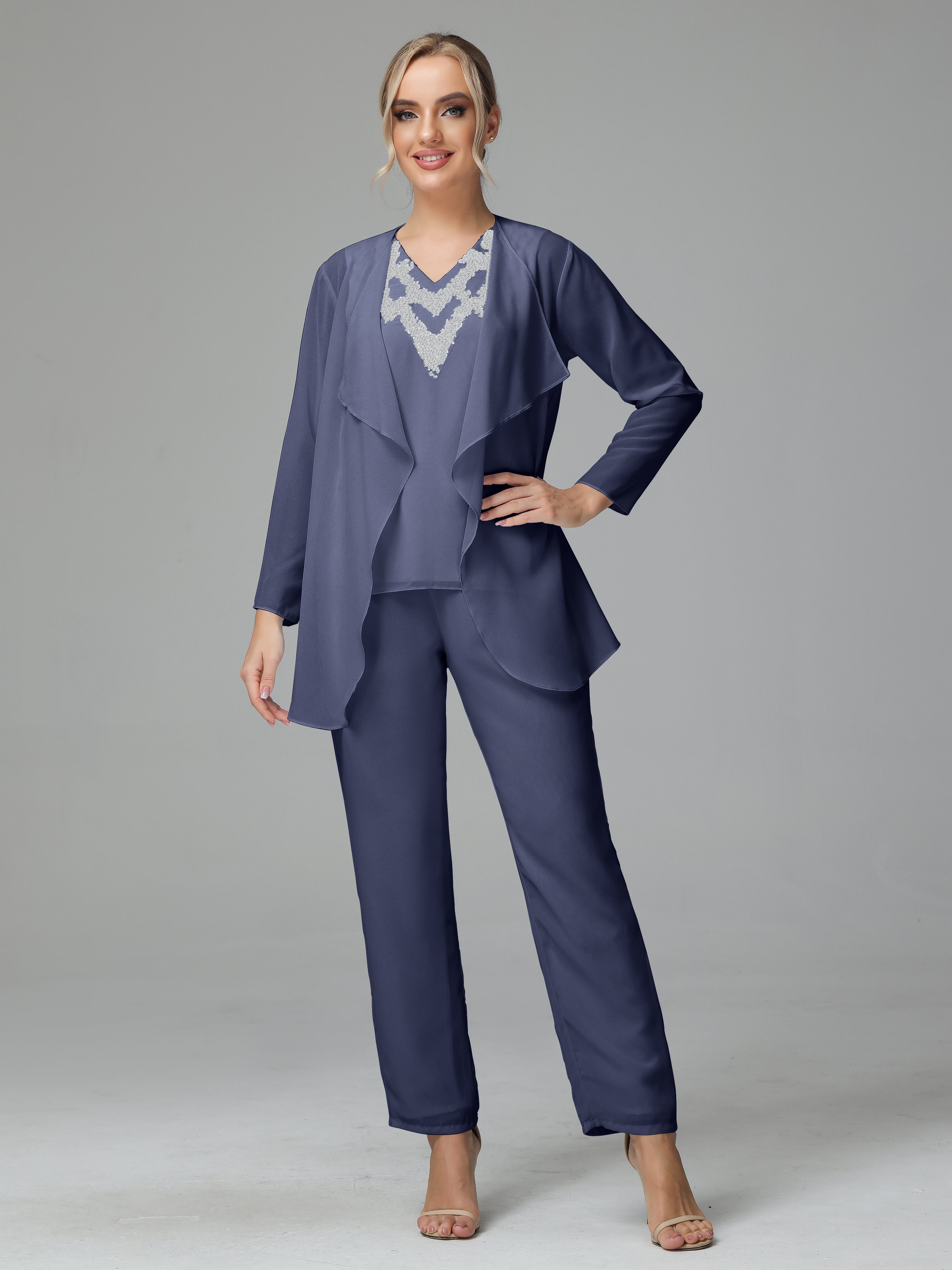 Sequins 3 Pieces Chiffon Mother of Bride Dress Pant Suits