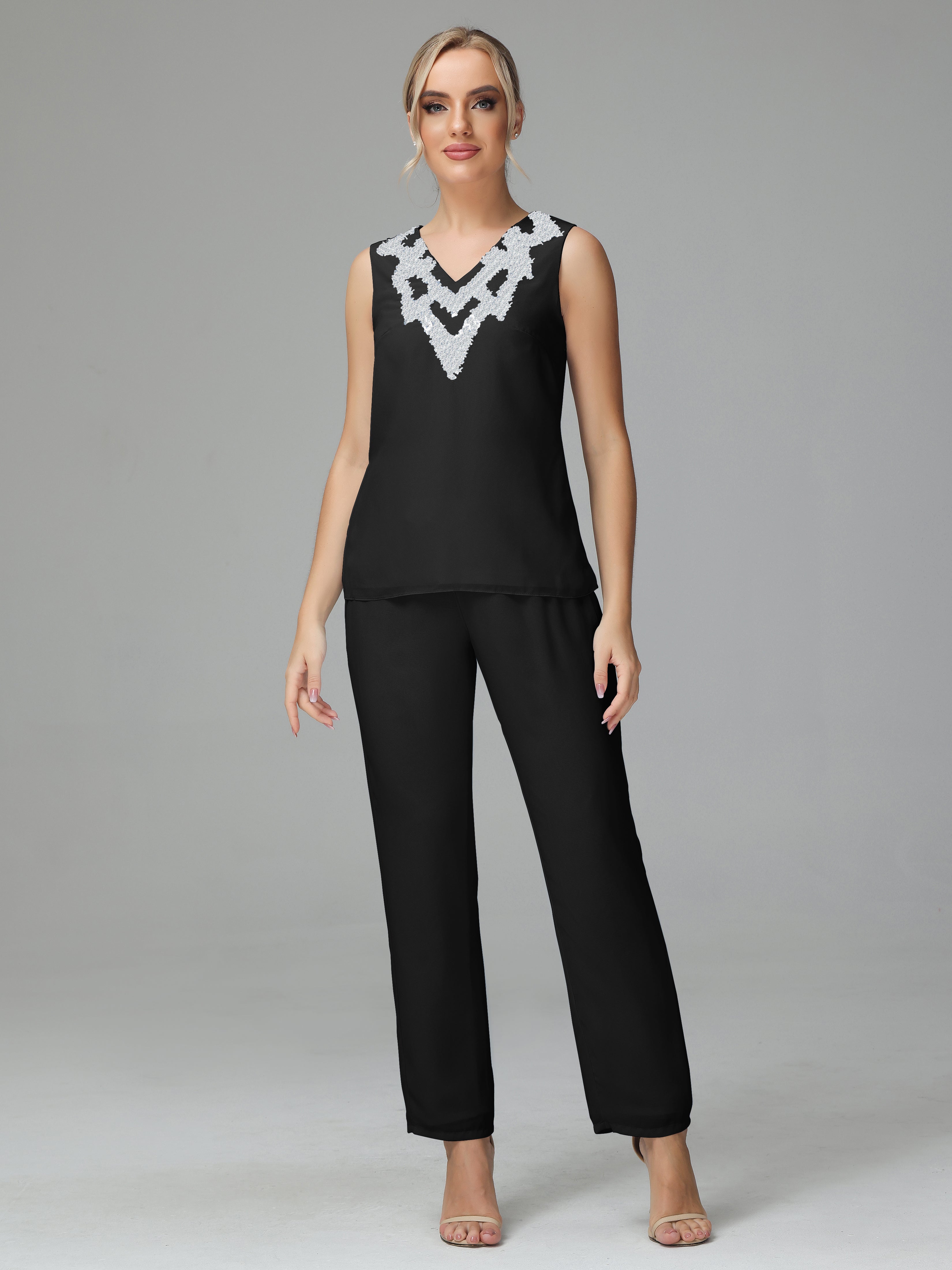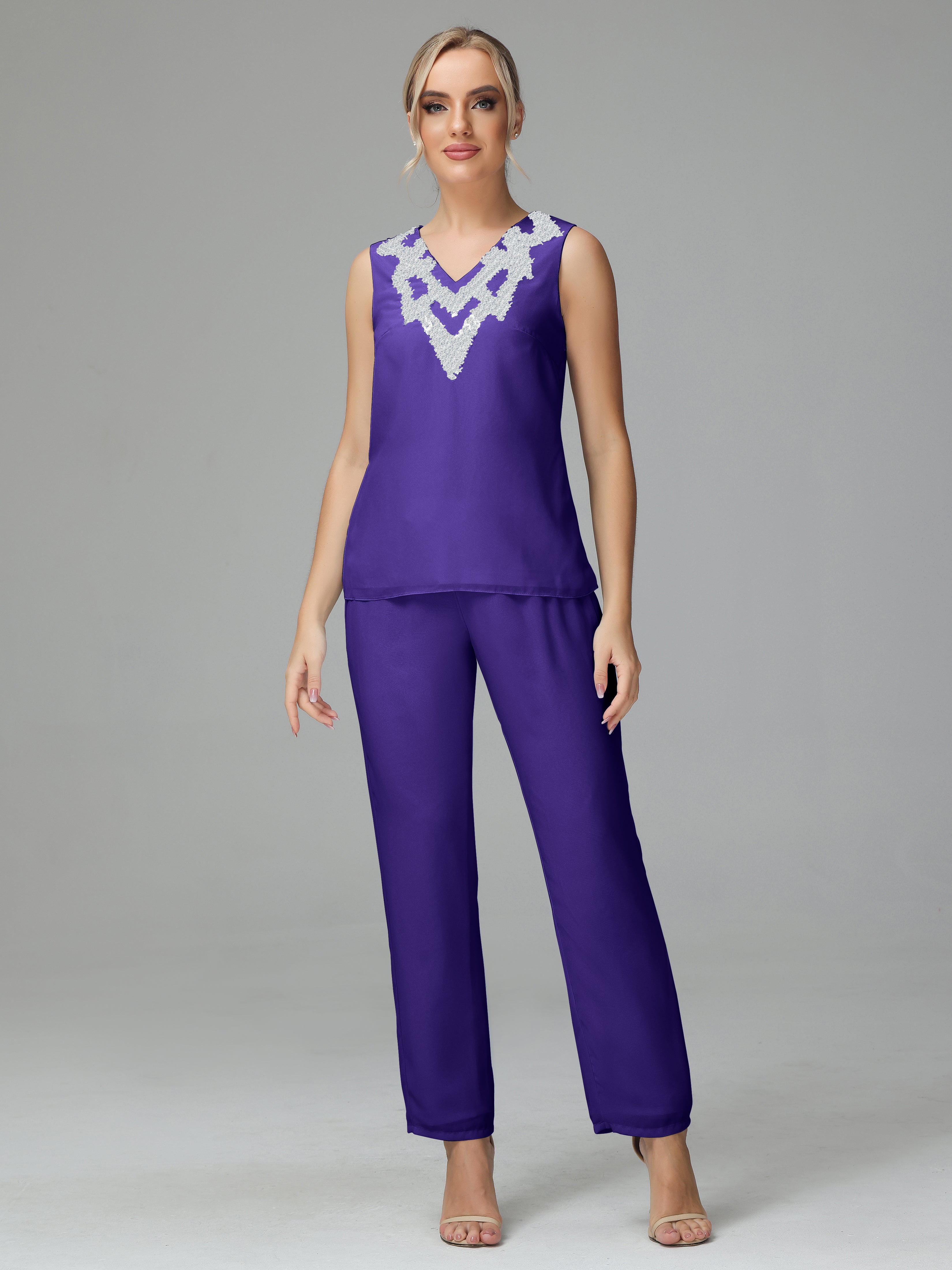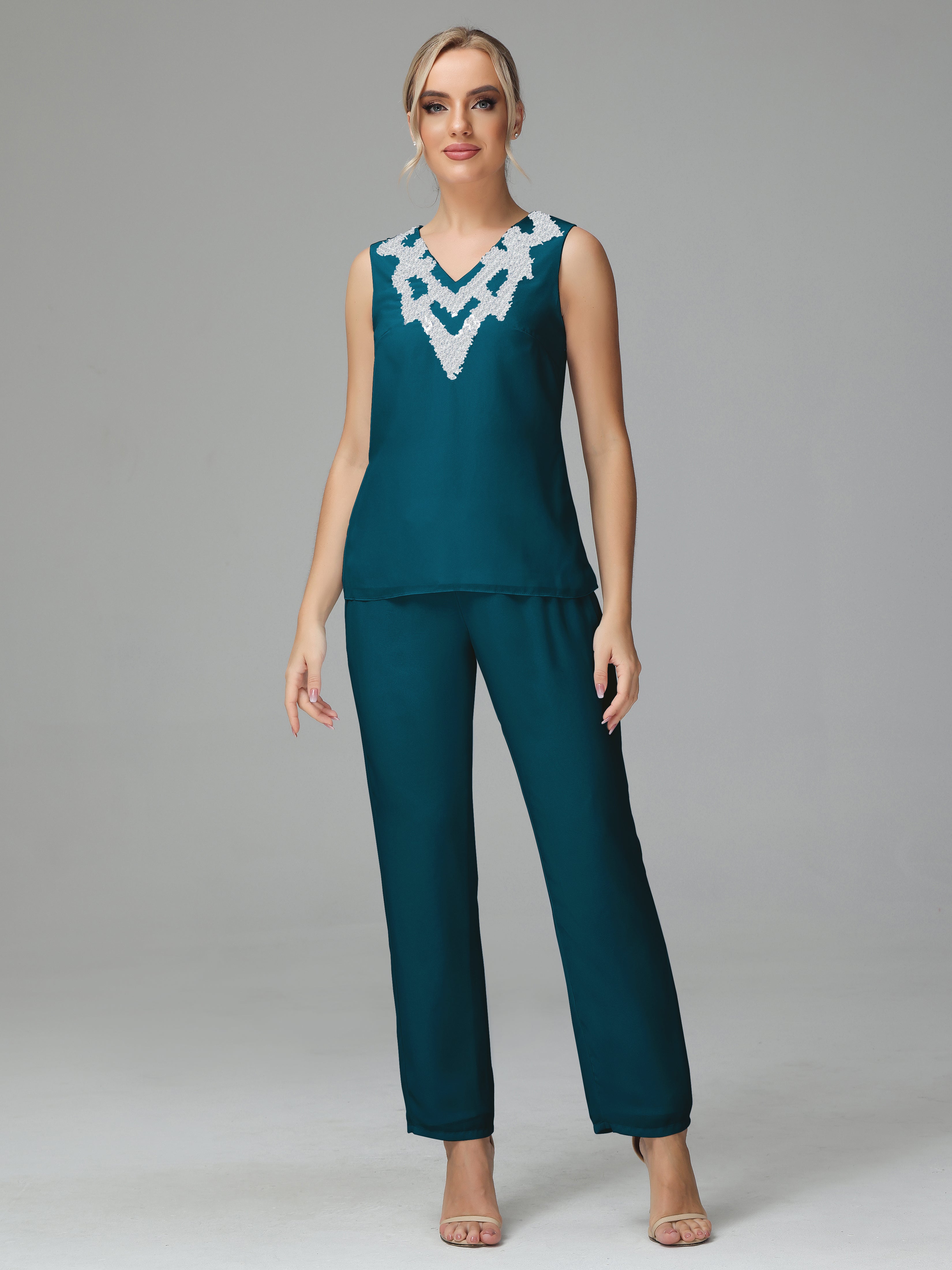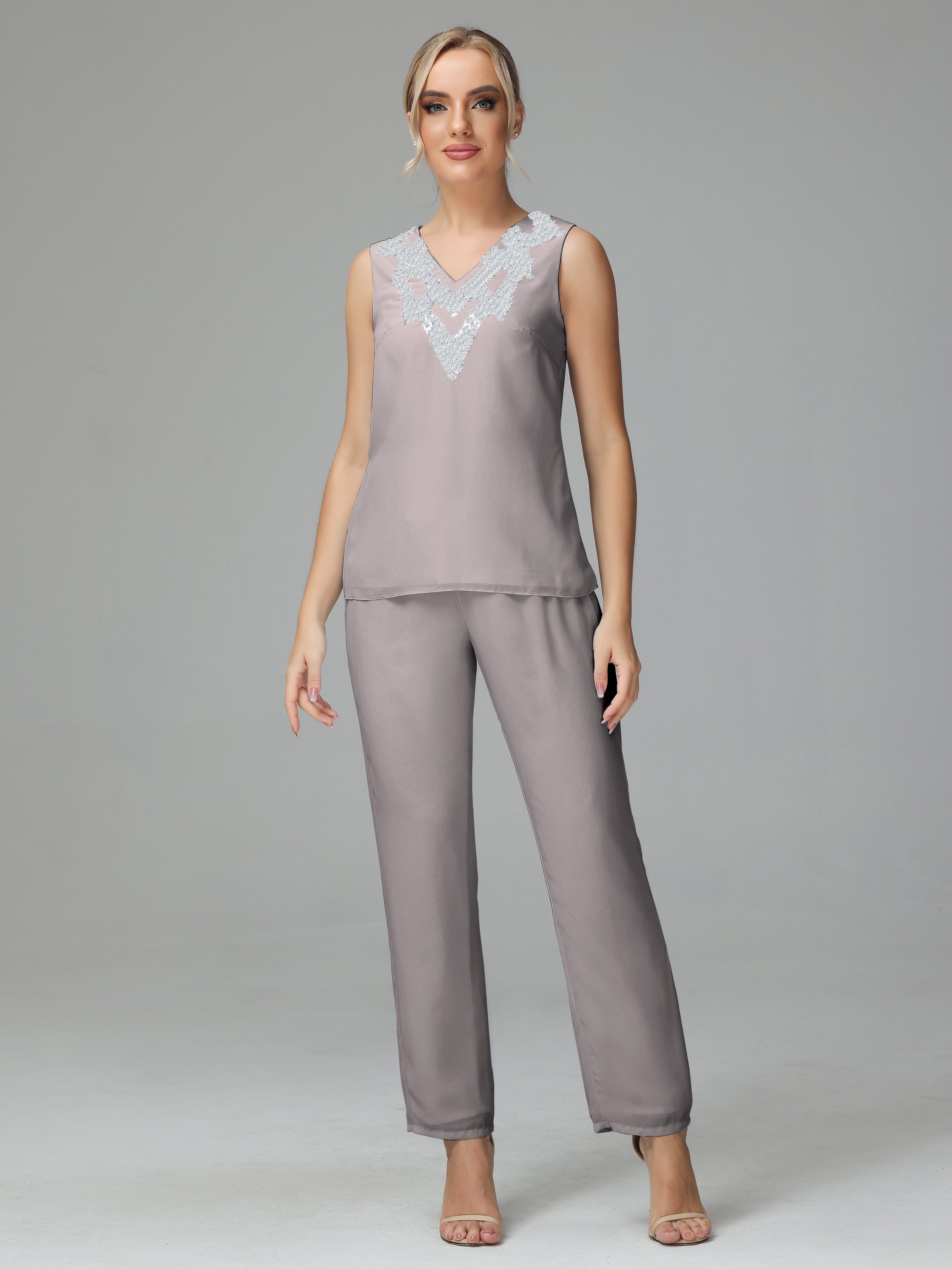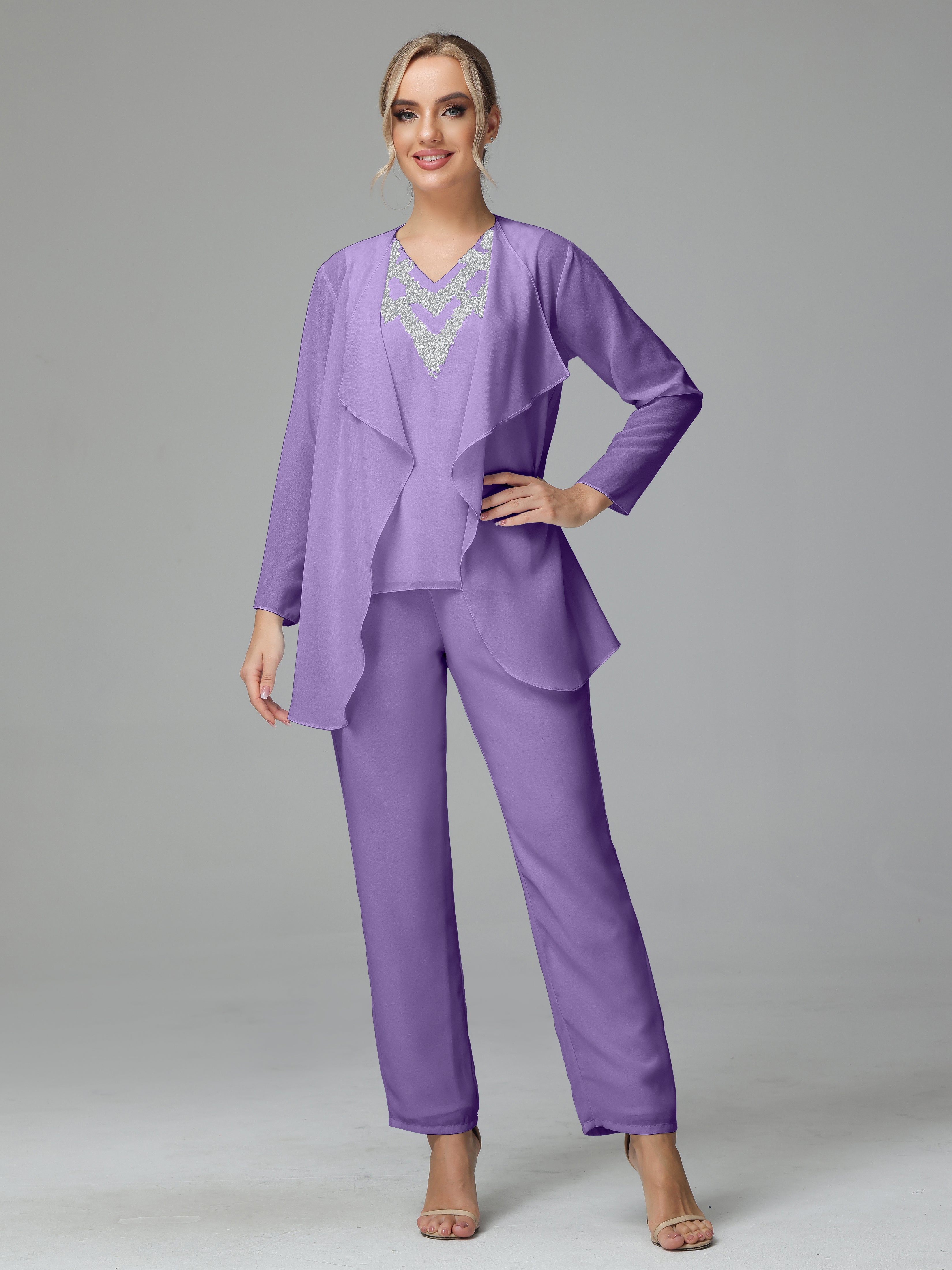 Sequins 3 Pieces Chiffon Mother of Bride Dress Pant Suits
