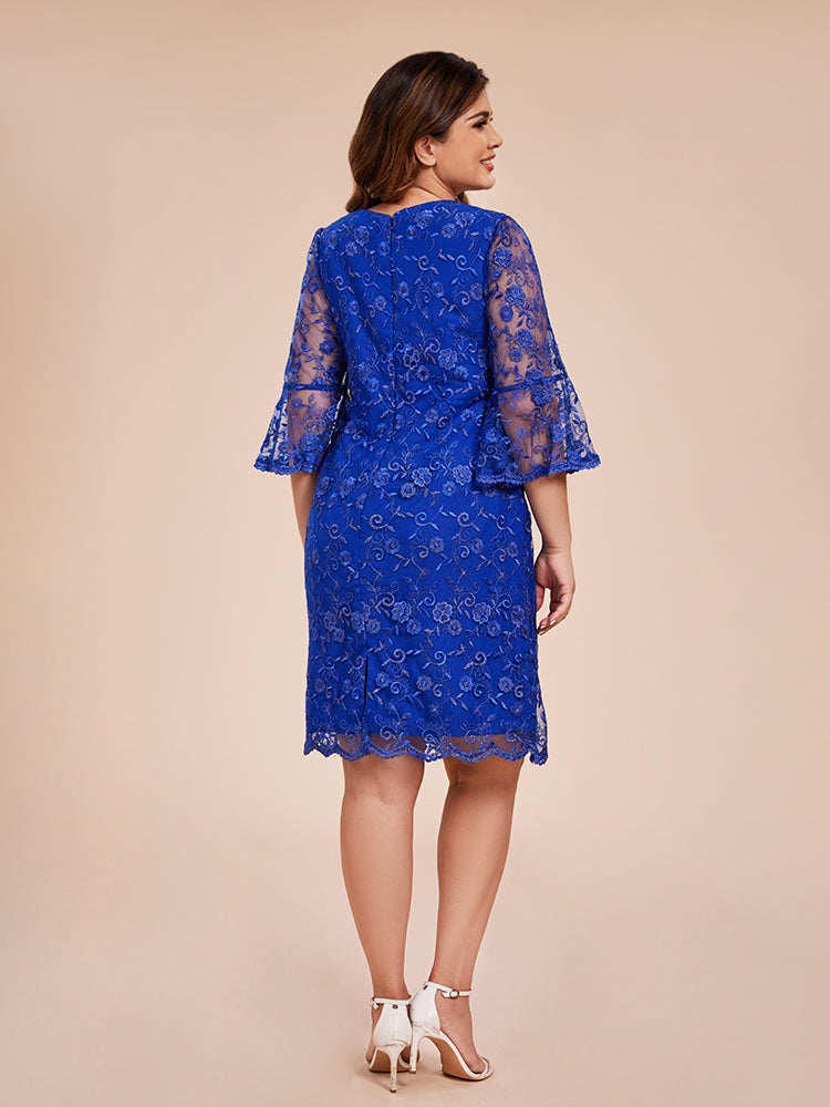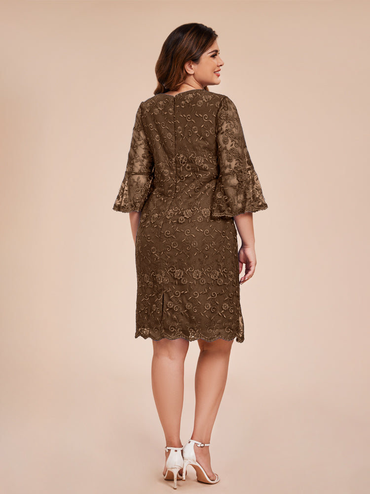 Sheath/Column 3/4 Length Sleeves Round Neck Knee Length Chiffon Mother Of The Bride Dress