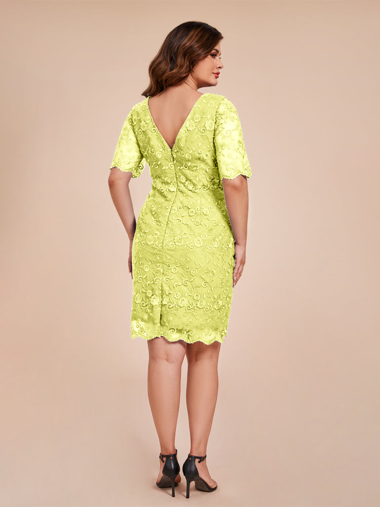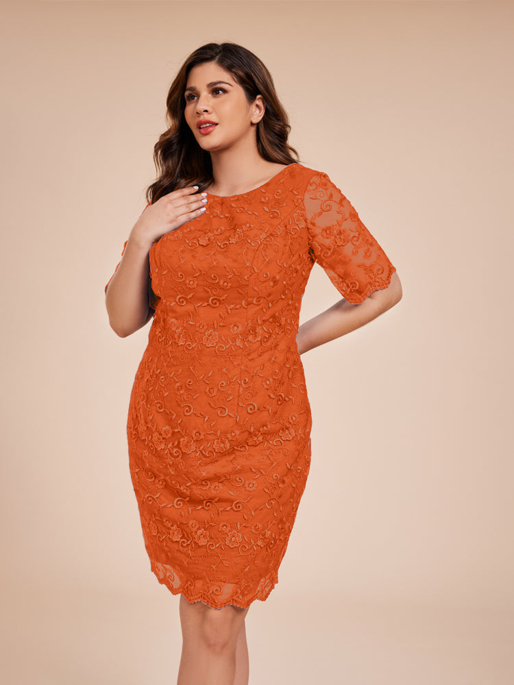 Sheath/Column Half Sleeves Knee Length Chiffon Mother Of The Bride Dress