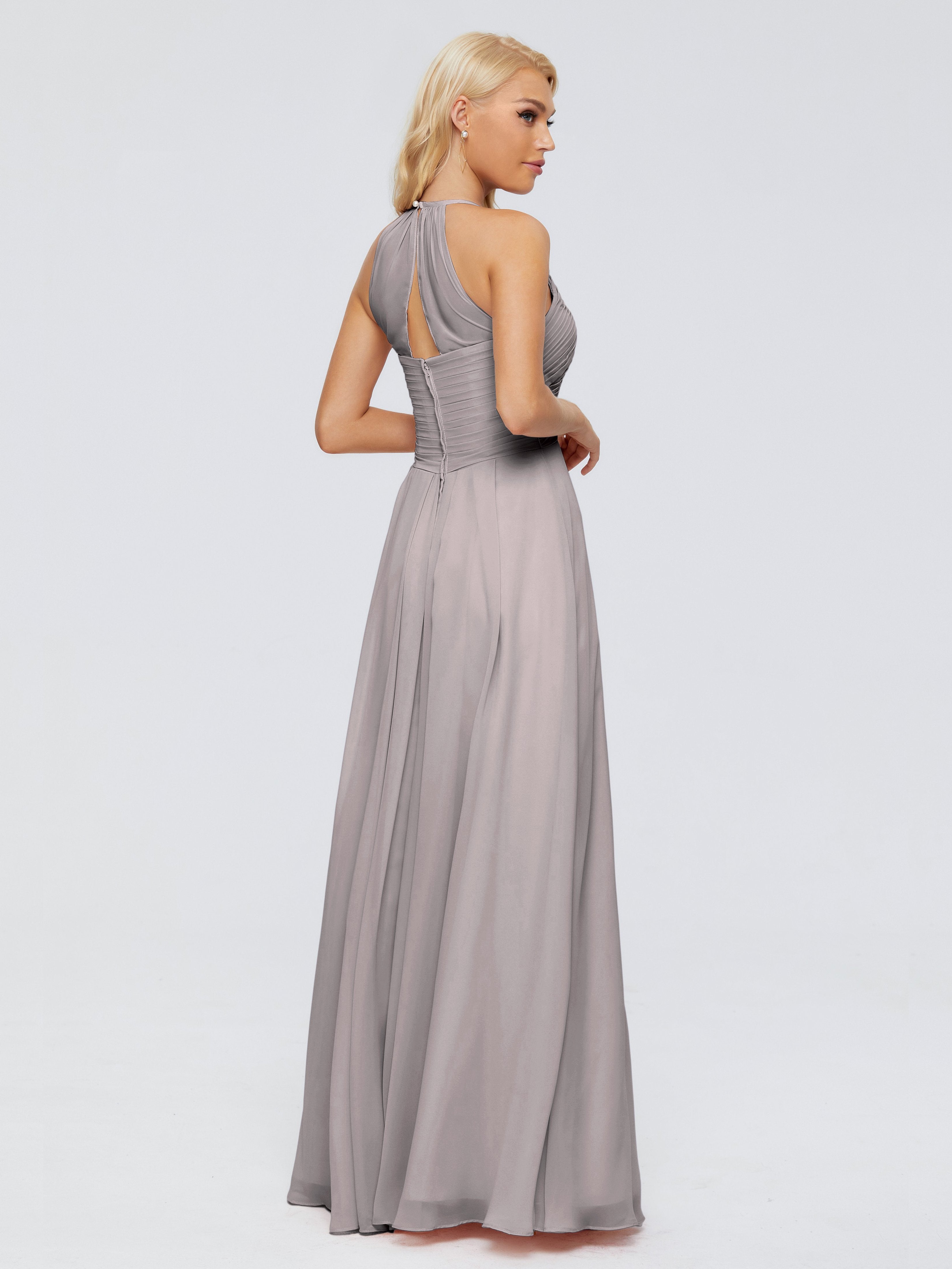 Silver Grey Bridesmaid Dress Finley Charming Halter Ruched Chiffon Bridesmaid Dresses