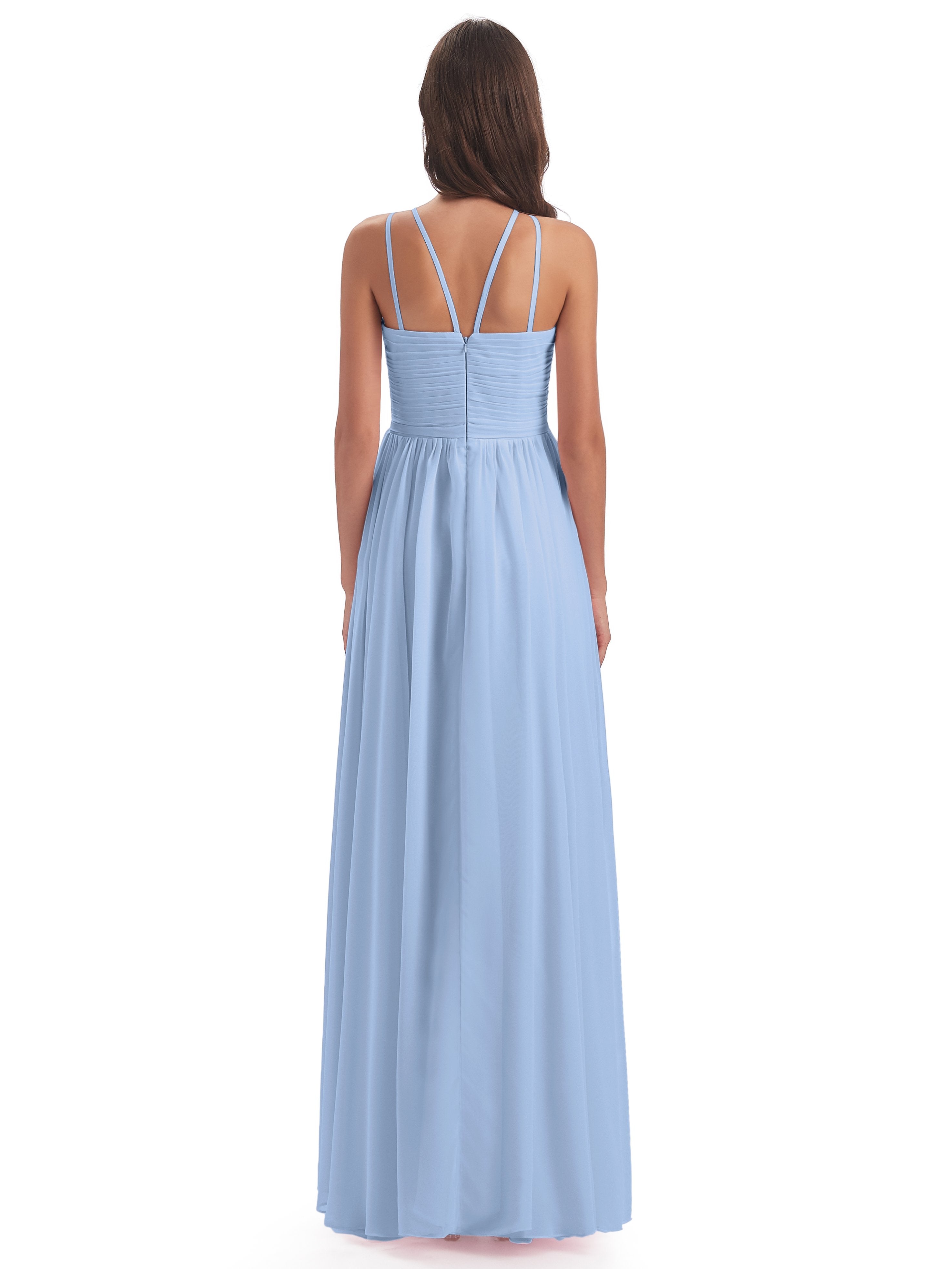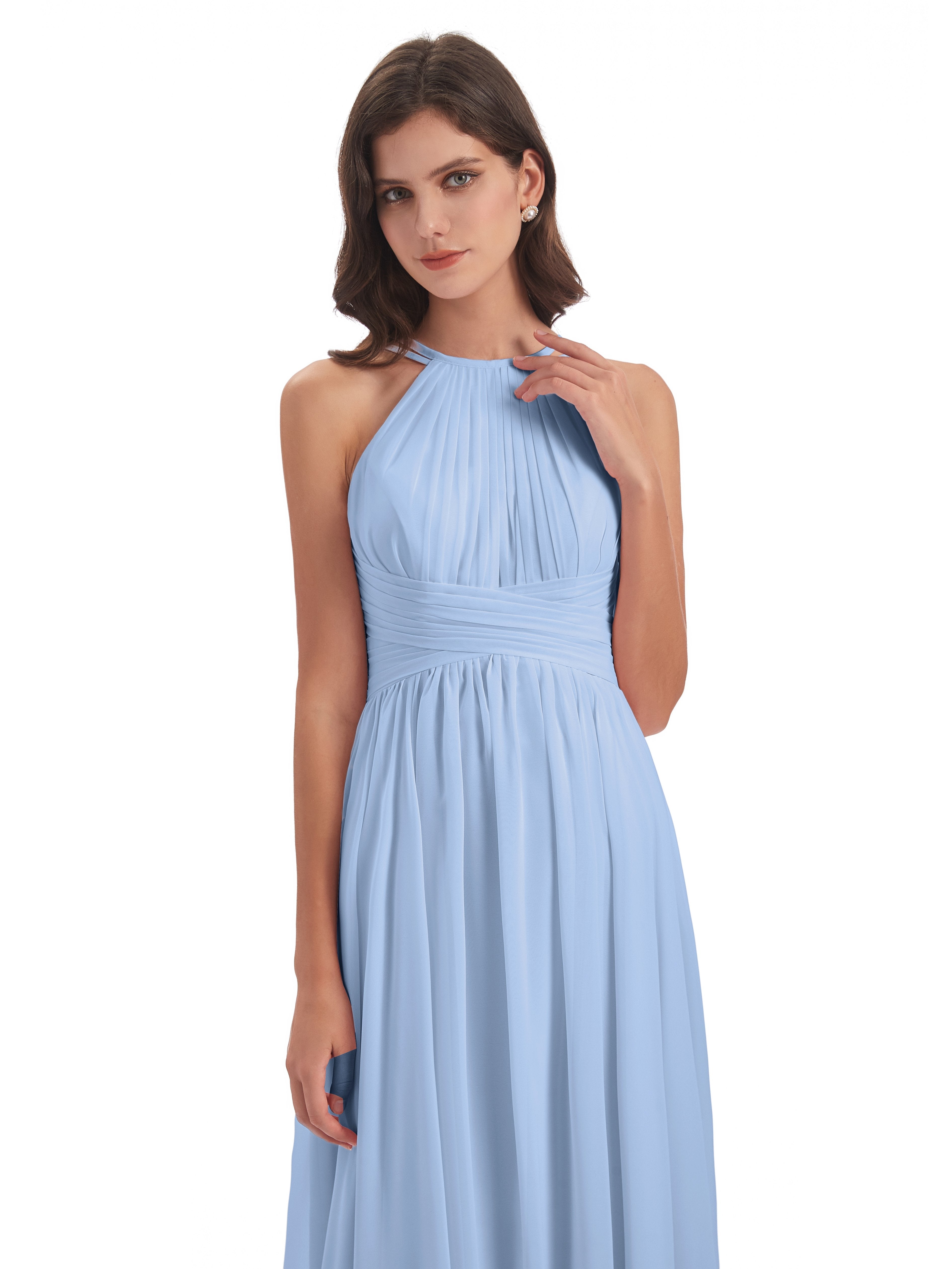 Sky Blue Bridesmaid Dresses Halter A Line Floor-Length Chiffon Bridesmaid Dresses