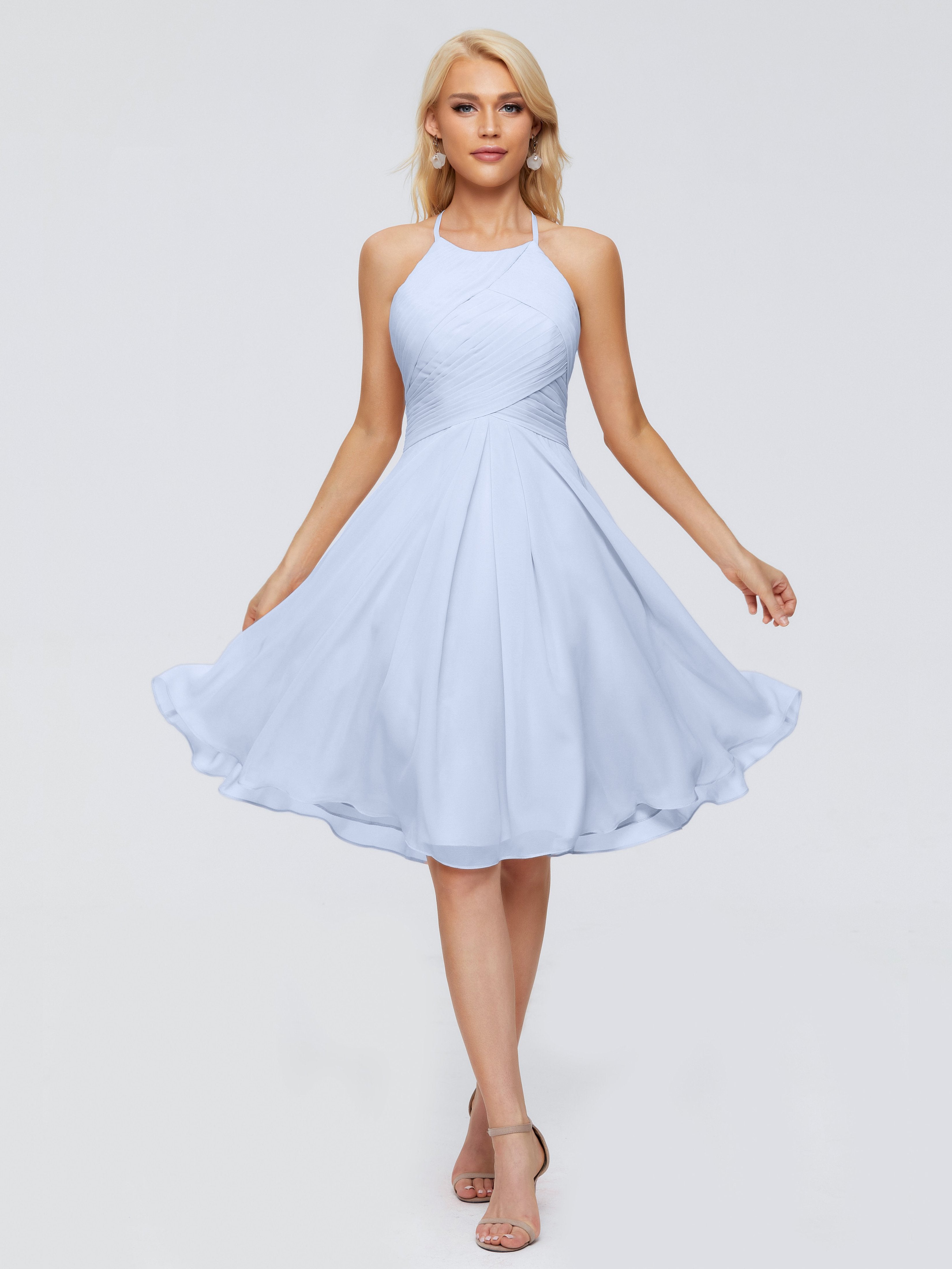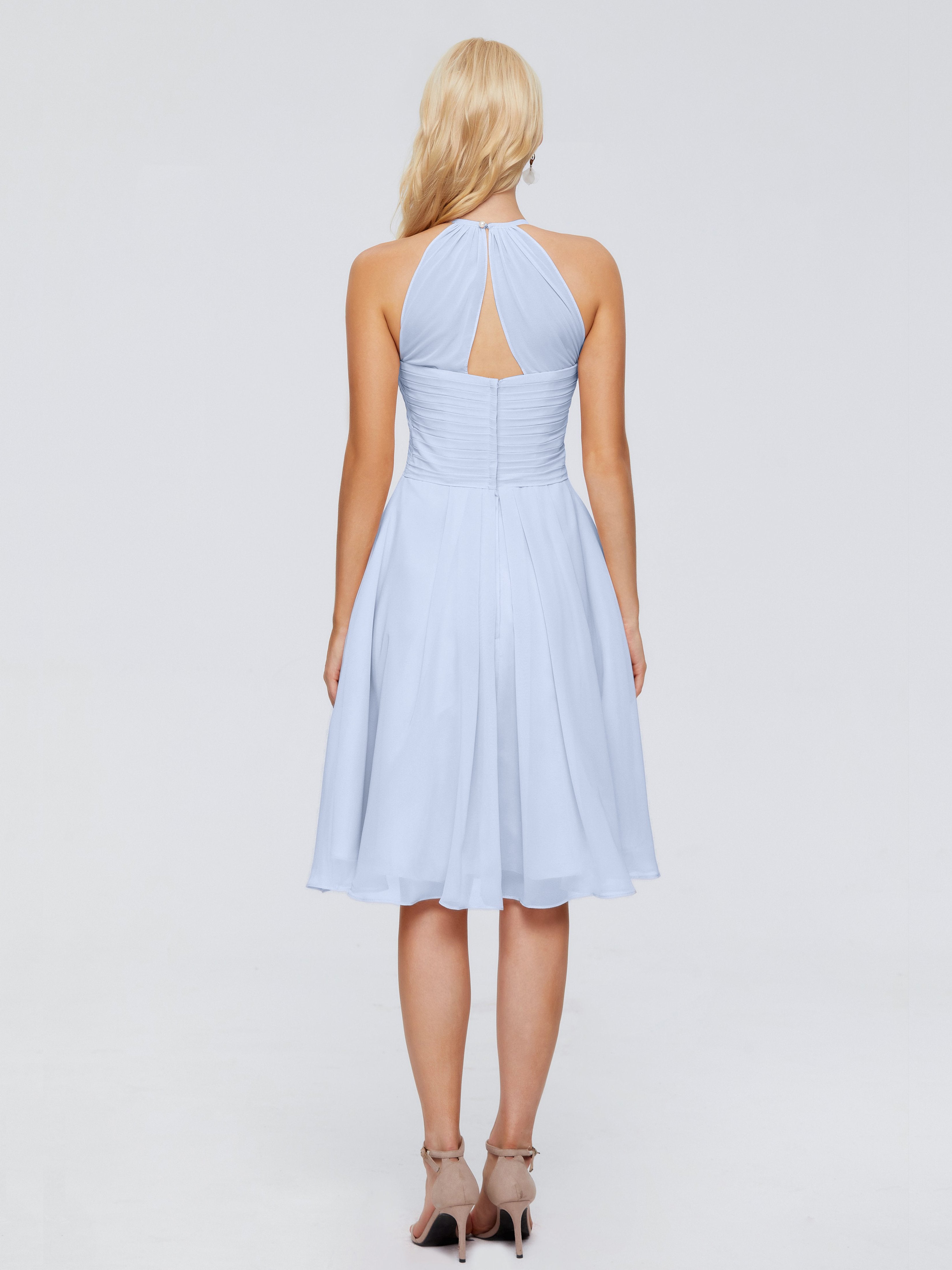 Sky Blue Bridesmaid Gown Knee Length Chiffon Bridesmaid Dresses Halterneck