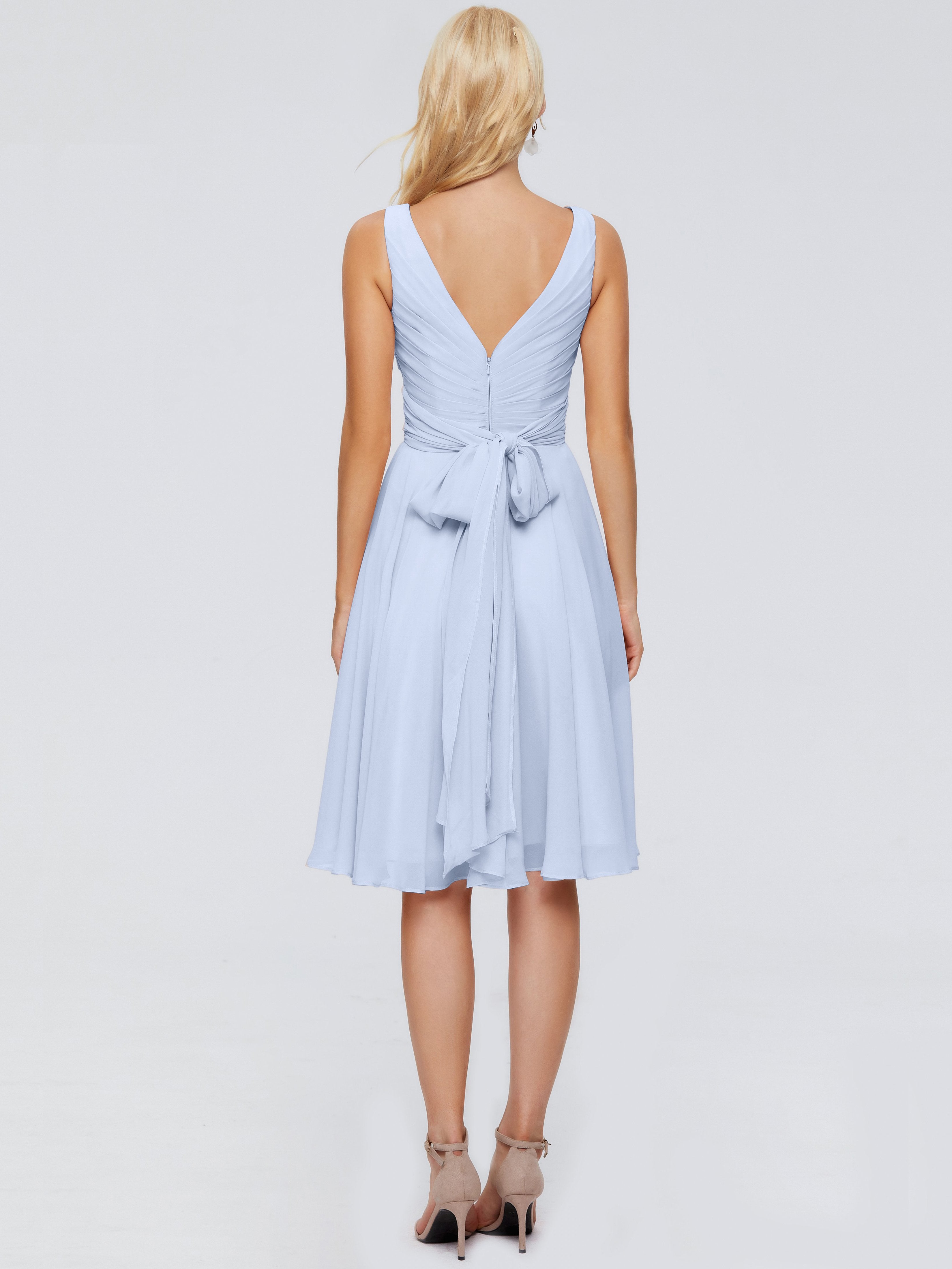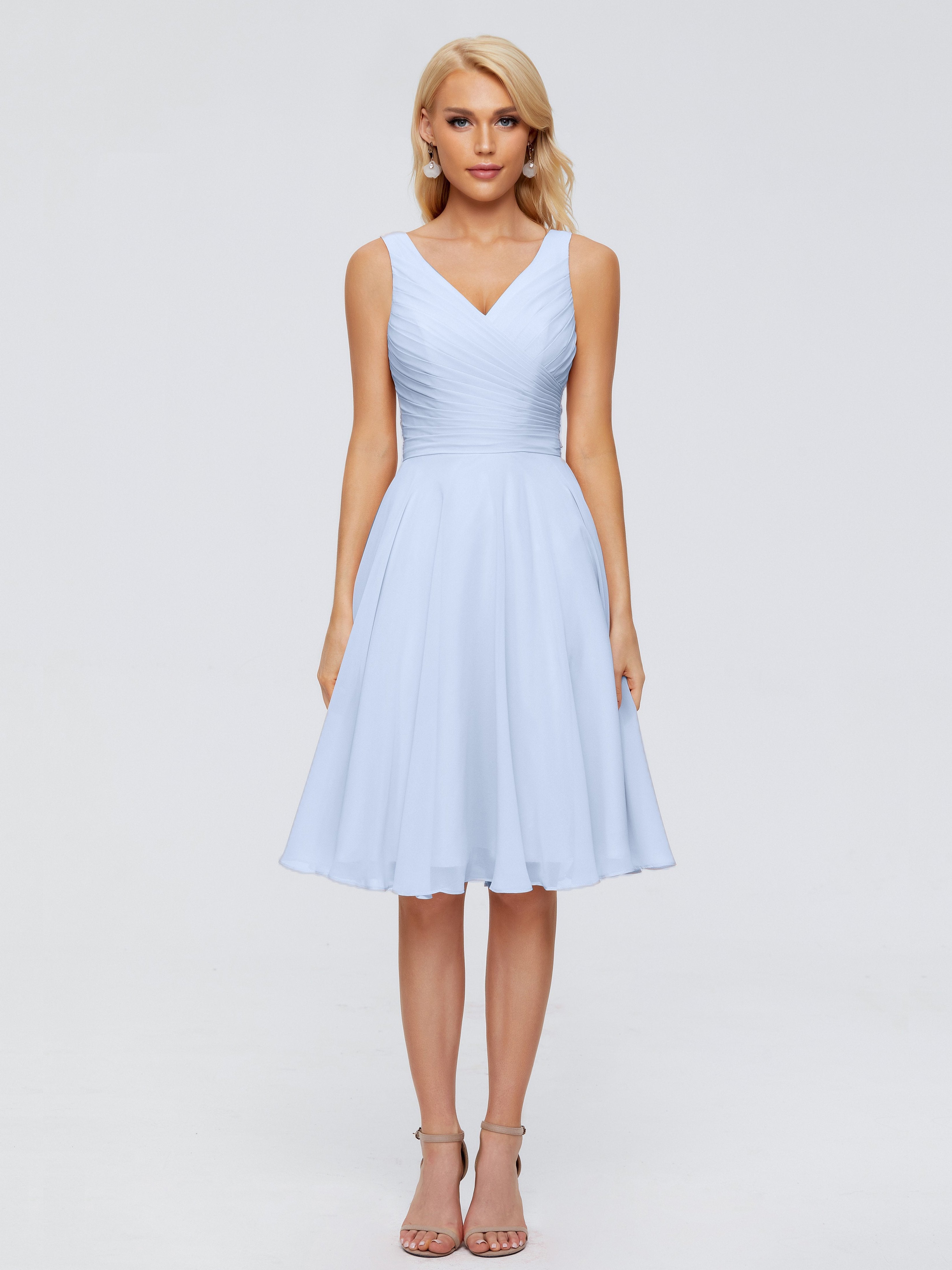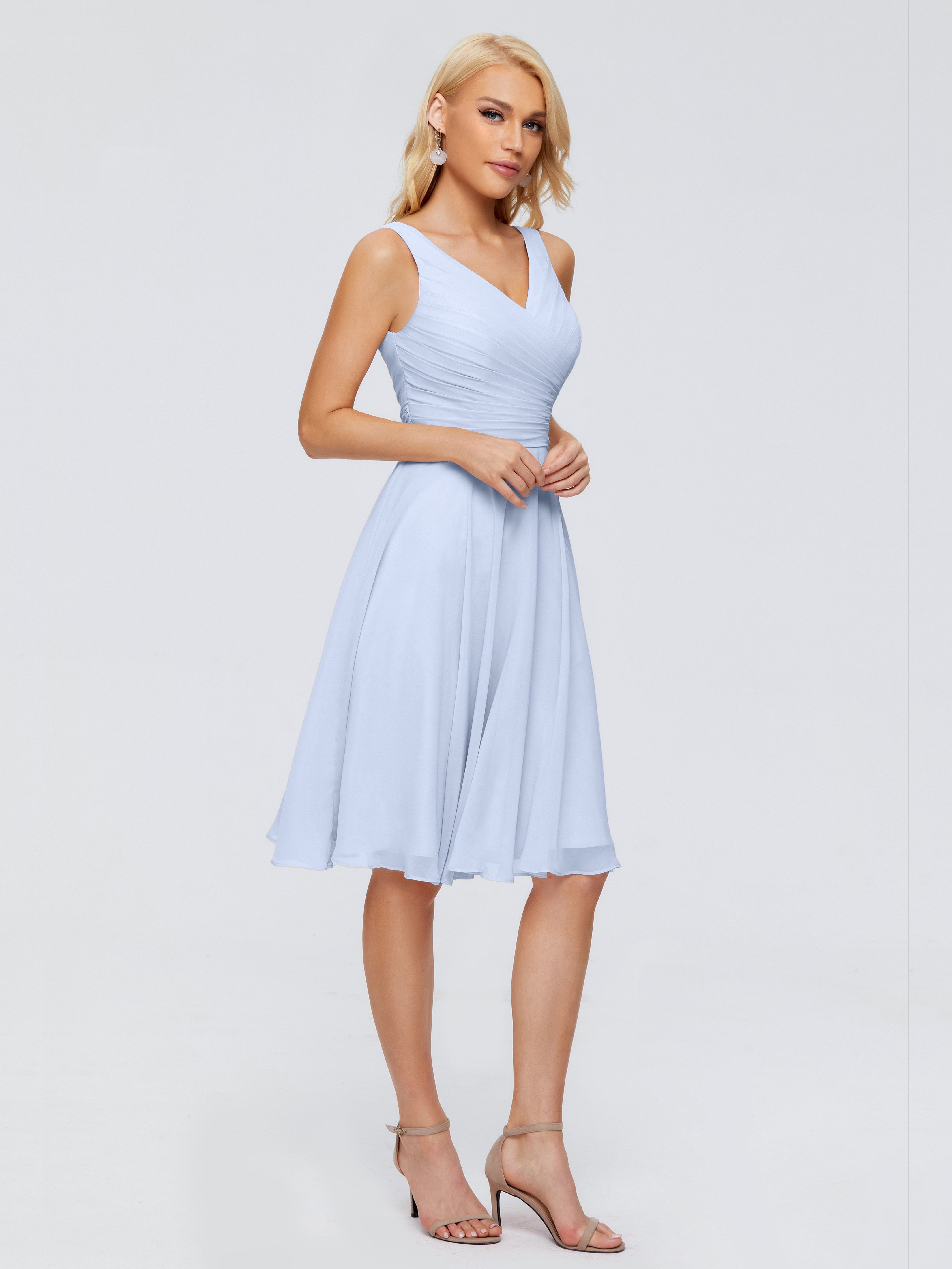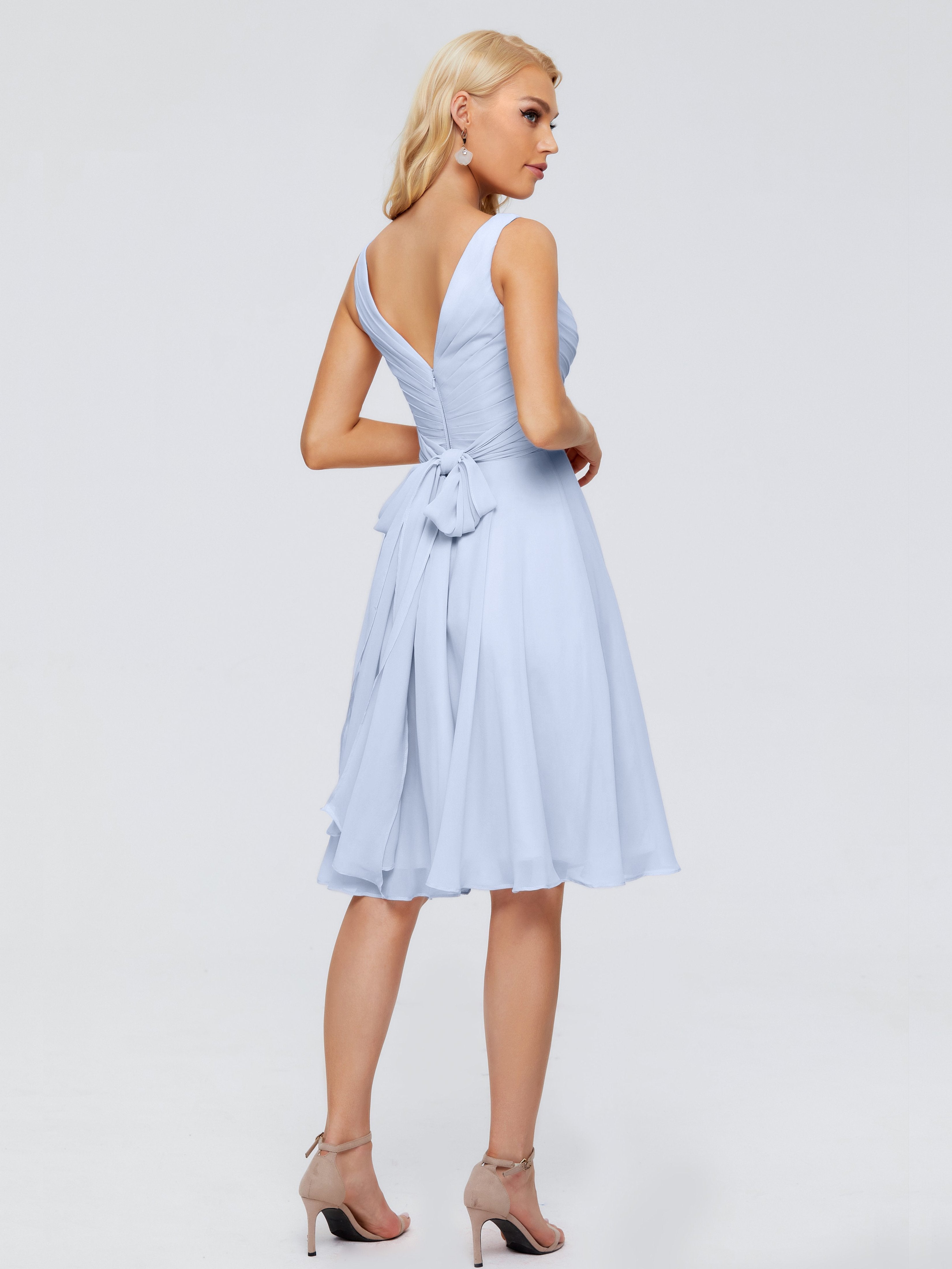 Sky Blue Short Bridesmaid Dresses Jocelyn Lovely V-Neck Short Chiffon Bridesmaid Dresses