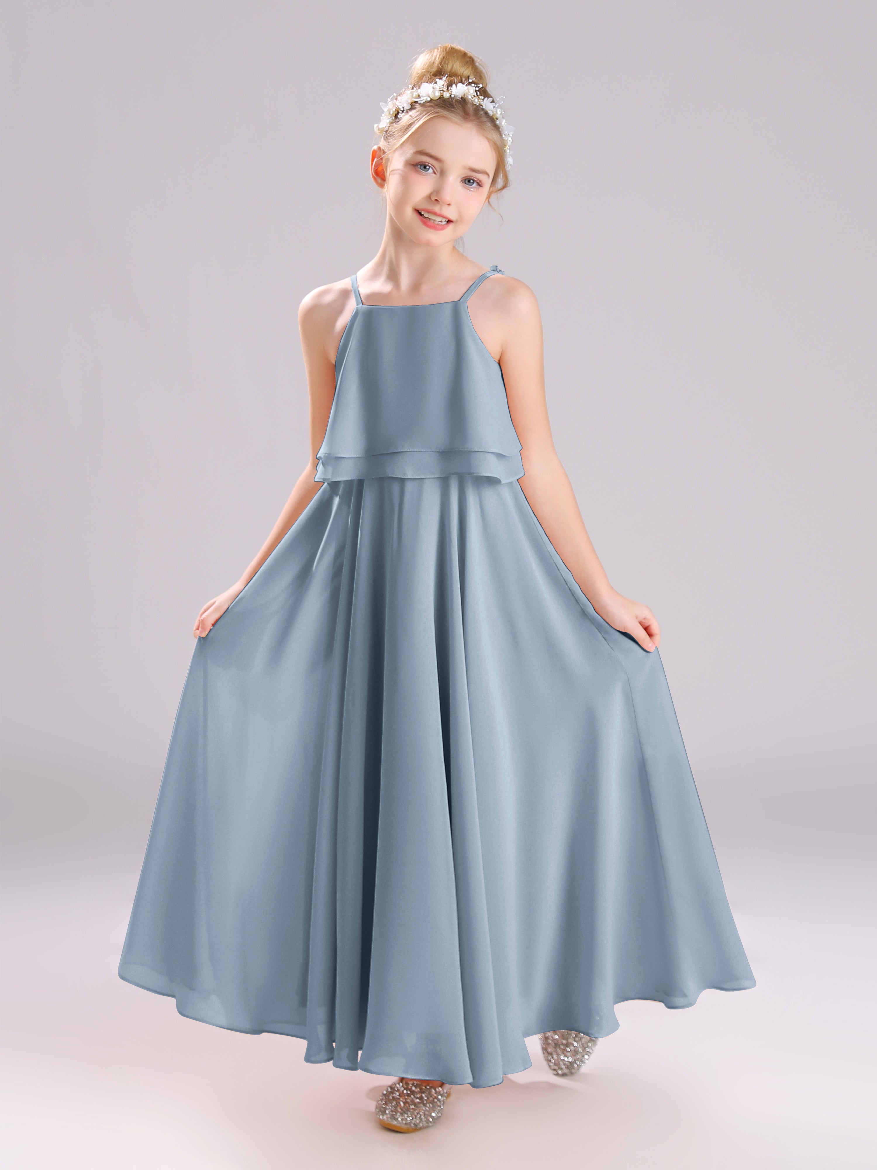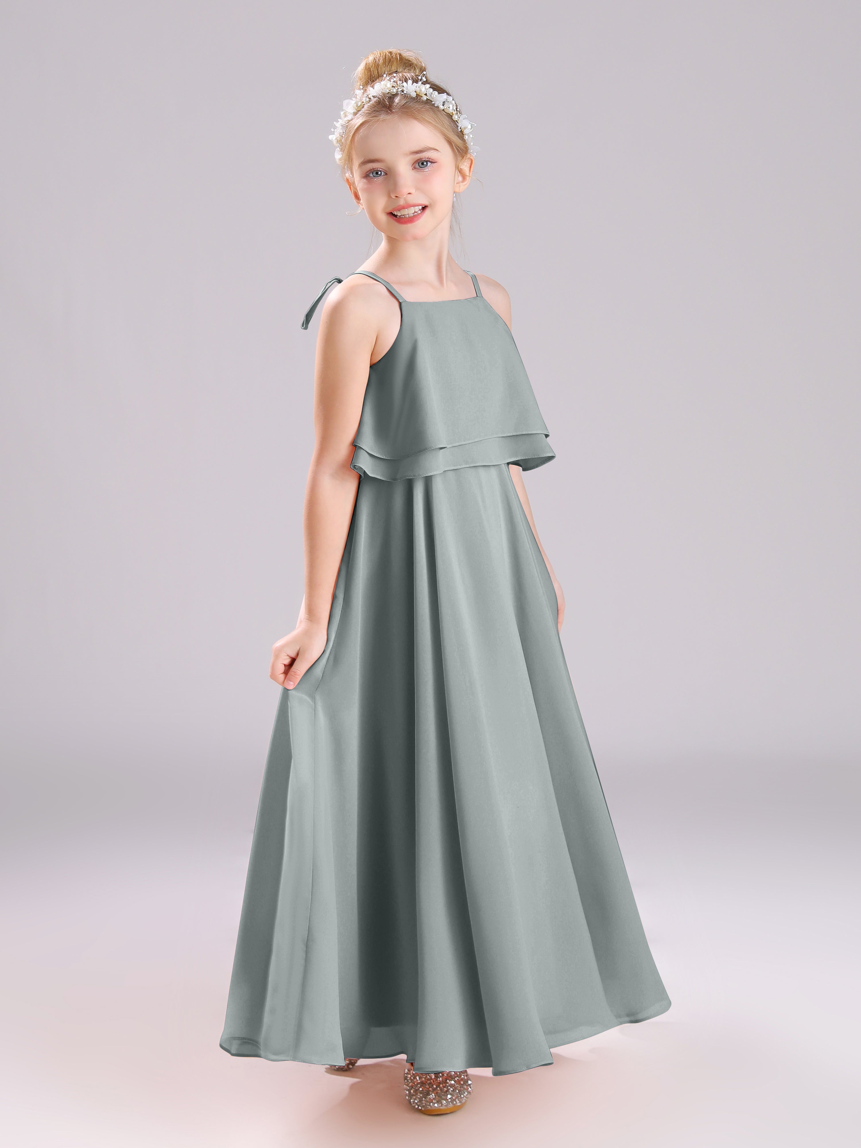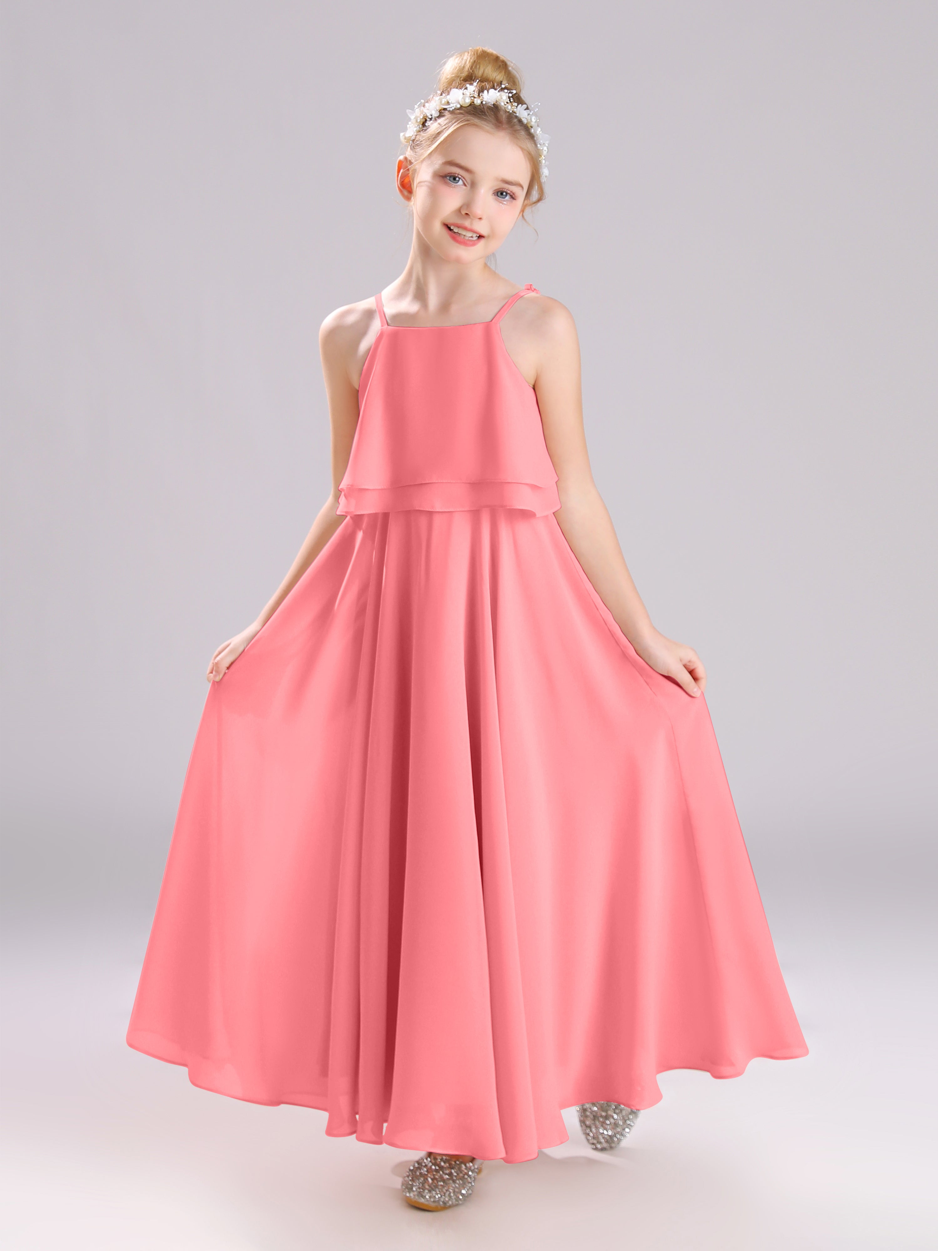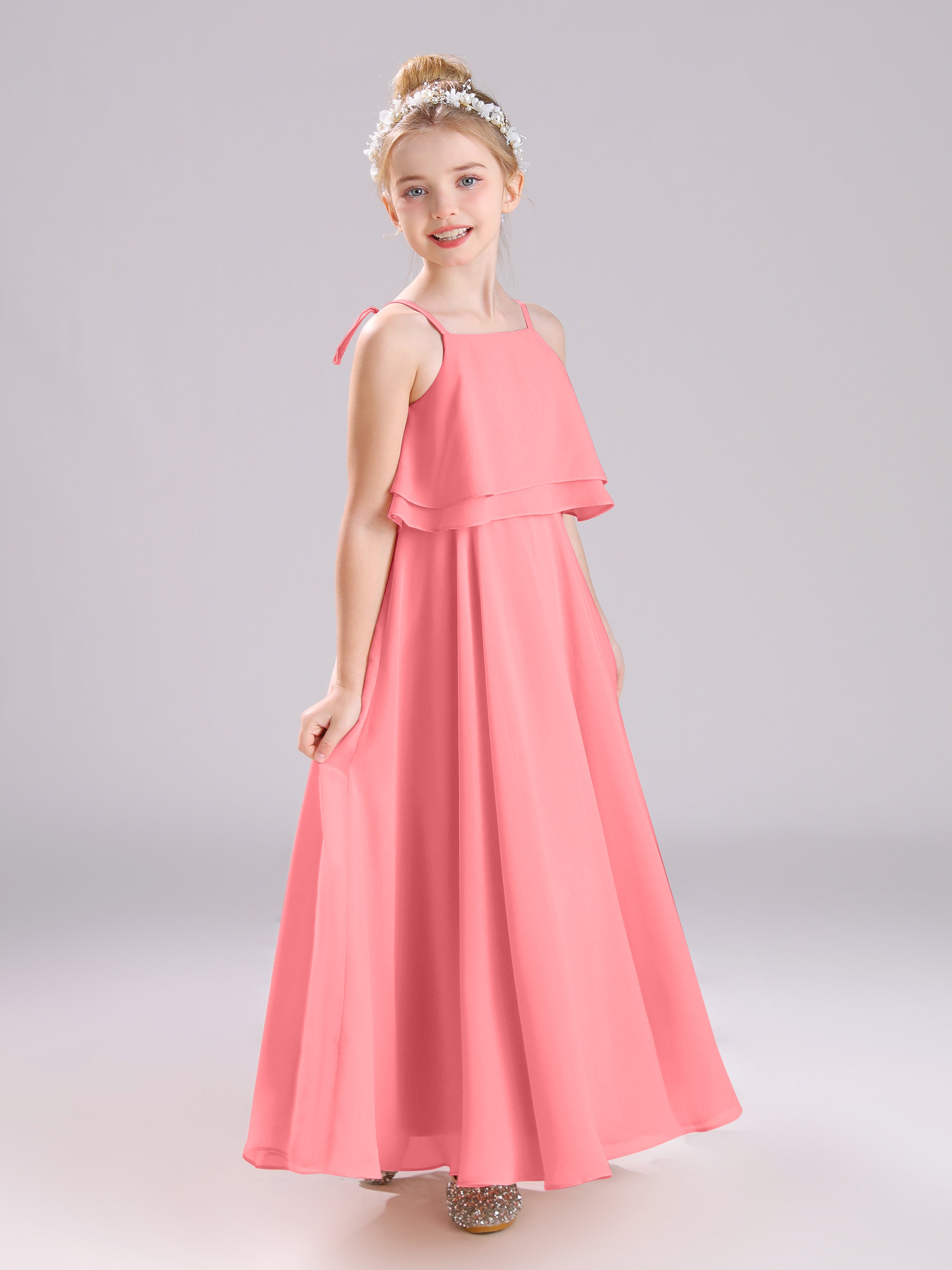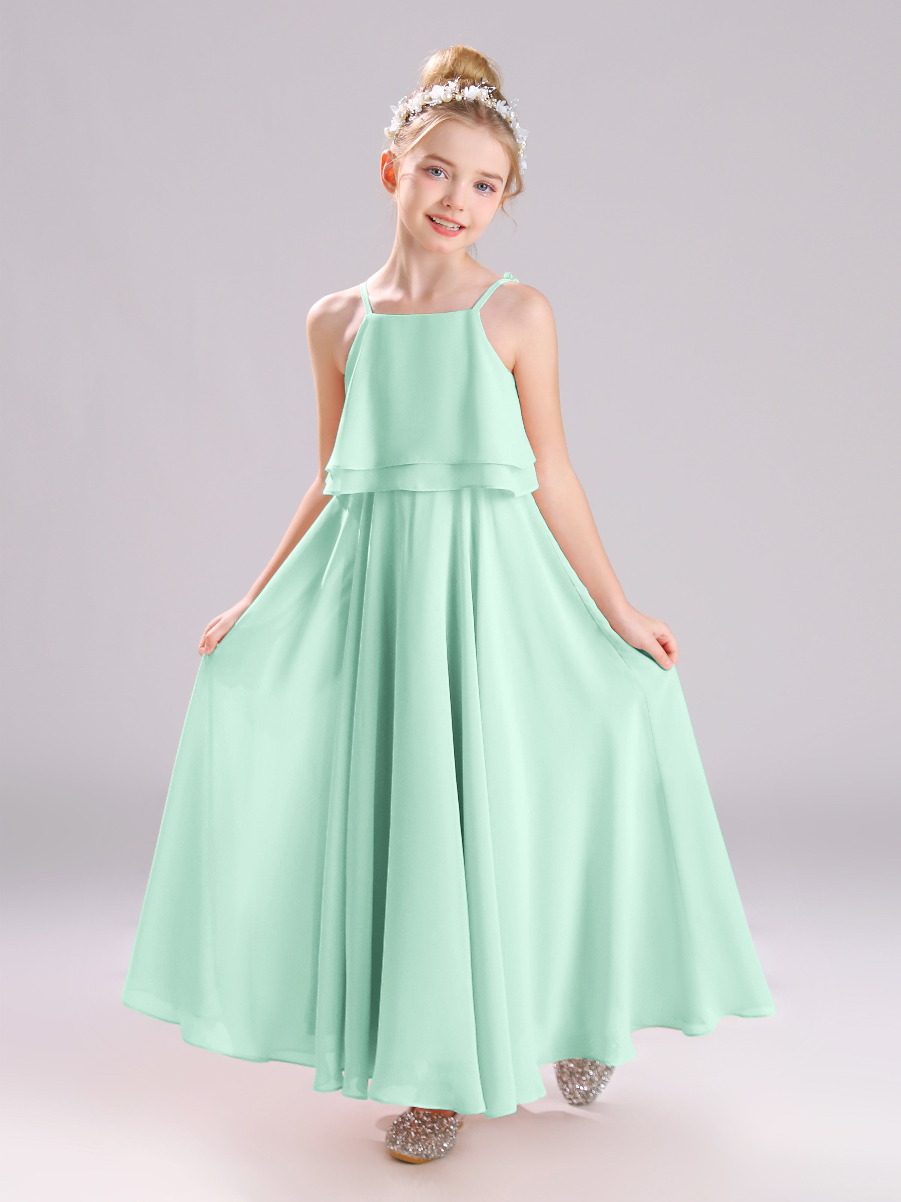 Straps Floor Length Chiffon Junior Bridesmaid Dresses