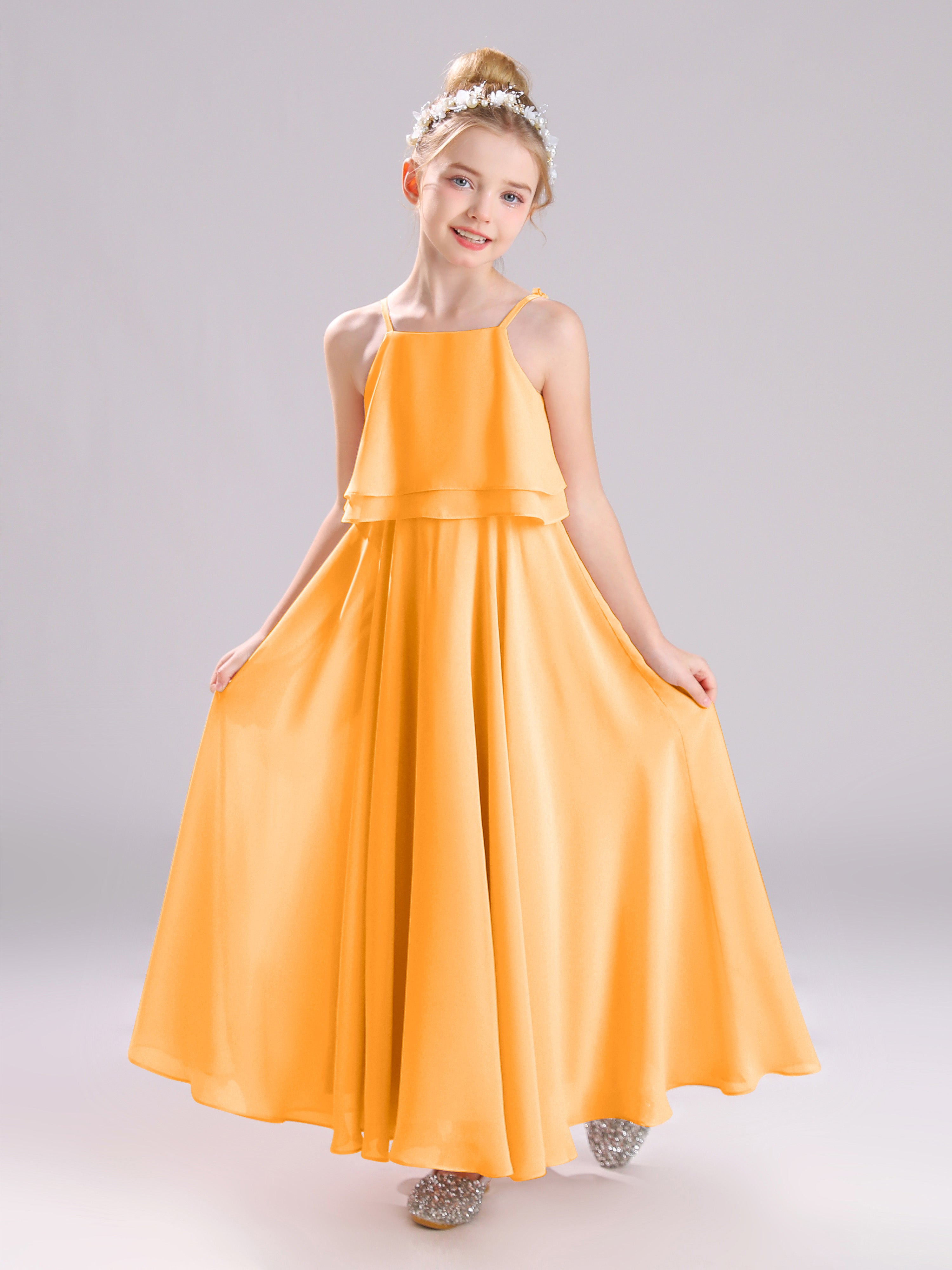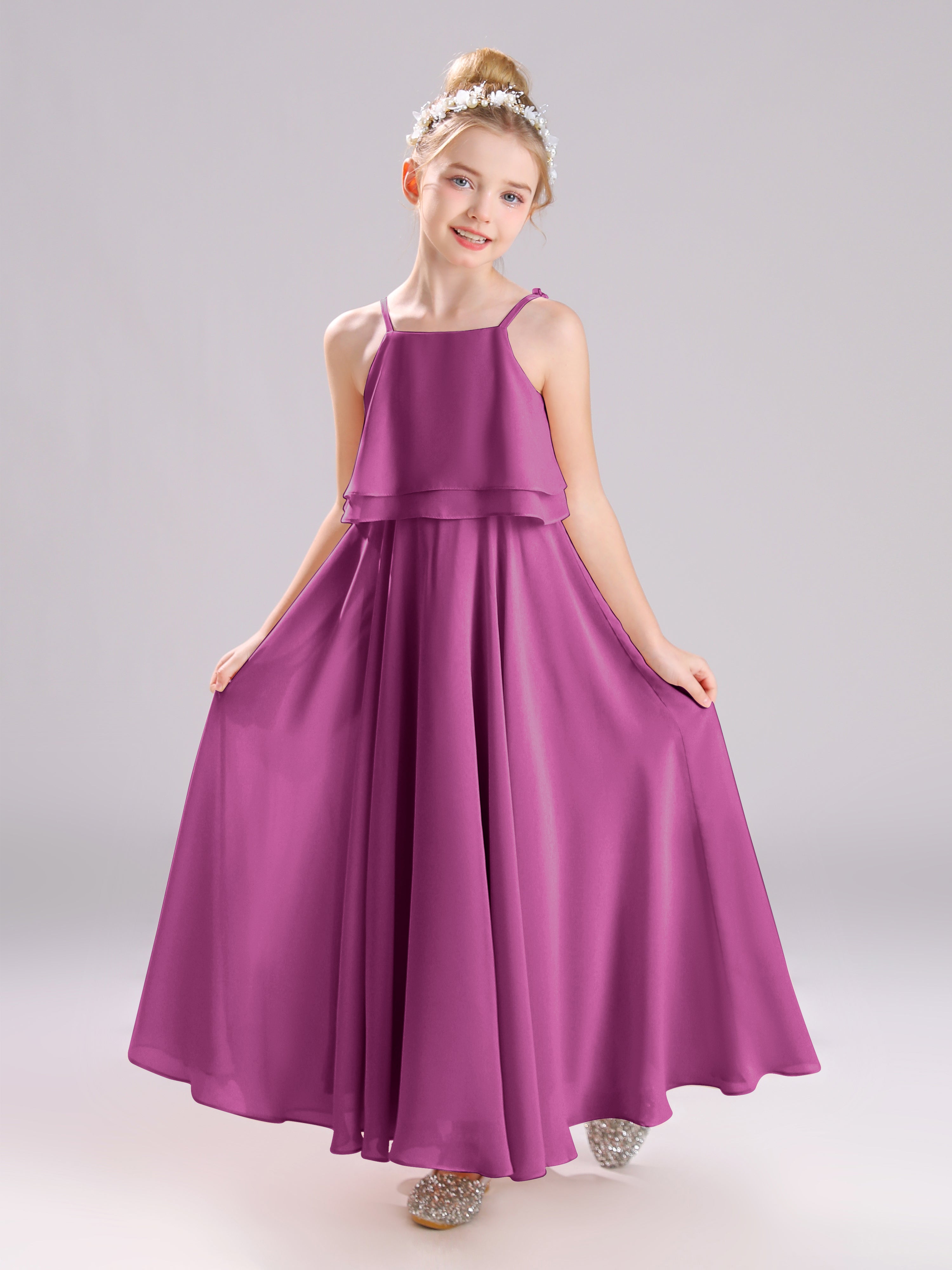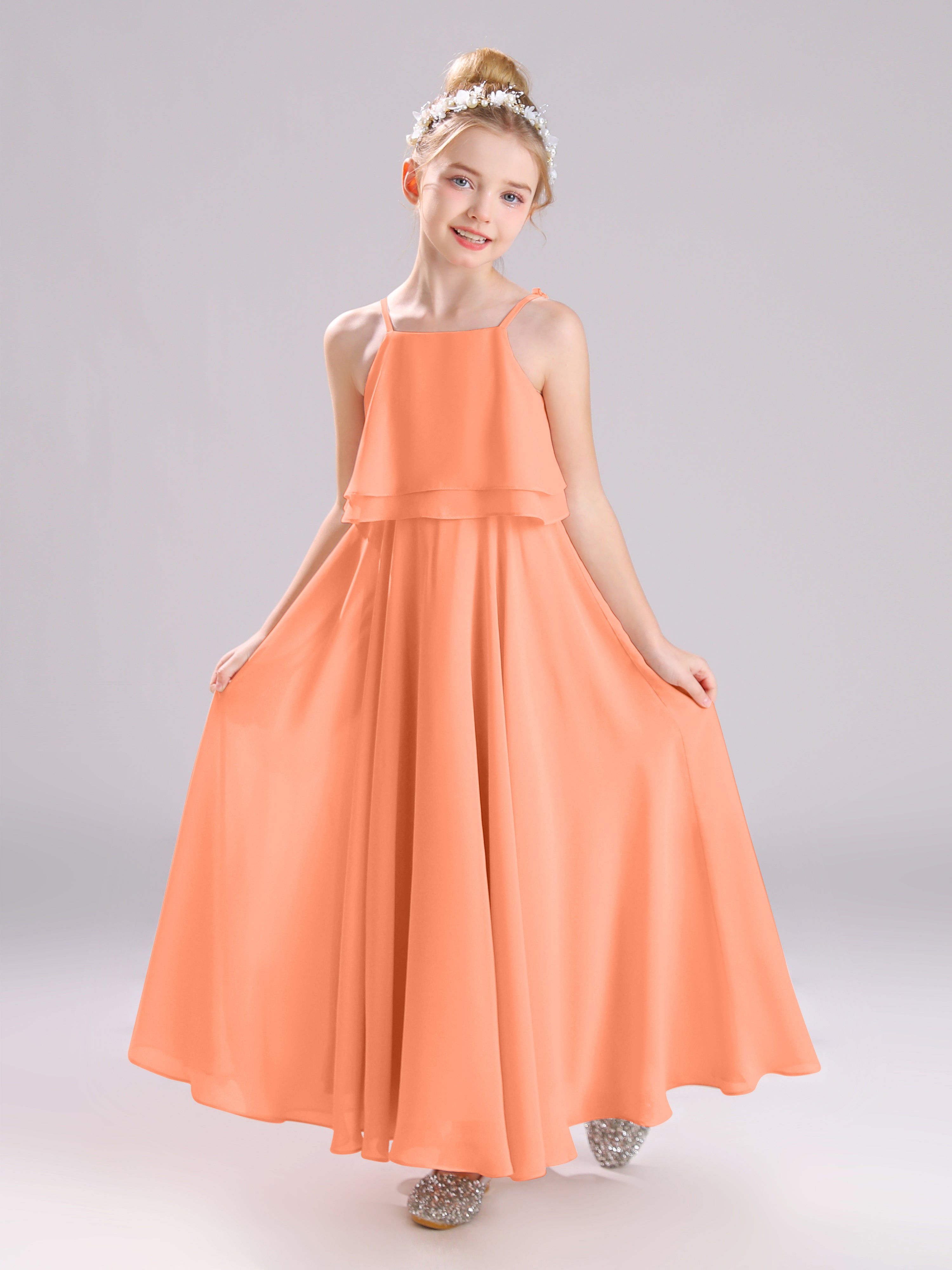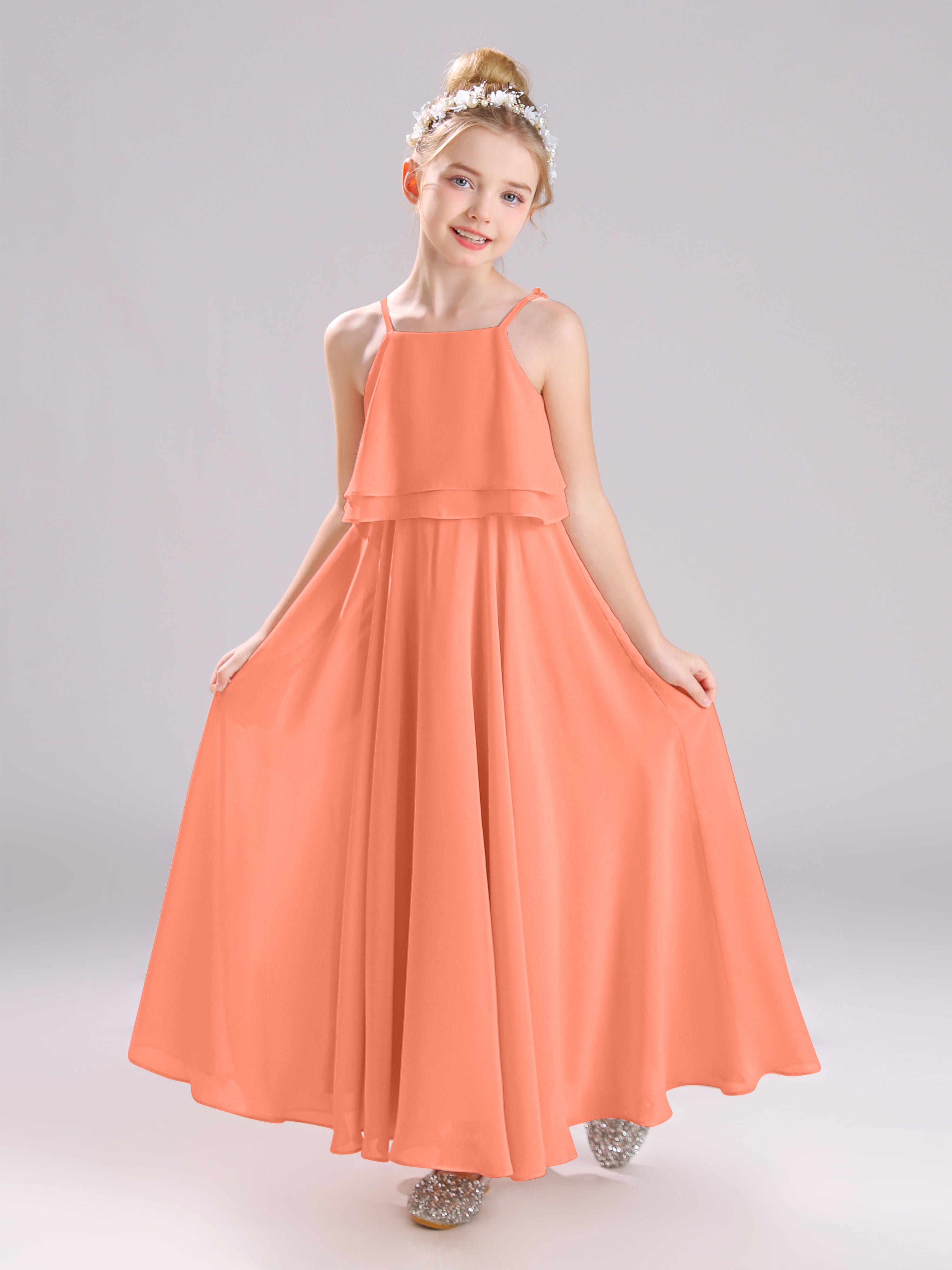 Straps Floor Length Chiffon Junior Bridesmaid Dresses