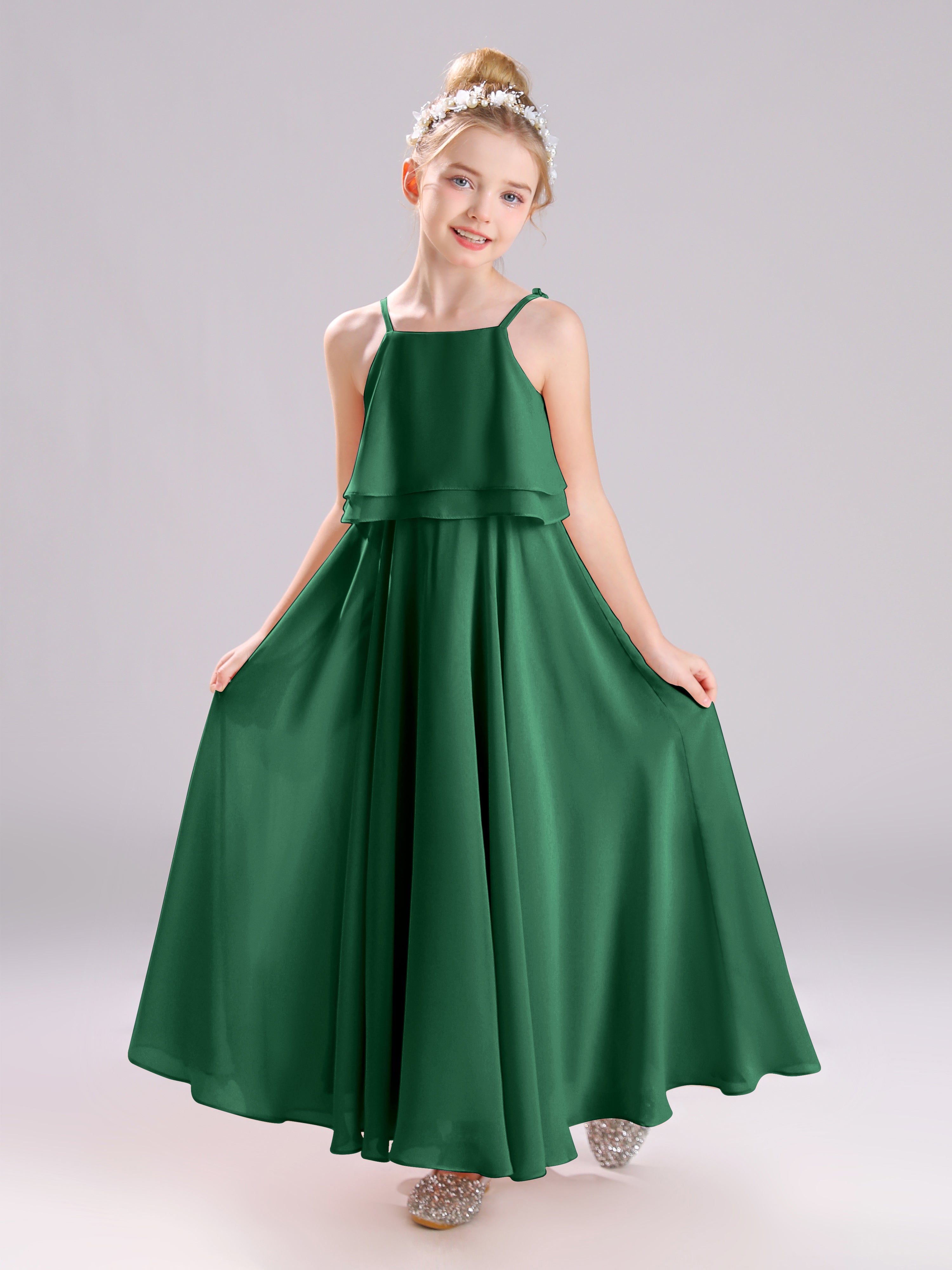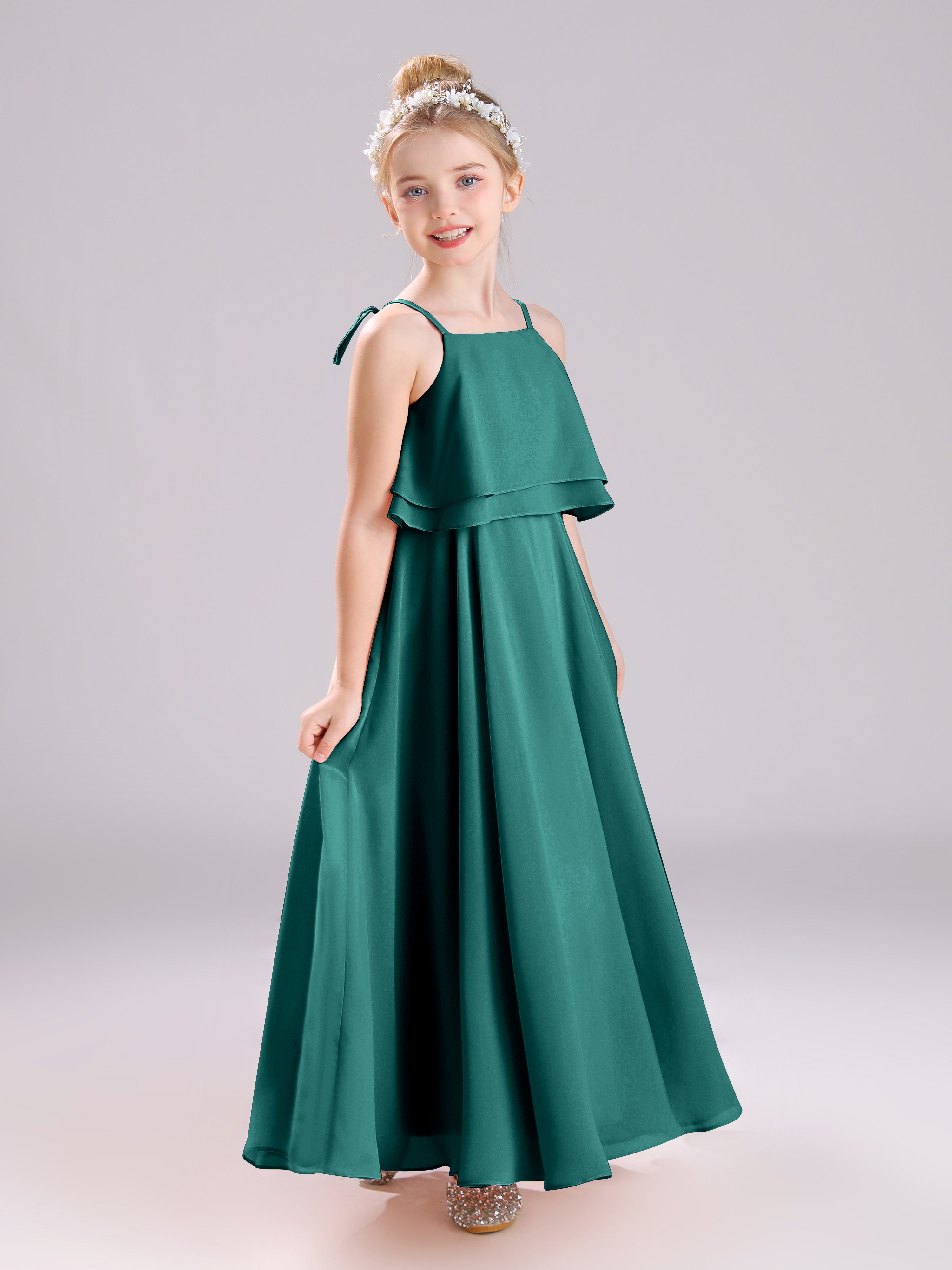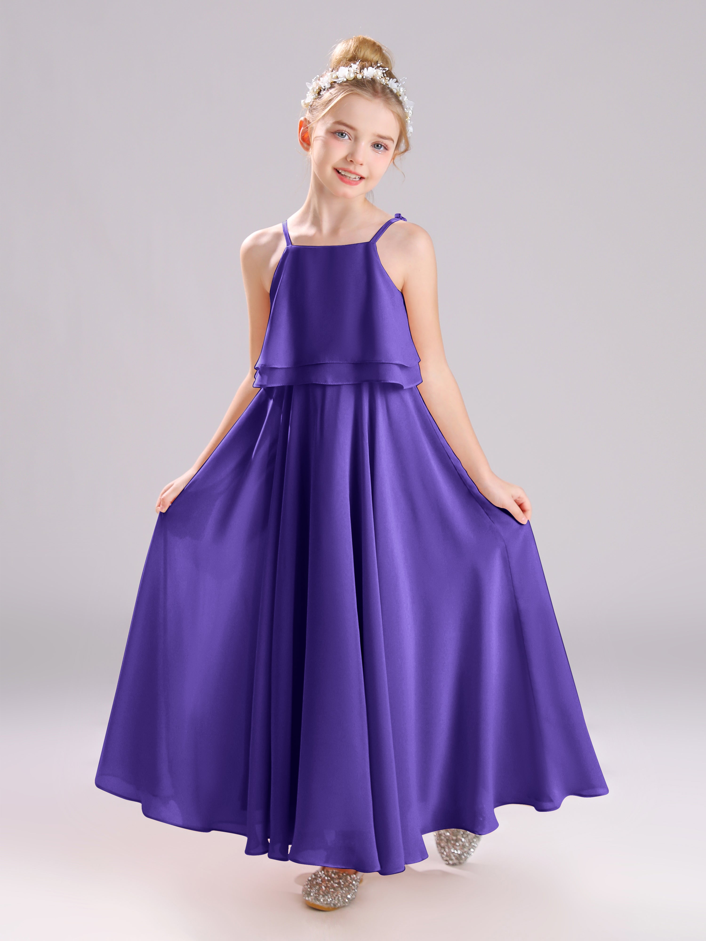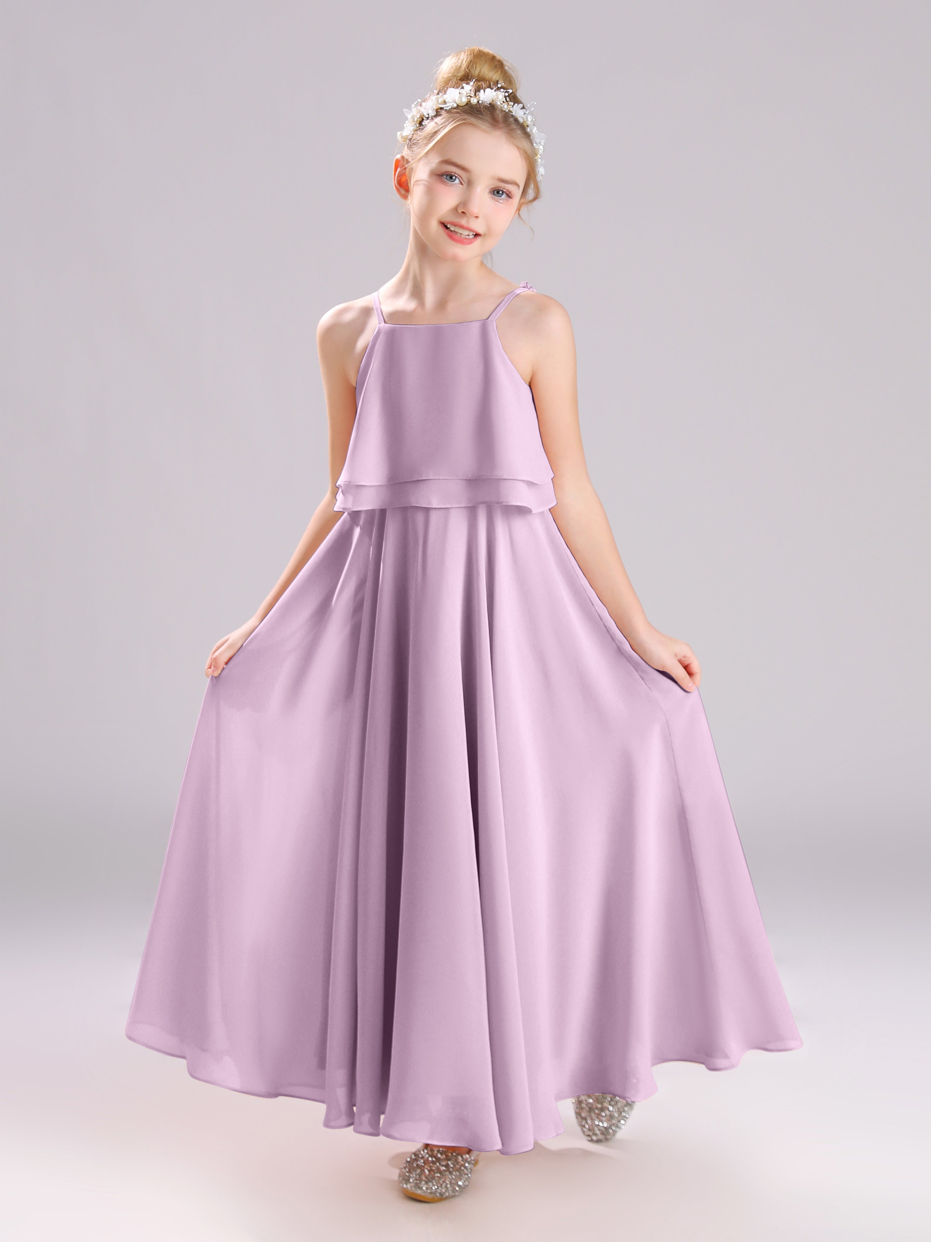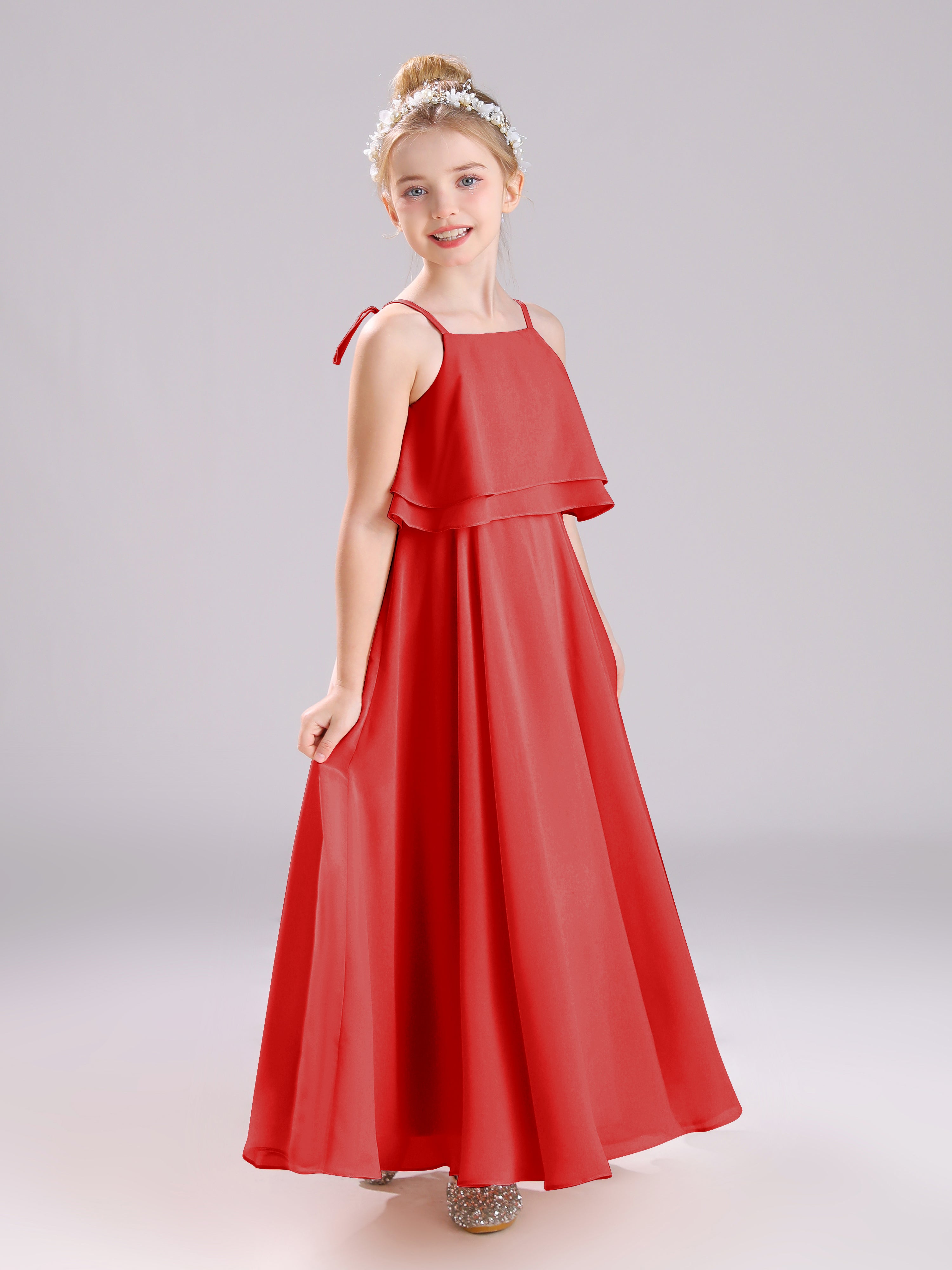 Straps Floor Length Chiffon Junior Bridesmaid Dresses